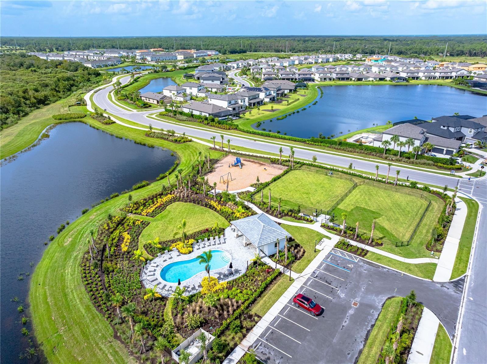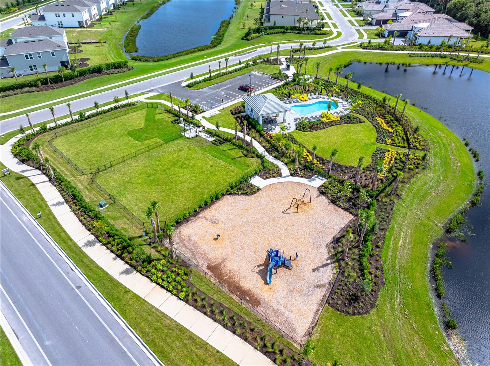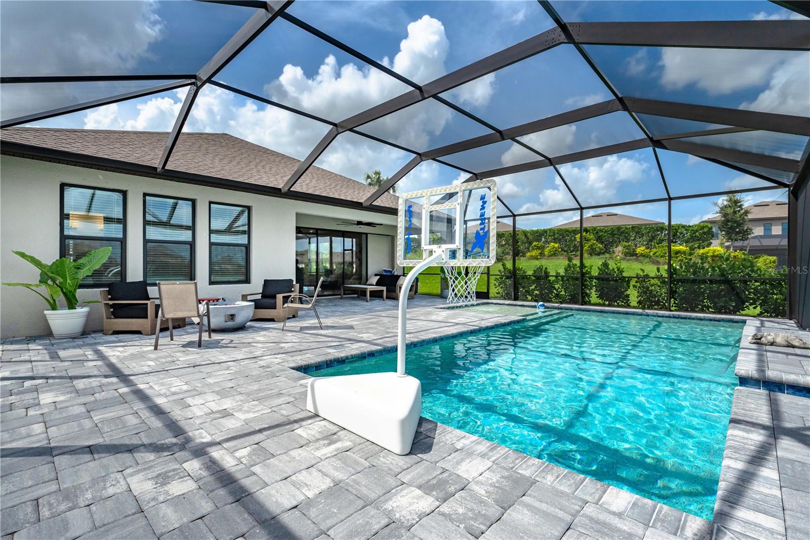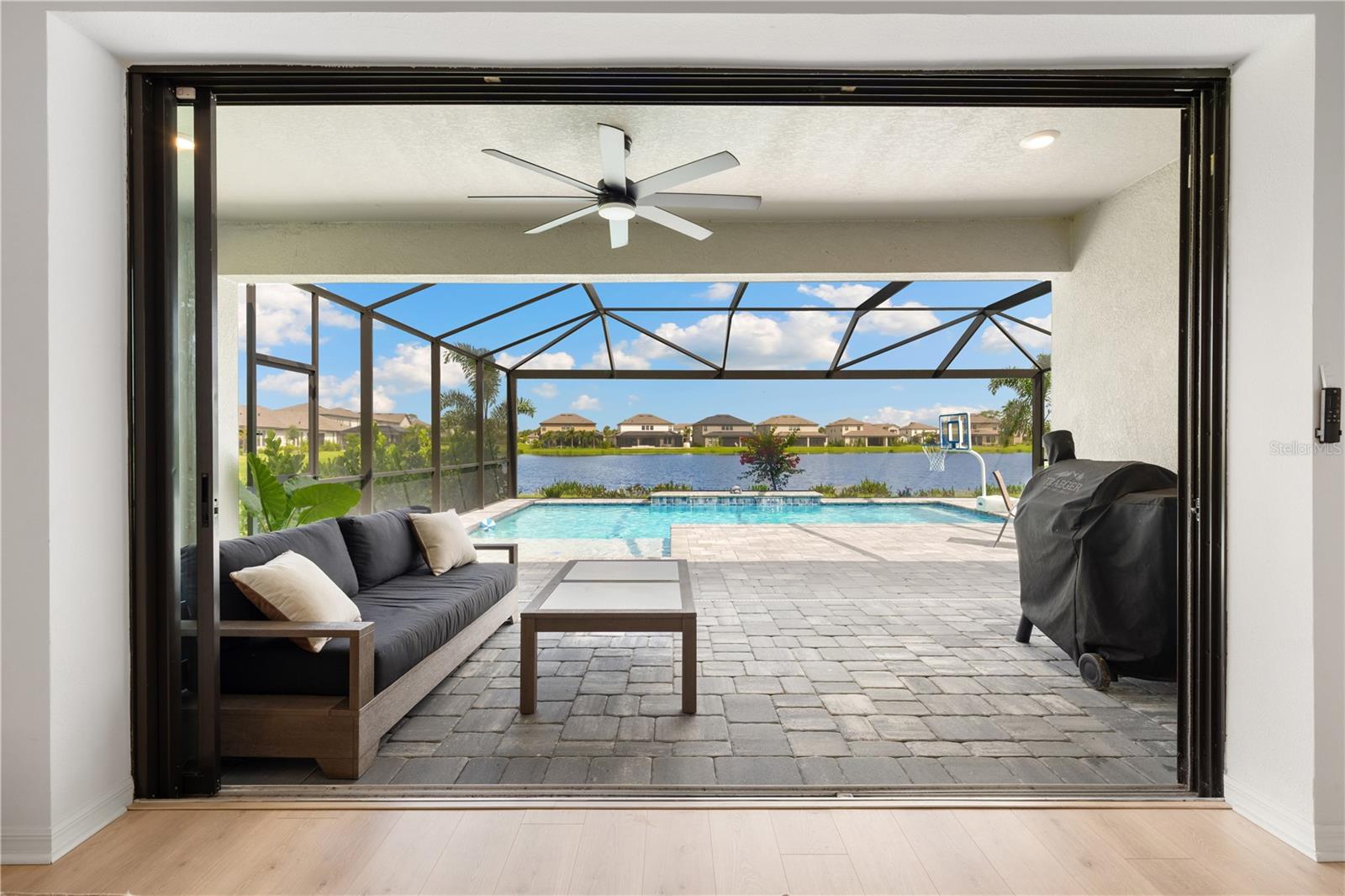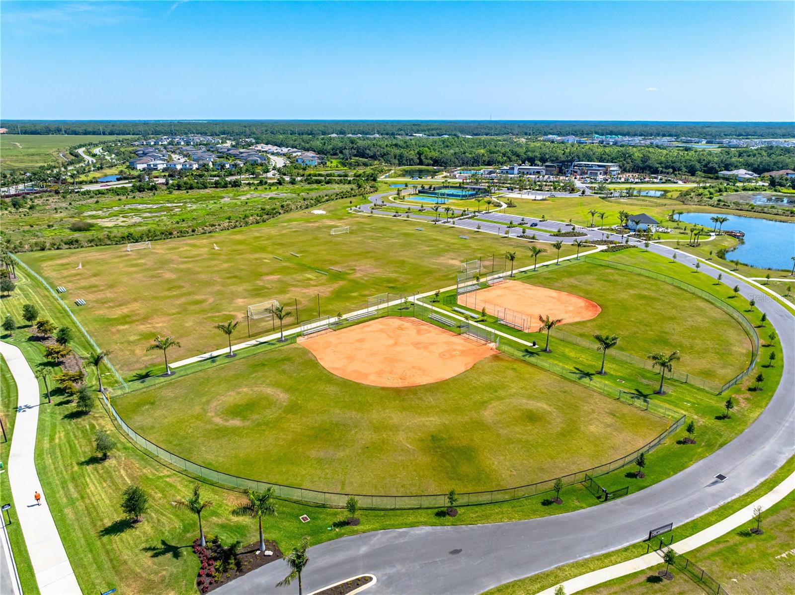 This is the One! *Located on a premium lakefront lot with incredible views, this newly constructed Antigua model boasts an open-concept highly functional single-level floor plan with four bedrooms and three bathrooms*It is perfectly situated in the sought-after Cassia section of the Skye Ranch community in Sarasota*Featuring thousands of dollars in builder upgrades, including premium faux laminate flooring for a sophisticated and durable finish*All closets, including the pantry and laundry room, are equipped with custom-built shelving and storage solutions for optimal organization and convenience*Enjoy the luxury of a screened 18x30 foot saltwater pool, complete with tranquil waterfalls, enhanced lighting, and a spacious sun deck for ultimate relaxation*"The community offers exceptional amenities at the state-of-the-art HUB recreational center, featuring a full-size gym, indoor basketball courts, a sprawling lagoon pool, an Olympic lap pool, a café, a climbing wall, a cozy lounge, tennis and pickleball courts, full-size soccer fields, a children’s playground, dog runs, and much more*Skye Ranch is just minutes away from the world-renowned Siesta Key Beach, the scenic Legacy Trail, and the natural beauty of Myakka River State Park*Located at the intersection of Clark Road and Lorraine Road, Skye Ranch is a premier destination offering endless opportunities to explore, experience, and enjoy life*