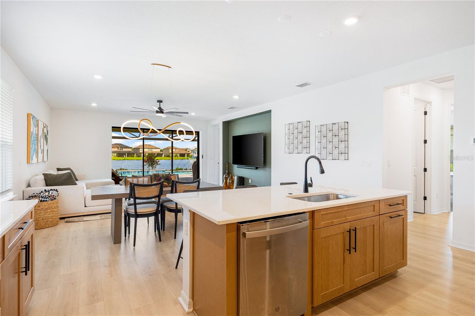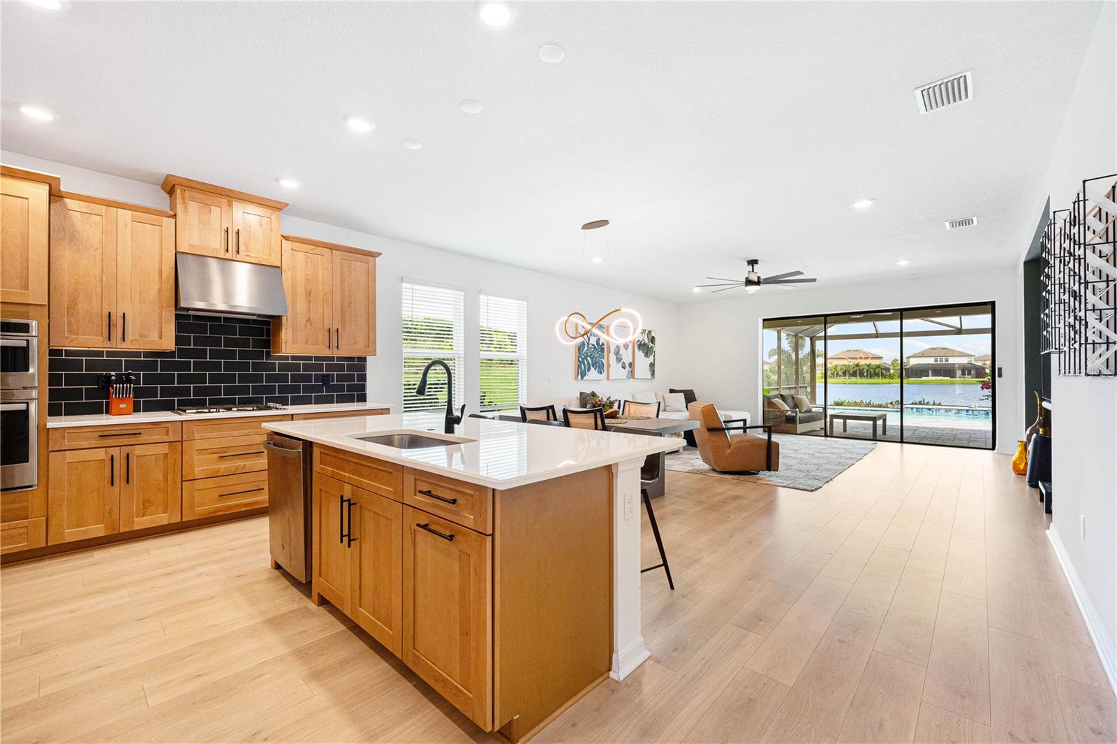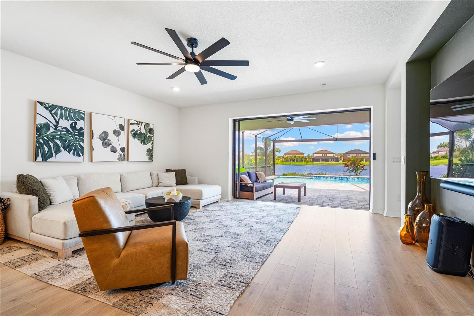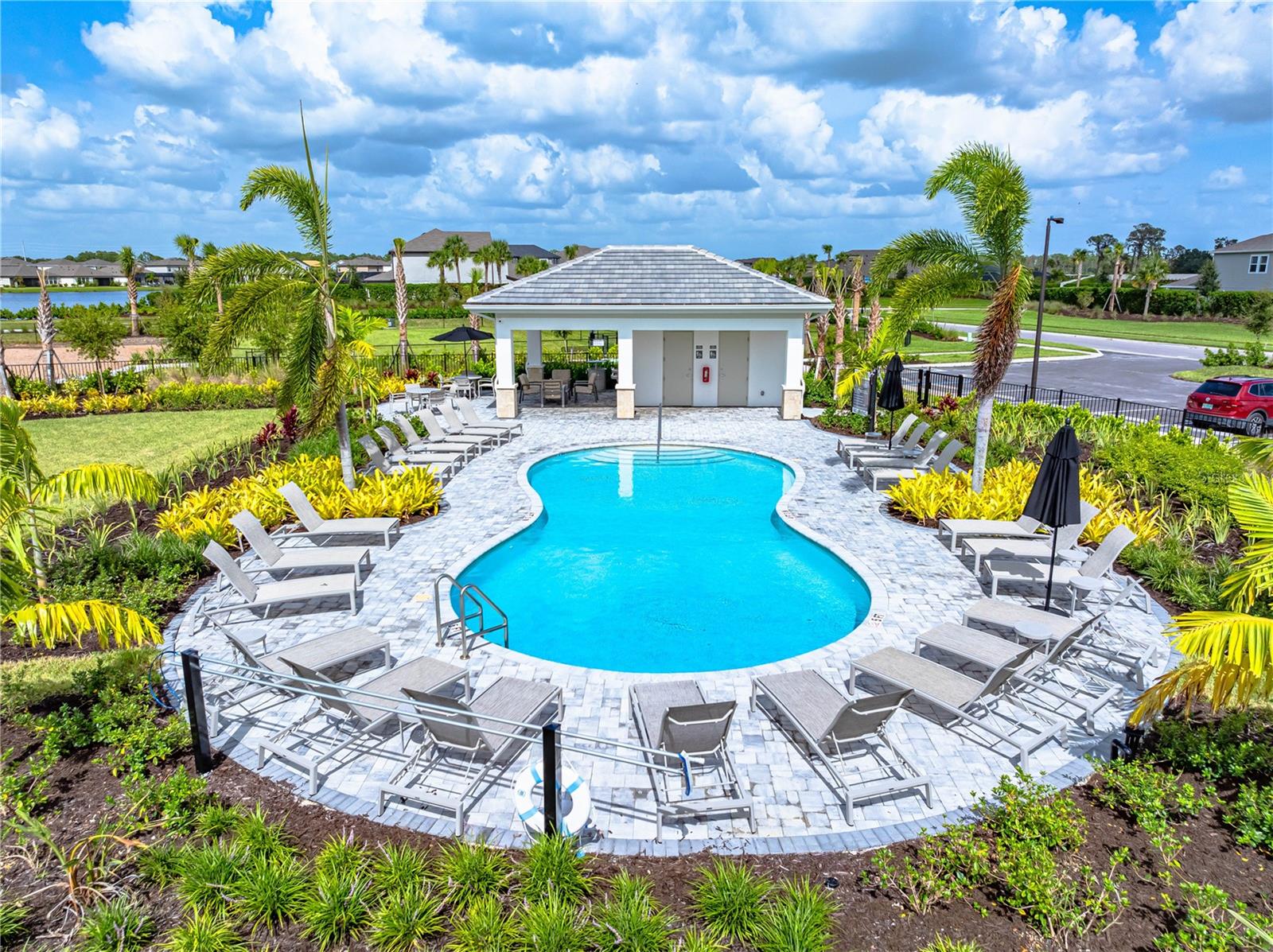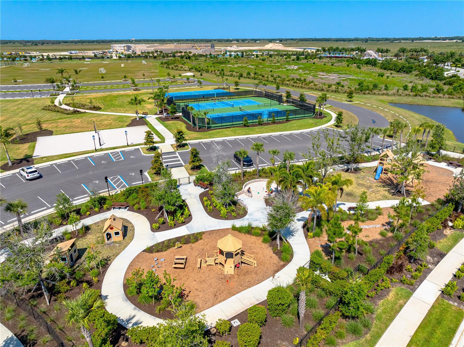 This is the One! *Located on a premium lakefront lot with incredible views, this newly constructed Antigua model boasts an open-concept highly functional single-level floor plan with four bedrooms and three bathrooms*It is perfectly situated in the sought-after Cassia section of the Skye Ranch community in Sarasota*Featuring thousands of dollars in builder upgrades, including premium faux laminate flooring for a sophisticated and durable finish*All closets, including the pantry and laundry room, are equipped with custom-built shelving and storage solutions for optimal organization and convenience*Enjoy the luxury of a screened 18x30 foot saltwater pool, complete with tranquil waterfalls, enhanced lighting, and a spacious sun deck for ultimate relaxation*"The community offers exceptional amenities at the state-of-the-art HUB recreational center, featuring a full-size gym, indoor basketball courts, a sprawling lagoon pool, an Olympic lap pool, a café, a climbing wall, a cozy lounge, tennis and pickleball courts, full-size soccer fields, a children’s playground, dog runs, and much more*Skye Ranch is just minutes away from the world-renowned Siesta Key Beach, the scenic Legacy Trail, and the natural beauty of Myakka River State Park*Located at the intersection of Clark Road and Lorraine Road, Skye Ranch is a premier destination offering endless opportunities to explore, experience, and enjoy life*