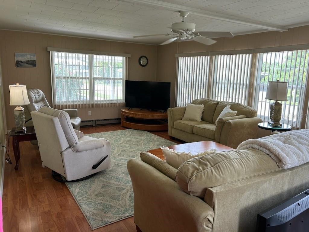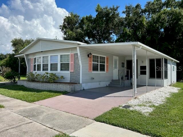 Recent hurricanes has done damage to the roof & some interior damage - sellers are looking into having the roof replaced & other repairs. 2nd parking pad, "golf cart is included". Large shed includes the W&D. Tri-Par Estates is a 55+ community in which you own your home and the land. A park fee of $1,584.00 a year is part of the property taxes paid once a year, includes Frontier internet, cable also trash. There is a large pool, hot tub, mini golf, laundry facilities, fitness room, clubhouse, and many activities to enjoy. Just minutes to the airport and many other like necessities nearby like hospitals, shopping, restaurants and more. Please do not disturb resident. Airplanes & jets do fly over Tri Par Estates. Tri Par is a state park & recreation development.