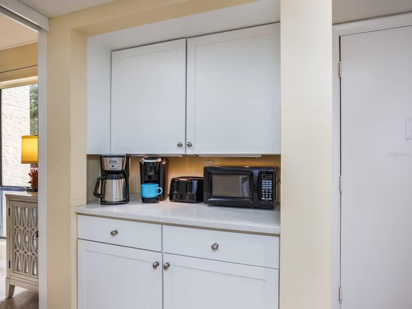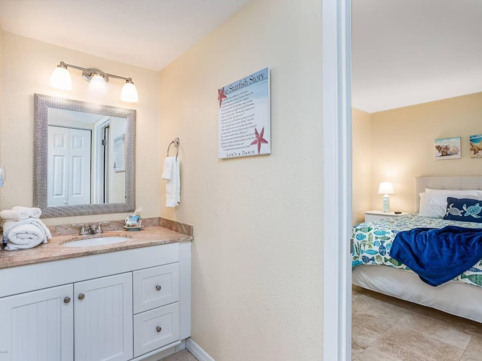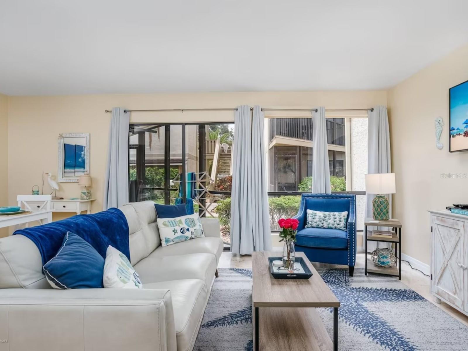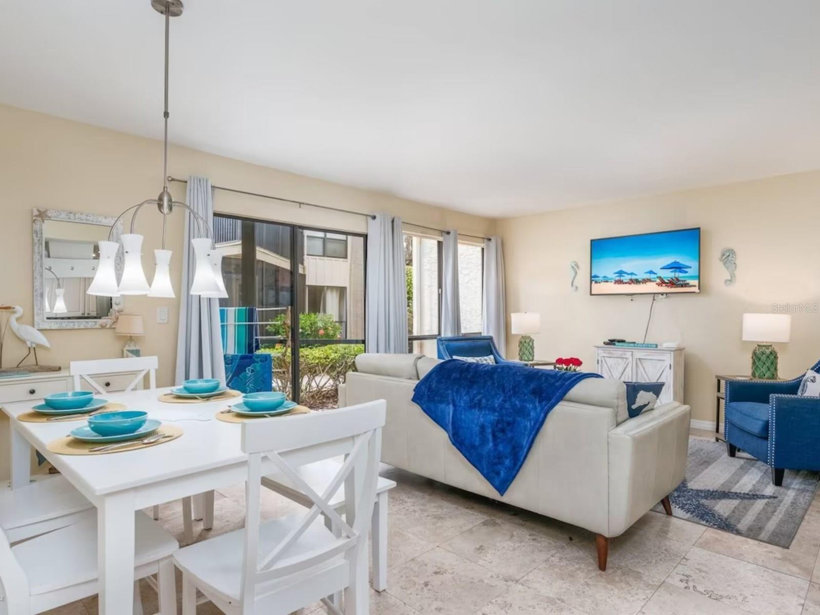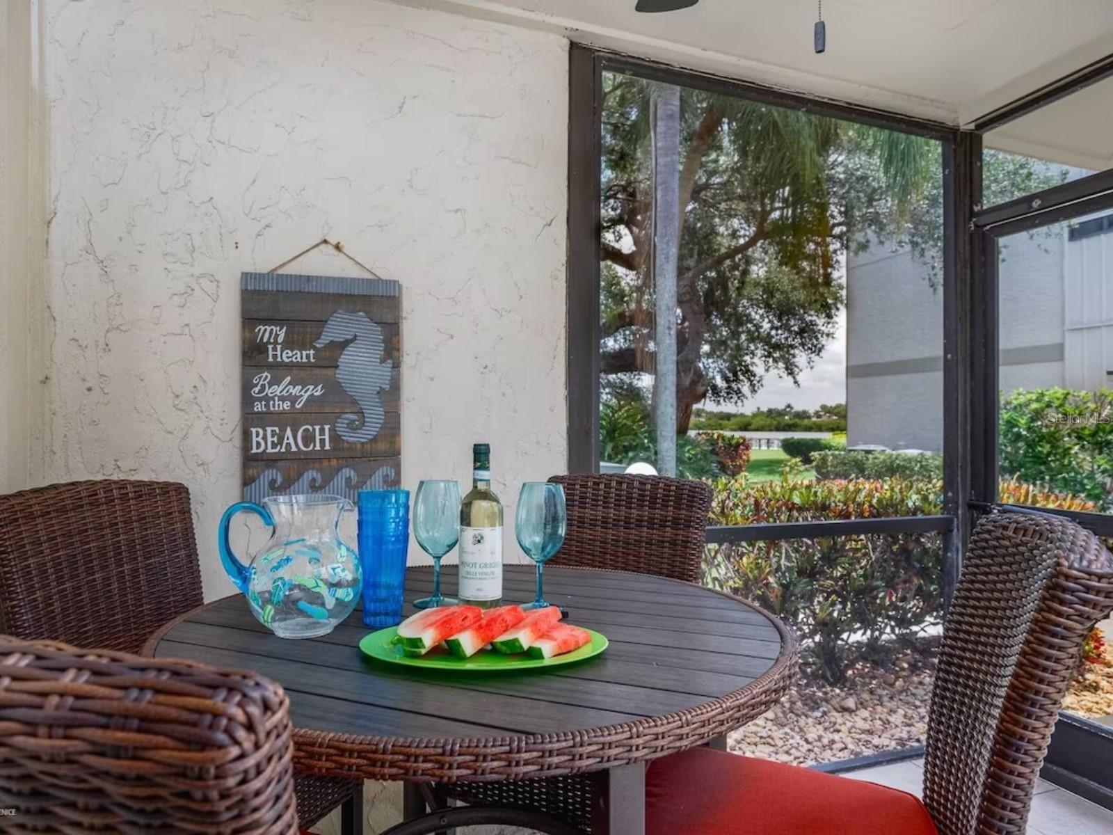 This charming updated ground floor condo, featuring 2 bed rooms, 1 bath room, a full kitchen and reserved parking, has a water view from the lanai and is located in beautiful Siesta Key, Florida. This particular unit is located about 30 feet from the intracoastal waterway, so soak up pristine gulf views right from your own lanai! It is also a stone's throw away from the community's heated pool. As a condo unit, it provides a cozy and comfortable living space where you can live every day as if you are on vacation. This is the perfect opportunity for a low-maintenance lifestyle, making it ideal for those seeking a permanent residence, vacation home, a rental property, or a peaceful retreat. Check out the virtual tour then book your showing today. The refreshingly updated and clean interior is sold in turnkey condition with all furnishings. Everything in the condo is included in the sale, including the beds, couch, furniture, televisions, and all appliances. Includes updated bathroom, kitchen, insulation in ceiling for efficiency and sound dampening, and tile on the lanai. This condo unit also has a very strong rental history, boosted by the water view from the lanai, easy ground floor location, and the nearby proximity to the pool. Amenities include a water view from the lanai, heated pool, tennis court, dock on the bay, fishing pier, community barbecue grill, community billiard room, 1 parking space (and access to additional visitor space), washer and dryer in unit, outdoor closet for additional storage, and the convenience of low maintenance condo living. All common area and outdoor maintenance is the responsibility of the condo association. The association also pays for internet, water, and trash. The exterior of the property boasts a well-kept and manicured landscape, enhancing the overall appeal of the condominium. The surrounding area is lush and green, creating a tranquil environment to enjoy. This property is nearby to the world-renowned Siesta Key beach area with its powdery white sands and crystal-clear waters. It is also on the Siesta Key trolly line with a stop right out front, and it is near to vibrant Sarasota nightlife and dining options. There is always something to explore and enjoy in this coastal paradise.