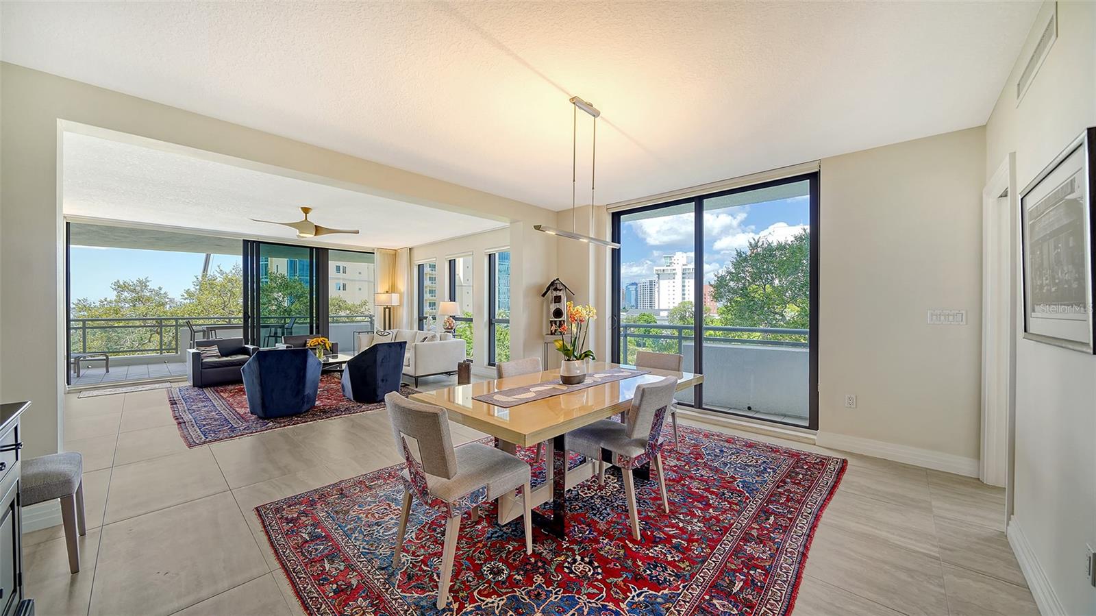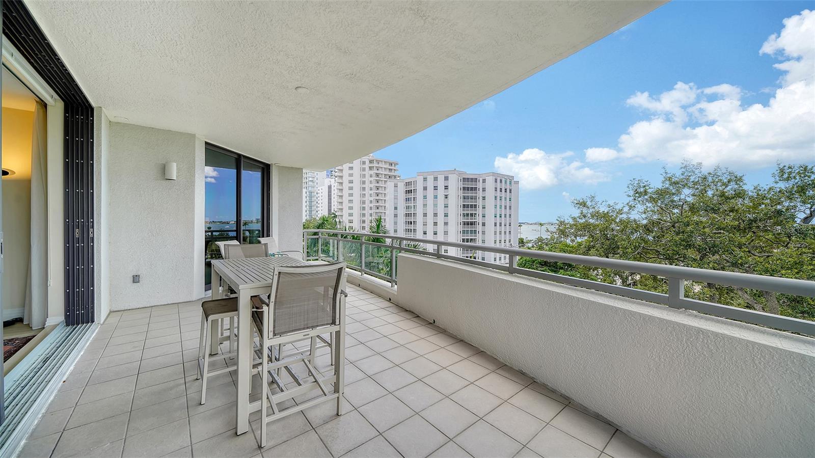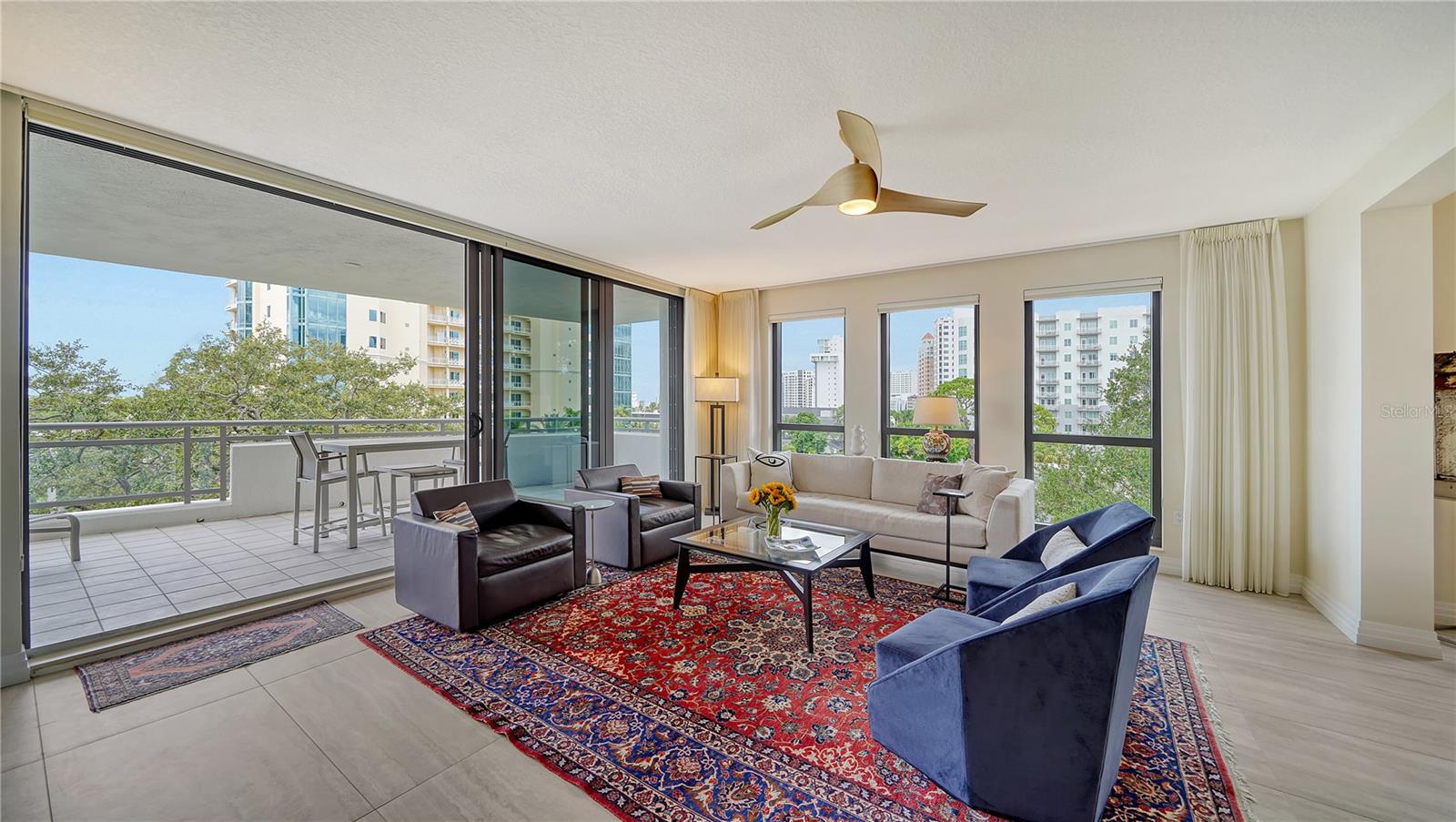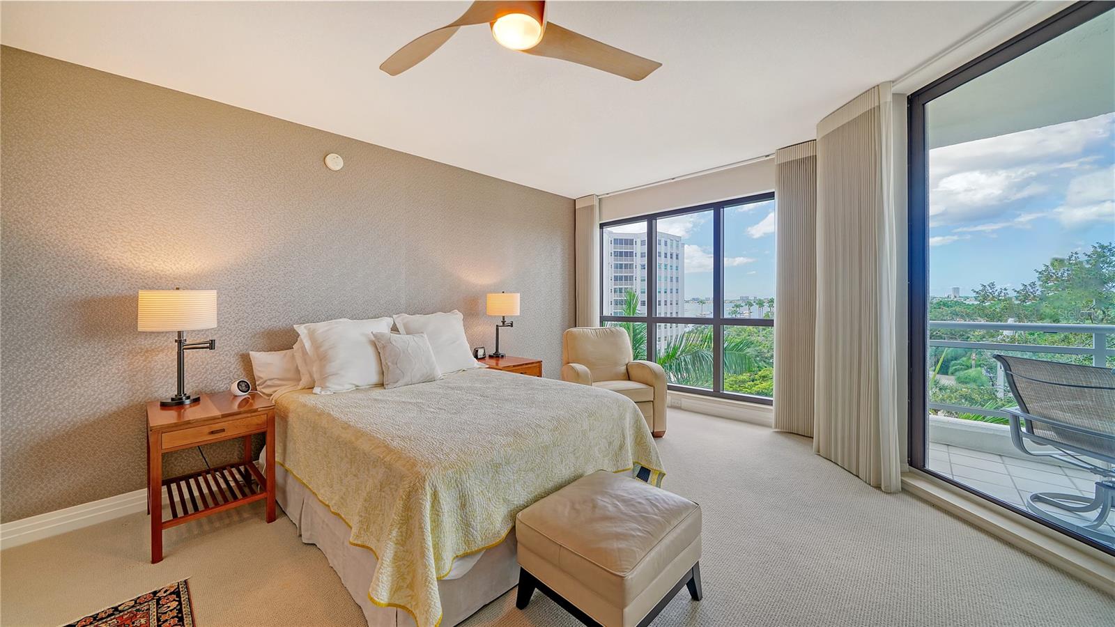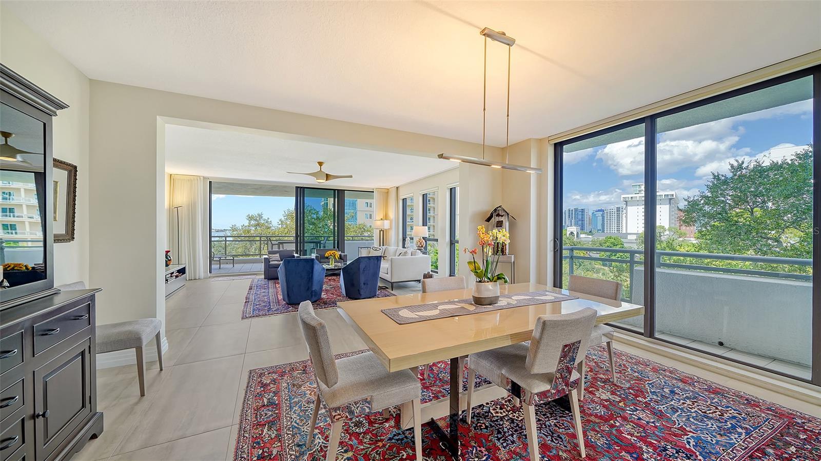 Enjoy gorgeous views of Sarasota Bay from this three-exposure end unit at the coveted Savoy on Palm, an intimate building with only twenty-four units. The historic downtown skyline is framed by old growth oaks through the many floor-to-ceiling windows. Relax with views of Laurel Park’s greenery from your balcony. Stroll South Palm Avenue’s tranquil tree-lined neighborhood on your way to restaurants, theatre, opera, shopping, and cinema. In less than two short blocks, you’ll watch the sunset, drink in hand, at the Bay Front Park and marina. Tall windows provide abundant light in 3,172 sq ft of understated elegance. Pass through sophisticated glass doors onto modern porcelain floors with granite and marble-topped cabinetry in kitchen and baths. Top-of-the-line appliances include Sub-Zero, Wolf, and Cove plus an on-trend steam/convection oven. Close the door on your private two-car garage steps from your personal storage room. A pet-friendly building with a fully fenced side yard, the Savoy’s owner amenities include concierge service, building manager, two-room guest suite, community social room with a catering kitchen, and a library for more intimate gatherings. Invite your personal trainer to the comprehensive fitness room then unwind from your workout in the private massage room. The exceptional outdoor living space includes a heated spa and pool with luxury seating, twin Wolf gas grills, outdoor kitchen, dining tables, and bar ready for you to enjoy social events with your friends, family, and fellow owners.