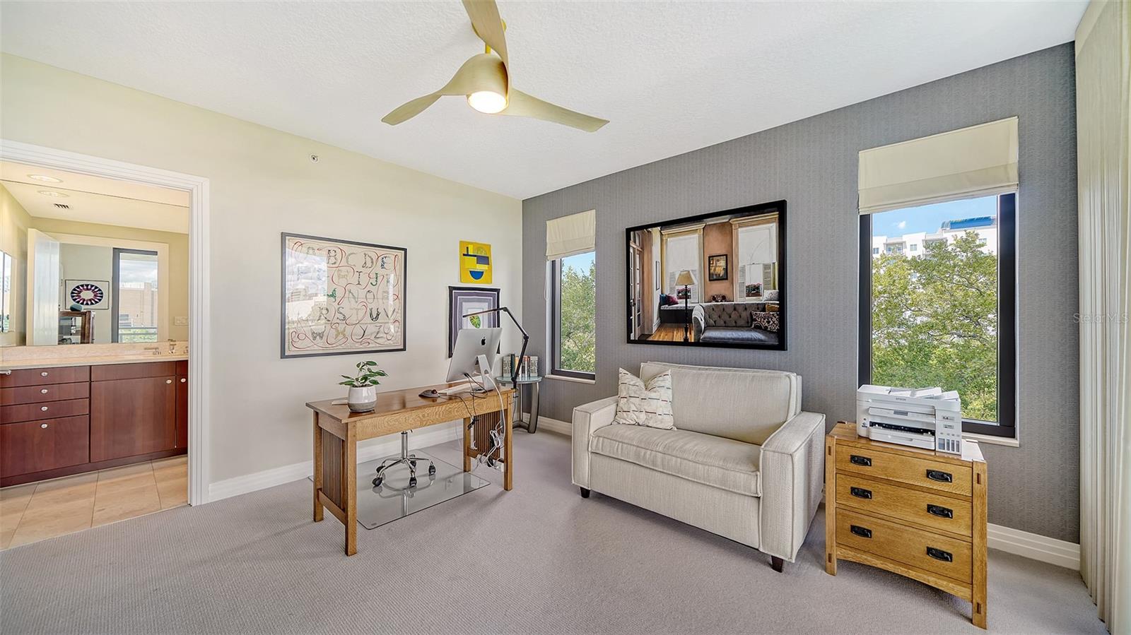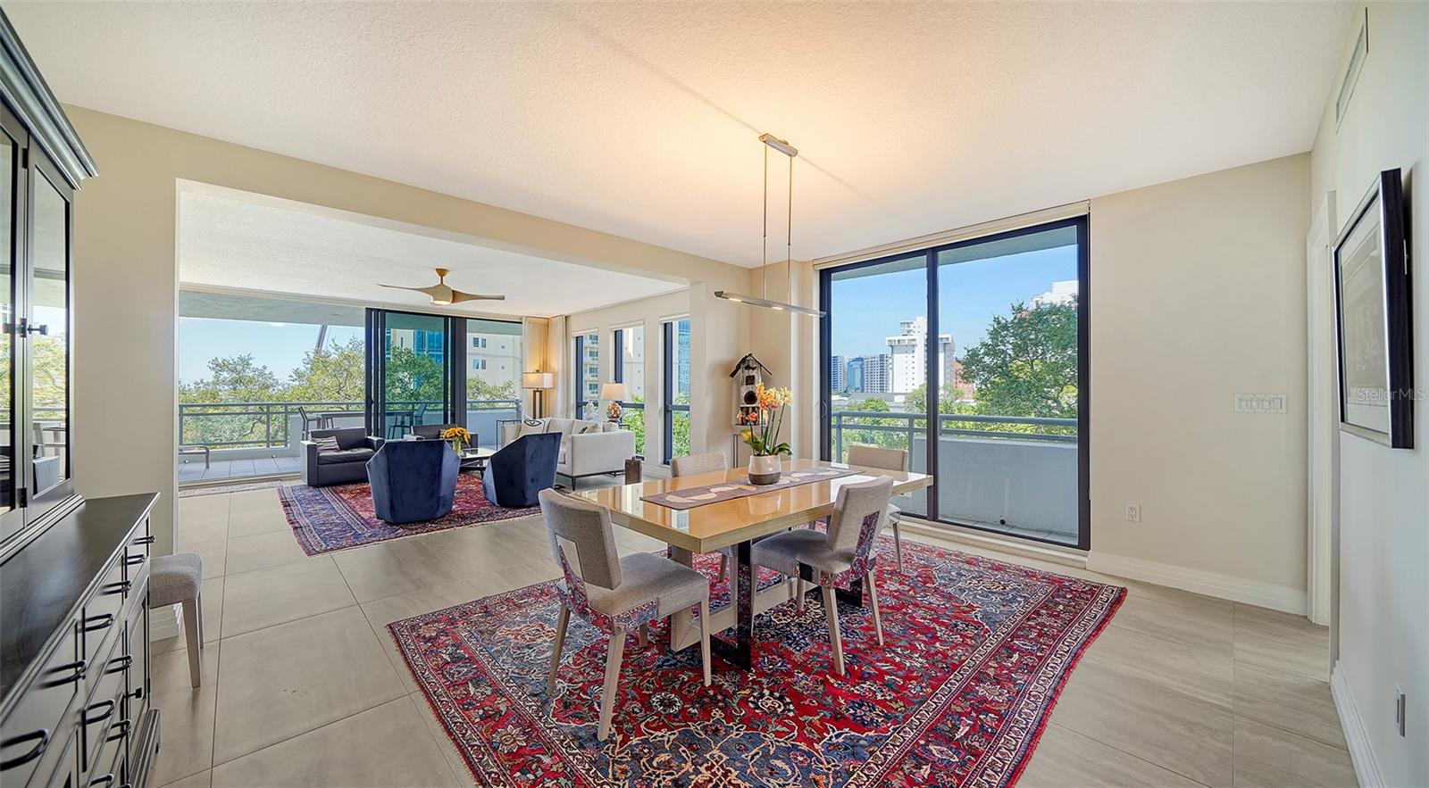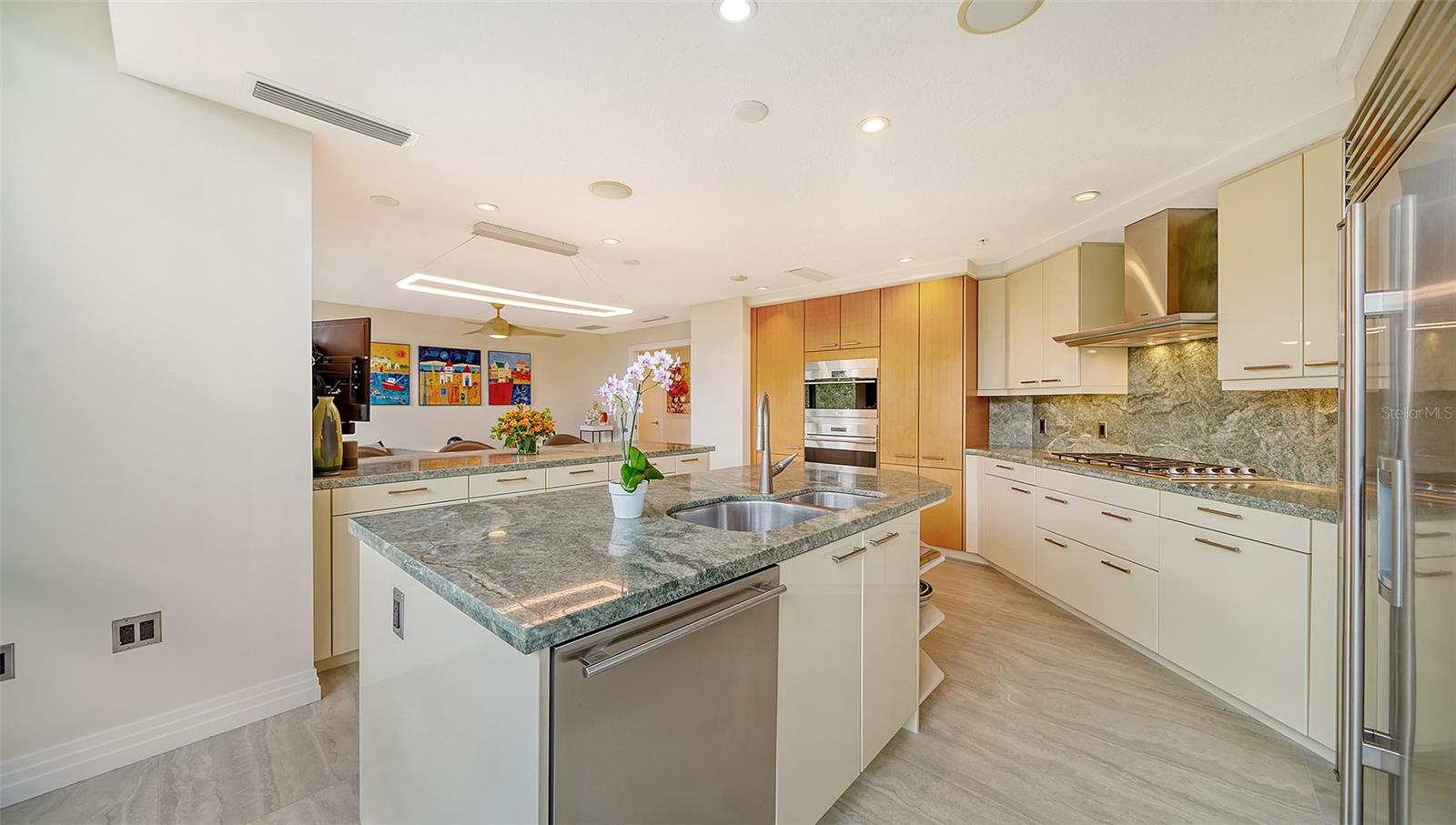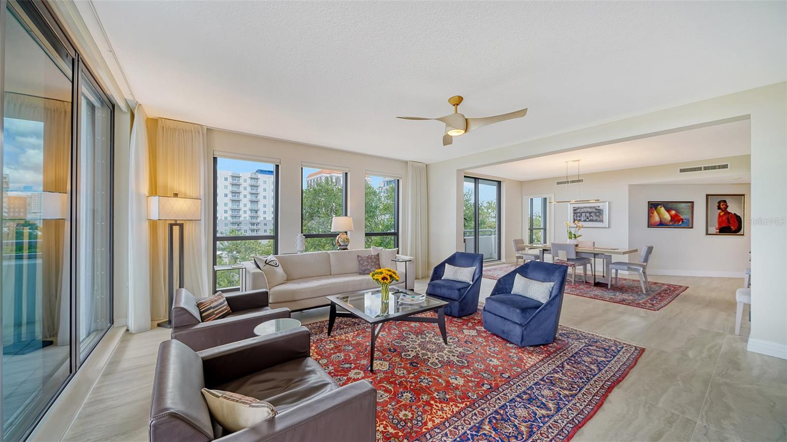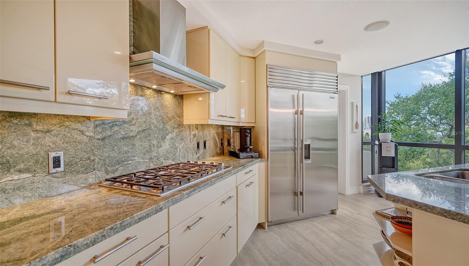 Enjoy gorgeous views of Sarasota Bay from this three-exposure end unit at the coveted Savoy on Palm, an intimate building with only twenty-four units. The historic downtown skyline is framed by old growth oaks through the many floor-to-ceiling windows. Relax with views of Laurel Park’s greenery from your balcony. Stroll South Palm Avenue’s tranquil tree-lined neighborhood on your way to restaurants, theatre, opera, shopping, and cinema. In less than two short blocks, you’ll watch the sunset, drink in hand, at the Bay Front Park and marina. Tall windows provide abundant light in 3,172 sq ft of understated elegance. Pass through sophisticated glass doors onto modern porcelain floors with granite and marble-topped cabinetry in kitchen and baths. Top-of-the-line appliances include Sub-Zero, Wolf, and Cove plus an on-trend steam/convection oven. Close the door on your private two-car garage steps from your personal storage room. A pet-friendly building with a fully fenced side yard, the Savoy’s owner amenities include concierge service, building manager, two-room guest suite, community social room with a catering kitchen, and a library for more intimate gatherings. Invite your personal trainer to the comprehensive fitness room then unwind from your workout in the private massage room. The exceptional outdoor living space includes a heated spa and pool with luxury seating, twin Wolf gas grills, outdoor kitchen, dining tables, and bar ready for you to enjoy social events with your friends, family, and fellow owners.