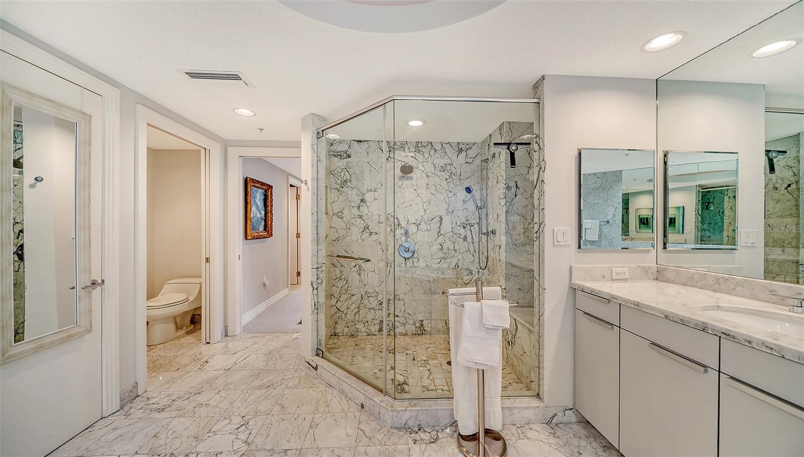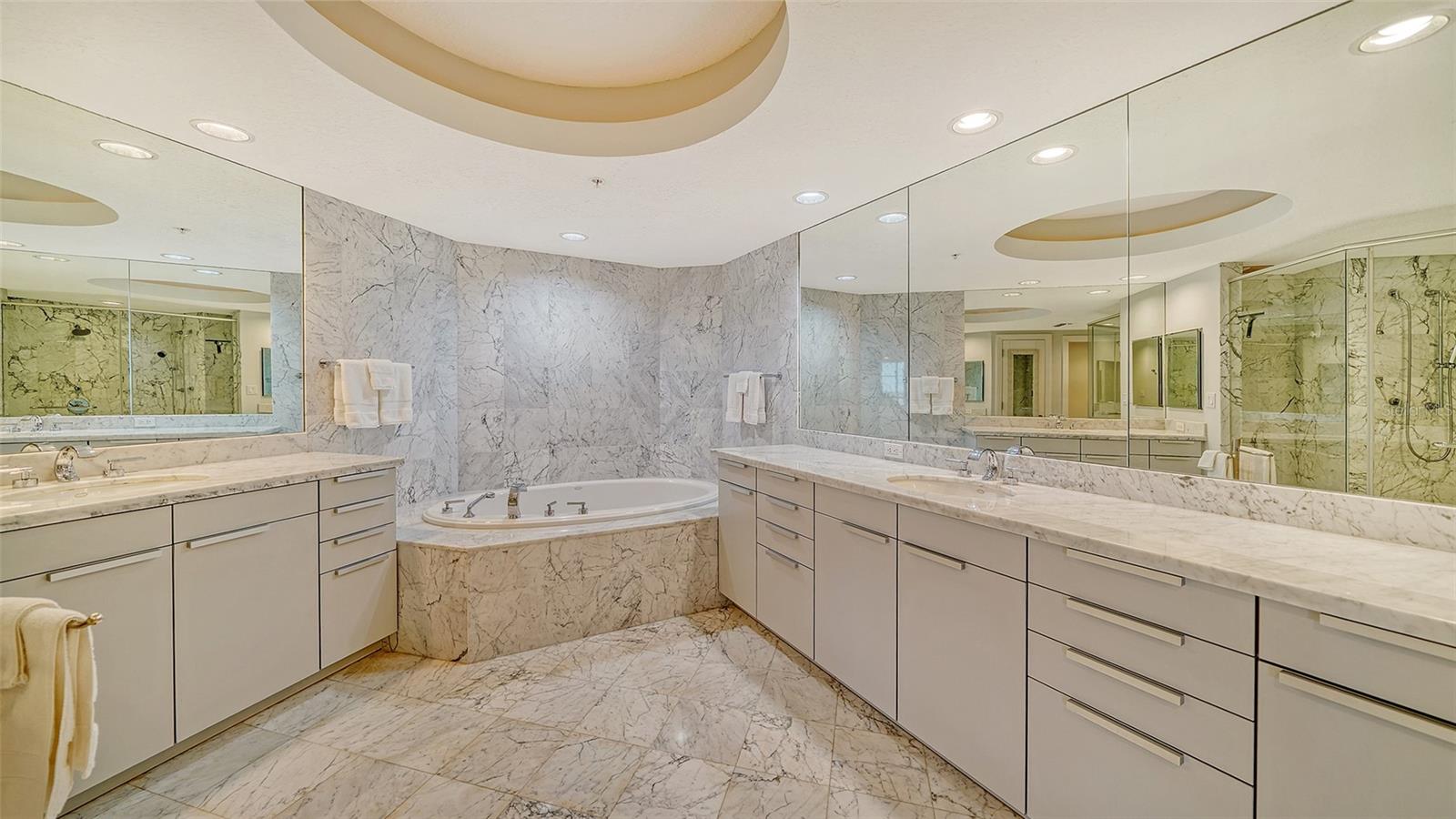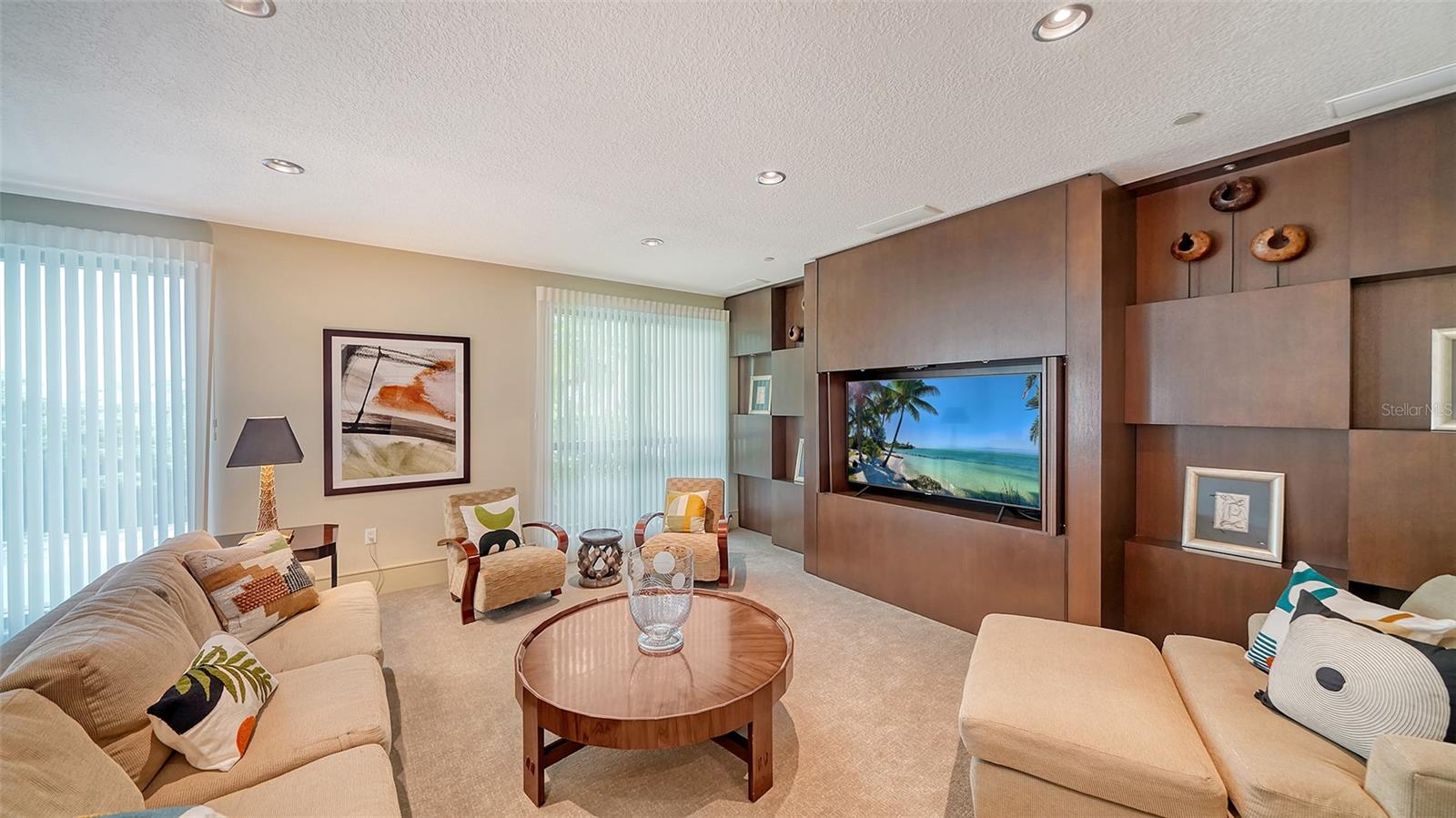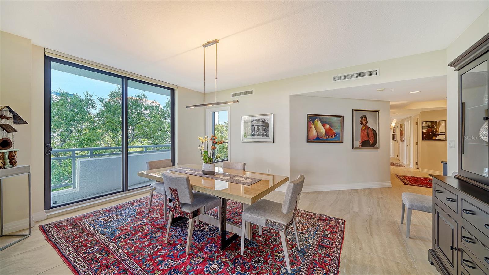 Enjoy gorgeous views of Sarasota Bay from this three-exposure end unit at the coveted Savoy on Palm, an intimate building with only twenty-four units. The historic downtown skyline is framed by old growth oaks through the many floor-to-ceiling windows. Relax with views of Laurel Park’s greenery from your balcony. Stroll South Palm Avenue’s tranquil tree-lined neighborhood on your way to restaurants, theatre, opera, shopping, and cinema. In less than two short blocks, you’ll watch the sunset, drink in hand, at the Bay Front Park and marina. Tall windows provide abundant light in 3,172 sq ft of understated elegance. Pass through sophisticated glass doors onto modern porcelain floors with granite and marble-topped cabinetry in kitchen and baths. Top-of-the-line appliances include Sub-Zero, Wolf, and Cove plus an on-trend steam/convection oven. Close the door on your private two-car garage steps from your personal storage room. A pet-friendly building with a fully fenced side yard, the Savoy’s owner amenities include concierge service, building manager, two-room guest suite, community social room with a catering kitchen, and a library for more intimate gatherings. Invite your personal trainer to the comprehensive fitness room then unwind from your workout in the private massage room. The exceptional outdoor living space includes a heated spa and pool with luxury seating, twin Wolf gas grills, outdoor kitchen, dining tables, and bar ready for you to enjoy social events with your friends, family, and fellow owners.