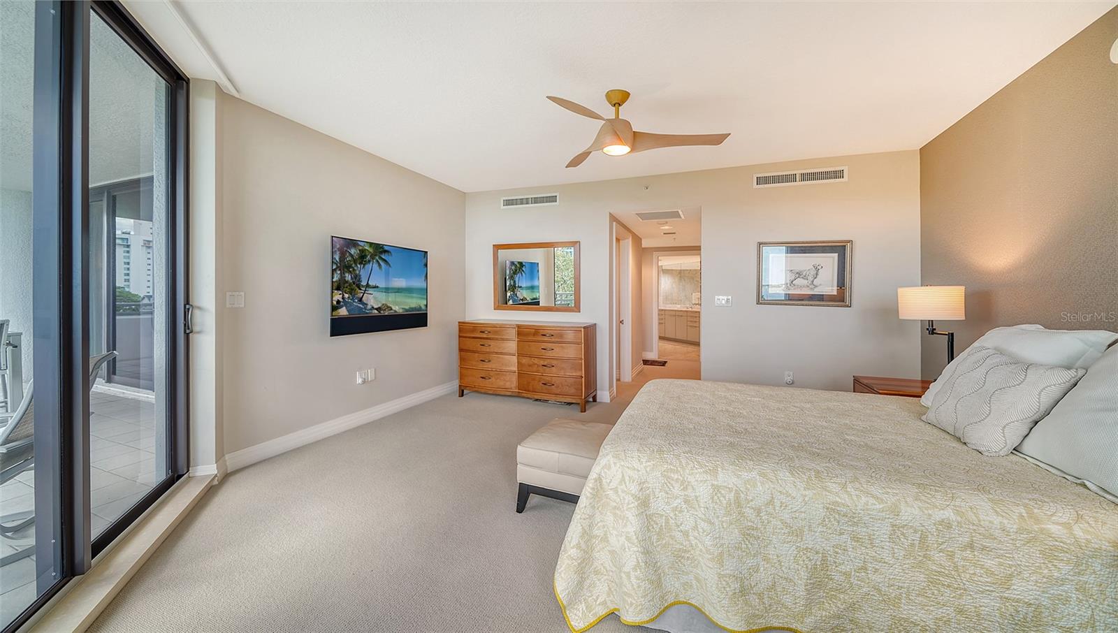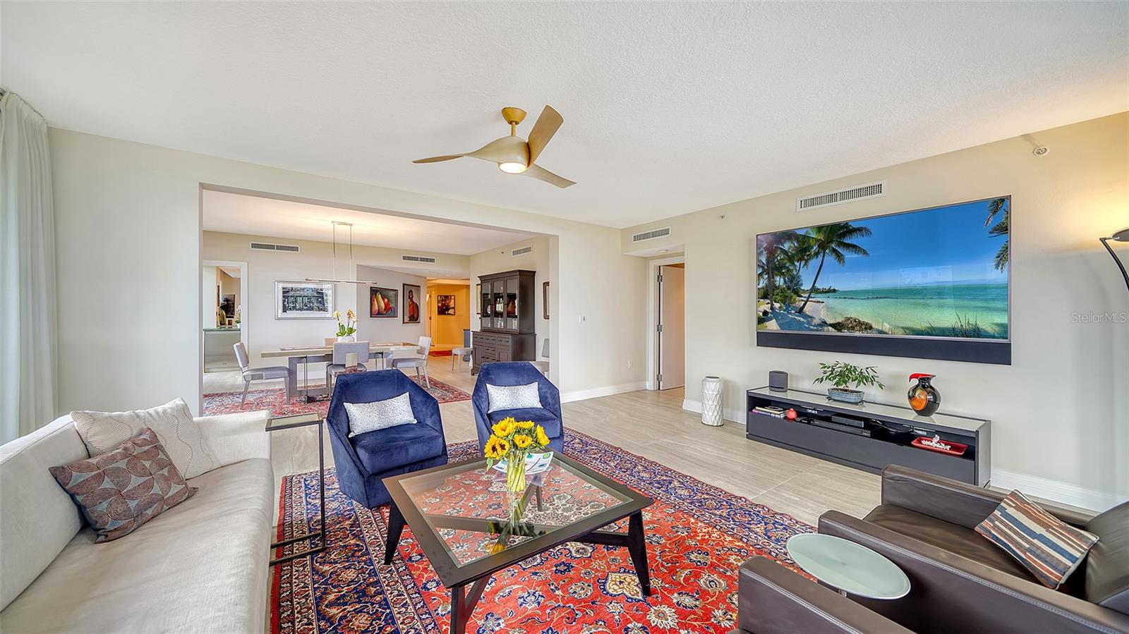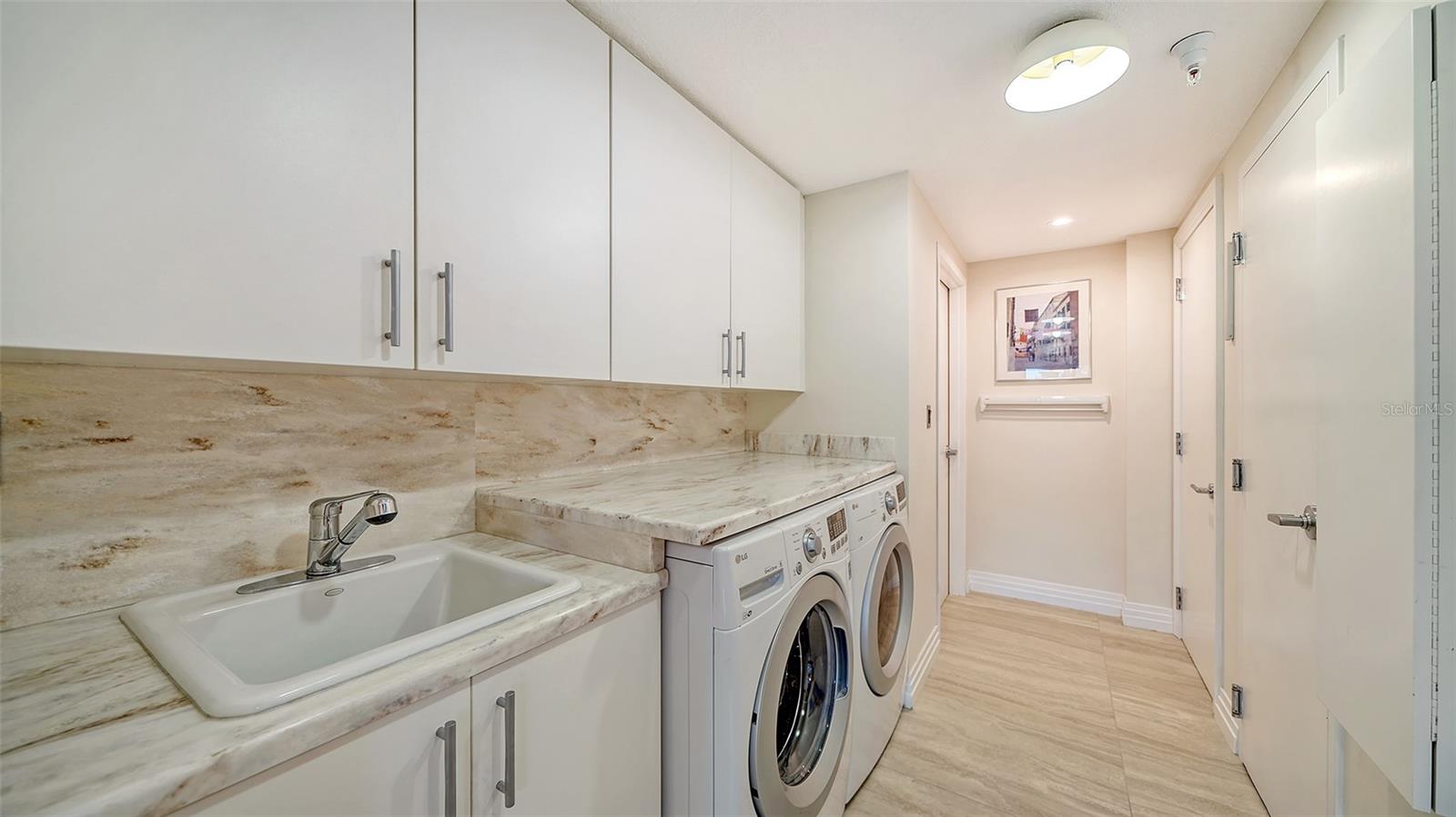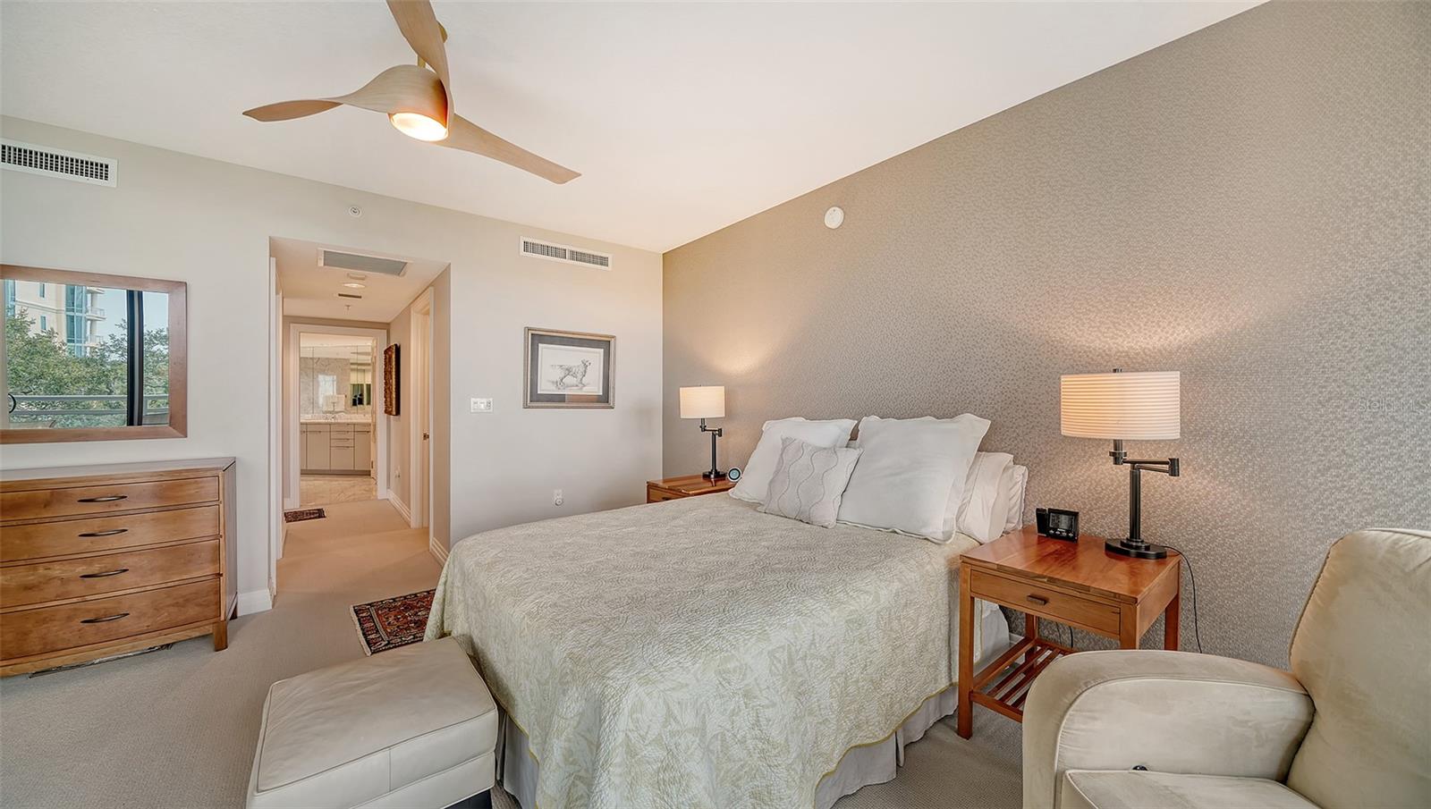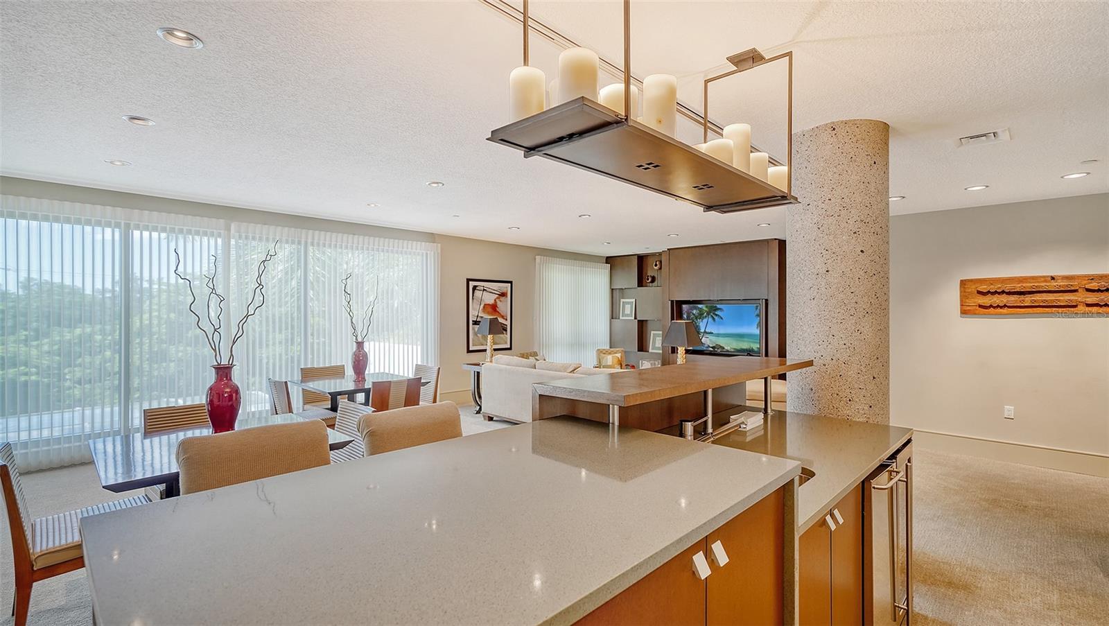 Enjoy gorgeous views of Sarasota Bay from this three-exposure end unit at the coveted Savoy on Palm, an intimate building with only twenty-four units. The historic downtown skyline is framed by old growth oaks through the many floor-to-ceiling windows. Relax with views of Laurel Park’s greenery from your balcony. Stroll South Palm Avenue’s tranquil tree-lined neighborhood on your way to restaurants, theatre, opera, shopping, and cinema. In less than two short blocks, you’ll watch the sunset, drink in hand, at the Bay Front Park and marina. Tall windows provide abundant light in 3,172 sq ft of understated elegance. Pass through sophisticated glass doors onto modern porcelain floors with granite and marble-topped cabinetry in kitchen and baths. Top-of-the-line appliances include Sub-Zero, Wolf, and Cove plus an on-trend steam/convection oven. Close the door on your private two-car garage steps from your personal storage room. A pet-friendly building with a fully fenced side yard, the Savoy’s owner amenities include concierge service, building manager, two-room guest suite, community social room with a catering kitchen, and a library for more intimate gatherings. Invite your personal trainer to the comprehensive fitness room then unwind from your workout in the private massage room. The exceptional outdoor living space includes a heated spa and pool with luxury seating, twin Wolf gas grills, outdoor kitchen, dining tables, and bar ready for you to enjoy social events with your friends, family, and fellow owners.