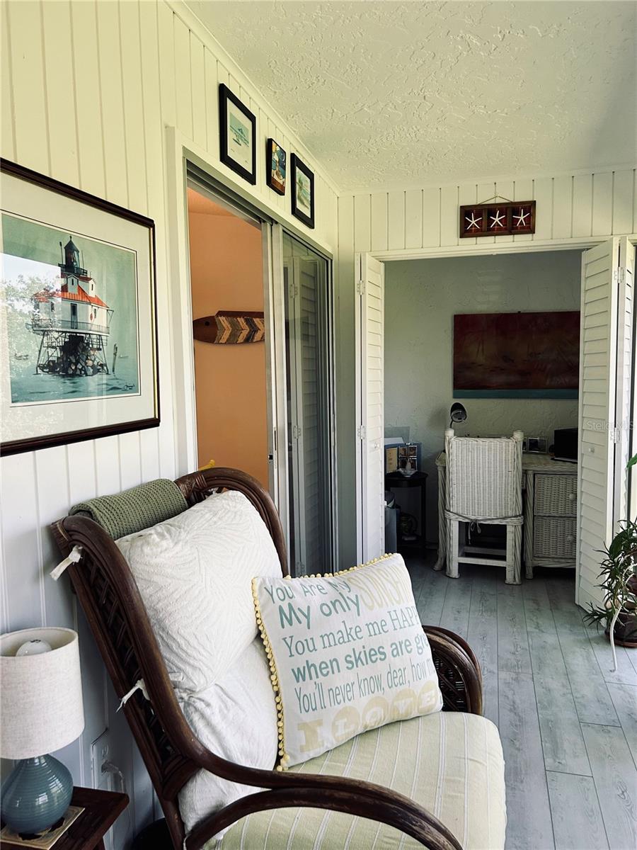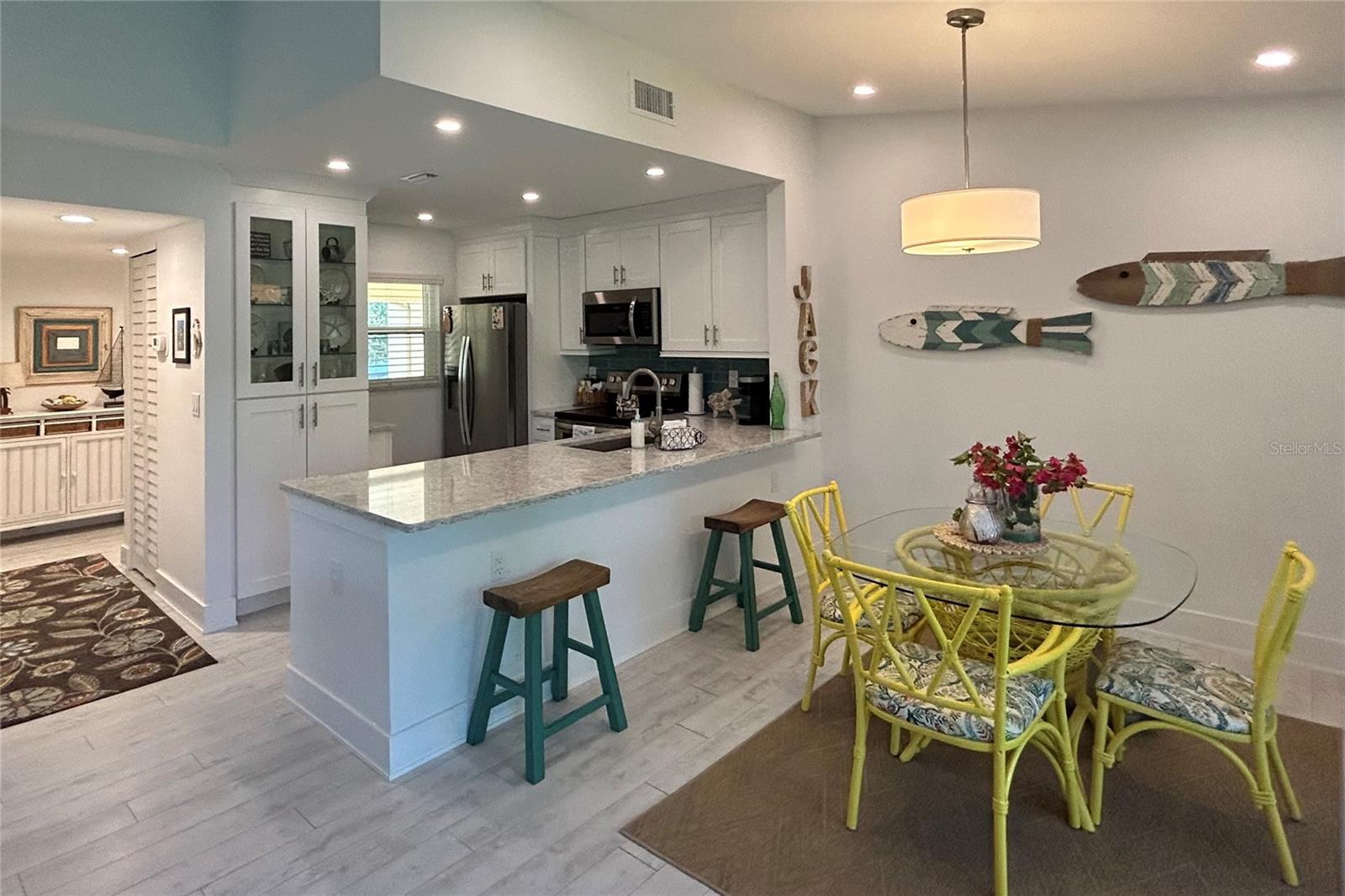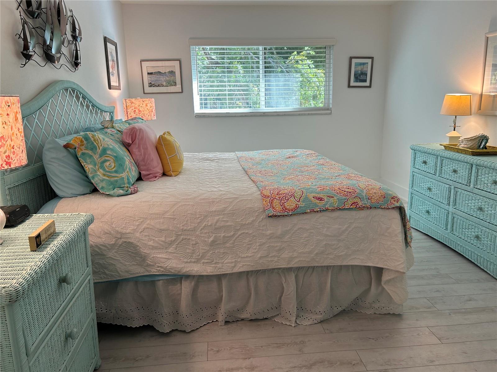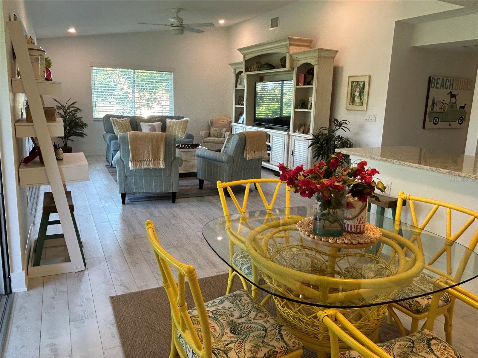 Just bring your toothbrush and move right in! Turnkey furnished! Live the Florida lifestyle from this wonderful unit in Forest Lakes Village, a popular, active, over55+ community. Open floor plan perfect for entertaining, or as a comfy retreat. Totally updated unit. Luxury vinyl wood-grain floors in every room. Designer touches with a beach-cottage look to enjoy the beach life without actually living on the beach. Everything new since 2020! Kitchen with custom solid-wood white cabinetry, designer quartz counters, stainless appliances, built-ins, and breakfast/entertainment bar. Large all-season lanai with peaceful, greenbelt views, A/C, hurricane windows and sliders, office space for your desk, and a Margaritaville-style tiki bar for your pleasure and your guests. Spacious great room with vaulted ceiling. New washer/dryer, new hurricane windows, new hurricane front door with sidelight. Ceiling fans and recessed lighting throughout. New electric panel and adjustable dimmer switches. Primary bedroom with updated ensuite bath, walk-in shower,, and walk-in closet with stairs to standable attic storage area. 1 carport, plus one unassigned parking space. Landscaped grounds with new outdoor gas grills (propane provided), shuffleboard courts, plenty of shade. Gorgeous, geothermal heated pool was recently resurfaced and added new paver pool deck. Recently remodeled clubhouse has two large community social rooms, fitness room, sauna, full kitchen, library, etc. Desirable central Sarasota location with easy access to downtown, beaches, museums, markets, public transportation, 1-75, and places beyond. Approximately five miles inland from Siesta Key Beach, condo is not in a flood zone, and is far from Gulf water surges. Walk to restaurants, shops, bakeries, grocery, pizzerias, salons, and even a pet store and clinic. Golf course around corner. Popular Legacy Bike/Walking Trail close by to link Sarasota and Venice. Great place to live and enjoy beautiful Sarasota and its beaches!