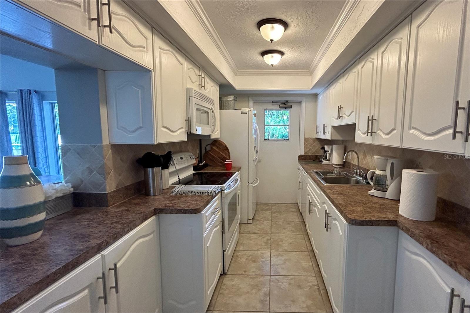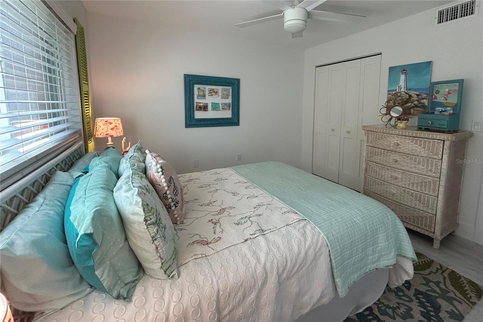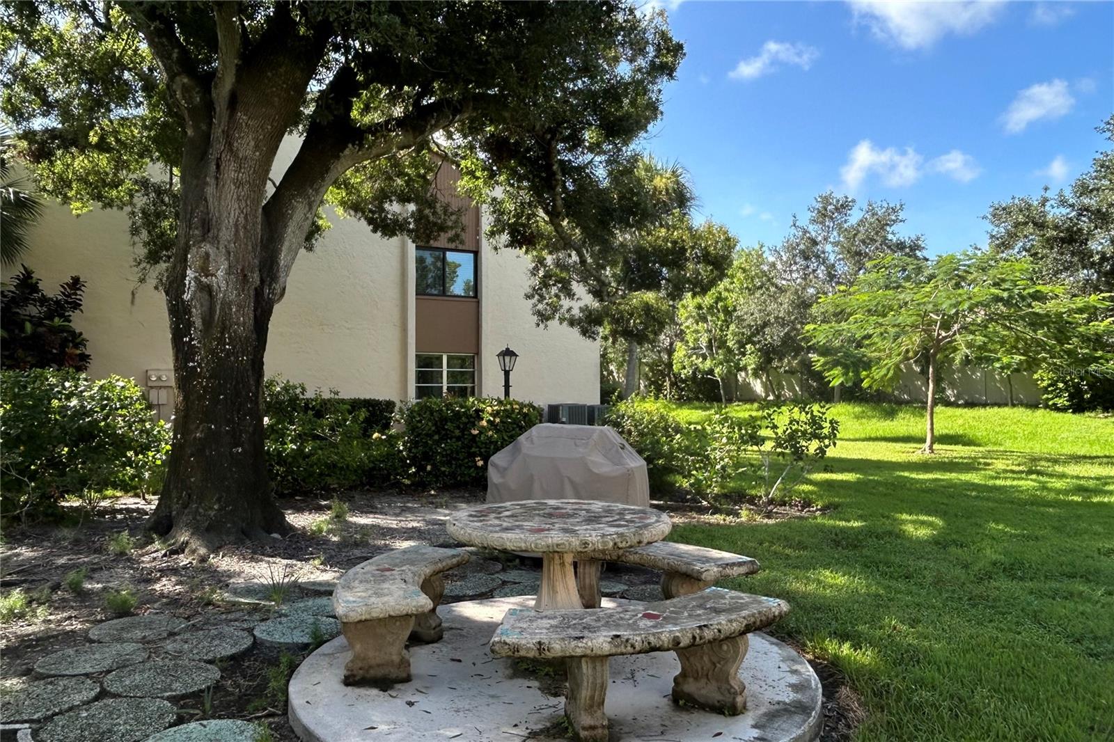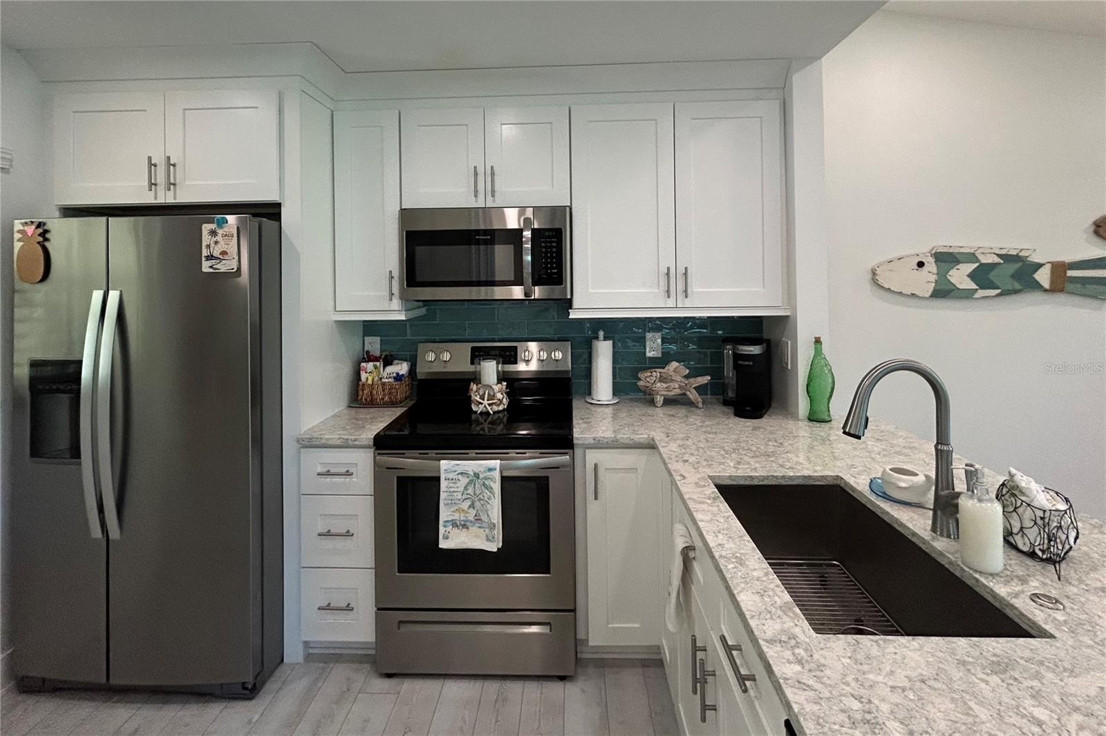 Just bring your toothbrush and move right in! Turnkey furnished! Live the Florida lifestyle from this wonderful unit in Forest Lakes Village, a popular, active, over55+ community. Open floor plan perfect for entertaining, or as a comfy retreat. Totally updated unit. Luxury vinyl wood-grain floors in every room. Designer touches with a beach-cottage look to enjoy the beach life without actually living on the beach. Everything new since 2020! Kitchen with custom solid-wood white cabinetry, designer quartz counters, stainless appliances, built-ins, and breakfast/entertainment bar. Large all-season lanai with peaceful, greenbelt views, A/C, hurricane windows and sliders, office space for your desk, and a Margaritaville-style tiki bar for your pleasure and your guests. Spacious great room with vaulted ceiling. New washer/dryer, new hurricane windows, new hurricane front door with sidelight. Ceiling fans and recessed lighting throughout. New electric panel and adjustable dimmer switches. Primary bedroom with updated ensuite bath, walk-in shower,, and walk-in closet with stairs to standable attic storage area. 1 carport, plus one unassigned parking space. Landscaped grounds with new outdoor gas grills (propane provided), shuffleboard courts, plenty of shade. Gorgeous, geothermal heated pool was recently resurfaced and added new paver pool deck. Recently remodeled clubhouse has two large community social rooms, fitness room, sauna, full kitchen, library, etc. Desirable central Sarasota location with easy access to downtown, beaches, museums, markets, public transportation, 1-75, and places beyond. Approximately five miles inland from Siesta Key Beach, condo is not in a flood zone, and is far from Gulf water surges. Walk to restaurants, shops, bakeries, grocery, pizzerias, salons, and even a pet store and clinic. Golf course around corner. Popular Legacy Bike/Walking Trail close by to link Sarasota and Venice. Great place to live and enjoy beautiful Sarasota and its beaches!
