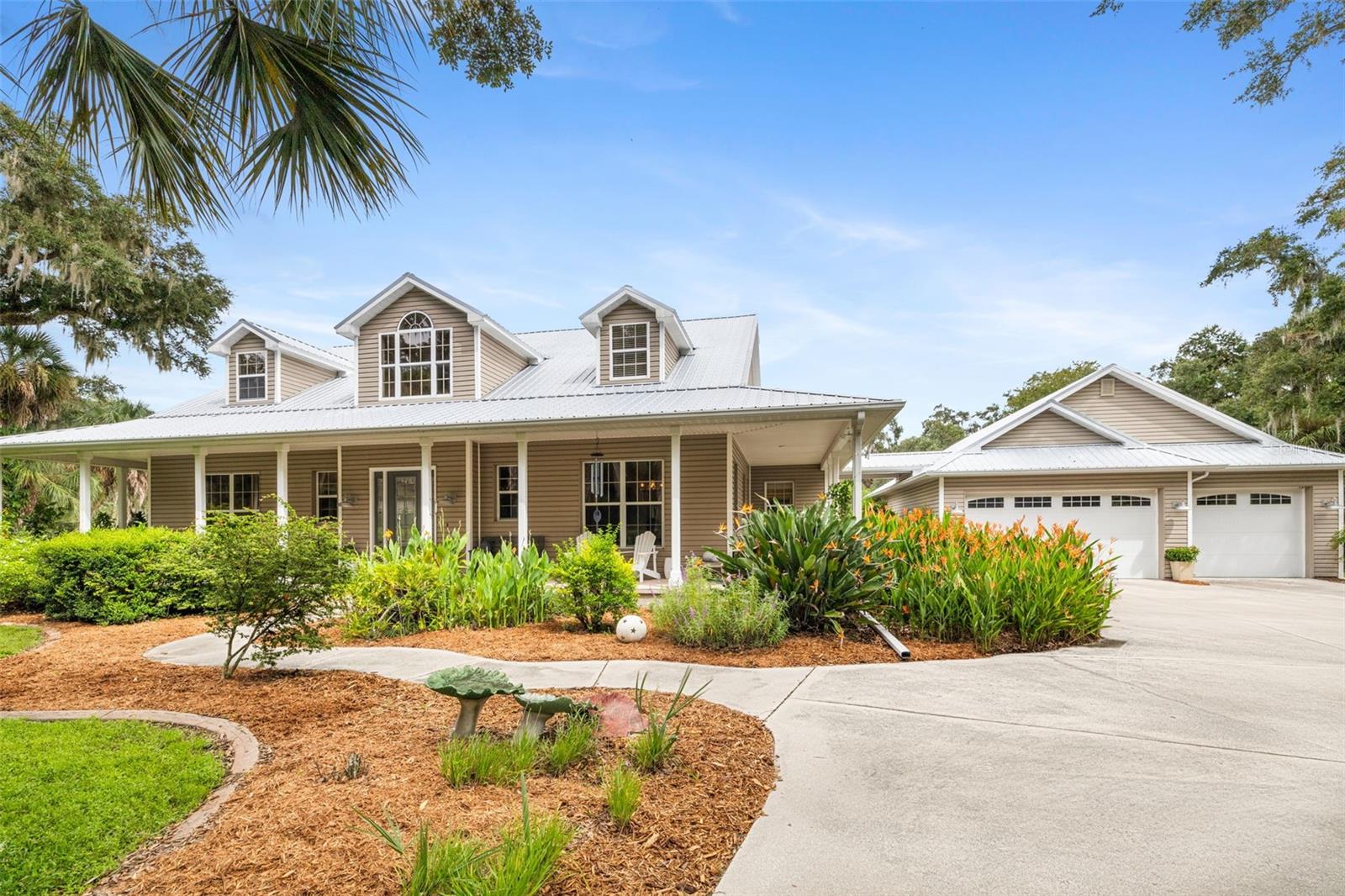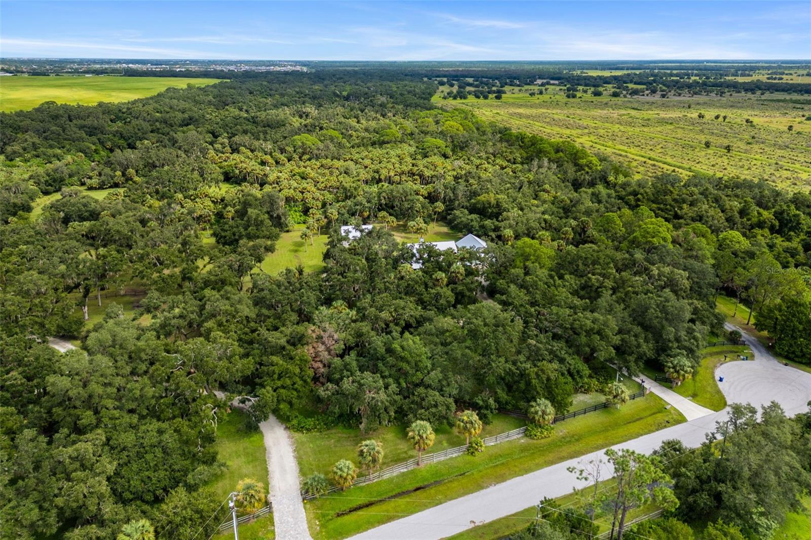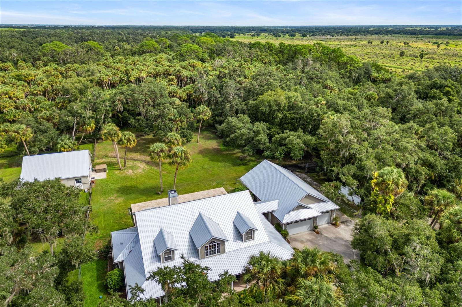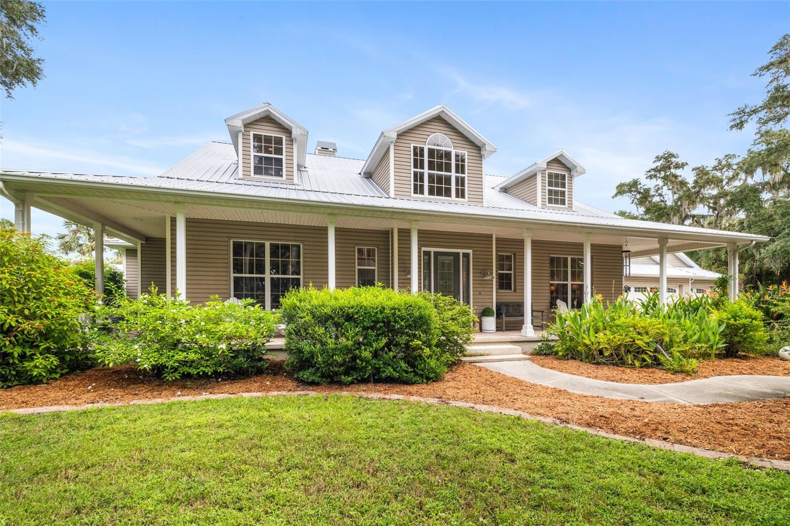 Welcome to 7091 Saddle Creek Lane — a breathtaking 7-acre estate tucked away in the stately, gated equestrian community of Saddle Creek in Sarasota, FL. This private, park-like retreat blends rustic elegance with refined modern updates, offering a true sanctuary for nature lovers, equestrian enthusiasts, and those seeking peaceful luxury. From the moment you enter the private gate and follow the oak-canopied driveway, you’re immersed in a natural hammock of live oaks, native cabbage palms, saw palmettos, bromeliads, orchids, and ferns — creating a setting that feels like a serene cross between Selby Gardens and Myakka State Park. It’s the perfect environment to coexist with nature, offering open grazing pastures with lush grass for livestock, or simply a front-row seat to Florida’s native wildlife, including deer, wild turkey, red-tailed hawks, barred owls, herons, hummingbirds, butterflies, and honey bees. This thoughtfully designed 3-bedroom, 3-bathroom home spans 3,041 sq. ft. of warm, inviting living space. Inside, enjoy vaulted ceilings, a stacked stone fireplace, new quartzite countertops in the kitchen, guest bath, and laundry room, and newer hardwood floors in the guest bedrooms, loft, and master suite. Step outside to your own private resort: • A custom 40-foot saltwater lap pool in PebbleTec Midnight Blue • An oversized raised spa with tranquil spillover, finished in custom glass tile • 24x24 natural stone travertine pavers surrounding the pool deck • A brand-new, clear view screen enclosure for unobstructed outdoor enjoyment • OmniLogic and ColorLogic automation, along with pool heater and chiller for year-round comfort Beyond the main residence, a climate-controlled multi-use structure offers a full kitchen, bathroom, and hurricane-rated modern glass garage doors, perfect as a guest house, barn, art studio, or collector’s garage. All structures feature durable metal roofs, and several newer AC units ensure year-round efficiency. The expansive 5-car garage includes RV and EV hookups, air-conditioned workspace, and additional outdoor parking. The estate also features a whole-home backup generator, ensuring you're always prepared. Surrounded by total privacy on three sides, and located on a quiet cul-de-sac, the property directly backs up to 30 miles of private horse trails. With four gated pastures, there’s room for your horses—or build a chicken coop, start a vegetable or herb garden, or even add another structure to suit your vision. Located within an A-rated school district, this estate is more than a home — it’s a lifestyle. Experience the perfect blend of luxury, tranquility, and nature, all just minutes from Sarasota’s vibrant city life.