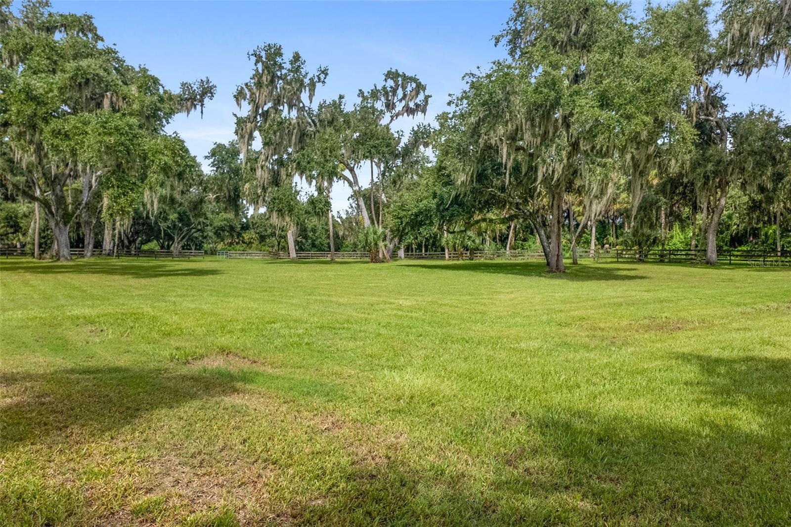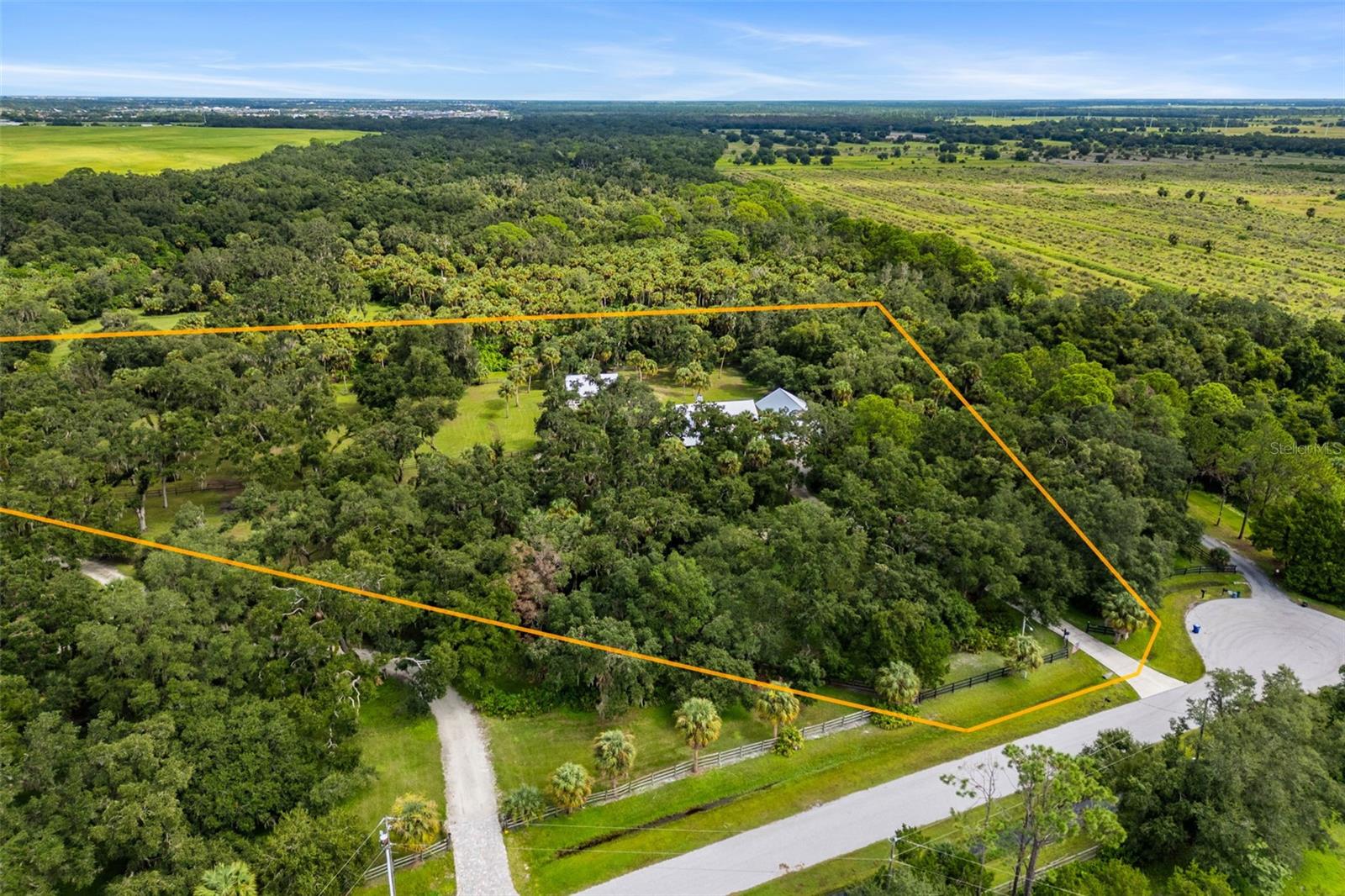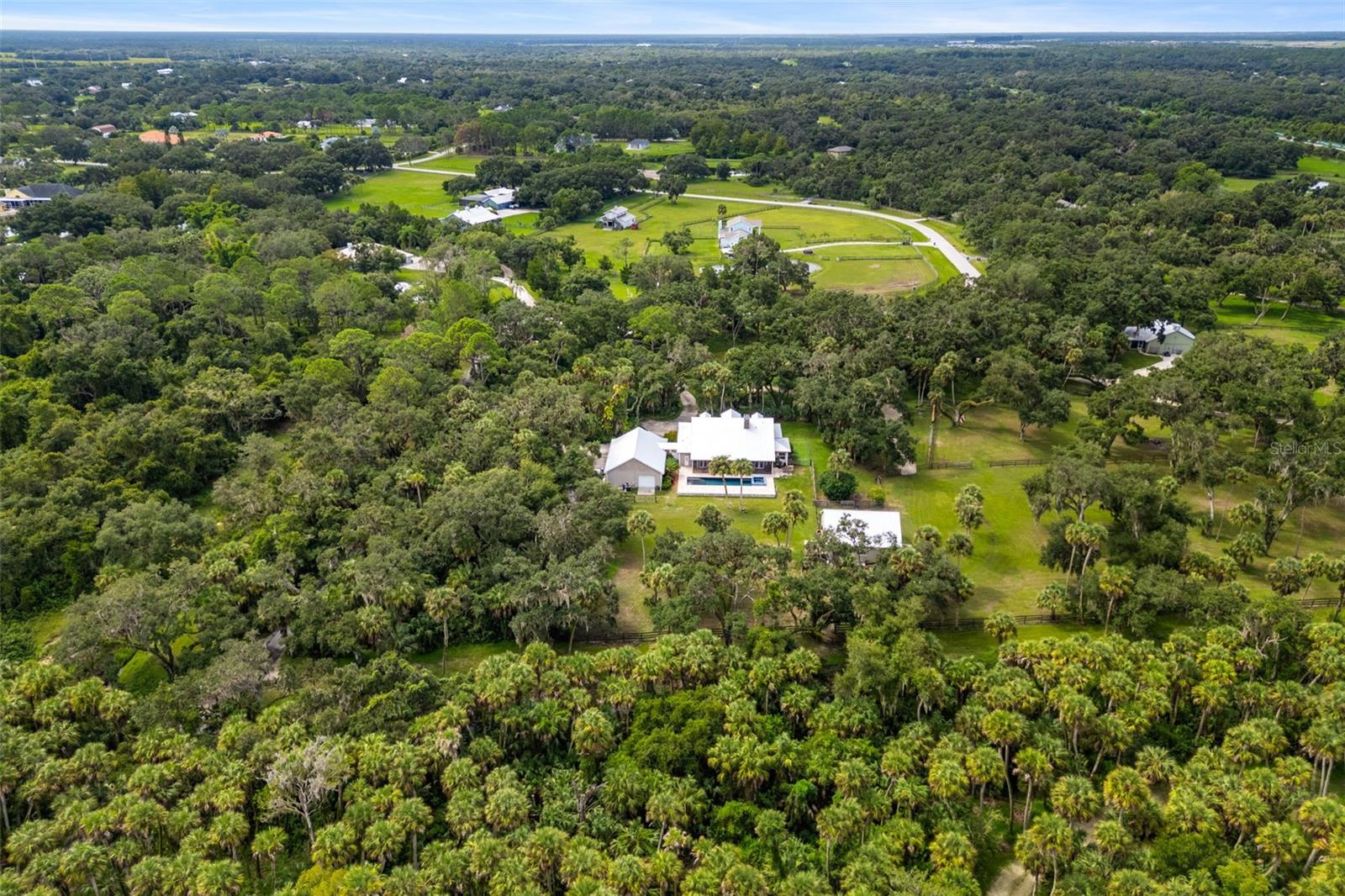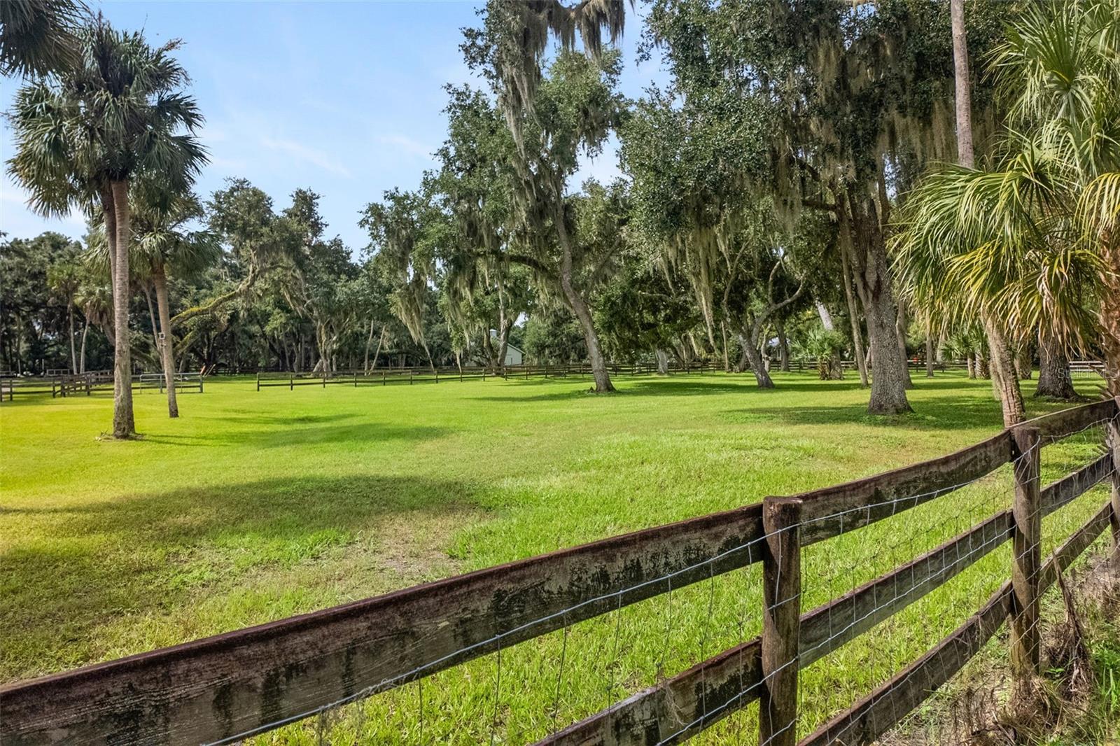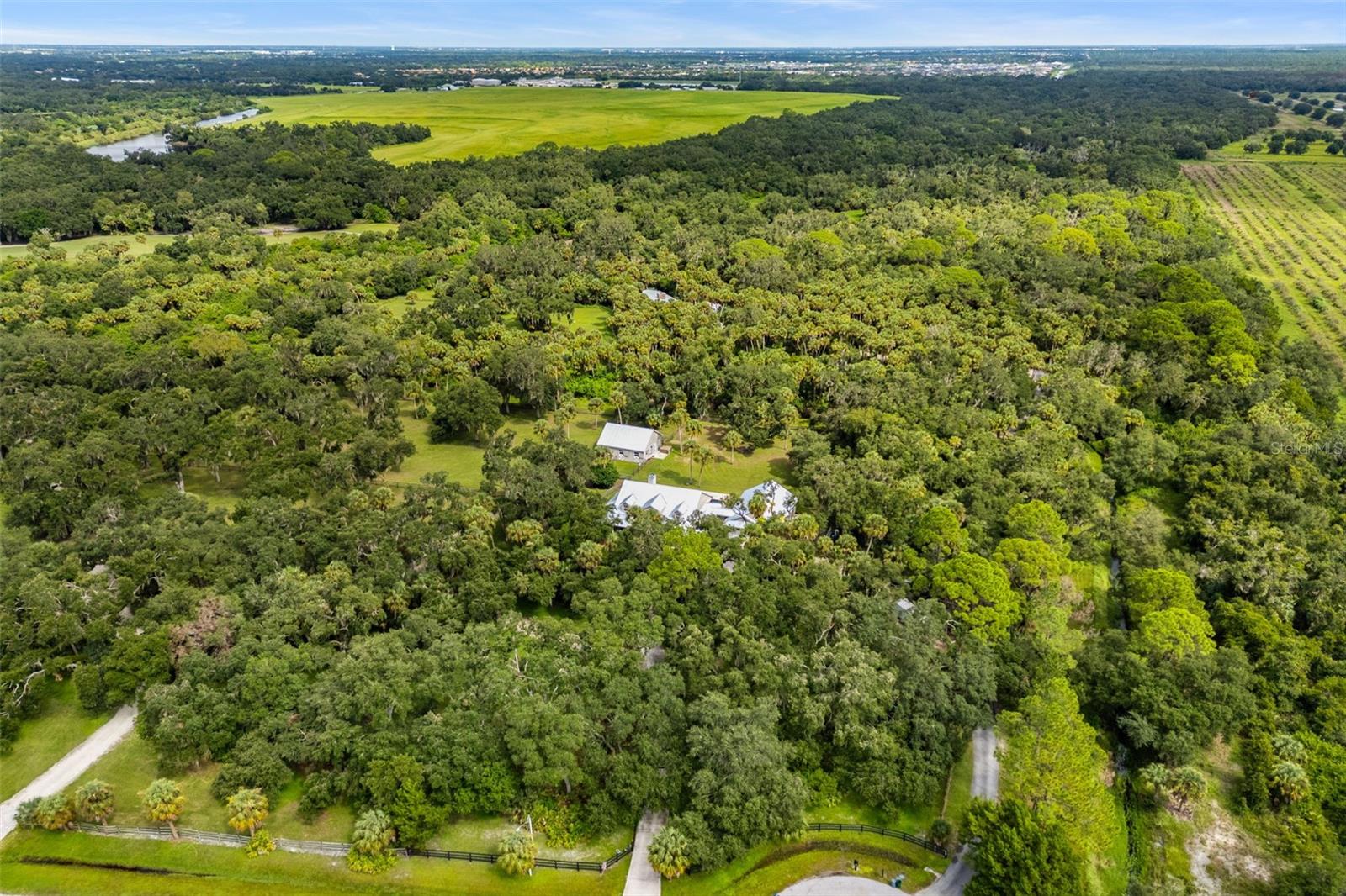 Welcome to 7091 Saddle Creek Lane — a breathtaking 7-acre estate tucked away in the stately, gated equestrian community of Saddle Creek in Sarasota, FL. This private, park-like retreat blends rustic elegance with refined modern updates, offering a true sanctuary for nature lovers, equestrian enthusiasts, and those seeking peaceful luxury. From the moment you enter the private gate and follow the oak-canopied driveway, you’re immersed in a natural hammock of live oaks, native cabbage palms, saw palmettos, bromeliads, orchids, and ferns — creating a setting that feels like a serene cross between Selby Gardens and Myakka State Park. It’s the perfect environment to coexist with nature, offering open grazing pastures with lush grass for livestock, or simply a front-row seat to Florida’s native wildlife, including deer, wild turkey, red-tailed hawks, barred owls, herons, hummingbirds, butterflies, and honey bees. This thoughtfully designed 3-bedroom, 3-bathroom home spans 3,041 sq. ft. of warm, inviting living space. Inside, enjoy vaulted ceilings, a stacked stone fireplace, new quartzite countertops in the kitchen, guest bath, and laundry room, and newer hardwood floors in the guest bedrooms, loft, and master suite. Step outside to your own private resort: • A custom 40-foot saltwater lap pool in PebbleTec Midnight Blue • An oversized raised spa with tranquil spillover, finished in custom glass tile • 24x24 natural stone travertine pavers surrounding the pool deck • A brand-new, clear view screen enclosure for unobstructed outdoor enjoyment • OmniLogic and ColorLogic automation, along with pool heater and chiller for year-round comfort Beyond the main residence, a climate-controlled multi-use structure offers a full kitchen, bathroom, and hurricane-rated modern glass garage doors, perfect as a guest house, barn, art studio, or collector’s garage. All structures feature durable metal roofs, and several newer AC units ensure year-round efficiency. The expansive 5-car garage includes RV and EV hookups, air-conditioned workspace, and additional outdoor parking. The estate also features a whole-home backup generator, ensuring you're always prepared. Surrounded by total privacy on three sides, and located on a quiet cul-de-sac, the property directly backs up to 30 miles of private horse trails. With four gated pastures, there’s room for your horses—or build a chicken coop, start a vegetable or herb garden, or even add another structure to suit your vision. Located within an A-rated school district, this estate is more than a home — it’s a lifestyle. Experience the perfect blend of luxury, tranquility, and nature, all just minutes from Sarasota’s vibrant city life.