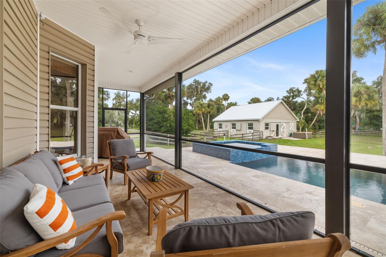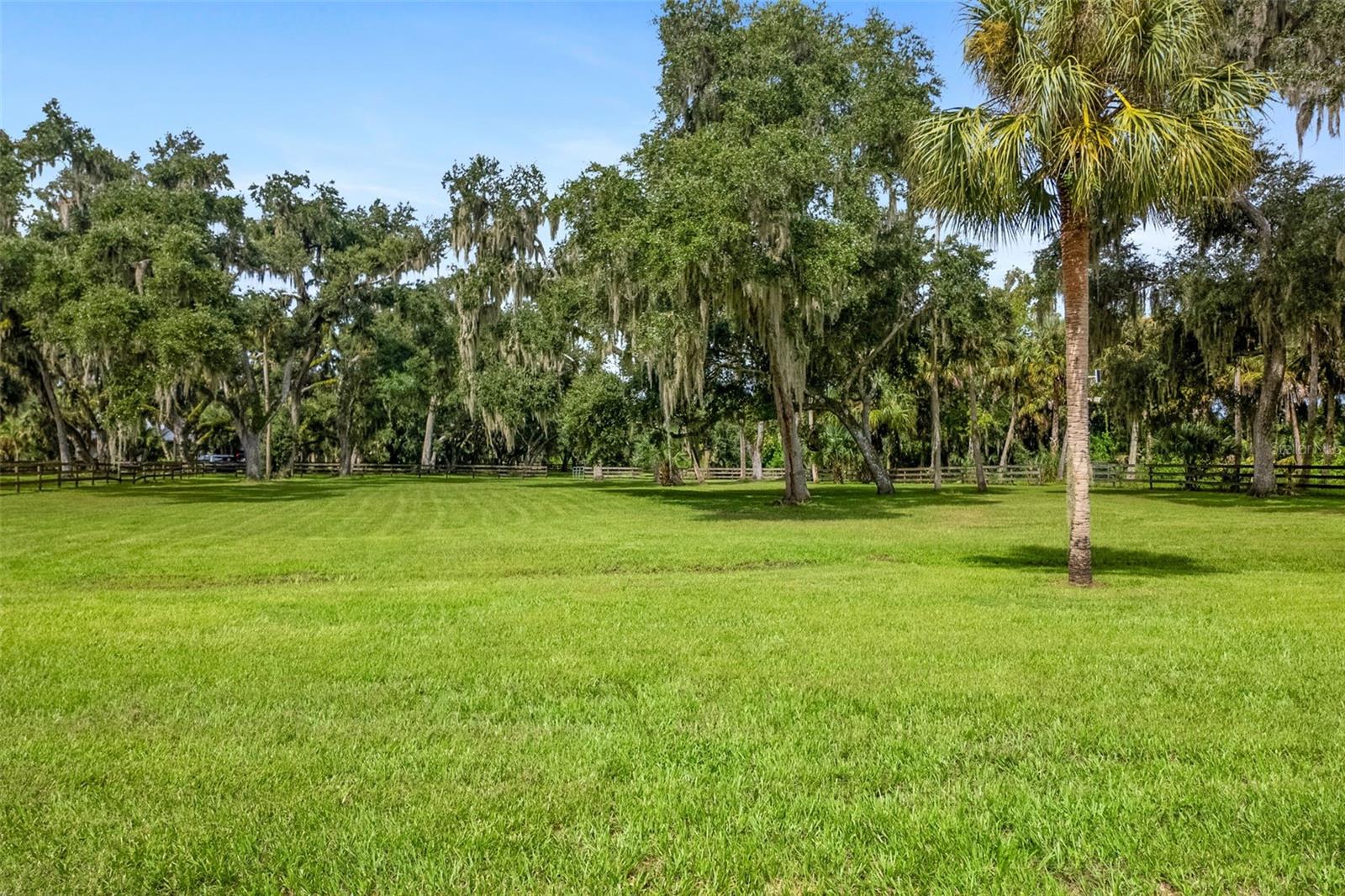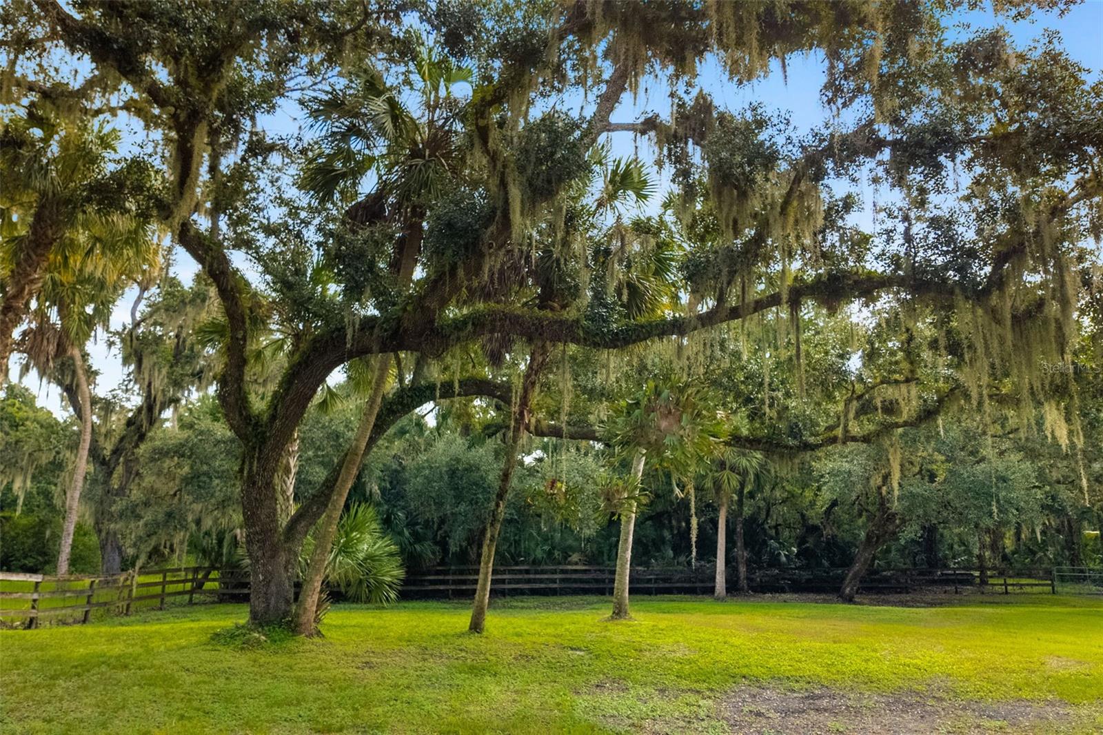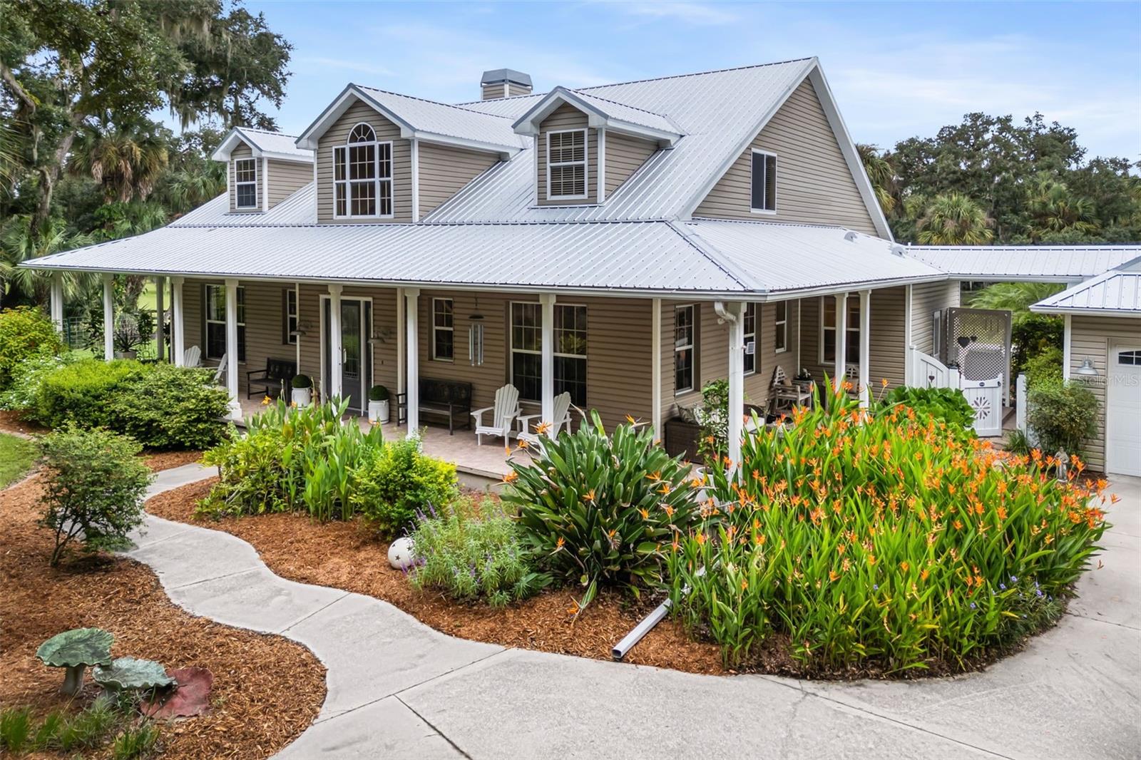 Welcome to 7091 Saddle Creek Lane — a breathtaking 7-acre estate tucked away in the stately, gated equestrian community of Saddle Creek in Sarasota, FL. This private, park-like retreat blends rustic elegance with refined modern updates, offering a true sanctuary for nature lovers, equestrian enthusiasts, and those seeking peaceful luxury. From the moment you enter the private gate and follow the oak-canopied driveway, you’re immersed in a natural hammock of live oaks, native cabbage palms, saw palmettos, bromeliads, orchids, and ferns — creating a setting that feels like a serene cross between Selby Gardens and Myakka State Park. It’s the perfect environment to coexist with nature, offering open grazing pastures with lush grass for livestock, or simply a front-row seat to Florida’s native wildlife, including deer, wild turkey, red-tailed hawks, barred owls, herons, hummingbirds, butterflies, and honey bees. This thoughtfully designed 3-bedroom, 3-bathroom home spans 3,041 sq. ft. of warm, inviting living space. Inside, enjoy vaulted ceilings, a stacked stone fireplace, new quartzite countertops in the kitchen, guest bath, and laundry room, and newer hardwood floors in the guest bedrooms, loft, and master suite. Step outside to your own private resort: • A custom 40-foot saltwater lap pool in PebbleTec Midnight Blue • An oversized raised spa with tranquil spillover, finished in custom glass tile • 24x24 natural stone travertine pavers surrounding the pool deck • A brand-new, clear view screen enclosure for unobstructed outdoor enjoyment • OmniLogic and ColorLogic automation, along with pool heater and chiller for year-round comfort Beyond the main residence, a climate-controlled multi-use structure offers a full kitchen, bathroom, and hurricane-rated modern glass garage doors, perfect as a guest house, barn, art studio, or collector’s garage. All structures feature durable metal roofs, and several newer AC units ensure year-round efficiency. The expansive 5-car garage includes RV and EV hookups, air-conditioned workspace, and additional outdoor parking. The estate also features a whole-home backup generator, ensuring you're always prepared. Surrounded by total privacy on three sides, and located on a quiet cul-de-sac, the property directly backs up to 30 miles of private horse trails. With four gated pastures, there’s room for your horses—or build a chicken coop, start a vegetable or herb garden, or even add another structure to suit your vision. Located within an A-rated school district, this estate is more than a home — it’s a lifestyle. Experience the perfect blend of luxury, tranquility, and nature, all just minutes from Sarasota’s vibrant city life.