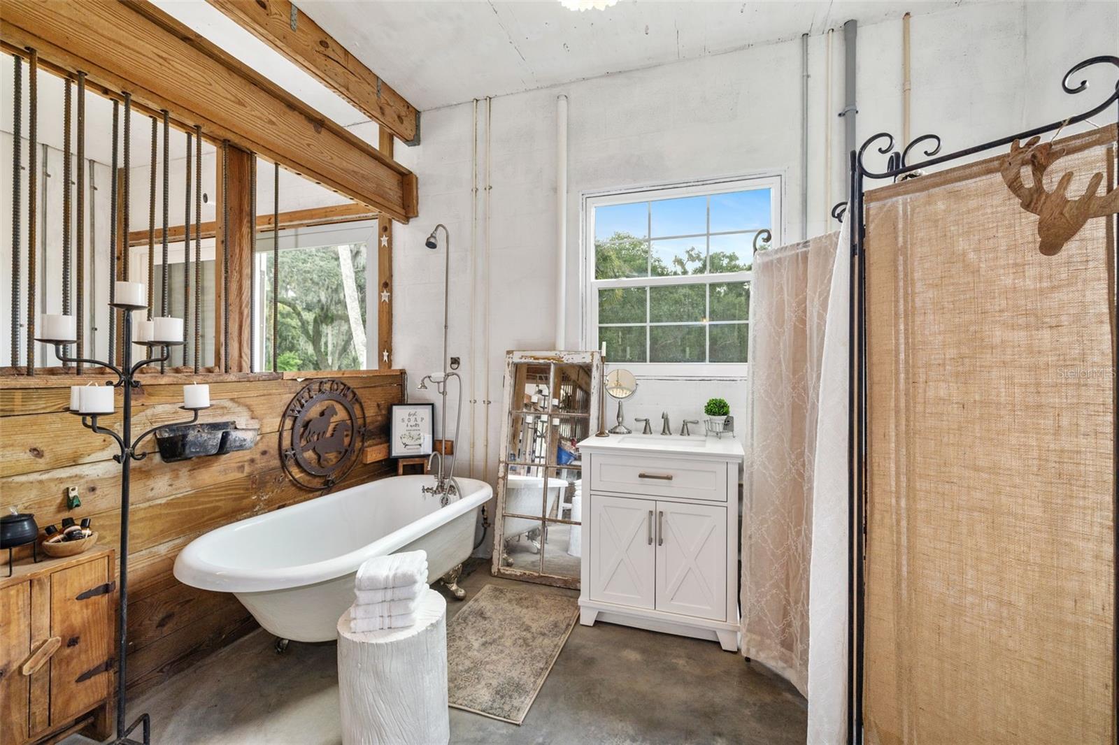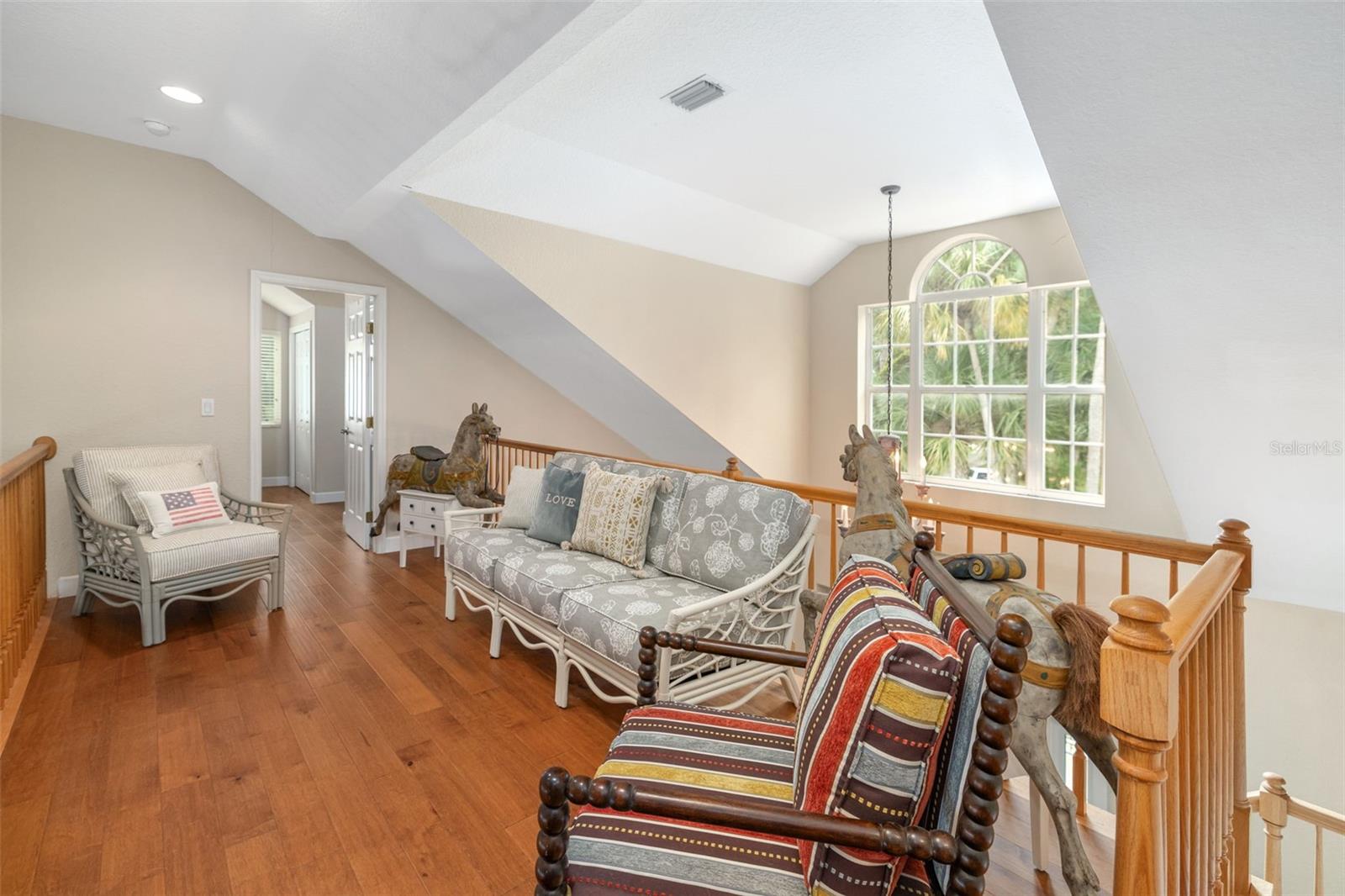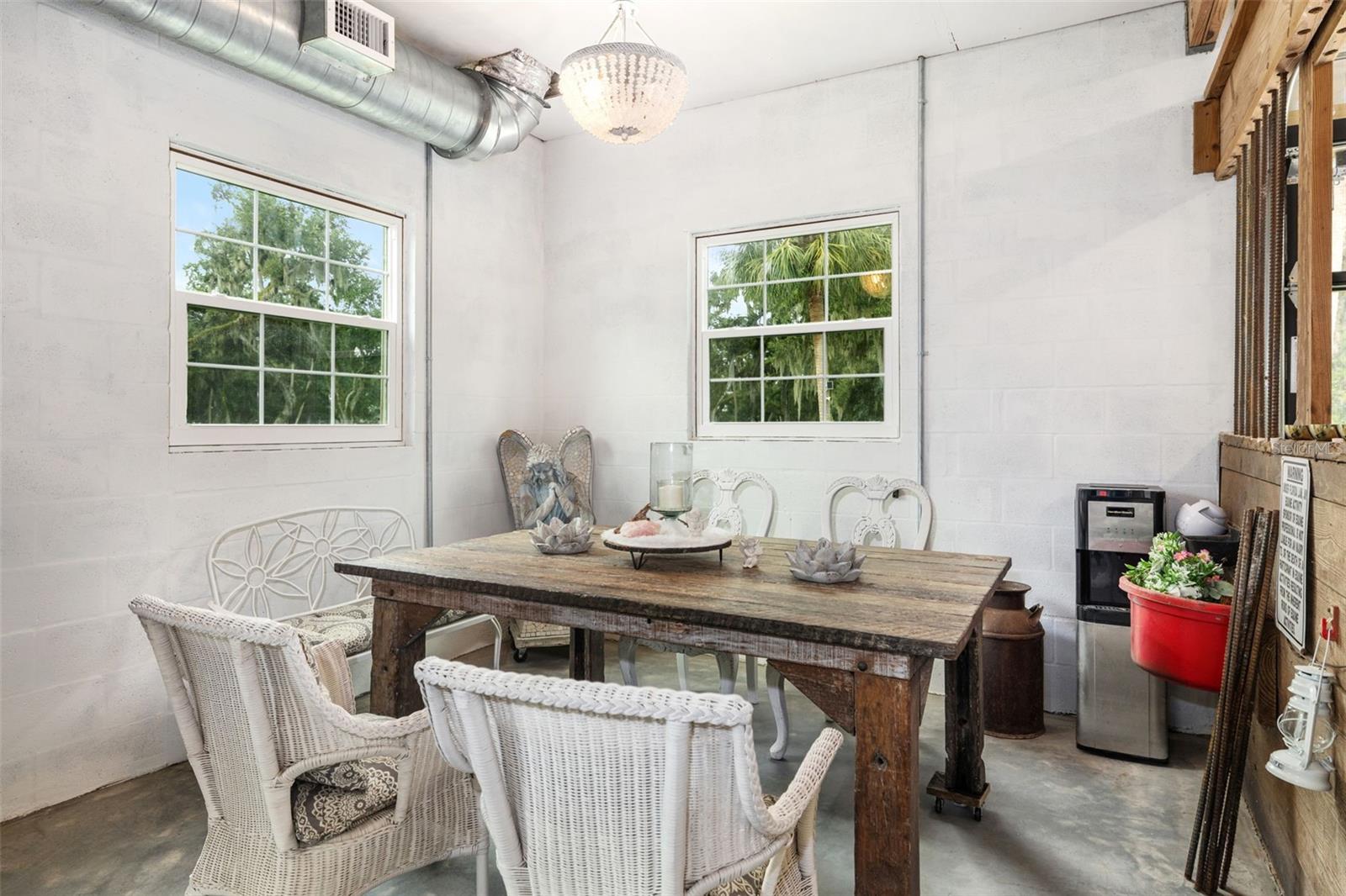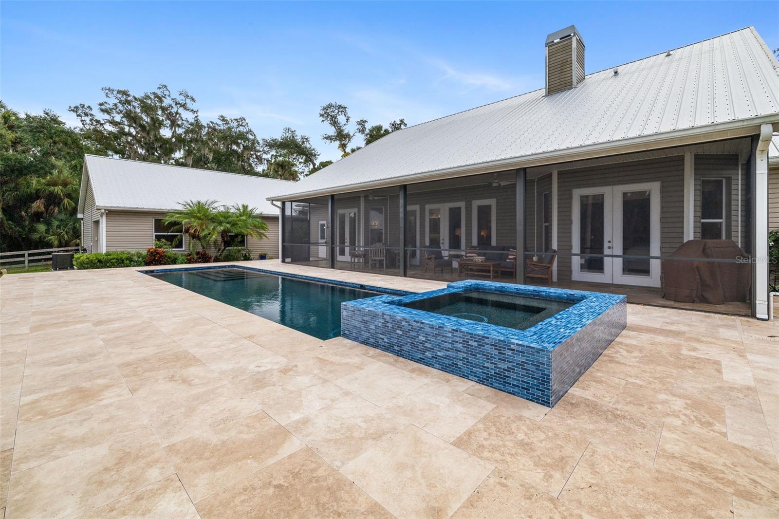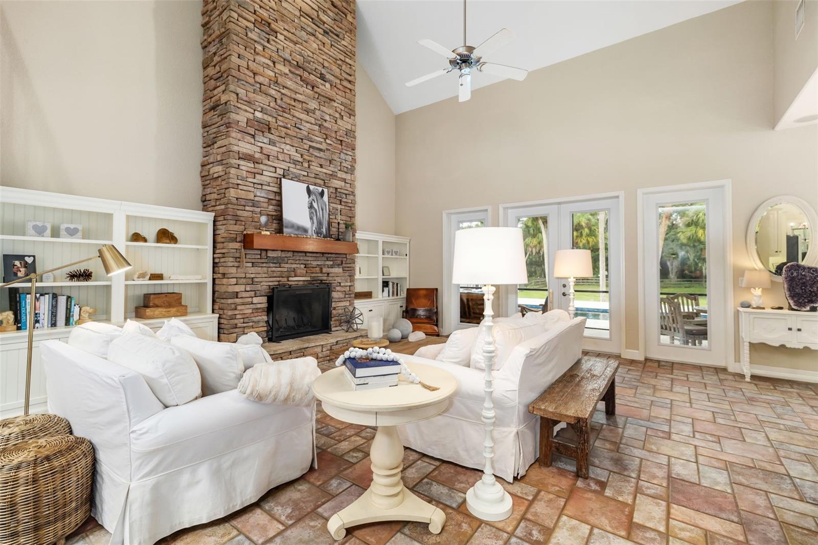 Welcome to 7091 Saddle Creek Lane — a breathtaking 7-acre estate tucked away in the stately, gated equestrian community of Saddle Creek in Sarasota, FL. This private, park-like retreat blends rustic elegance with refined modern updates, offering a true sanctuary for nature lovers, equestrian enthusiasts, and those seeking peaceful luxury. From the moment you enter the private gate and follow the oak-canopied driveway, you’re immersed in a natural hammock of live oaks, native cabbage palms, saw palmettos, bromeliads, orchids, and ferns — creating a setting that feels like a serene cross between Selby Gardens and Myakka State Park. It’s the perfect environment to coexist with nature, offering open grazing pastures with lush grass for livestock, or simply a front-row seat to Florida’s native wildlife, including deer, wild turkey, red-tailed hawks, barred owls, herons, hummingbirds, butterflies, and honey bees. This thoughtfully designed 3-bedroom, 3-bathroom home spans 3,041 sq. ft. of warm, inviting living space. Inside, enjoy vaulted ceilings, a stacked stone fireplace, new quartzite countertops in the kitchen, guest bath, and laundry room, and newer hardwood floors in the guest bedrooms, loft, and master suite. Step outside to your own private resort: • A custom 40-foot saltwater lap pool in PebbleTec Midnight Blue • An oversized raised spa with tranquil spillover, finished in custom glass tile • 24x24 natural stone travertine pavers surrounding the pool deck • A brand-new, clear view screen enclosure for unobstructed outdoor enjoyment • OmniLogic and ColorLogic automation, along with pool heater and chiller for year-round comfort Beyond the main residence, a climate-controlled multi-use structure offers a full kitchen, bathroom, and hurricane-rated modern glass garage doors, perfect as a guest house, barn, art studio, or collector’s garage. All structures feature durable metal roofs, and several newer AC units ensure year-round efficiency. The expansive 5-car garage includes RV and EV hookups, air-conditioned workspace, and additional outdoor parking. The estate also features a whole-home backup generator, ensuring you're always prepared. Surrounded by total privacy on three sides, and located on a quiet cul-de-sac, the property directly backs up to 30 miles of private horse trails. With four gated pastures, there’s room for your horses—or build a chicken coop, start a vegetable or herb garden, or even add another structure to suit your vision. Located within an A-rated school district, this estate is more than a home — it’s a lifestyle. Experience the perfect blend of luxury, tranquility, and nature, all just minutes from Sarasota’s vibrant city life.