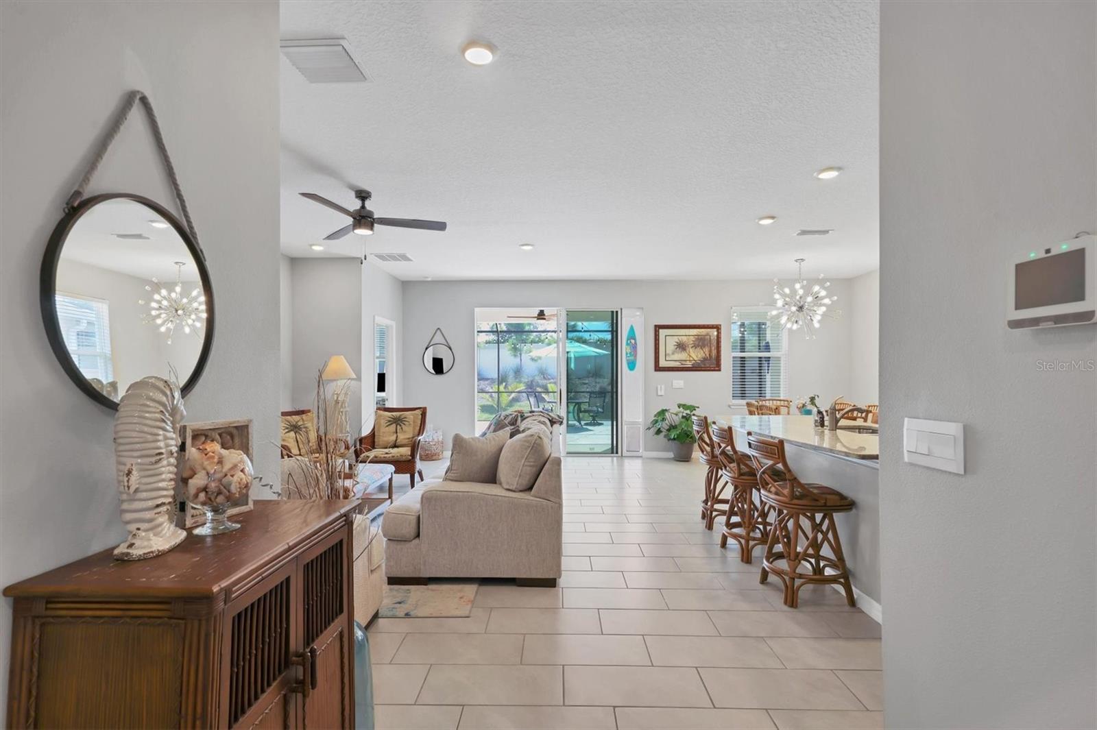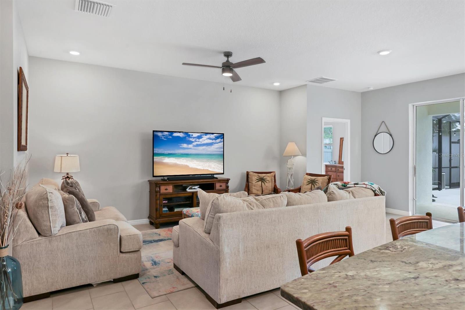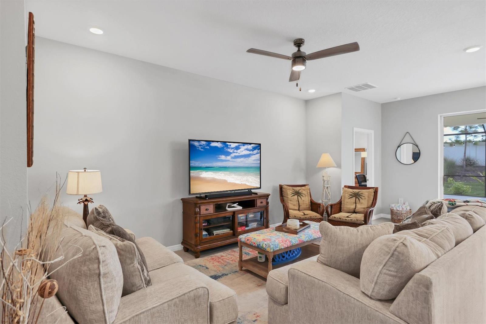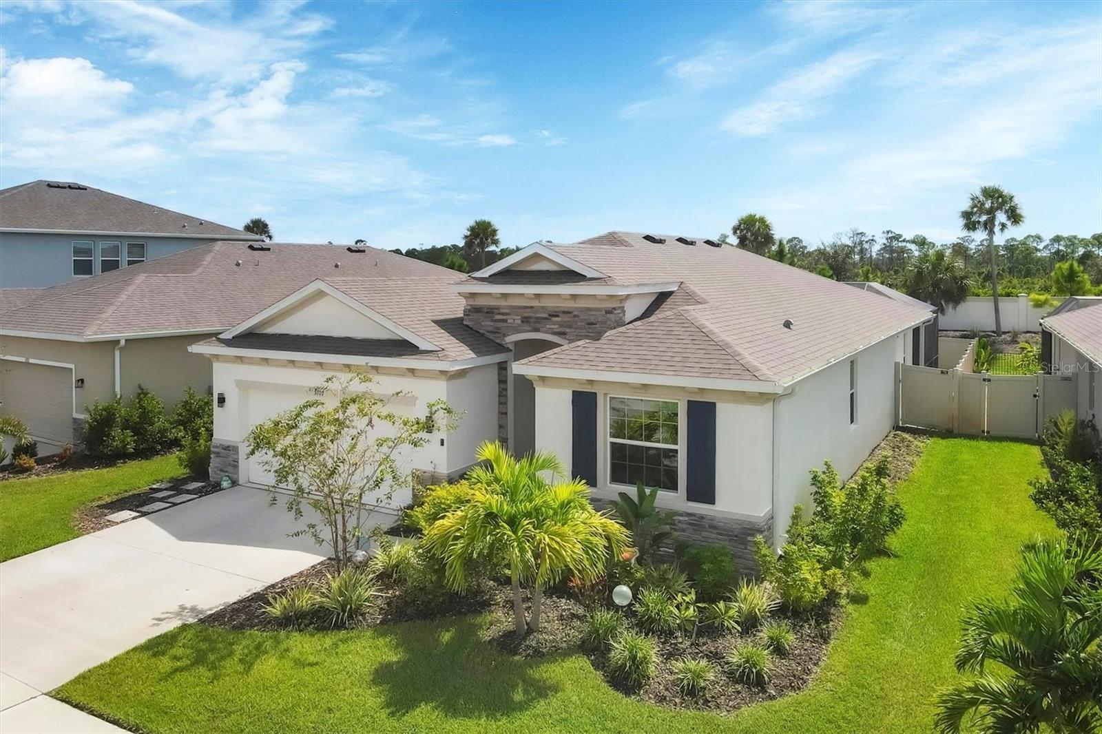 4 BED / 2.5 BATH home featuring a * HUGE 28' x 21' EXTENDED SCREENED LANAI ($18,000 UPGRADE over standard lanai) * BUILT IN 2022 and located in one of the best neighborhoods in all of Palmer Ranch! * LOW HOA FEE $218/mo and NO CDD FEES.* The newly enhanced landscaping and handsome stone facade adds to the curb appeal and creates the perfect welcome for guests. As you enter the home, you will appreciate the OPEN CONCEPT FLOOR PLAN WITH SPLIT BEDROOMS which makes the home feel LIGHT, BRIGHT, AND SPACIOUS while offering the primary bedroom great privacy from the secondary bedrooms. The primary bedroom FEATURES TRAY CEILING, LARGE WALK-IN CLOSET, AND PRIVATE VIEWS OF THE BACK YARD. The kitchen which is the true heart of the home offers a LARGE CENTER ISLAND, UPGRADED STAINLESS STEEL APPLIANCES, RICH GRANITE COUNTERS, RICH 42" WOOD SHAKER CABINETS, and WALK-IN PANTRY. The kitchen connects to both the Great Room and screened lanai spaces making indoor/outdoor entertainment seamless. LARGE SLIDING GLASS DOORS open up to the private OVERSIZED 24' x 9' COVERED LANAI creating the perfect shady spot to relax while you enjoy your EXTENDED CAGED LANAI which is perfect for entertaining friends and family. Home is located in preferred flood zone X. Promenade Estates is a warm family-friendly neighborhood which offers a LARGE RESORT-STYLE HEATED LAP POOL, FITNESS CENTER, BASKETBALL COURT, VOLLEYBALL COURT, PLAYGROUND, FLEX SPORT FIELD / EVENT LAWN, DOG PARK, AND SECURE GATED ENTRY. Close to A rated schools including PINEVIEW SCHOOL, Publix grocery, Historic Island of Venice Mainstreet and Venice Beach, Nokomis Beach, Downtown Sarasota, Siesta Key, Oscar Shearer State Park, Legacy Bike Trail and Osprey Junction Park Trailhead, and waterfront dining at The Pointe Restaurant and Spanish Point Tiki Bar on Little Sarasota Bay. THIS HOME IS AN ABSOLUTE MUST SEE!