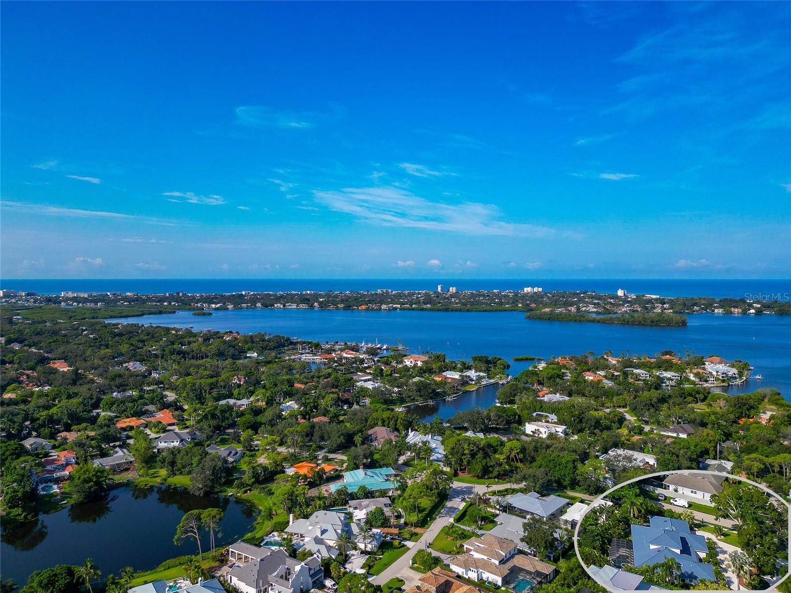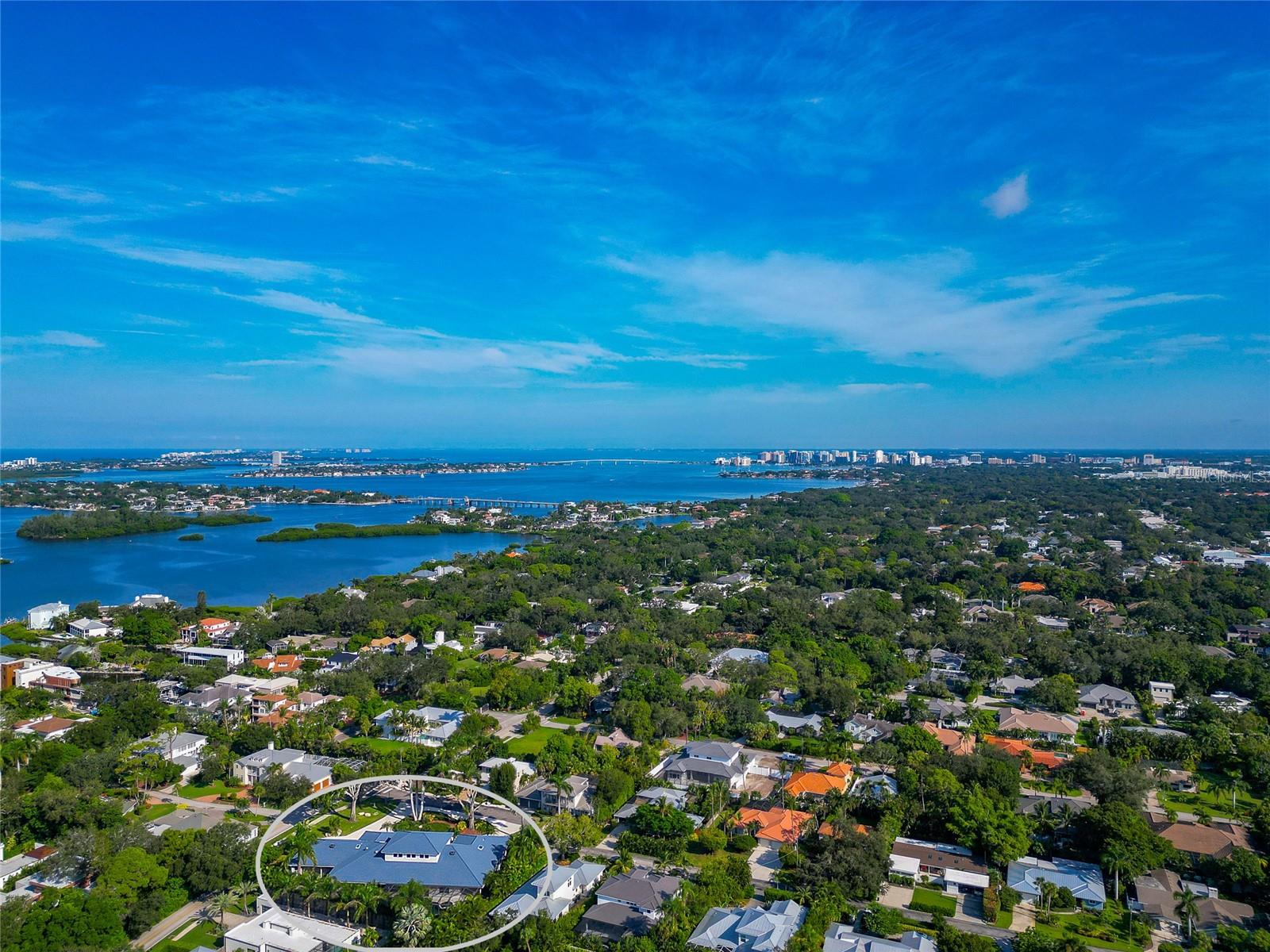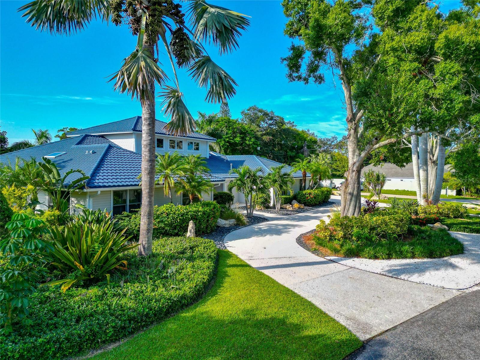 MOVE-IN READY- NOT IMPACTED BY STORMS, SPACIOUS ELEGANCE, BEST BEACHES, ARTS, SHOPPING & FINE DINING, OVERSIZED CORNER LOT, CHEF’S KITCHEN, TROPICAL PARADISE You will love where you live!! and treasure each moment in this Tropical Paradise surrounded by mature plush landscaping, a home inspired by the colors, and beauty of Florida’s Gulf Coast and the glamour of one of the most sought-after Sarasota neighborhoods. Enjoy life in a peaceful atmosphere located within walking distance of Roberts Bay and the historic Field Club, minutes’ drive to Sarasota’s cultural center, with gorgeous sugar-sand beaches that include three of Florida’s most beloved and famous Gulf beaches: Siesta Key, Lido Key, and Longboat Key. Shop and dine at St Armands on Lido Key, enjoy the arts, shopping, and fine dining at Sarasota’s Main Street and Downtown, providing the utmost convenience, a vibrant lifestyle. Take this rare opportunity to own this meticulously updated custom-built home set on ½ acre corner lot off Camino Real, nestled on a coveted private dead-end street. This one-level coastal home features 3,933 sq ft of living space with 4 bedrooms and 2.5 baths. Hand-Peeled log columns with a rustic beach look welcome you through the custom crafted double doors. Leading through majestic log columns that open into a great room soaring with 24 ft cathedral wood ceilings, surrounded by windows that bring in abundant natural light, while providing well appointed, modern lighting for spacious evening entertaining or relaxation time. Includes an inviting gas fireplace, with large oak and travertine parquet patterned floors. The sizeable open dining room and large kitchen island with seating will ensure all your guests are comfortable and enjoy the atmosphere of your chef’s creations. The stunning gourmet kitchen features beautiful custom wood cabinetry with a SubZero side-by-side refrigerator, a Viking gas cooktop accented by a magnificent copper design range hood. The built-in stove area offers a working space with planning desk and lots of additional storage. If that is not enough, there is the beautiful hand-crafted wood door that leads to a huge butler’s pantry with ceiling to floor wood cabinetry and wine rack. Four sets of slider doors from the living space to the outdoor area also bring additional natural light and ease of access for guests. The extensive screened lanai with pool/spa offers 2,176 square feet of private outdoor entertaining options including sprawling covered sitting and dining space, a fully equipped outdoor kitchen with stone countertops and wood cabinetry. The enormous master suite can be your own private sanctuary, offering two large sitting areas, along with three sets of glass doors that lead out to the lanai and pool, vaulted ceilings, gleaming hardwood floors and a large walk-in closet with wood shelves. The splendid primary bathroom is appointed with specialty-tiled shower, elegant bathtub and premium fixtures throughout, granite countertop, double vanity, with beautiful wood cabinetry and a roomy water closet with bidet. It also has direct access to another bedroom that could serve as an office/den or fitness room. The guest bedrooms are also very spacious and each feature, premium hardwood oak flooring, craftsman style wood interior doors, with built in closets and shelves. Guest bathroom and ½ bath are also totally remodeled with premium fixtures, slate countertops, custom cabinetry, tile shower and glass sliding door.
