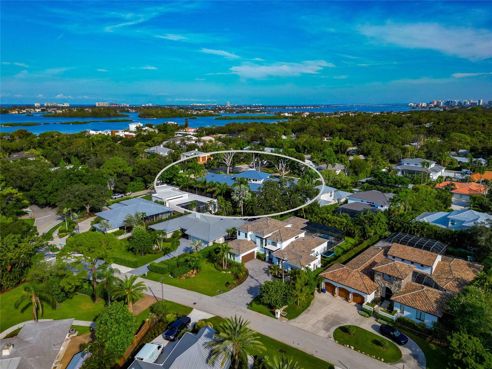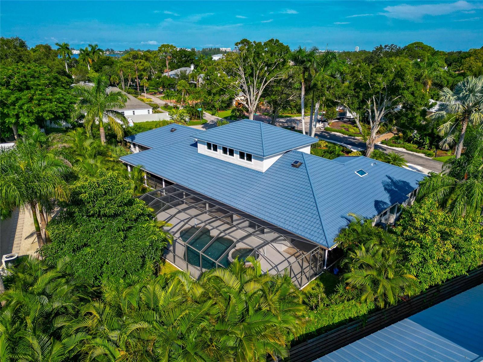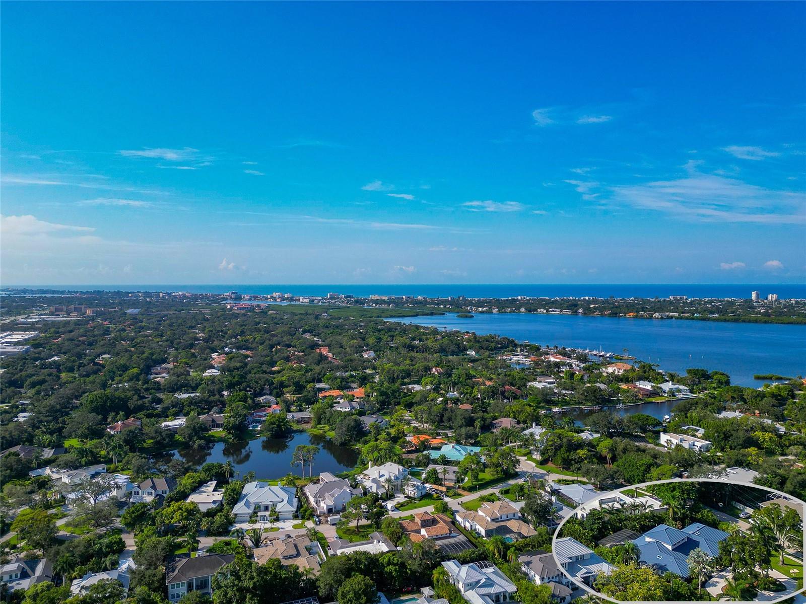 MOVE-IN READY- NOT IMPACTED BY STORMS, SPACIOUS ELEGANCE, BEST BEACHES, ARTS, SHOPPING & FINE DINING, OVERSIZED CORNER LOT, CHEF’S KITCHEN, TROPICAL PARADISE You will love where you live!! and treasure each moment in this Tropical Paradise surrounded by mature plush landscaping, a home inspired by the colors, and beauty of Florida’s Gulf Coast and the glamour of one of the most sought-after Sarasota neighborhoods. Enjoy life in a peaceful atmosphere located within walking distance of Roberts Bay and the historic Field Club, minutes’ drive to Sarasota’s cultural center, with gorgeous sugar-sand beaches that include three of Florida’s most beloved and famous Gulf beaches: Siesta Key, Lido Key, and Longboat Key. Shop and dine at St Armands on Lido Key, enjoy the arts, shopping, and fine dining at Sarasota’s Main Street and Downtown, providing the utmost convenience, a vibrant lifestyle. Take this rare opportunity to own this meticulously updated custom-built home set on ½ acre corner lot off Camino Real, nestled on a coveted private dead-end street. This one-level coastal home features 3,933 sq ft of living space with 4 bedrooms and 2.5 baths. Hand-Peeled log columns with a rustic beach look welcome you through the custom crafted double doors. Leading through majestic log columns that open into a great room soaring with 24 ft cathedral wood ceilings, surrounded by windows that bring in abundant natural light, while providing well appointed, modern lighting for spacious evening entertaining or relaxation time. Includes an inviting gas fireplace, with large oak and travertine parquet patterned floors. The sizeable open dining room and large kitchen island with seating will ensure all your guests are comfortable and enjoy the atmosphere of your chef’s creations. The stunning gourmet kitchen features beautiful custom wood cabinetry with a SubZero side-by-side refrigerator, a Viking gas cooktop accented by a magnificent copper design range hood. The built-in stove area offers a working space with planning desk and lots of additional storage. If that is not enough, there is the beautiful hand-crafted wood door that leads to a huge butler’s pantry with ceiling to floor wood cabinetry and wine rack. Four sets of slider doors from the living space to the outdoor area also bring additional natural light and ease of access for guests. The extensive screened lanai with pool/spa offers 2,176 square feet of private outdoor entertaining options including sprawling covered sitting and dining space, a fully equipped outdoor kitchen with stone countertops and wood cabinetry. The enormous master suite can be your own private sanctuary, offering two large sitting areas, along with three sets of glass doors that lead out to the lanai and pool, vaulted ceilings, gleaming hardwood floors and a large walk-in closet with wood shelves. The splendid primary bathroom is appointed with specialty-tiled shower, elegant bathtub and premium fixtures throughout, granite countertop, double vanity, with beautiful wood cabinetry and a roomy water closet with bidet. It also has direct access to another bedroom that could serve as an office/den or fitness room. The guest bedrooms are also very spacious and each feature, premium hardwood oak flooring, craftsman style wood interior doors, with built in closets and shelves. Guest bathroom and ½ bath are also totally remodeled with premium fixtures, slate countertops, custom cabinetry, tile shower and glass sliding door.