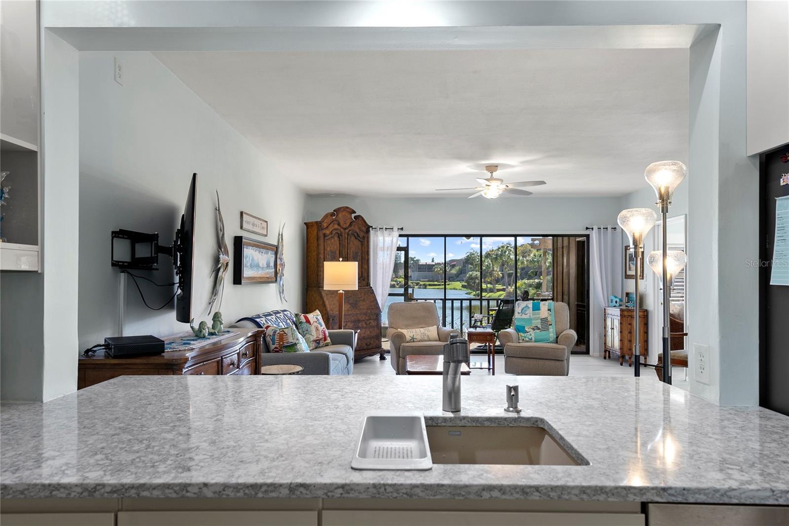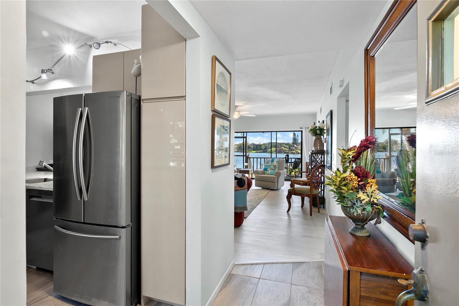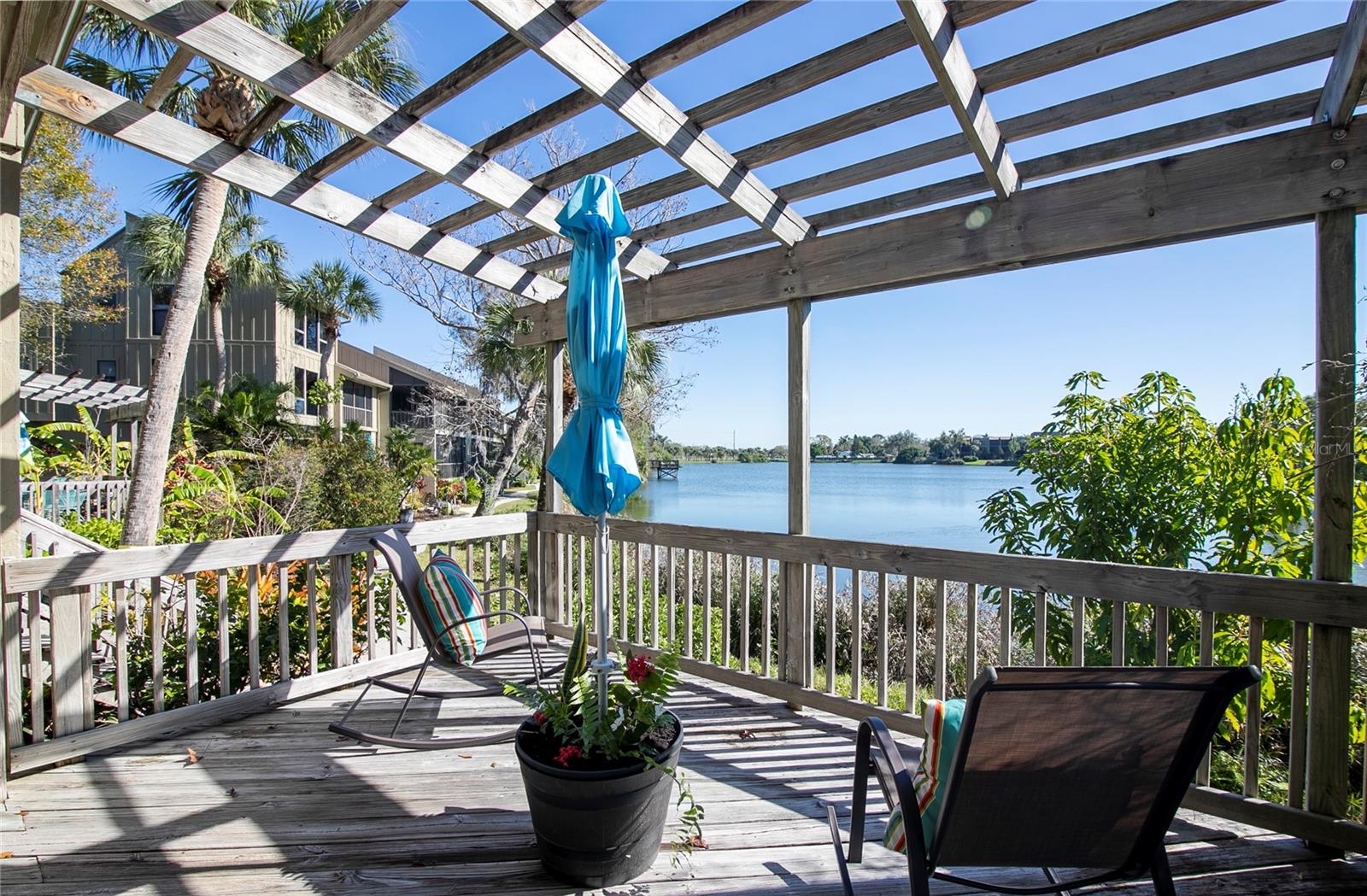 Lake Arrowhead Trail, rarely available.... These are the best direct lake views in the community. Here you will find lots of wildlife, with many birds along the shore and lake. This first floor, end unit condo has two decks and a screened lanai and has tranquil water views from every room. High end updates and redesigned layouts selected by a professional designer to include new paint, new kitchen cabinetry with drawer inserts, Italian tile and new luxury vinyl floors throughout the living space all to compliment the style of this condo. New roof and outside of the building painted in 2023. Community amenities include a clubhouse with a weekly happy hour, heated pool, and lakeside sidewalk access. And let's not forget the location... This community is central to all the shopping and dining you want to experience, and our Nationally renowned Siesta Key is just minutes away. Experience the ultimate lakeside retreat at this serene Lake Arrowhead condo.