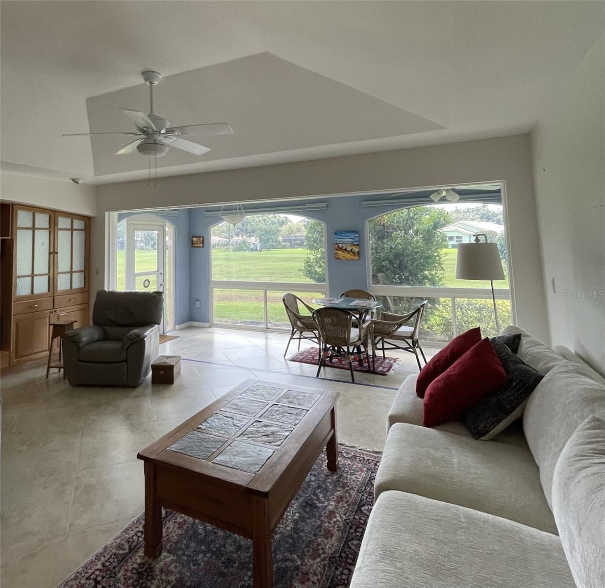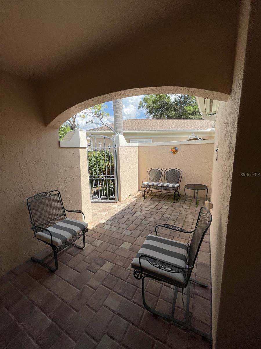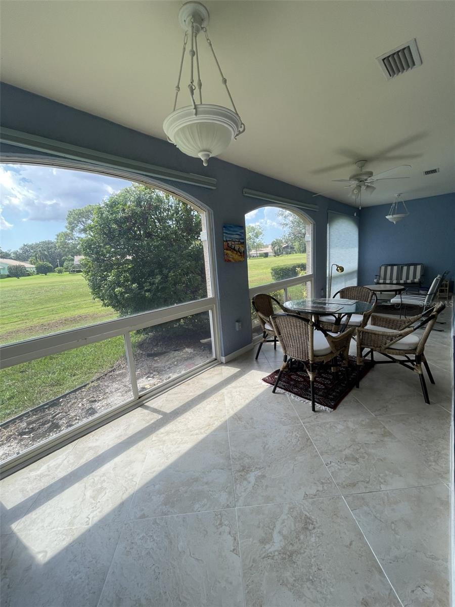 ON THE GOLF COURSE & nestled within the Meadows community in the desirable Chanteclaire neighborhood, you will find this great villa to call home! Located on a cul-de-sac, the brick paved gated sidewalk leads you to the front entry and patio - perfect for your plants and morning coffee! This 3 bedroom, 2 bath home includes a 2-car garage and plenty of storage. The spacious great room is a dining/living combo with trey ceiling (no popcorn) and leads to the 30-foot-long back lanai where you will want to lounge and enjoy the golf course views! Full blinds on remote control have been installed on the patio windows. Maple wood flooring in the entry way and secondary bedrooms and Travertine throughout the rest - no carpet to worry about here! Both the kitchen and en-suite bath include extra cabinetry. Kitchen has a moveable island perfect for displaying appetizers or for extra preparation of food. Built-in cabinetry in the great room gives you extra space to arrange your furnishings. Chanteclaire has two heated community pools one being tucked away just steps from this unit where neighbors gather and even enjoy weekly water aerobics. The Meadows Country Club also offers activities and optional memberships to include: social, golf and tennis. Enjoy the 15 miles + of walking/biking trails throughout the Meadows community with mature tree lined landscaping and ponds as the backdrop. With easy access to I-75, the SRQ airport and Nathan Benderson Park, you will find this well-established community nicely maintained and convenient to just about everything! Minutes from the University Park corridor with some of the latest dining venues and retail including: the UTC mall, the Shoppes at UTC, Trader Joes and Whole Foods Market to name a few. Currently under construction are Flemings and Tommy Bahama restaurants with even more on the way! Just a short drive to the fabulous beaches, St. Armand Circle and the cultural events of downtown Sarasota - you can enjoy it all and live the true Florida lifestyle! Make your appointment today!