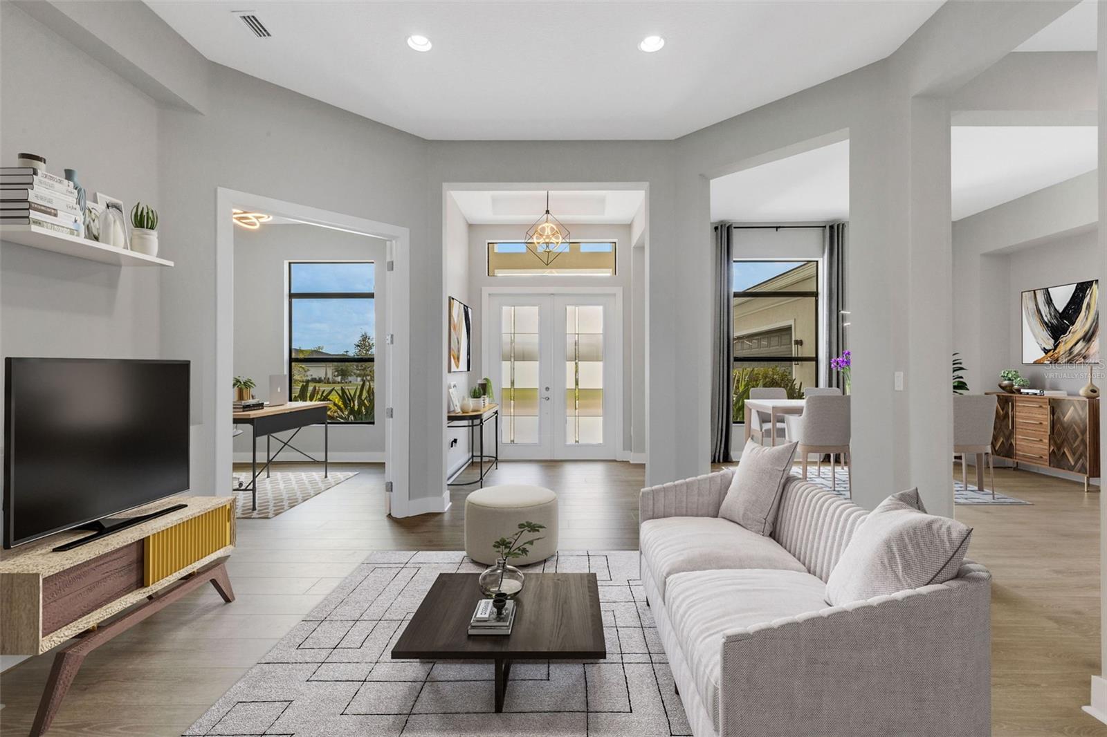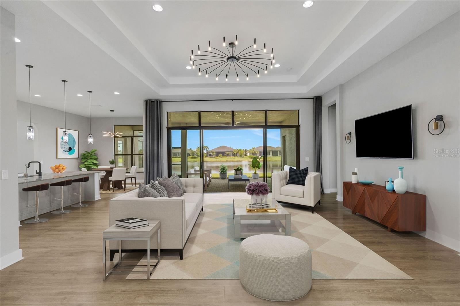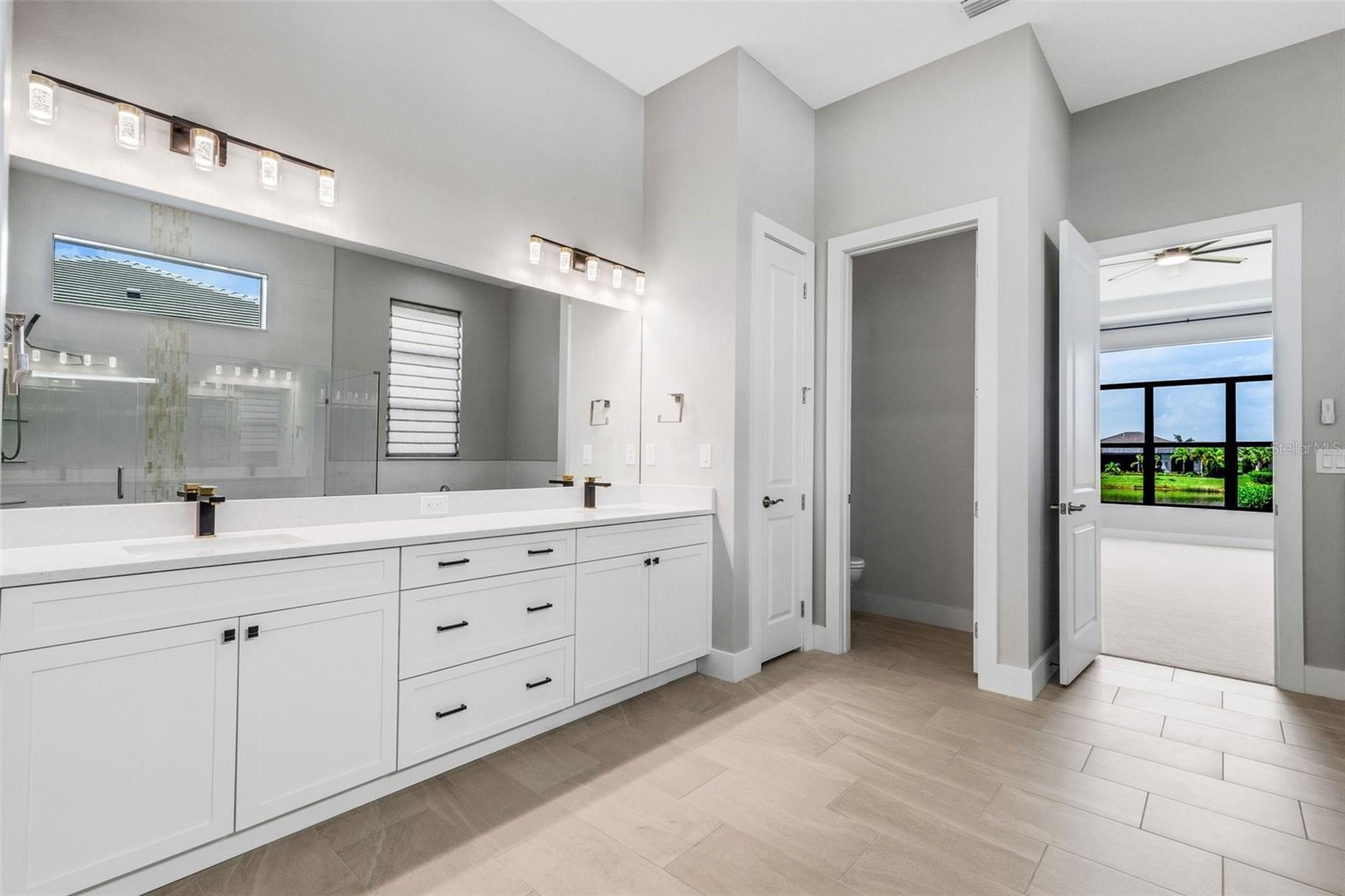 Experience the pinnacle of coastal luxury living with this better than new residence nestled within the beautiful enclave of Artistry. Lowest price on one of the largest lots/homes in the community! Beyond the gates of this exclusive community, discover a world of refined elegance and breathtaking beauty awaiting your arrival. From the moment you step through the grand entrance, you'll be captivated by the meticulous attention to detail and impeccable craftsmanship that define this architectural masterpiece. Sunlight dances through floor-to-ceiling windows, casting a warm glow upon the luxury vinyl plank floors and designer finishes that adorn every room. Each secondary bedroom features their own private en-suite bathrooms and walk-in closets. This homes "Club Room" is a builders upgrade to this Palmer Model. It features an impressive space for a Theatre Room, Game Room, guest privacy or your own personal getaway. Entertain with ease in the gourmet chef's kitchen, where upgraded GE Profile appliances and custom cabinetry create a culinary haven fit for the most discerning chef. Gather with loved ones in the expansive living areas, where soaring 12’ ceilings and panoramic views of the surrounding landscape provide the perfect backdrop for unforgettable moments. Retreat to the luxurious master suite, where a spa-inspired ensuite bath and cavernous walk-in closets. This home features a rare, four car, air conditioned garage space, insulated for all your vehicles and storage. Outside, your own private screened in lanai surrounded by lush landscaping with serene water views evoke a sense of tranquility and serenity. Lanai is plumbed for an expansive outdoor kitchen. Whether you're hosting gatherings under the stars or exploring the vibrant Sarasota scene just minutes away, 9004 Artisan Way promises a lifestyle of unparalleled luxury and sophistication. Don't miss your chance to experience the epitome of coastal living in this extraordinary residence. Welcome home to your own piece of paradise. Luxury amenities include a community clubhouse, resort-style pool, and pickleball/basketball courts. Artistry provides easy access to Sarasota's world-class beaches, arts and culture, medical facilities, and dining options, while offering the serenity of this exclusive new community! Motivated Seller! Bring Offers!