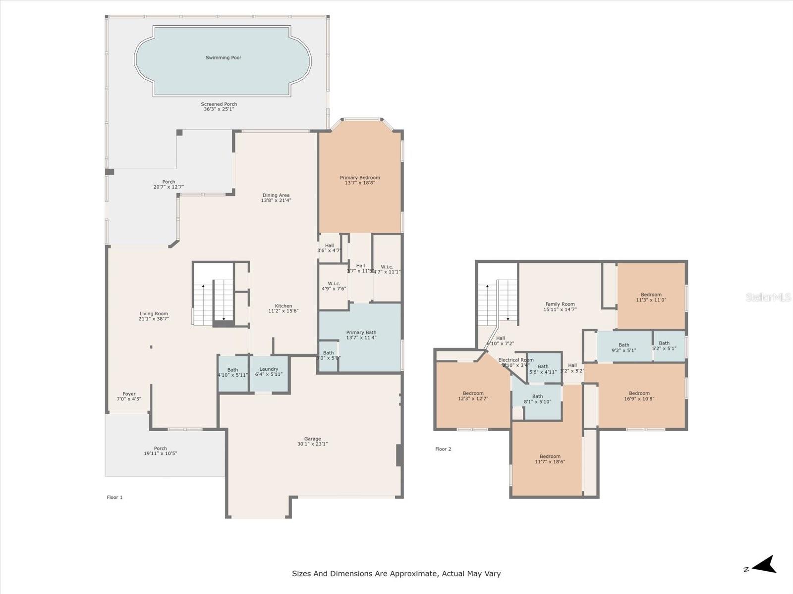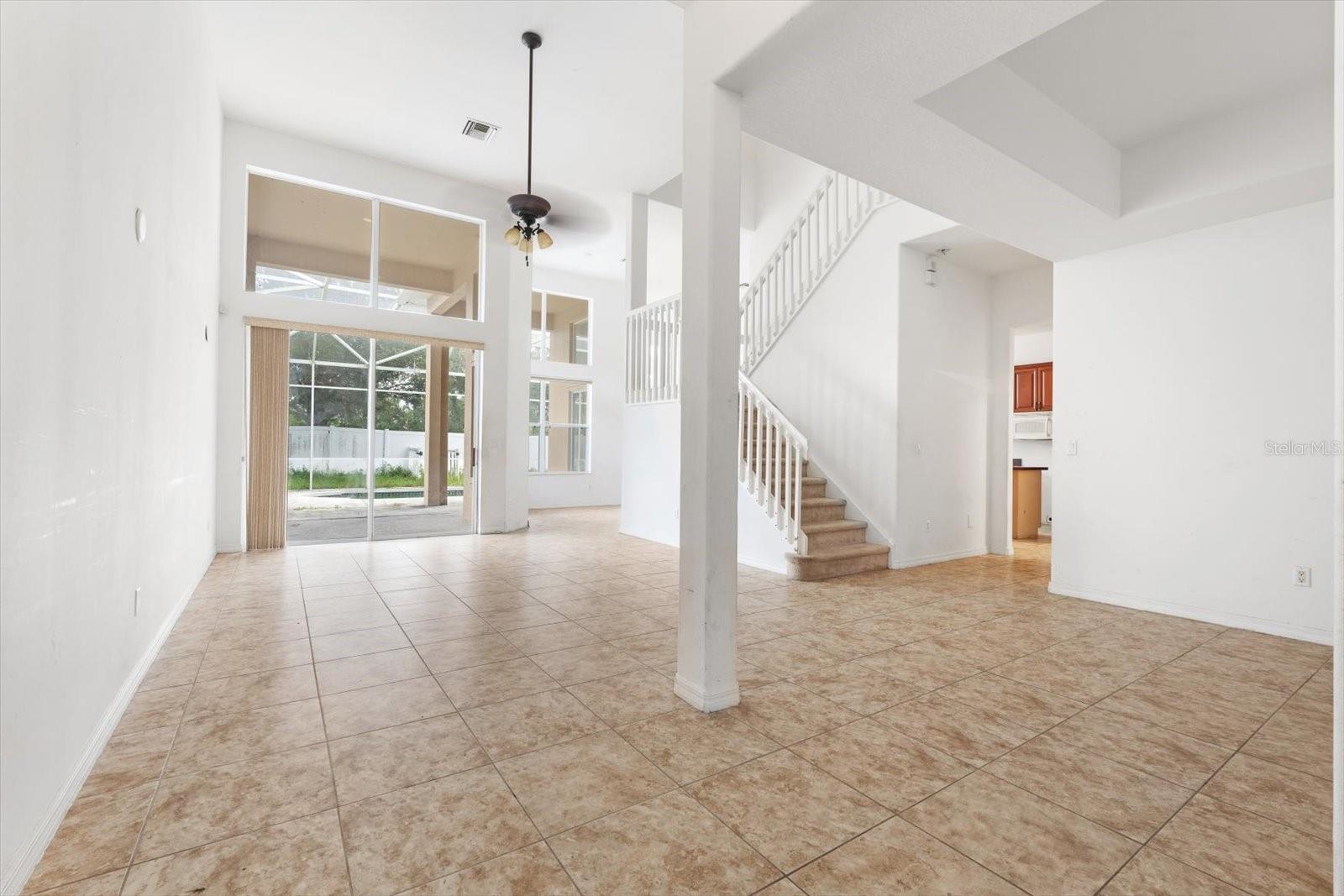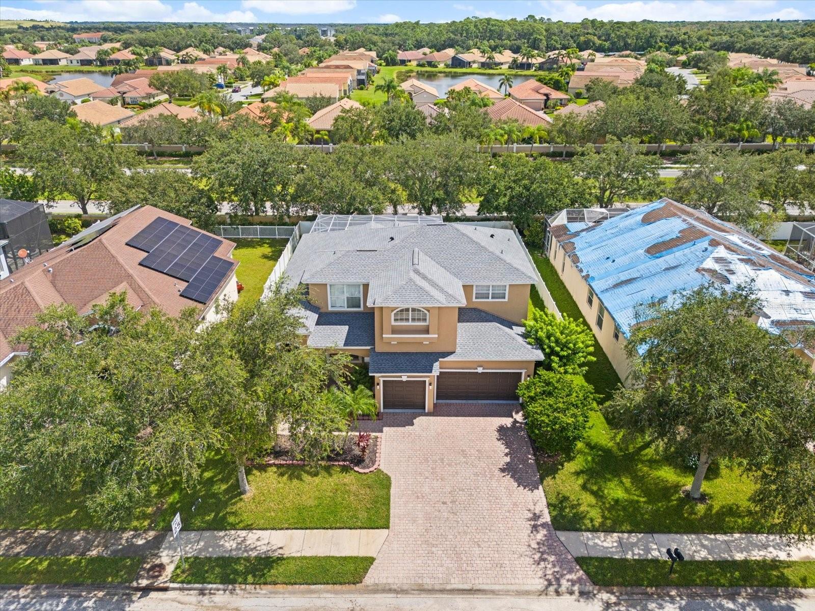 This expansive & spacious 5 bedroom, 3.5 bath home with several bonus spaces is well located within the RioMar community and offers many attractive features, including a newly resurfaced pool & and soaring 14’ ceilings. If you are an investor looking for a FIXER UPPER or a buyer searching for a spacious home to put your finishing touches on, look no further! Opportunities abound to add tons of value to this "blank canvas" as the major systems have all been updated, including a newer roof (2022) and 2 new HVAC systems (2024), and exterior paint. This home is abound with natural light and creates a welcoming feeling with its’ well laid out floorplan, perfect for entertaining. Two large slider doors off the living area, open up the home to the inviting outdoor patio with large screen enclosure over a generously sized pool. The home is sure to please those looking to live in a beautiful, well maintained, deed restricted neighborhood, but with low HOA fees. Located in a prime location, it’s only minutes away from the plethora of shopping & dining options along the University Town Center corridor. This location also offers easy, quick access to the Lakewood Ranch community. The home boasts easy to keep clean tile flooring throughout main living areas with carpet in the bedrooms. Other bonus features are a papered pool patio and driveway and an oversized 3 car garage. The master bedroom suite, located on first floor level, is spacious and features a large primary bathroom. The HOA fee covers neighborhood security monitoring, Internet connection, cable TV with 200 digital channels, Exterior sprinkler/lawn irrigation and upkeep of the community pool and its bathhouse.