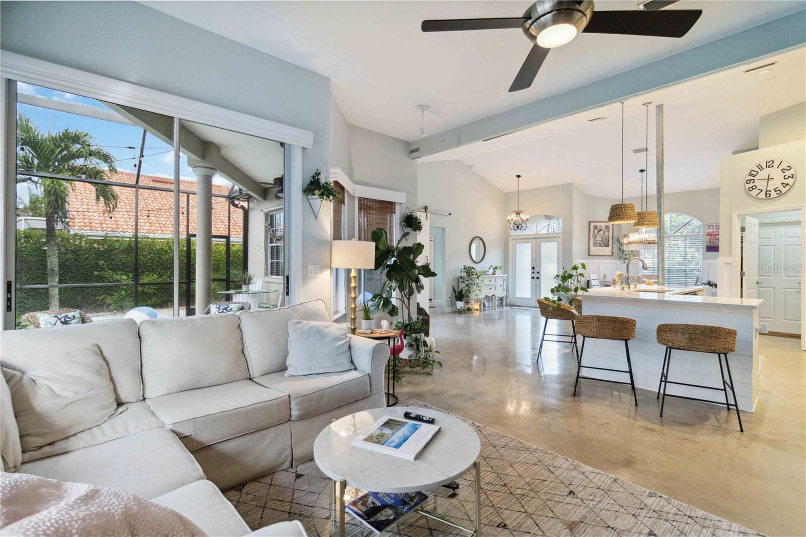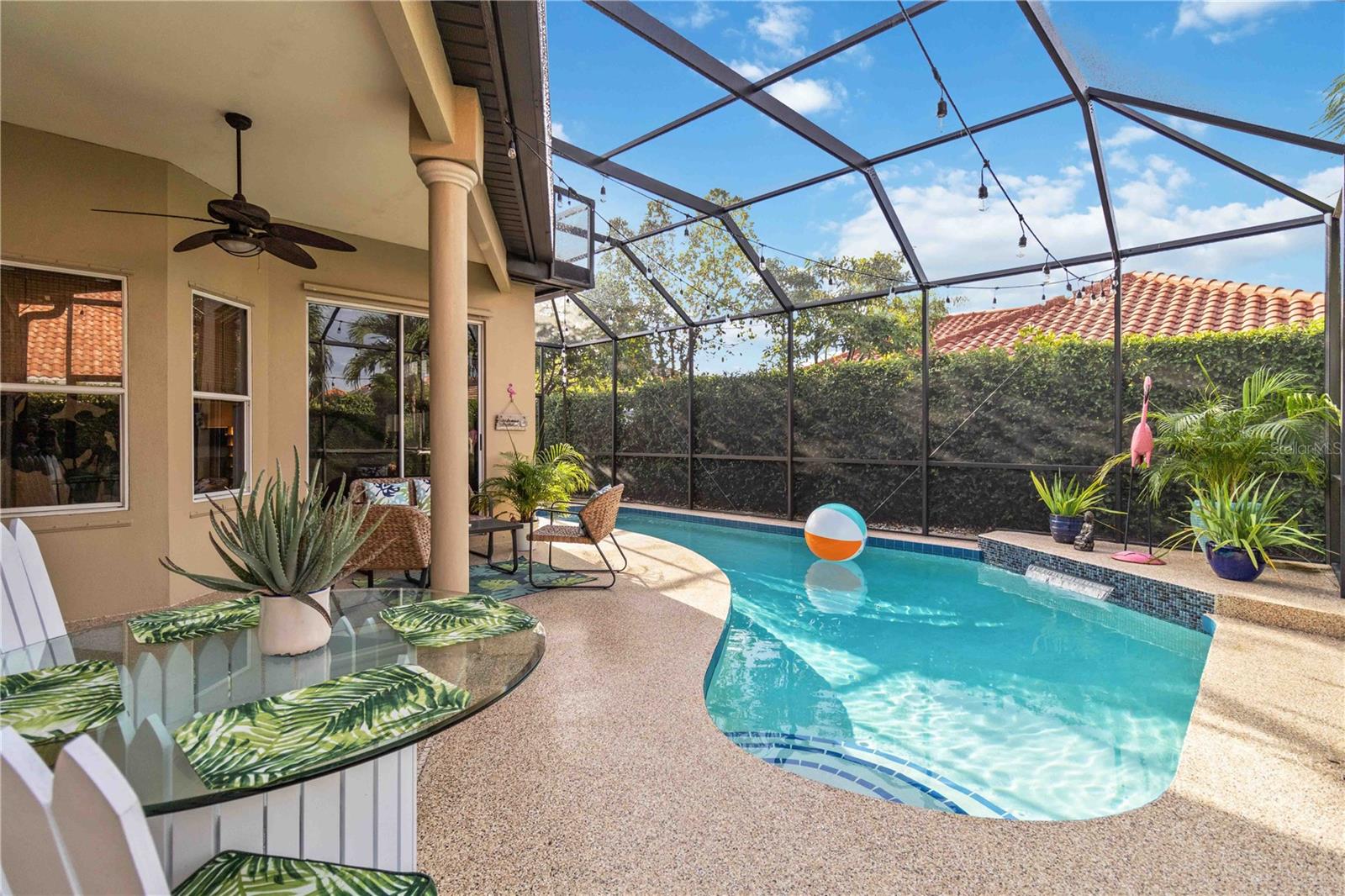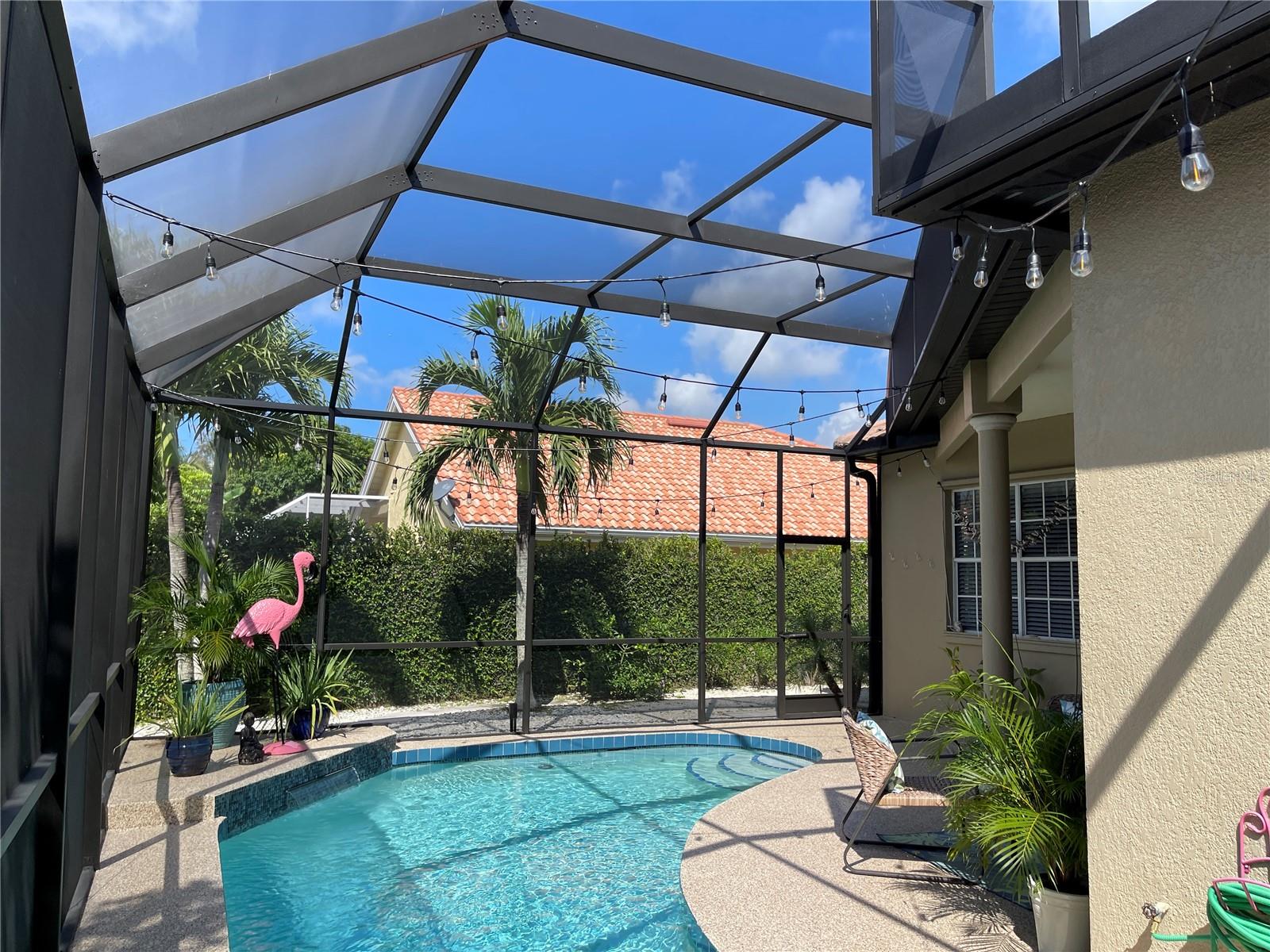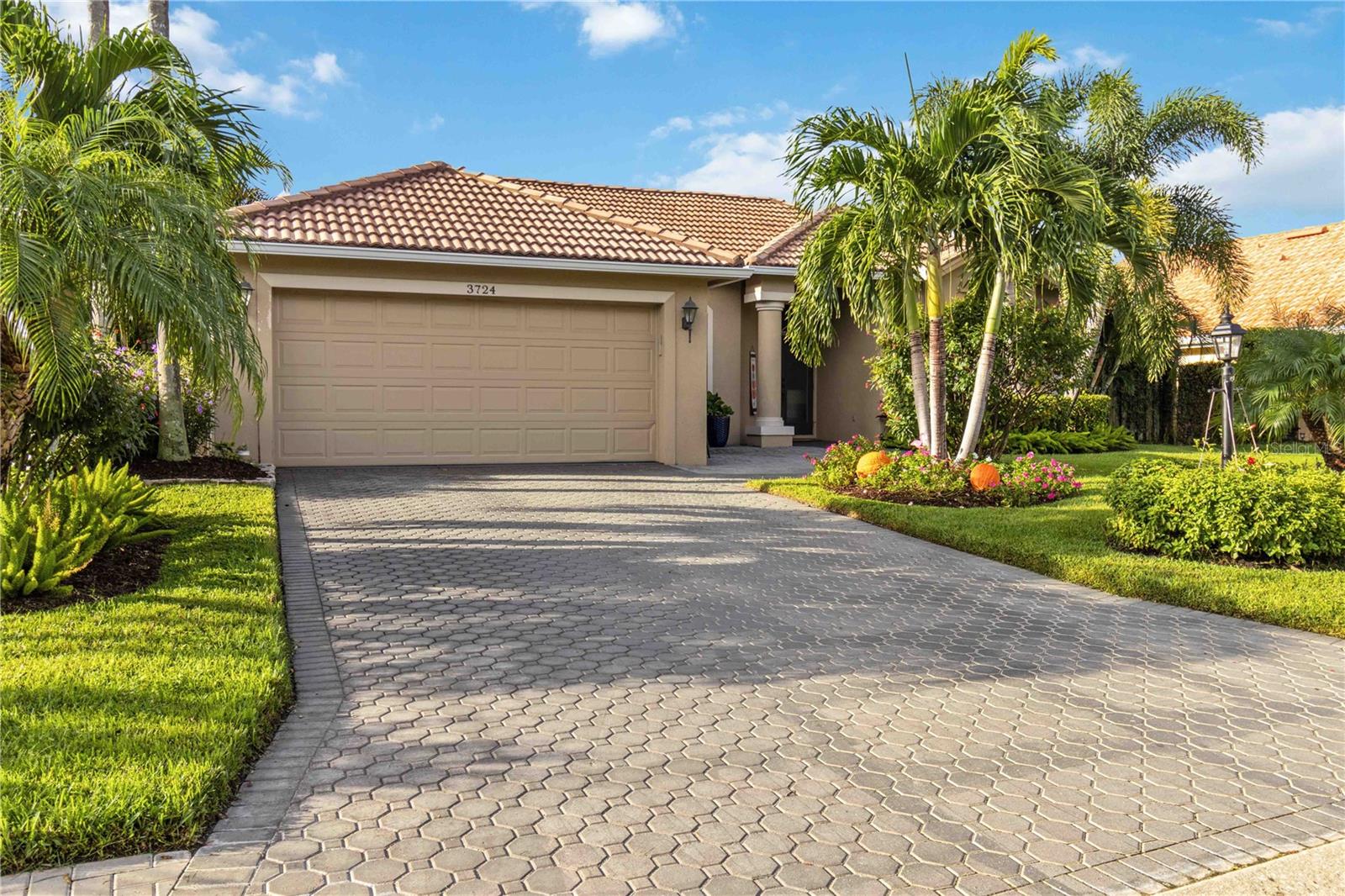 Welcome to the delightful and sought after community of The Trails with LOW HOA and NO CDD. New roof installed 1/2025! This FURNISHED pool home with open floor-plan features three bedrooms and two bathrooms. Manicured and tropical setting with colorful flower beds invites you into this elegant Sarasota home. Enter through the double entry doors to the open living space with vaulted ceiling. All new light fixtures. The kitchen boasts stainless appliances, Quartz countertops and Tumbled marble tiles backsplash. For casual dining sit around the kitchen island. Easy to maintain concrete flooring throughout. For your convenience the laundry room is off the kitchen and through the laundry room exit into the two car garage which boasts a utility sink and storage cabinets for you to organize all your sports gear or crafts. There is also a door from the garage to the side of the yard. As you continue to explore this pristine home, you will find the comfortable and light plus bright living room with a ceiling fan and sliding glassed doors. When you walk out to the pool area you will be pleasantly surprised to find the epoxy resurfaced flooring, the redone screen pool cage, the tranquil waterfall and the fenced backyard. The pool area has ample space for entertaining with a ceiling fan, and even in the evenings the pool lights will set the ambiance. Beautiful shades and wood valances adorn the windows. Enter into your main bedroom through the barn door. This is your oasis after a long day at work or on the near by golf course. The main bathroom boasts a walk-in glassed shower with subway tiles backsplash. There is a window for more light to penetrate the bathroom. For your convenience there are two walk-in closets. The two guest bedroom are behind the kitchen and another barn door separates their hallway from the living room. The guest bathroom features an elegant light fixture, garden tub and a window. The guest bedrooms boast a ceiling fan and a built-in closets. Ample closets for storage throughout. A/C was replaced in 2018. Take advantage of The Trails amenities such as swimming pool, tennis court and clubhouse. The HOA also maintains the common areas. Walk or ride your bicycle and view the lakes of this community. You may encounter the Florida birds. Drive to UTC Mall for dinner or shopping, under 6 miles from The Trails. Palm Aire golf course is about 7 minutes drive. Spend the day in the dreamy sugary beaches of Sarasota or Manatee counties. Take pleasure in all of Sarasota and Bradenton's cultural and culinary venues. Furnishings are available with a separate bill of sale. Take a tour at The Trails home and you will find it surprisingly refreshing and ready for you.