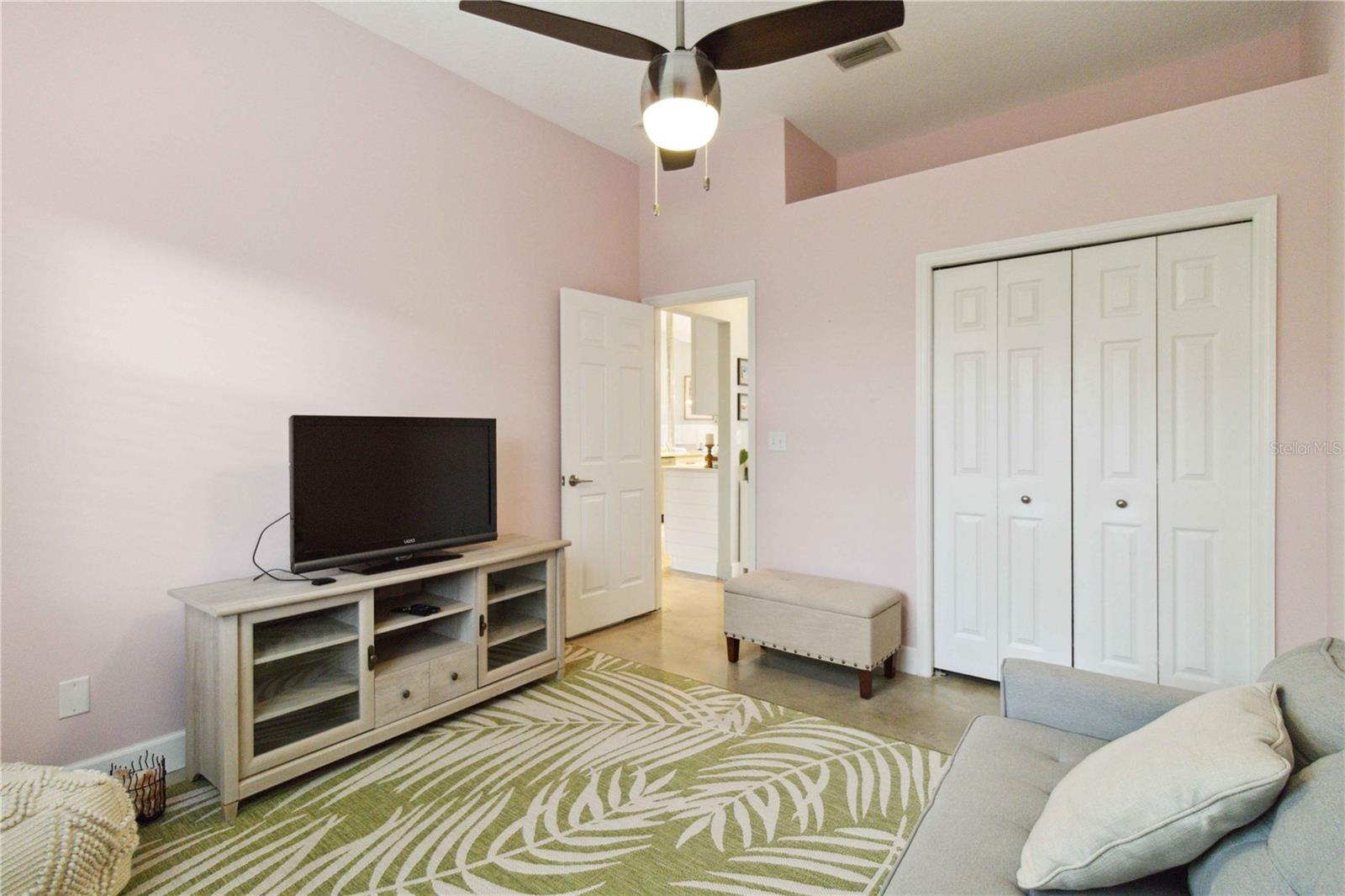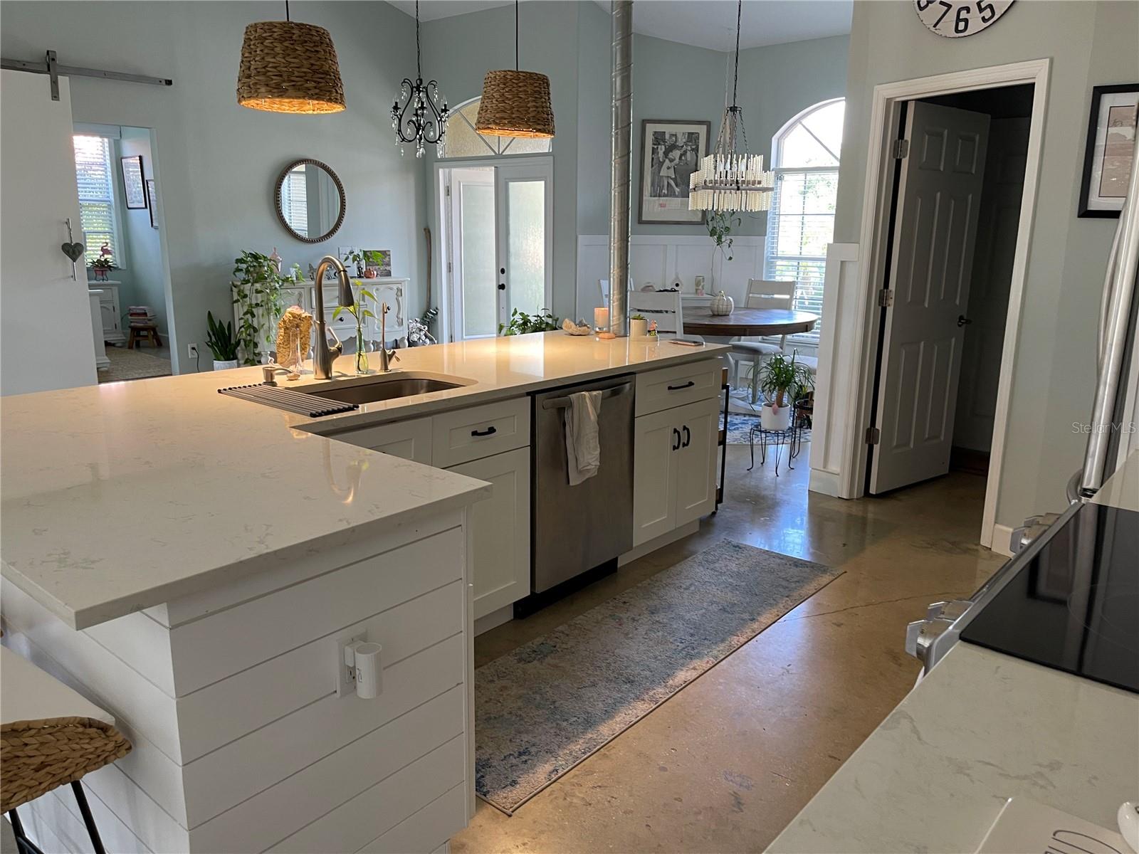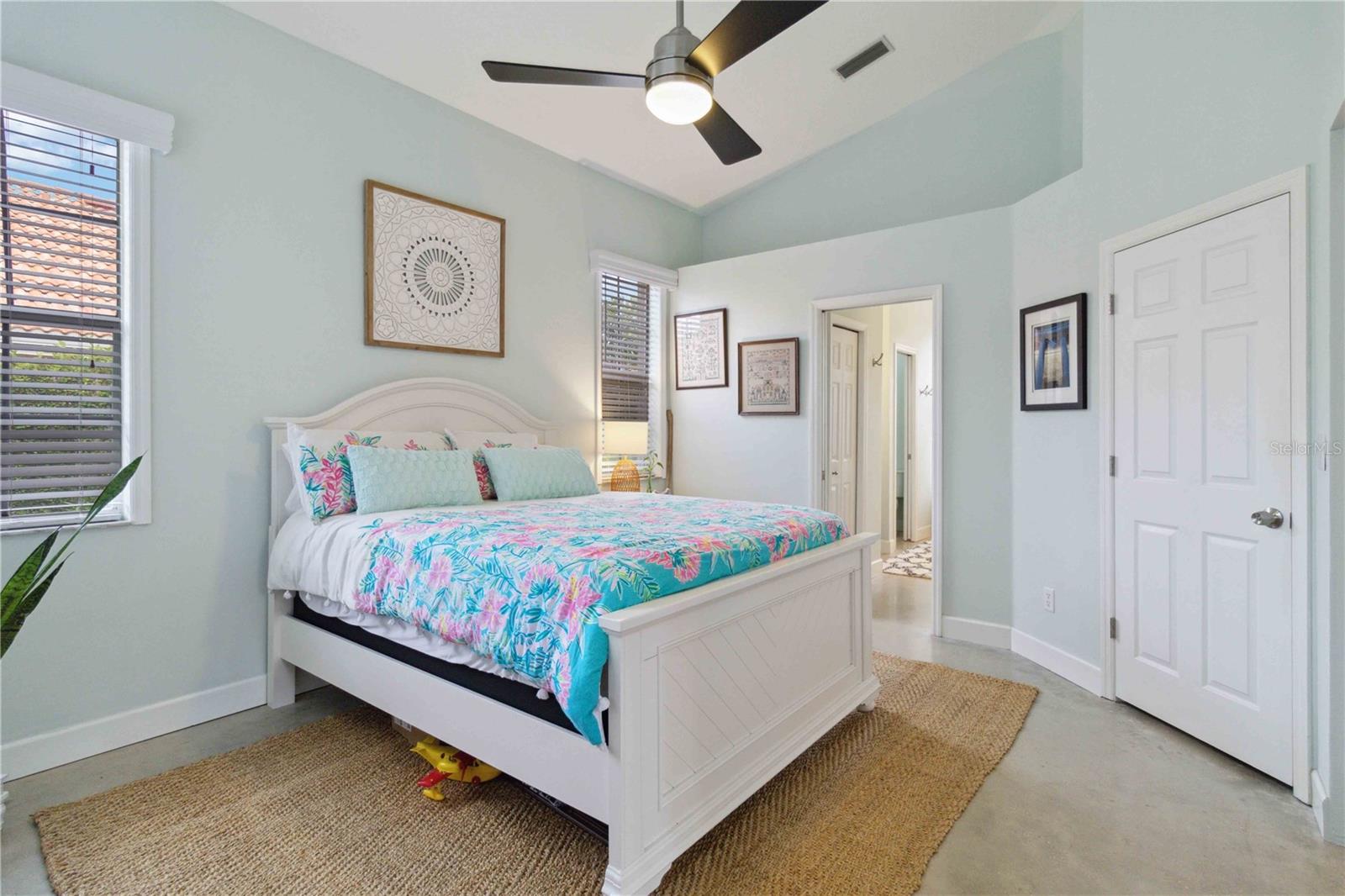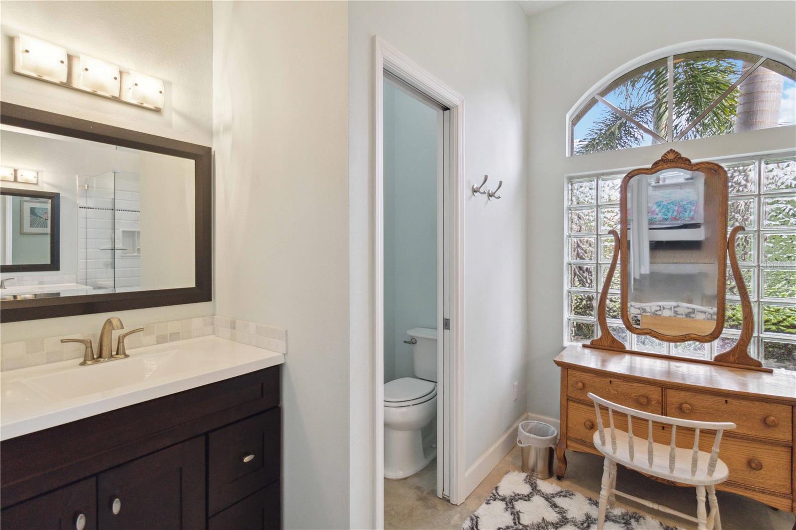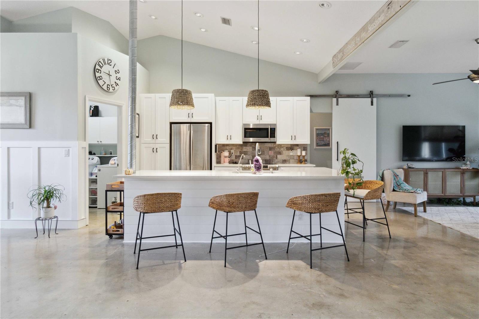 Welcome to the delightful and sought after community of The Trails with LOW HOA and NO CDD. New roof installed 1/2025! This FURNISHED pool home with open floor-plan features three bedrooms and two bathrooms. Manicured and tropical setting with colorful flower beds invites you into this elegant Sarasota home. Enter through the double entry doors to the open living space with vaulted ceiling. All new light fixtures. The kitchen boasts stainless appliances, Quartz countertops and Tumbled marble tiles backsplash. For casual dining sit around the kitchen island. Easy to maintain concrete flooring throughout. For your convenience the laundry room is off the kitchen and through the laundry room exit into the two car garage which boasts a utility sink and storage cabinets for you to organize all your sports gear or crafts. There is also a door from the garage to the side of the yard. As you continue to explore this pristine home, you will find the comfortable and light plus bright living room with a ceiling fan and sliding glassed doors. When you walk out to the pool area you will be pleasantly surprised to find the epoxy resurfaced flooring, the redone screen pool cage, the tranquil waterfall and the fenced backyard. The pool area has ample space for entertaining with a ceiling fan, and even in the evenings the pool lights will set the ambiance. Beautiful shades and wood valances adorn the windows. Enter into your main bedroom through the barn door. This is your oasis after a long day at work or on the near by golf course. The main bathroom boasts a walk-in glassed shower with subway tiles backsplash. There is a window for more light to penetrate the bathroom. For your convenience there are two walk-in closets. The two guest bedroom are behind the kitchen and another barn door separates their hallway from the living room. The guest bathroom features an elegant light fixture, garden tub and a window. The guest bedrooms boast a ceiling fan and a built-in closets. Ample closets for storage throughout. A/C was replaced in 2018. Take advantage of The Trails amenities such as swimming pool, tennis court and clubhouse. The HOA also maintains the common areas. Walk or ride your bicycle and view the lakes of this community. You may encounter the Florida birds. Drive to UTC Mall for dinner or shopping, under 6 miles from The Trails. Palm Aire golf course is about 7 minutes drive. Spend the day in the dreamy sugary beaches of Sarasota or Manatee counties. Take pleasure in all of Sarasota and Bradenton's cultural and culinary venues. Furnishings are available with a separate bill of sale. Take a tour at The Trails home and you will find it surprisingly refreshing and ready for you.