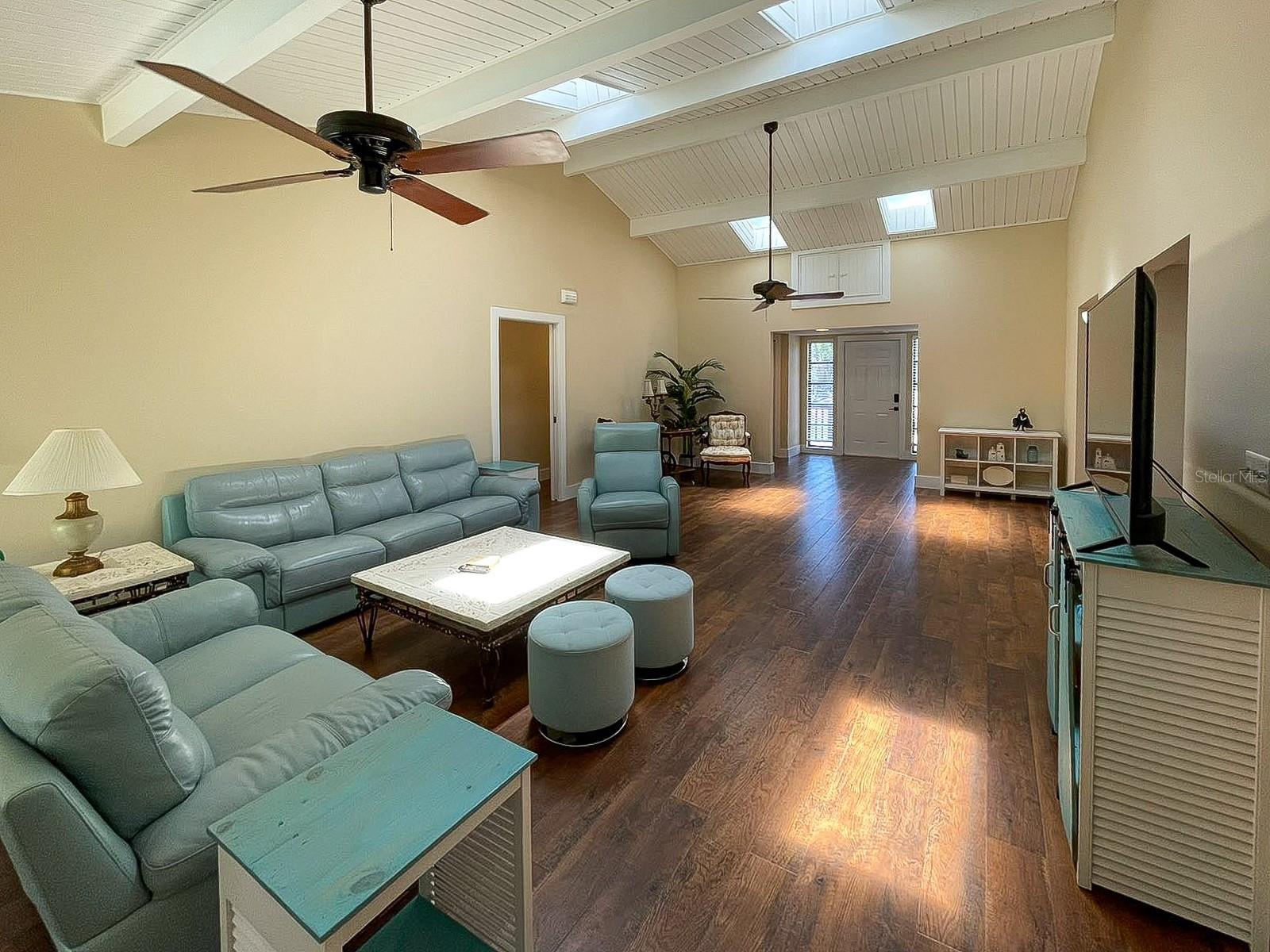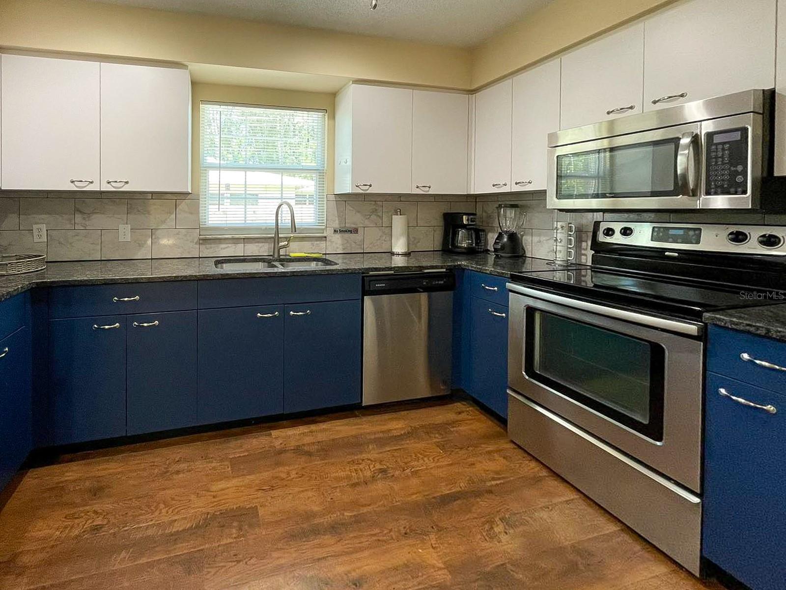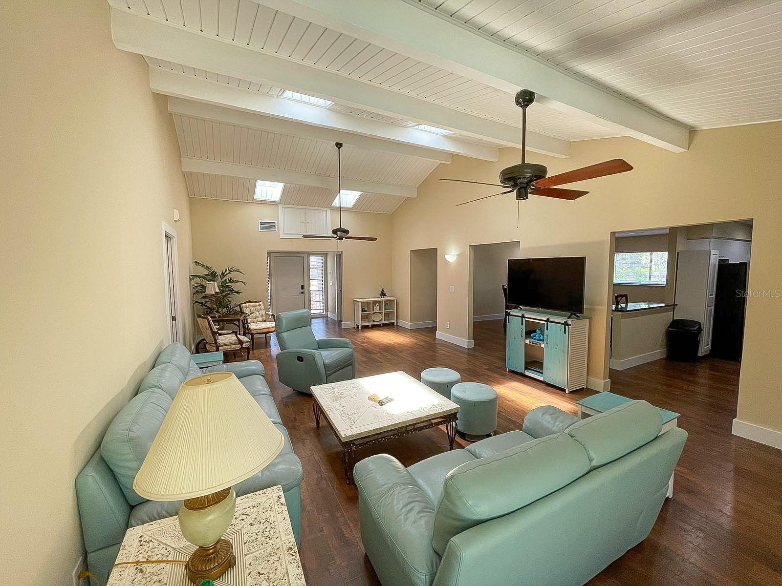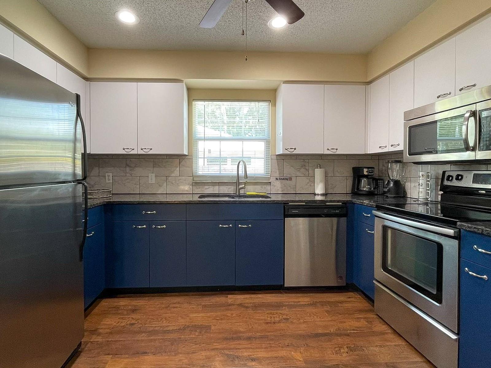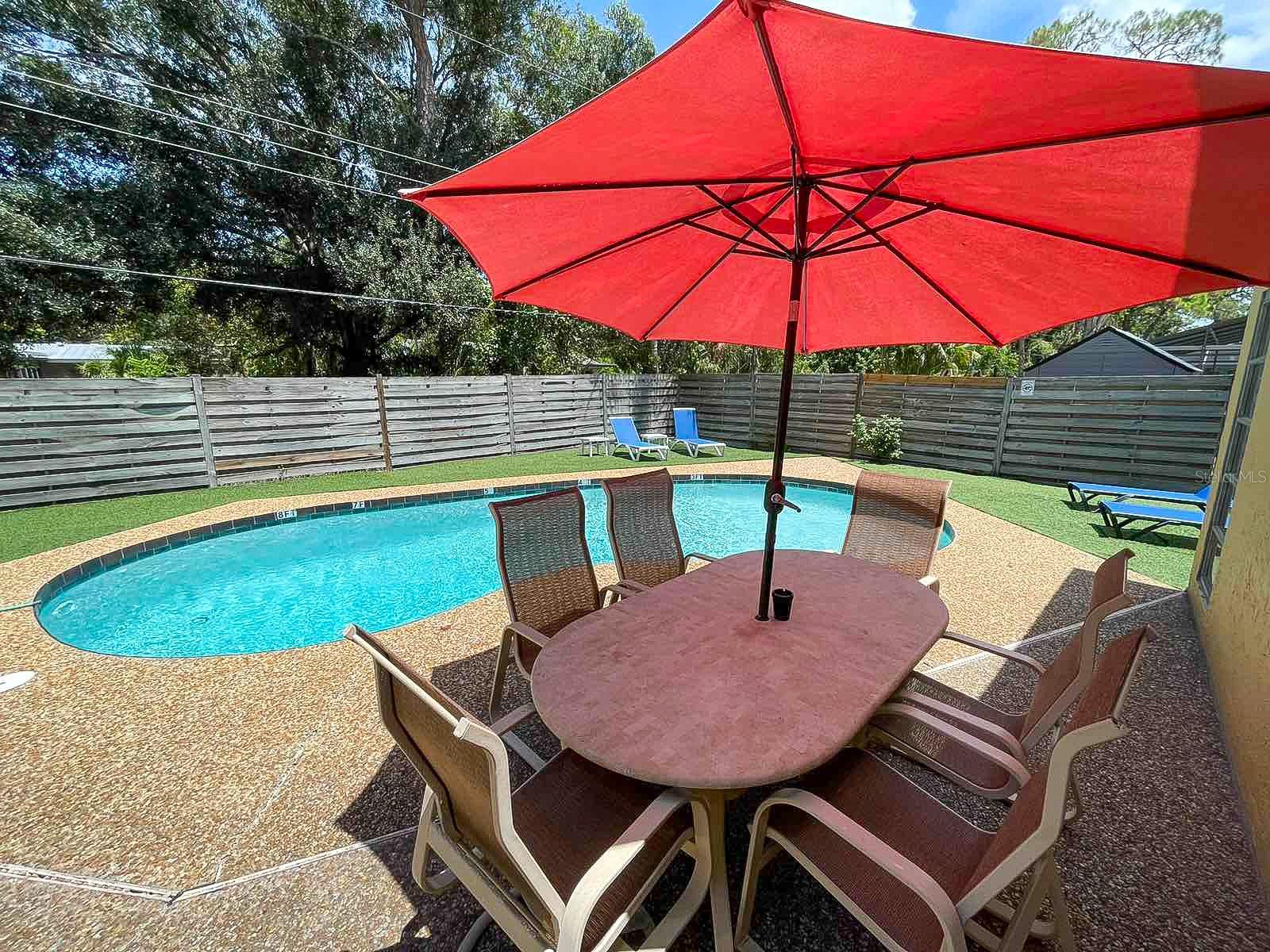 Discover this stunning 4-bedroom, 2-bath home nestled in a peaceful cul-de-sac with no HOA or CDD fees, ideally situated near Sarasota’s best beaches, shopping, dining, and downtown hotspots. Never flooded! Step inside to find a beautifully updated home with a bright, beachy vibe and impeccable attention to detail. The vaulted wood plank ceilings with skylights fill the home with natural light, creating an inviting and airy ambiance. Solid wood floors add warmth and elegance throughout the space. The chef’s kitchen is a showstopper, featuring custom blue cabinetry, stainless steel appliances, granite countertops, and a spacious pantry—perfect for meal prep and entertaining. Enjoy seamless indoor-outdoor living as the large living room flows effortlessly through sliding doors to the heated pebble-deck pool and entertaining area. The backyard is maintenance-free, allowing you to relax and enjoy year-round Florida living. Additional highlights include an oversized 2-car garage with ample space for parking, guests, and even your RV or recreational toys. This prime location offers walking distance to top-rated A schools and is less than 3.5 miles from stunning beaches, parks, fine dining, shopping, and your favorite Starbucks. This property is a rare find in Sarasota’s sought-after coastal community. Schedule your showing today to experience this gem firsthand!