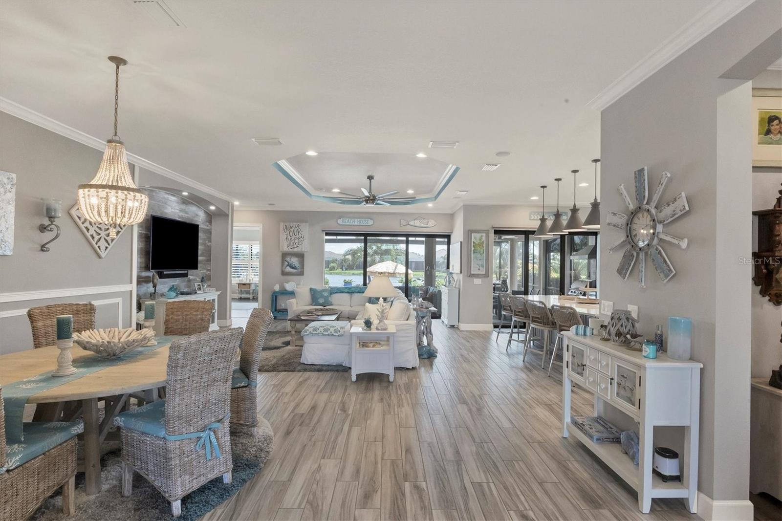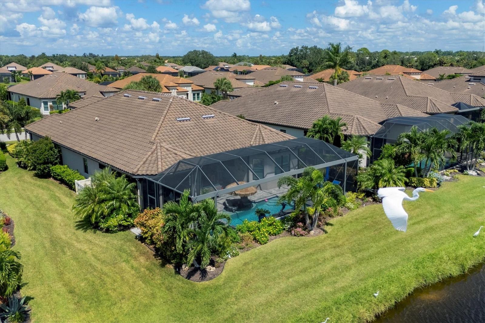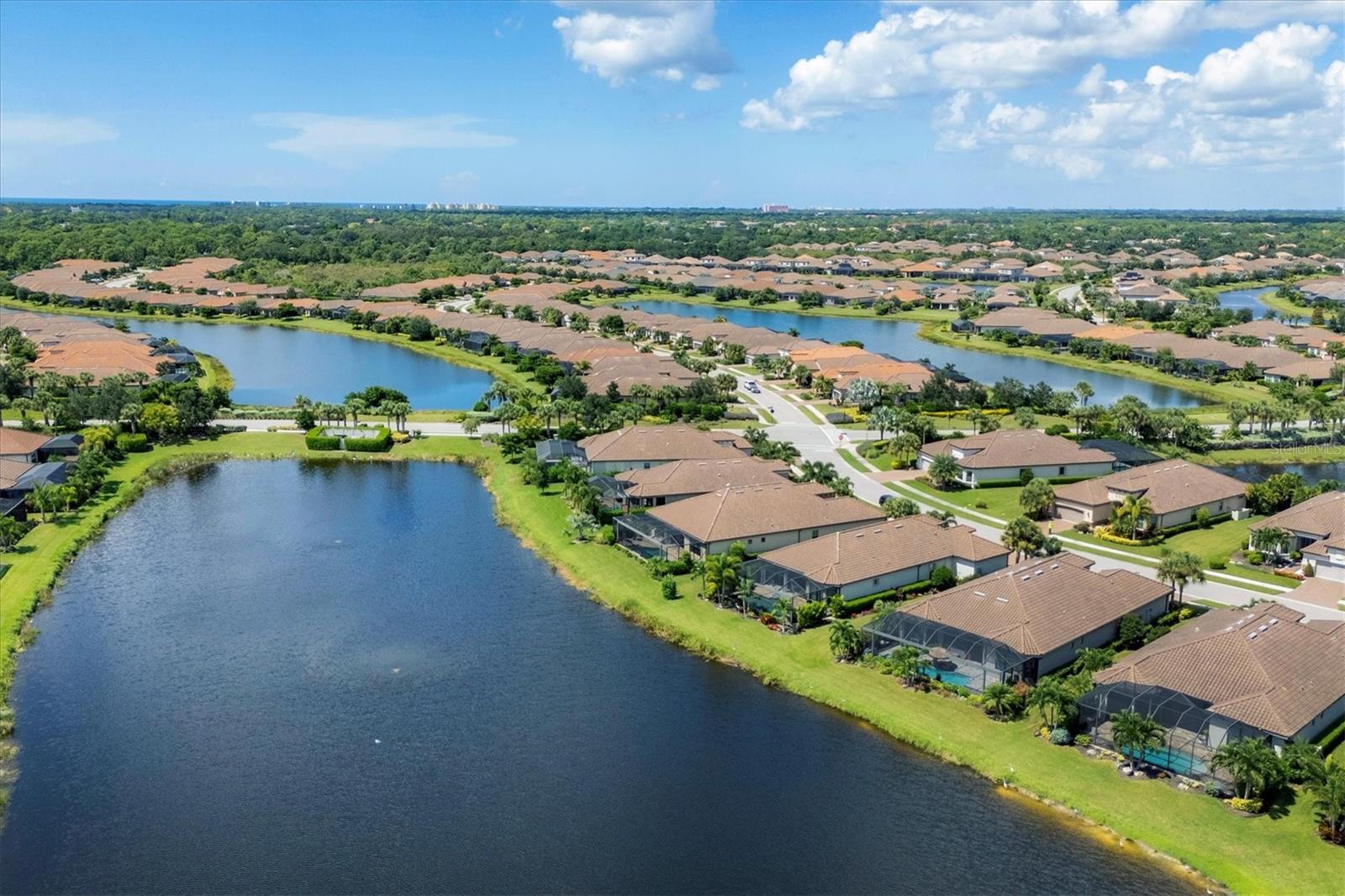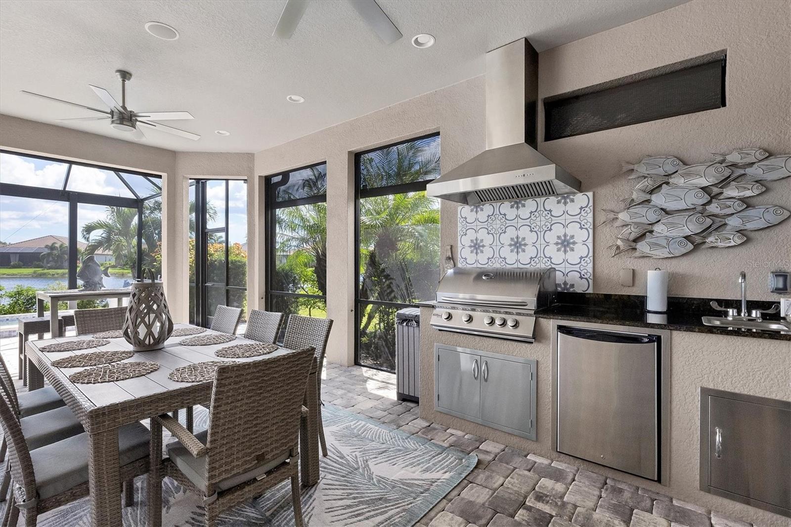 Welcome to your dream home! Nestled in the beautiful gated community of Esplanade on Palmer Ranch, this exquisite residence offers both luxury and comfort. Featuring 3 bedrooms, 3 bathrooms, and a versatile flex room, all with impeccable attention to detail. The open and airy layout showcases stylish, easy-to-maintain flooring throughout, eliminating carpet for a sleek look. The gourmet kitchen is a chef's paradise, with top-of-the-line appliances and a spacious island that includes convenient storage cabinets underneath, as well as premium quartz countertops and a stylish backsplash. Step outside to your private oasis, complete with a stunning saltwater pool and spa overlooking a serene lake, framed by a panoramic picture screen that offers breathtaking views. The outdoor space has been thoughtfully enhanced with an expansive patio, a built-in grill, and a covered lounge area, perfect for alfresco dining and entertaining. Enhanced with over $100K in upgrades. including smart home technology, smart screens hurricane shutters in the lanai, plank tile flooring, crown molding, plantation shutters, and hurricane-impact windows and doors. Esplanade is a resort-style community with top-notch amenities just steps from your door. Enjoy the nearby beach, on-site restaurant, fitness center, tennis and pickleball courts, and a dog park. This reputable community is celebrated for its exceptional lifestyle and resort-like atmosphere, ensuring that every day feels like a vacation. This home isn't just a place to live; it's a lifestyle statement!