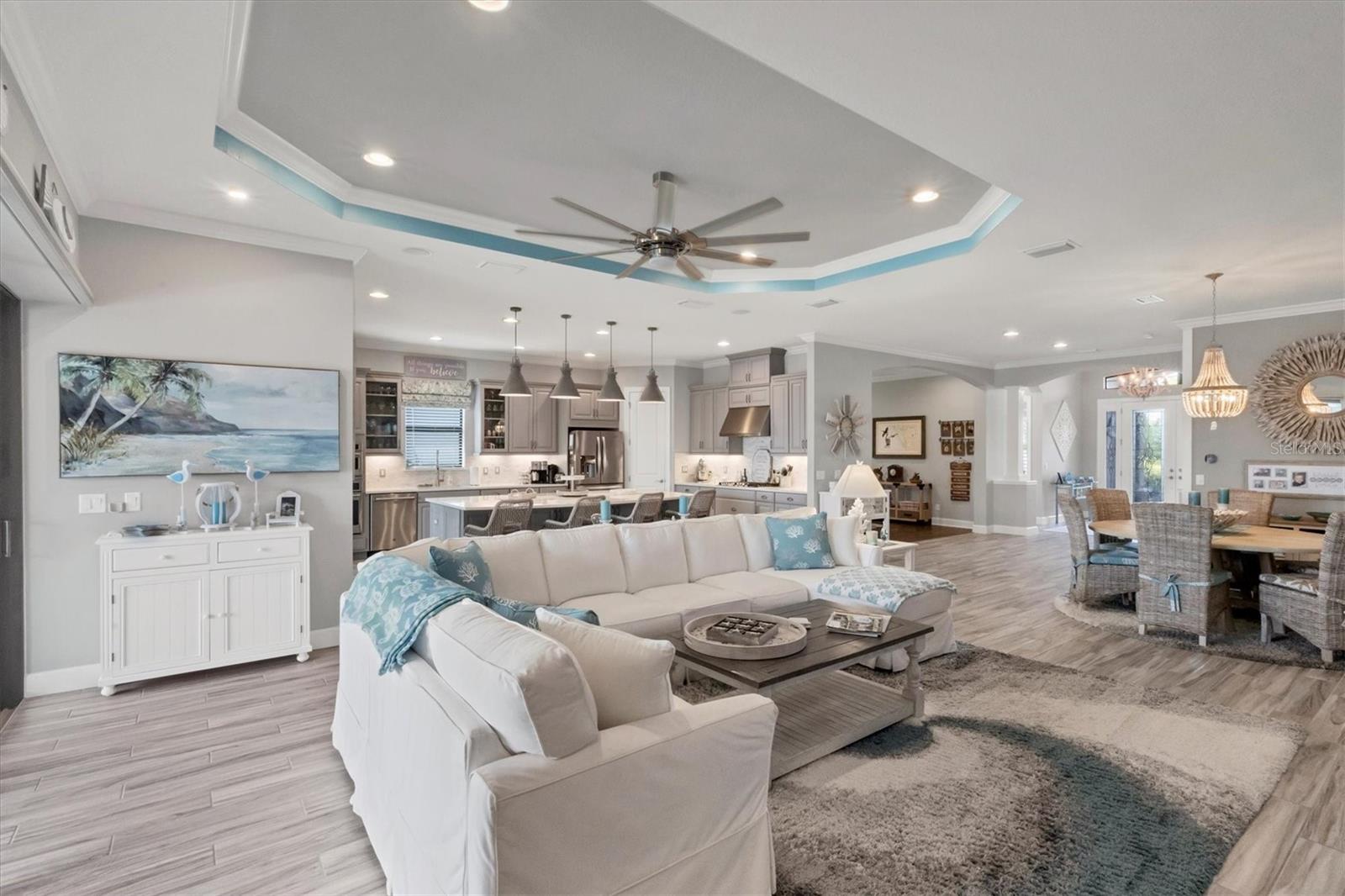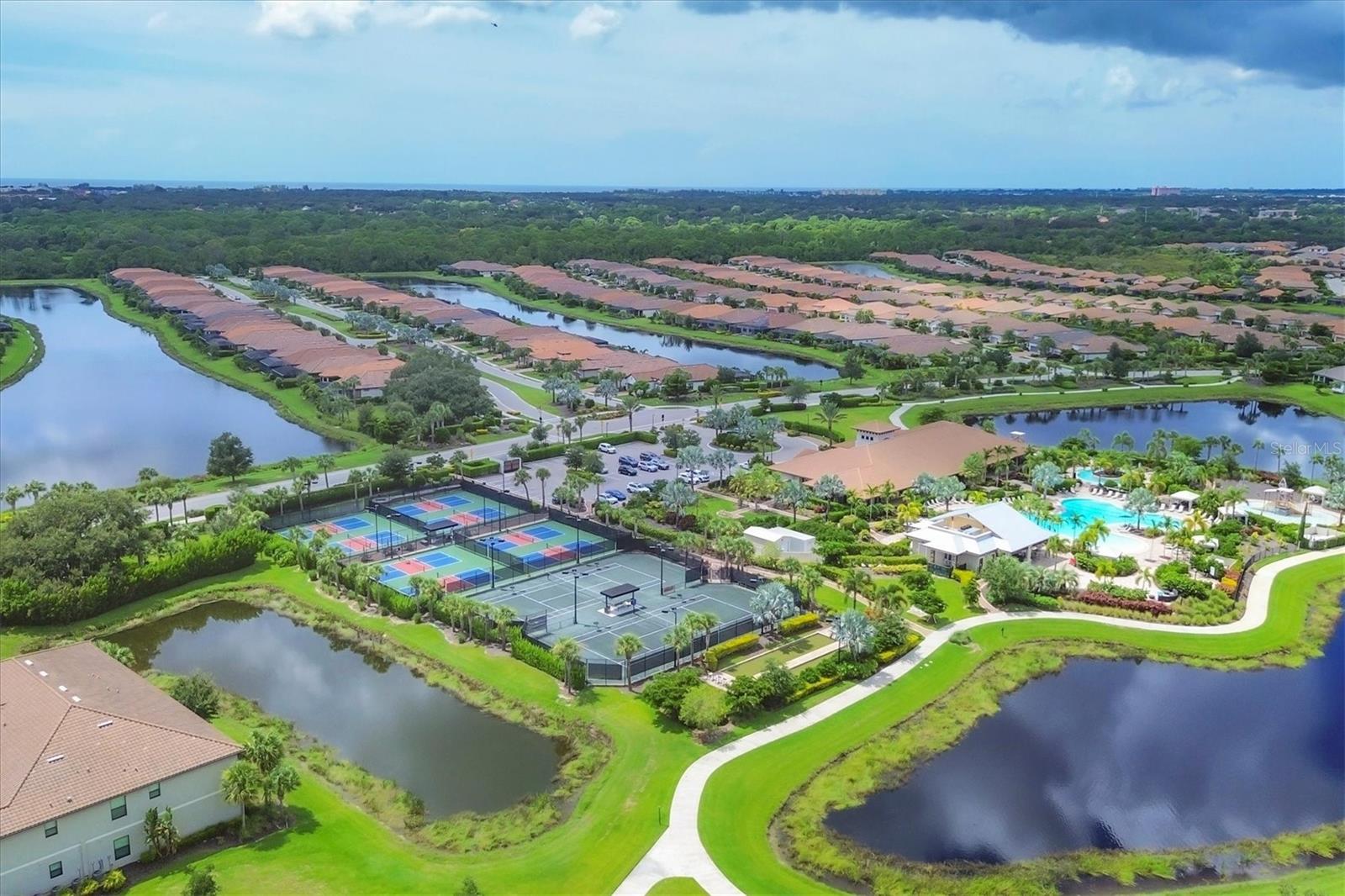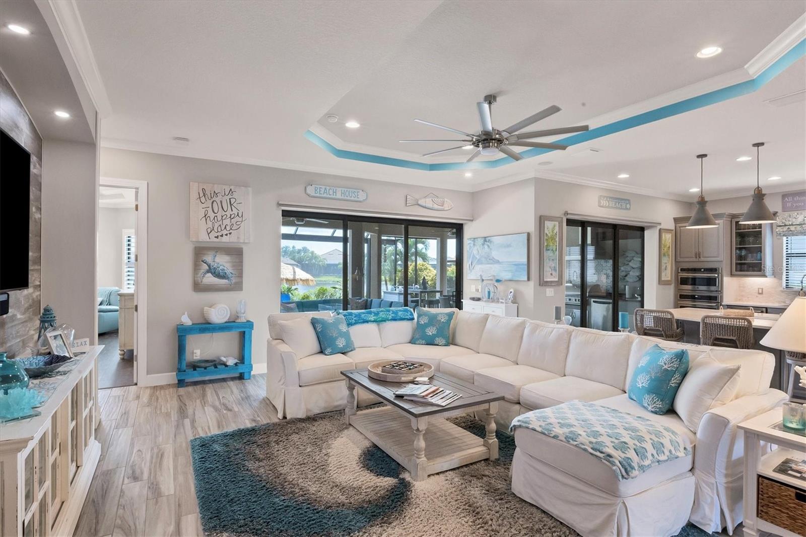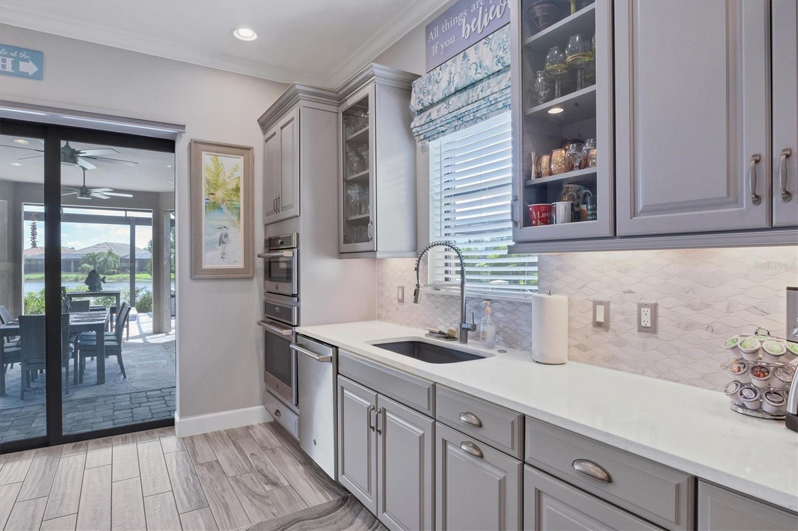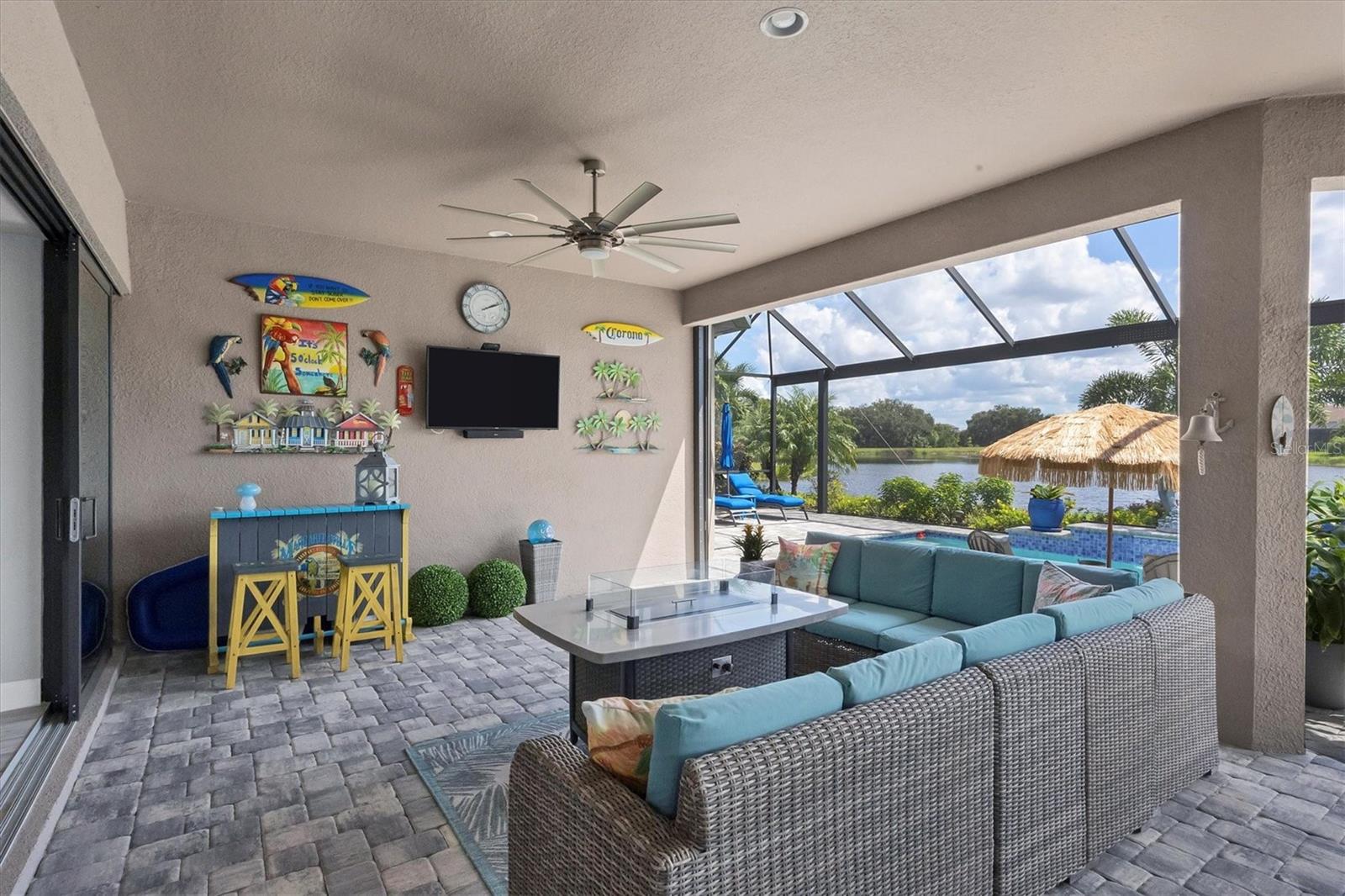 Welcome to your dream home! Nestled in the beautiful gated community of Esplanade on Palmer Ranch, this exquisite residence offers both luxury and comfort. Featuring 3 bedrooms, 3 bathrooms, and a versatile flex room, all with impeccable attention to detail. The open and airy layout showcases stylish, easy-to-maintain flooring throughout, eliminating carpet for a sleek look. The gourmet kitchen is a chef's paradise, with top-of-the-line appliances and a spacious island that includes convenient storage cabinets underneath, as well as premium quartz countertops and a stylish backsplash. Step outside to your private oasis, complete with a stunning saltwater pool and spa overlooking a serene lake, framed by a panoramic picture screen that offers breathtaking views. The outdoor space has been thoughtfully enhanced with an expansive patio, a built-in grill, and a covered lounge area, perfect for alfresco dining and entertaining. Enhanced with over $100K in upgrades. including smart home technology, smart screens hurricane shutters in the lanai, plank tile flooring, crown molding, plantation shutters, and hurricane-impact windows and doors. Esplanade is a resort-style community with top-notch amenities just steps from your door. Enjoy the nearby beach, on-site restaurant, fitness center, tennis and pickleball courts, and a dog park. This reputable community is celebrated for its exceptional lifestyle and resort-like atmosphere, ensuring that every day feels like a vacation. This home isn't just a place to live; it's a lifestyle statement!