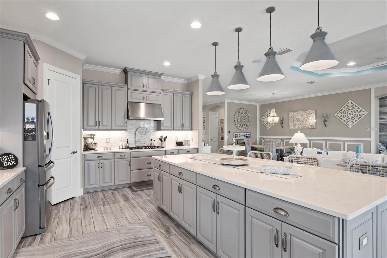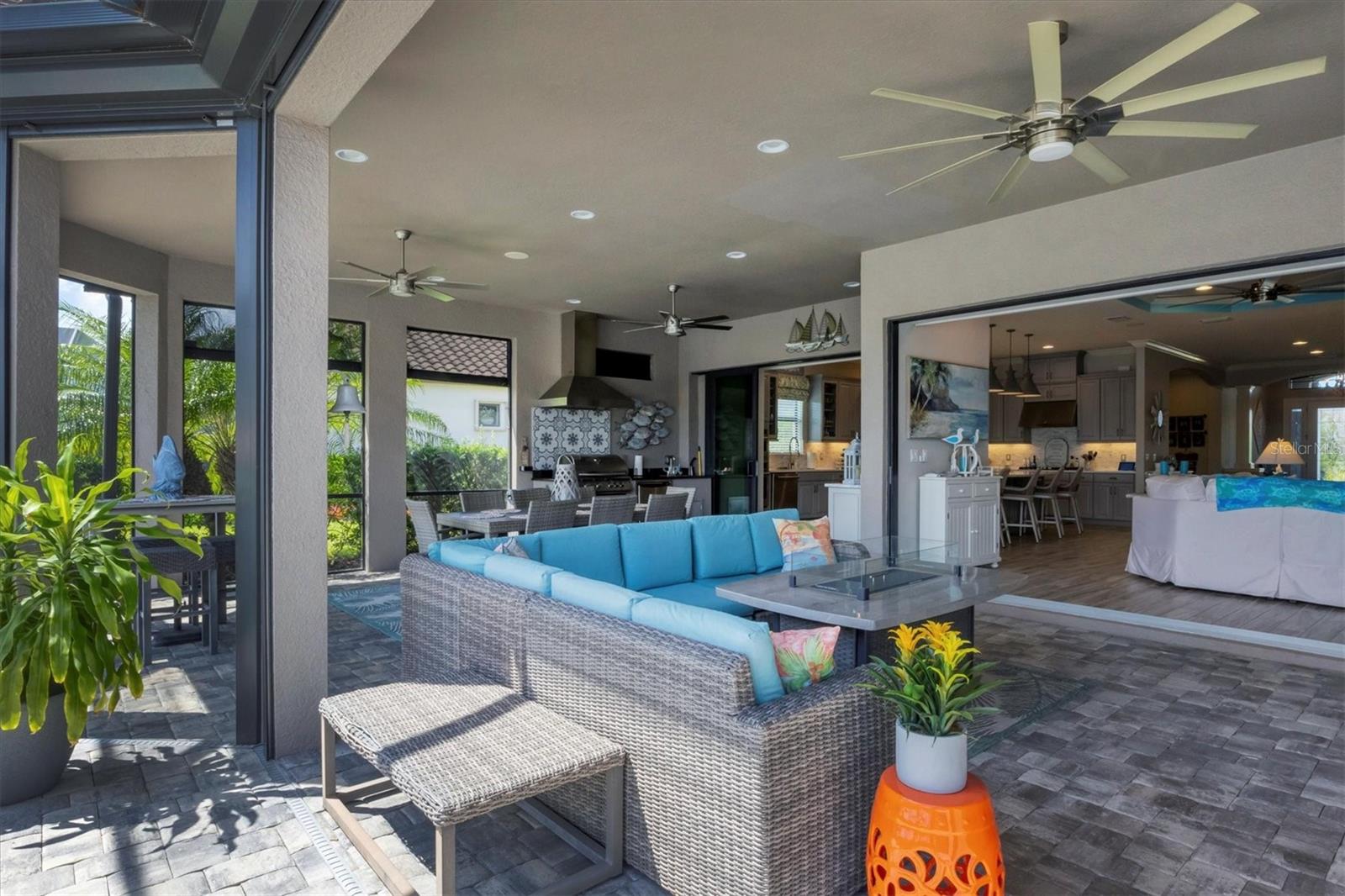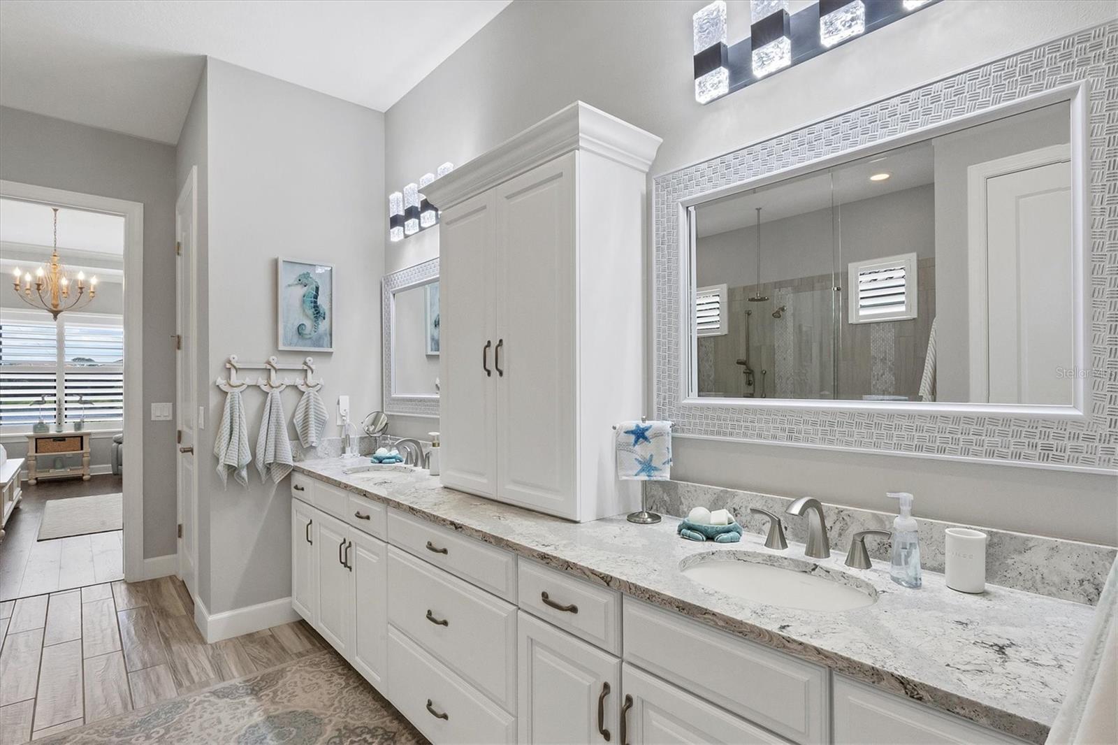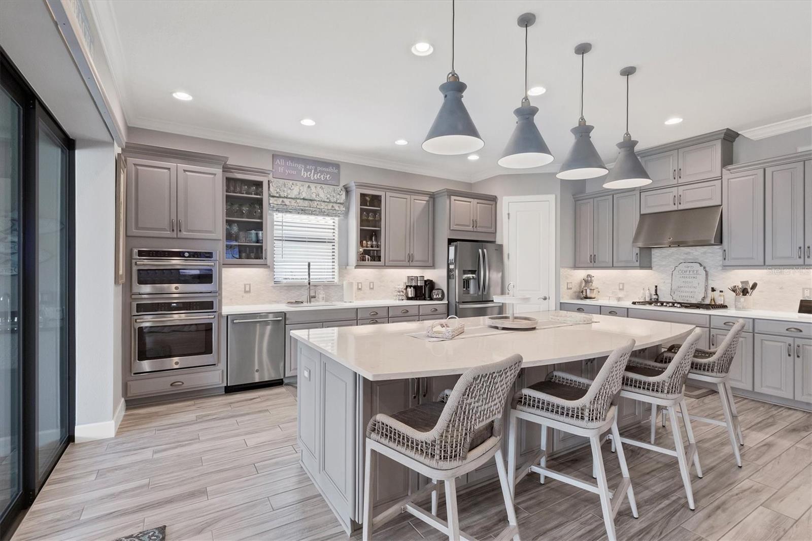 Welcome to your dream home! Nestled in the beautiful gated community of Esplanade on Palmer Ranch, this exquisite residence offers both luxury and comfort. Featuring 3 bedrooms, 3 bathrooms, and a versatile flex room, all with impeccable attention to detail. The open and airy layout showcases stylish, easy-to-maintain flooring throughout, eliminating carpet for a sleek look. The gourmet kitchen is a chef's paradise, with top-of-the-line appliances and a spacious island that includes convenient storage cabinets underneath, as well as premium quartz countertops and a stylish backsplash. Step outside to your private oasis, complete with a stunning saltwater pool and spa overlooking a serene lake, framed by a panoramic picture screen that offers breathtaking views. The outdoor space has been thoughtfully enhanced with an expansive patio, a built-in grill, and a covered lounge area, perfect for alfresco dining and entertaining. Enhanced with over $100K in upgrades. including smart home technology, smart screens hurricane shutters in the lanai, plank tile flooring, crown molding, plantation shutters, and hurricane-impact windows and doors. Esplanade is a resort-style community with top-notch amenities just steps from your door. Enjoy the nearby beach, on-site restaurant, fitness center, tennis and pickleball courts, and a dog park. This reputable community is celebrated for its exceptional lifestyle and resort-like atmosphere, ensuring that every day feels like a vacation. This home isn't just a place to live; it's a lifestyle statement!