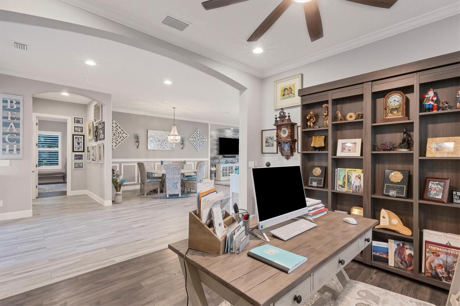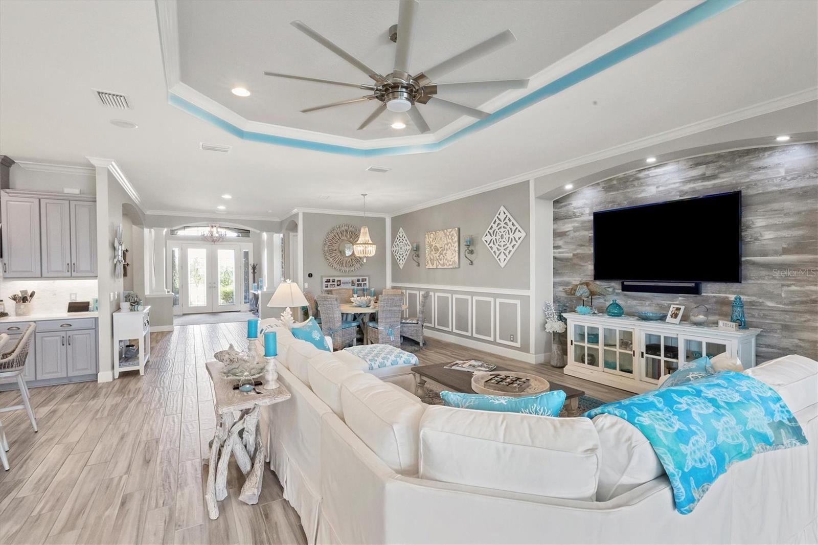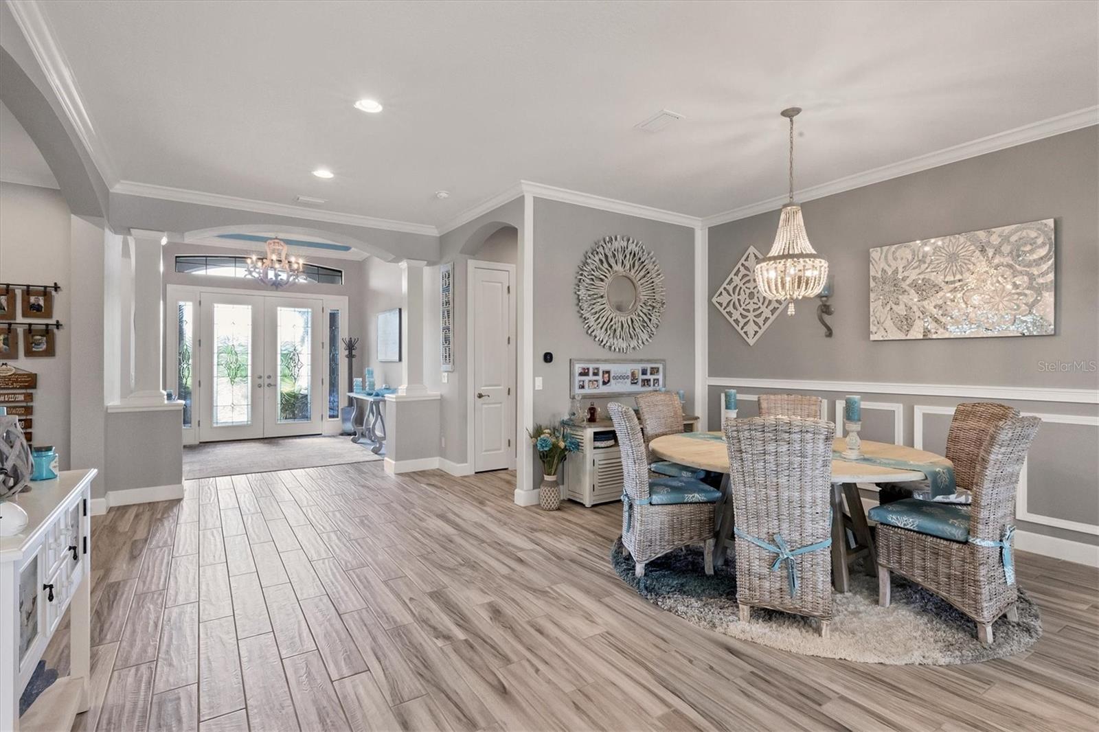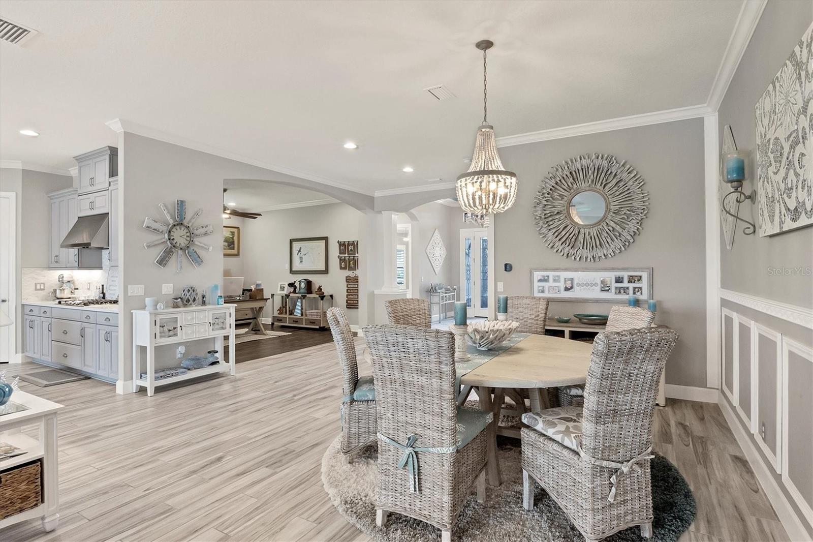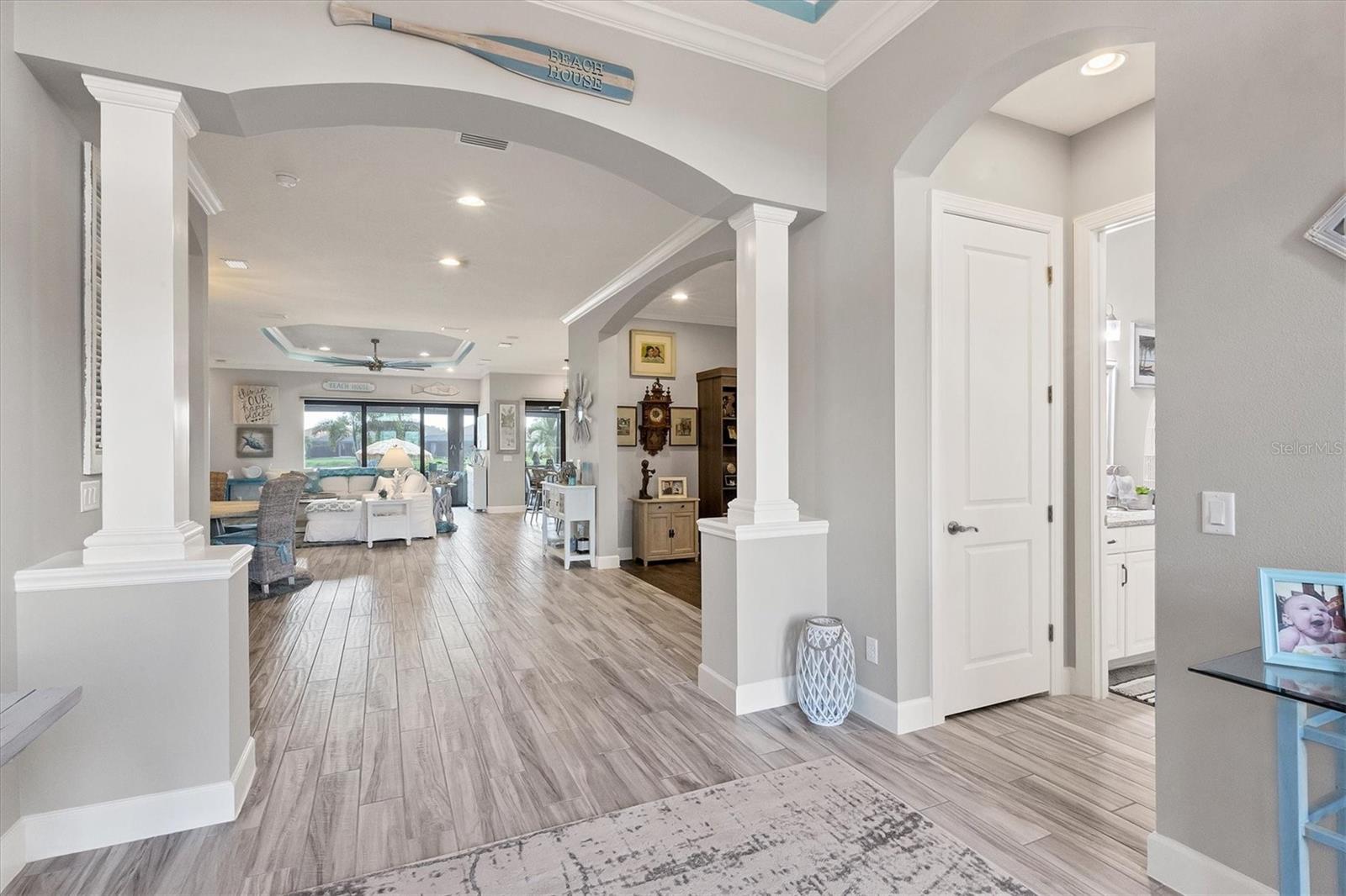 Welcome to your dream home! Nestled in the beautiful gated community of Esplanade on Palmer Ranch, this exquisite residence offers both luxury and comfort. Featuring 3 bedrooms, 3 bathrooms, and a versatile flex room, all with impeccable attention to detail. The open and airy layout showcases stylish, easy-to-maintain flooring throughout, eliminating carpet for a sleek look. The gourmet kitchen is a chef's paradise, with top-of-the-line appliances and a spacious island that includes convenient storage cabinets underneath, as well as premium quartz countertops and a stylish backsplash. Step outside to your private oasis, complete with a stunning saltwater pool and spa overlooking a serene lake, framed by a panoramic picture screen that offers breathtaking views. The outdoor space has been thoughtfully enhanced with an expansive patio, a built-in grill, and a covered lounge area, perfect for alfresco dining and entertaining. Enhanced with over $100K in upgrades. including smart home technology, smart screens hurricane shutters in the lanai, plank tile flooring, crown molding, plantation shutters, and hurricane-impact windows and doors. Esplanade is a resort-style community with top-notch amenities just steps from your door. Enjoy the nearby beach, on-site restaurant, fitness center, tennis and pickleball courts, and a dog park. This reputable community is celebrated for its exceptional lifestyle and resort-like atmosphere, ensuring that every day feels like a vacation. This home isn't just a place to live; it's a lifestyle statement!