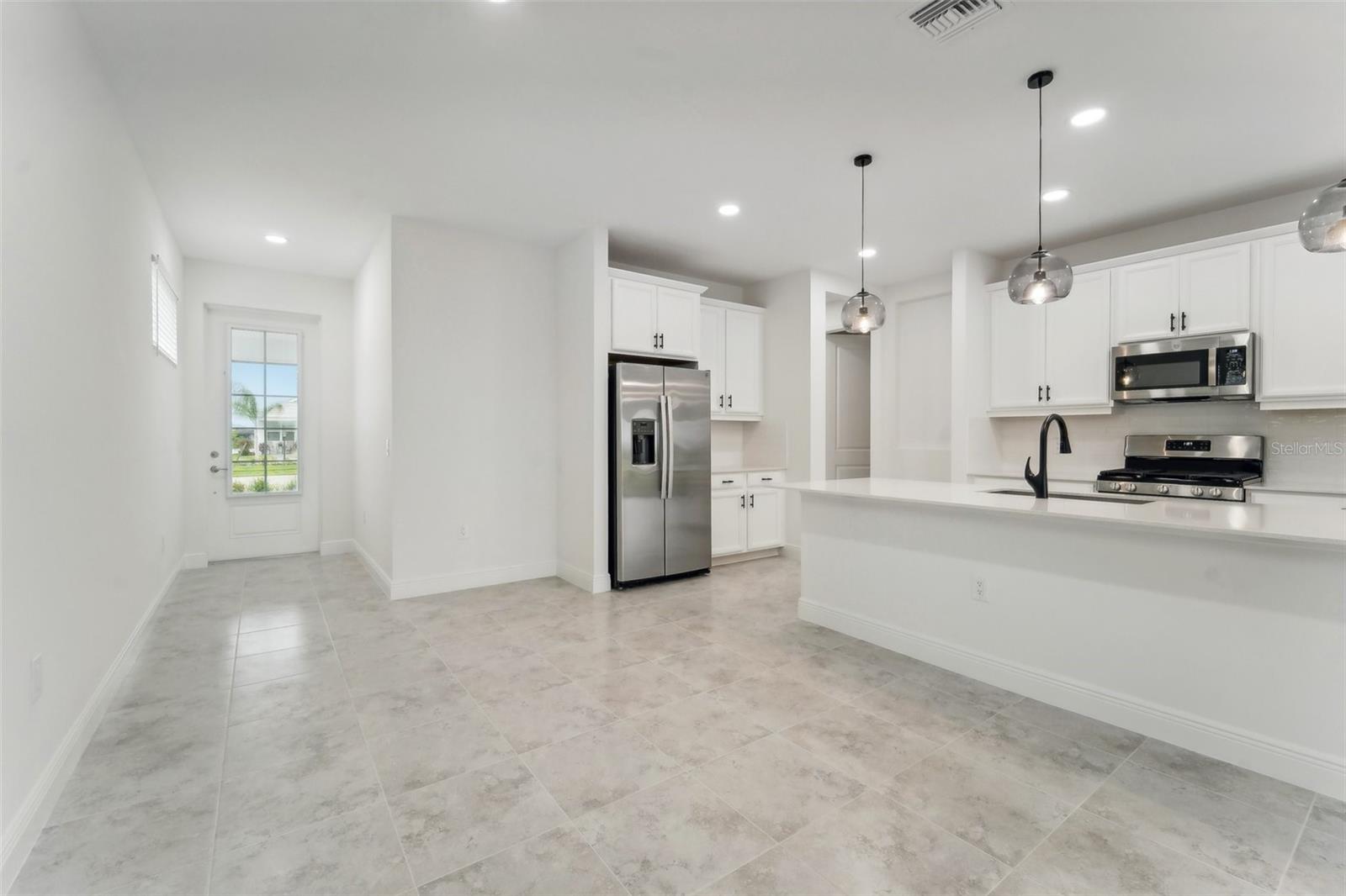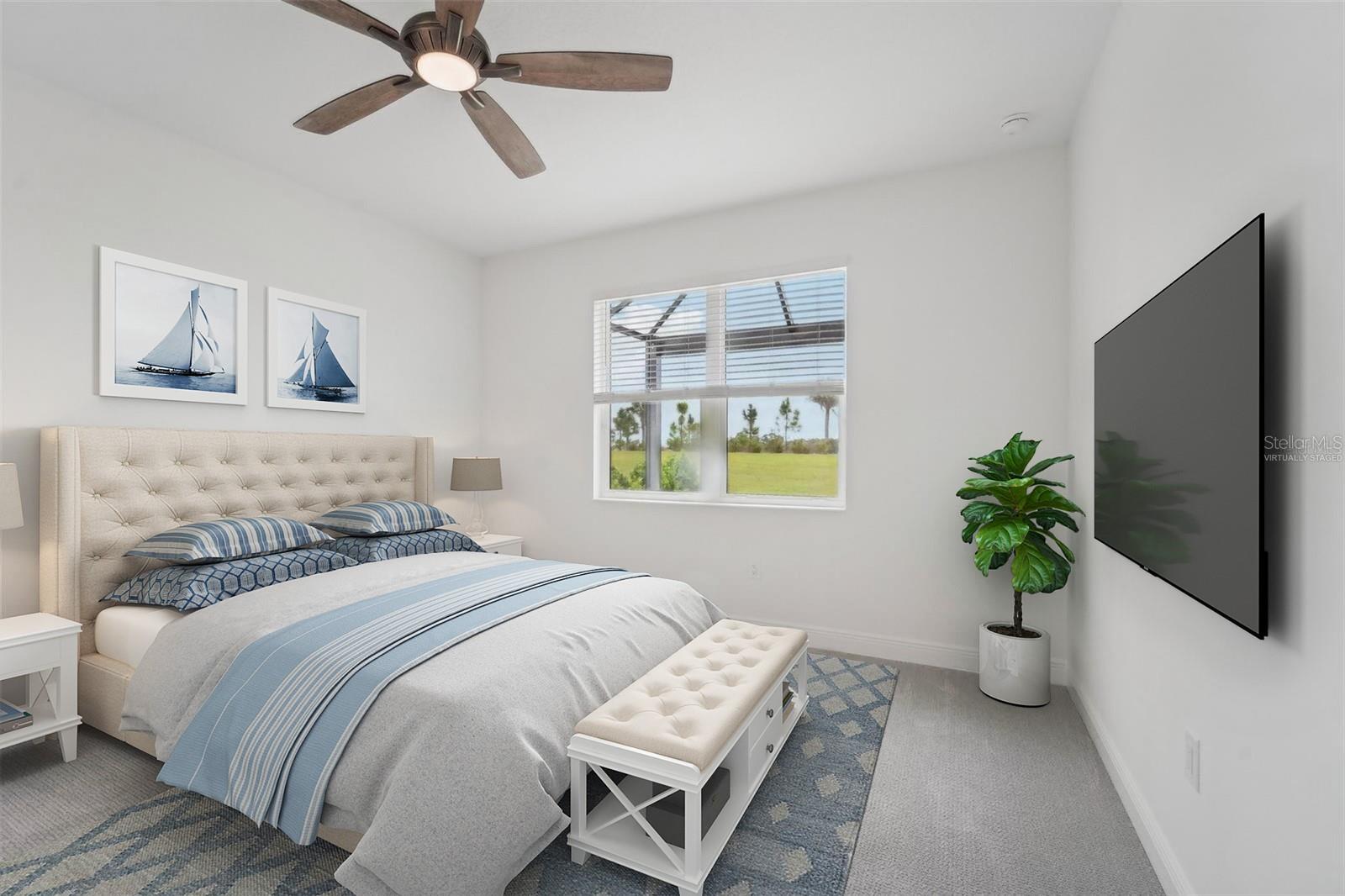 Experience this exceptional, brand-new Tiller model in the highly sought-after Lakehouse Cove community. Never lived in and located in a maintenance-free neighborhood, this home offers three bedrooms and two bathrooms with a thoughtful split floor plan. As you enter through the epoxy-finished garage, the secondary bedrooms are positioned at the front, while the primary suite is nestled at the rear for added privacy. The open-concept living space is anchored by a large quartz island, complemented by GE appliances, making it perfect for entertaining. Relax in the extended screened-in lanai, complete with an outdoor fan, and enjoy serene views with no rear neighbors. Each bedroom and the great room feature ceiling fans and pull-down blinds for added comfort. The home comes unfurnished and includes a GE washer and dryer, a utility sink, and extra cabinetry in the laundry room for convenient storage. Elegant Magnisi 18x18 tile flows throughout the living spaces, with plush Wildwood Valley carpeting in the bedrooms. Lakehouse Cove offers fantastic amenities, including a resort-style pool, fitness center, and clubhouse equipped with a full kitchen for gatherings. Outdoor enthusiasts will love the pickleball and tennis courts. Plus, downtown Sarasota, beautiful beaches, and the University Town Center Mall are just a short 25-minute drive away. While Waterside at Lakewood Ranch is a five-minute drive away! Don’t miss the chance to make this your dream home!