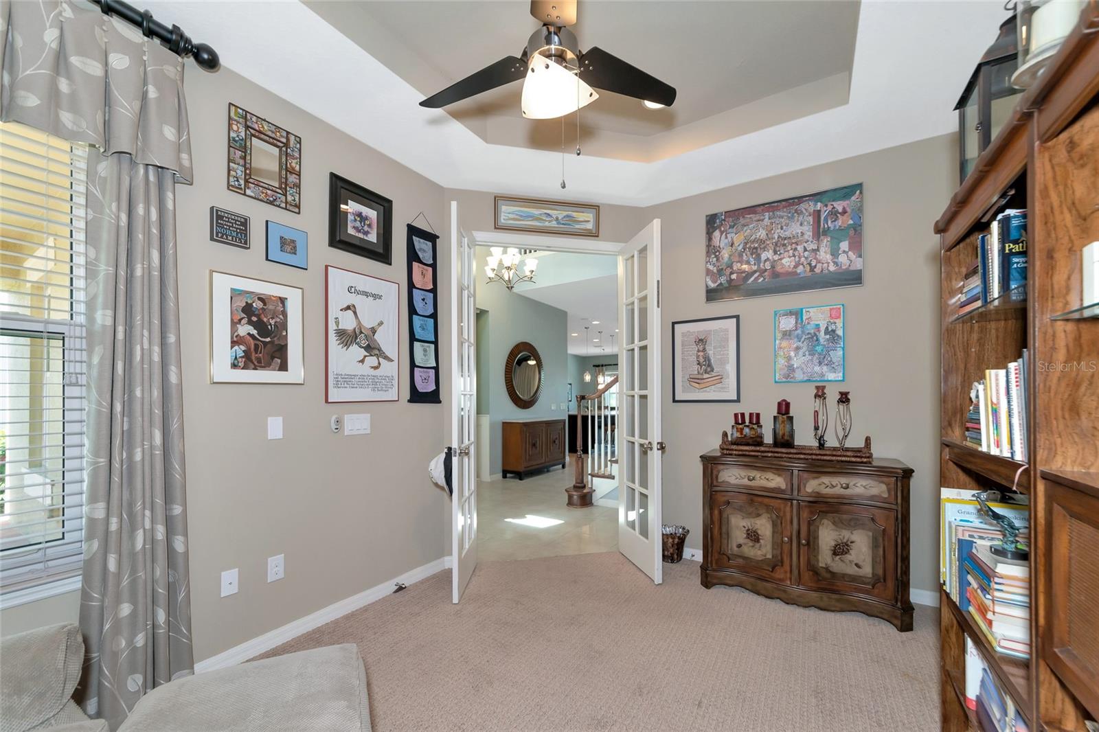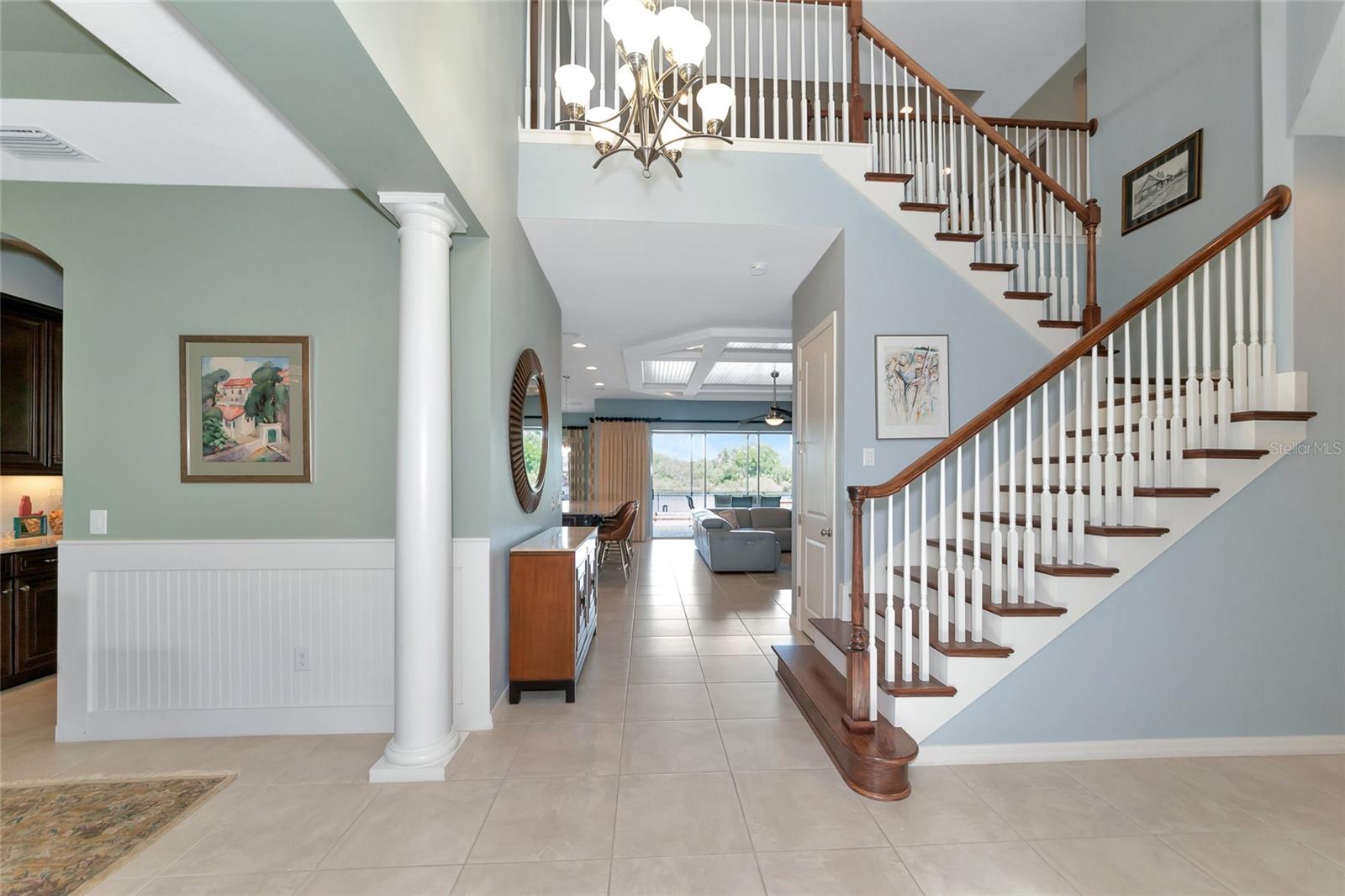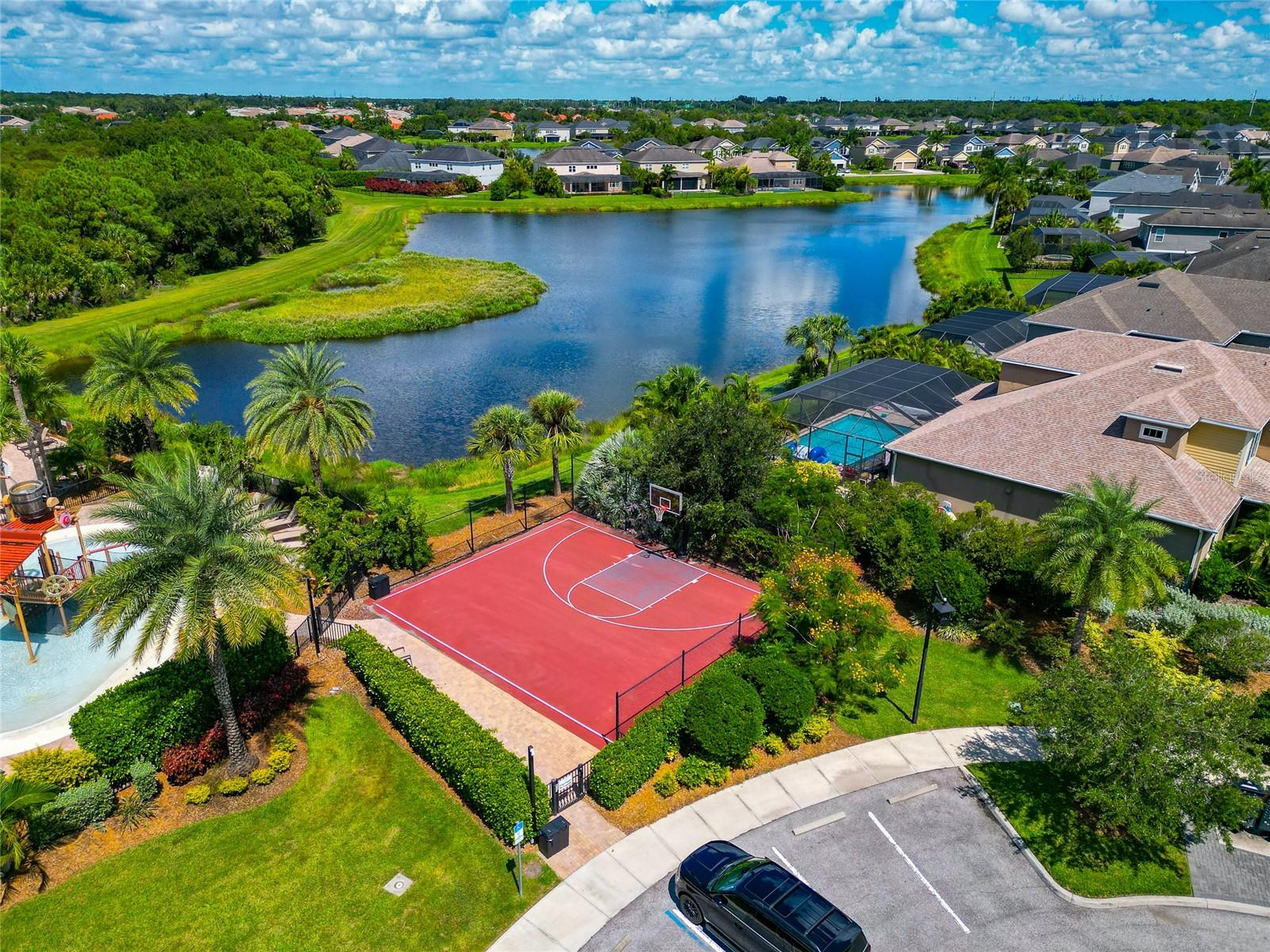 Come discover Arbor Lakes at Palmer Ranch, a life-style community. Just minutes to Siesta Key Beach, downtown Sarasota, top rated schools, shopping, restaurants, public parks, Legacy Bike Trail, and easy access to I-75. One owner home of 4087 sqft, meticulously maintained, designer features and finishes throughout. Your tranquil homesite has panoramic lake views both front and back. Private blue water heated pool, jetted spa, cascading waterfall, large lanai, and fenced yard. First floor primary suite w/ front den and separate dining room. A gourmet show kitchen and great room design w/ a butler’s, walk-in pantry, and half-bath. Designer floor tile in all active living areas of the first floor. Second floor bedrooms 2, 3, and 4 w/ ample closet space; grand loft measuring 21’ x 19’ served by wet bar w/ sub-Zero beverage refrigerator; and a media room of 17’ x 15’. A coffered high ceiling great room that measures 19’ x 20’ overlooks large lanai and heated pool w/ waterfall, spa, and a grand lake view. Open show kitchen w/ large island of 3cm quartz measuring 125” x 69” and large deep stainless-steel island sink and reverse osmosis filter system. Stainless steel premium GE Cafe series appliances and 2024 LG refrigerator, two wall convention ovens, separate convection microwave, five burner 36” natural gas cooktop w/ professional hood vent to the outside. Wood kitchen raised panel cabinets, 42” upper cabinets, topped w/crown molding, under cabinet lighting w/ light valance, soft close design cabinets, granite 3cm countertops, mosaic glass and stone backsplash. Kitchen café measures 12’ x 11.5’ overlooking lanai pool and lake view. Primary suite 20’ x 17’ w/ stepped ceiling, spa-like bath, twin sinks, amble cabinets and drawers, walk-in shower, and deep walk-in closet. Hurricane shutters, front first floor windows are impact glass and impact designed front door. Three-car garage, natural gas hot water, two a/c units zoned first and second floors. Reclaimed irrigation water for homesite that is professionally landscaped.