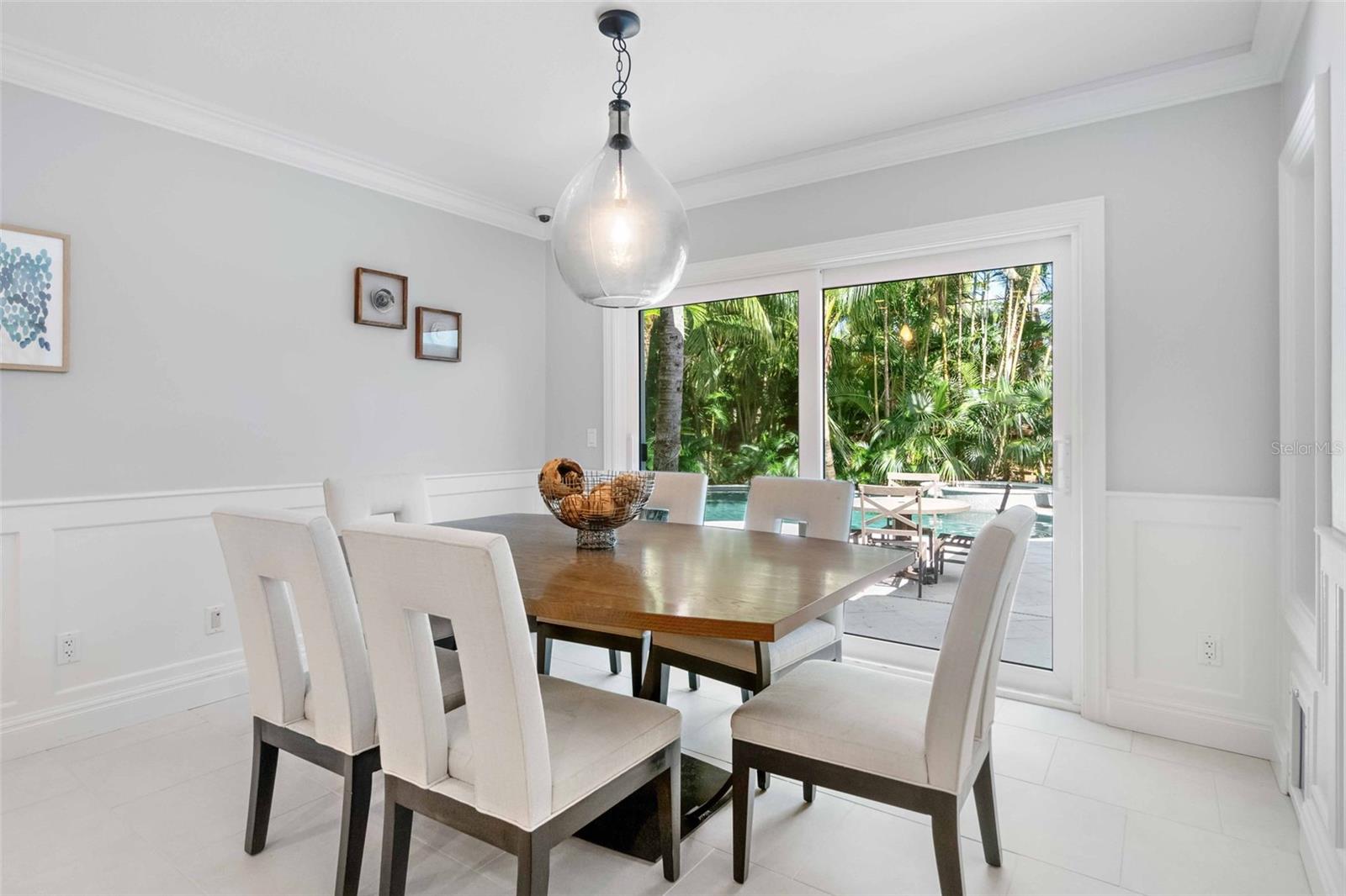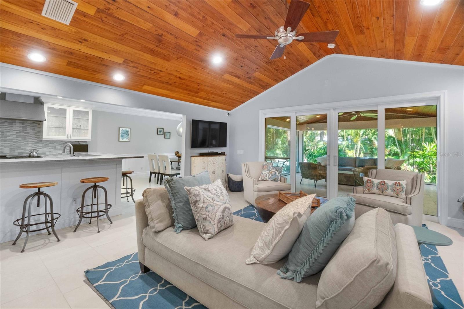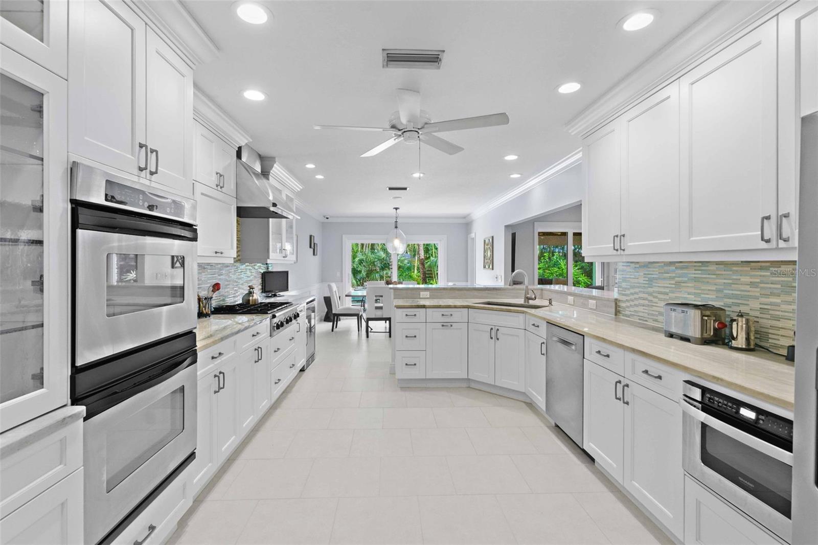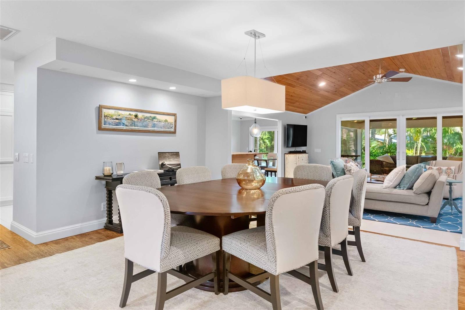 This beautifully remodeled classic home is tucked away in one of Sarasota’s most coveted neighborhoods, offering a perfect blend of elegance and warmth. Picture yourself just steps from the charming Southside Village, Morton’s Market, the top-rated Southside School, and minutes from downtown Sarasota’s vibrant arts scene and world-renowned beaches. As you approach under a canopy of trees, sunlight dances through, casting a soft glow on the lush tropical landscape that frames this stunning residence. Boasting 5 bedrooms and 5 ½ baths across two spacious levels, this home offers a generous 4,956 square feet of living space. Beyond the five bedrooms, you'll find a bonus room, an office, and a flexible space that can serve as a gym or an additional bedroom. The welcoming front porch invites you to sit and stay awhile, while the soothing coastal palette and natural light greet you as you step inside, offering serene views that extend out to the backyard oasis and custom pool. The timeless charm of Old Florida is woven throughout this home, from the pecky cypress ceilings and crown molding to the plantation shutters and built-in features. Wood and tile floors complement the gourmet kitchen, which flows seamlessly into the great room, creating a bright and airy space perfect for gatherings. The chef’s kitchen, designed for culinary delight, includes an expansive breakfast bar, chic tile backsplash, granite countertops, stainless steel appliances, a gas range, a large walk-in pantry, and a wine cooler. For more formal occasions, the large dining room, with its gorgeous wood-planked ceiling, serves as a perfect bridge between the front living room and the impressive great room, where sliding doors open to extend the living space outdoors. Upstairs, the flexible bonus room features a wet bar, mini refrigerator, and a balcony overlooking the lush backyard, perfect for entertaining or relaxing. The guest suite, complete with an en-suite bath, offers privacy and comfort. The spacious owner’s retreat is a sanctuary of its own, with a spa-like en-suite bathroom, floor-to-ceiling windows, and direct access to the pool. The open floorplan also includes a mother-in-law suite with a morning kitchen, as well as a junior suite with two additional bedrooms and a shared bath. A built-in desk and cabinetry make the home office both functional and stylish. Outside, the covered living area, complete with an outdoor kitchen, invites relaxation. The saltwater pool and heated spa are surrounded by lush tropical landscaping and privacy fencing, offering a peaceful retreat where you can fully embrace Sarasota’s year-round sunshine. Additional features include a gas fireplace, tankless water heater, a new outdoor grill, a newer pool pump, and a two-car garage. Come experience the best of Sarasota living in this exquisite home, where timeless beauty and modern amenities meet in perfect harmony.