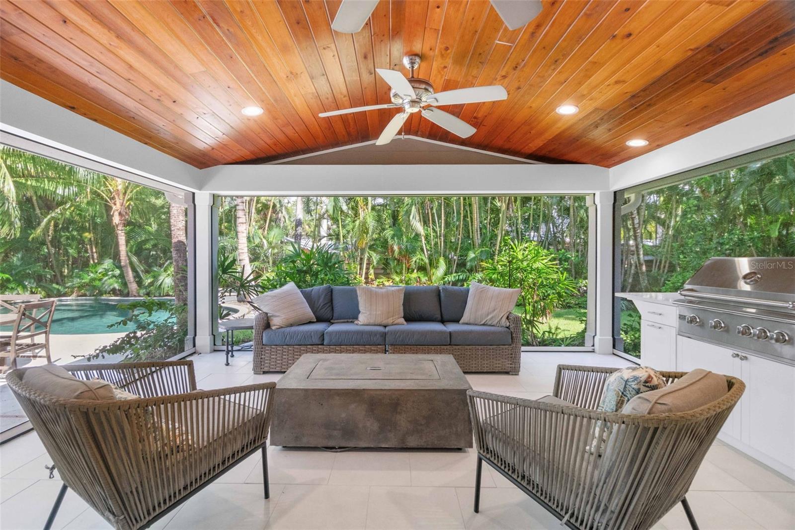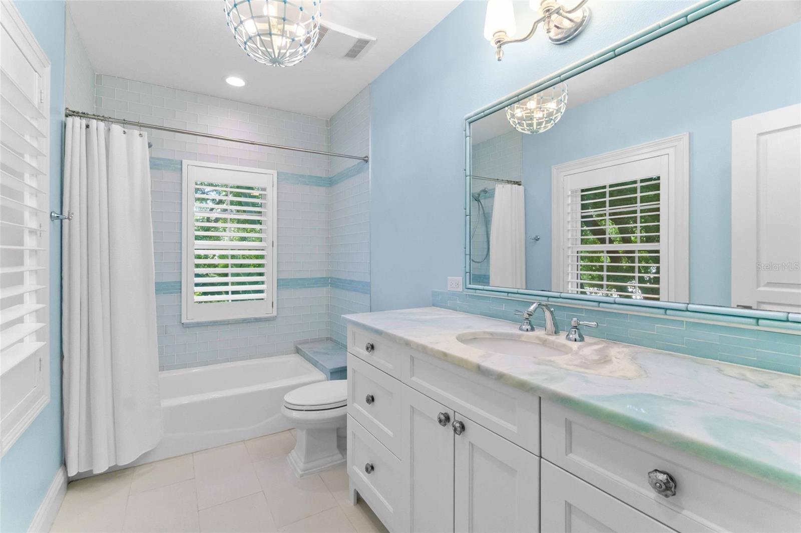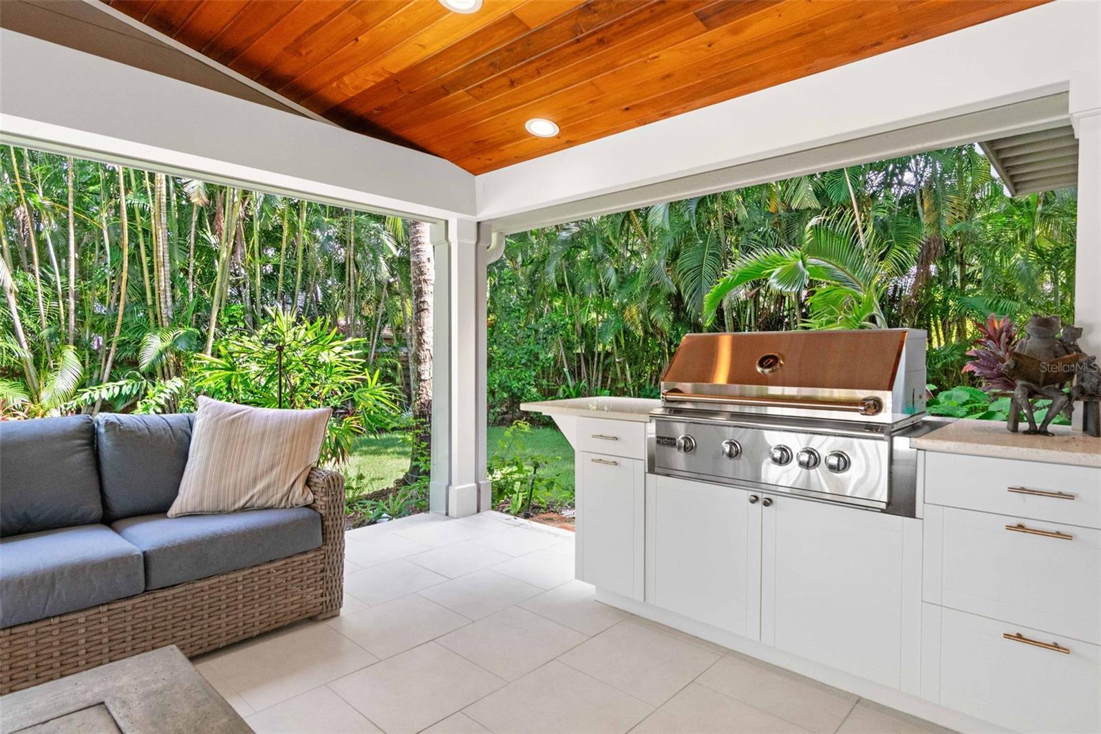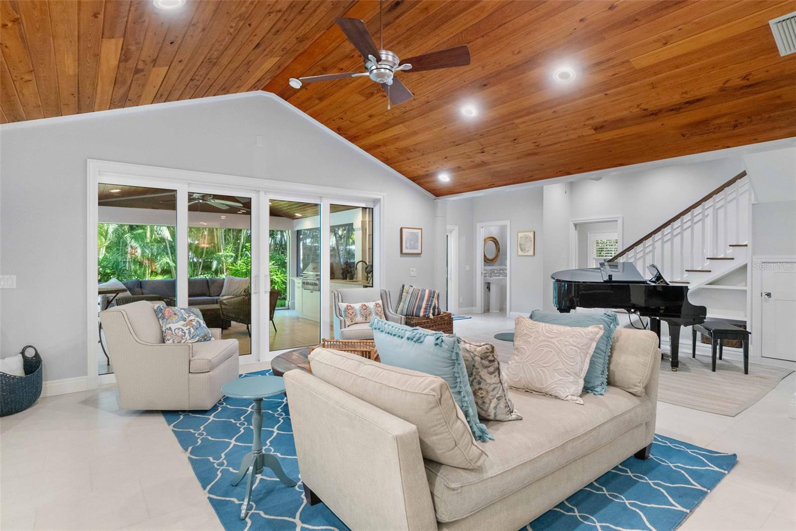 This beautifully remodeled classic home is tucked away in one of Sarasota’s most coveted neighborhoods, offering a perfect blend of elegance and warmth. Picture yourself just steps from the charming Southside Village, Morton’s Market, the top-rated Southside School, and minutes from downtown Sarasota’s vibrant arts scene and world-renowned beaches. As you approach under a canopy of trees, sunlight dances through, casting a soft glow on the lush tropical landscape that frames this stunning residence. Boasting 5 bedrooms and 5 ½ baths across two spacious levels, this home offers a generous 4,956 square feet of living space. Beyond the five bedrooms, you'll find a bonus room, an office, and a flexible space that can serve as a gym or an additional bedroom. The welcoming front porch invites you to sit and stay awhile, while the soothing coastal palette and natural light greet you as you step inside, offering serene views that extend out to the backyard oasis and custom pool. The timeless charm of Old Florida is woven throughout this home, from the pecky cypress ceilings and crown molding to the plantation shutters and built-in features. Wood and tile floors complement the gourmet kitchen, which flows seamlessly into the great room, creating a bright and airy space perfect for gatherings. The chef’s kitchen, designed for culinary delight, includes an expansive breakfast bar, chic tile backsplash, granite countertops, stainless steel appliances, a gas range, a large walk-in pantry, and a wine cooler. For more formal occasions, the large dining room, with its gorgeous wood-planked ceiling, serves as a perfect bridge between the front living room and the impressive great room, where sliding doors open to extend the living space outdoors. Upstairs, the flexible bonus room features a wet bar, mini refrigerator, and a balcony overlooking the lush backyard, perfect for entertaining or relaxing. The guest suite, complete with an en-suite bath, offers privacy and comfort. The spacious owner’s retreat is a sanctuary of its own, with a spa-like en-suite bathroom, floor-to-ceiling windows, and direct access to the pool. The open floorplan also includes a mother-in-law suite with a morning kitchen, as well as a junior suite with two additional bedrooms and a shared bath. A built-in desk and cabinetry make the home office both functional and stylish. Outside, the covered living area, complete with an outdoor kitchen, invites relaxation. The saltwater pool and heated spa are surrounded by lush tropical landscaping and privacy fencing, offering a peaceful retreat where you can fully embrace Sarasota’s year-round sunshine. Additional features include a gas fireplace, tankless water heater, a new outdoor grill, a newer pool pump, and a two-car garage. Come experience the best of Sarasota living in this exquisite home, where timeless beauty and modern amenities meet in perfect harmony.