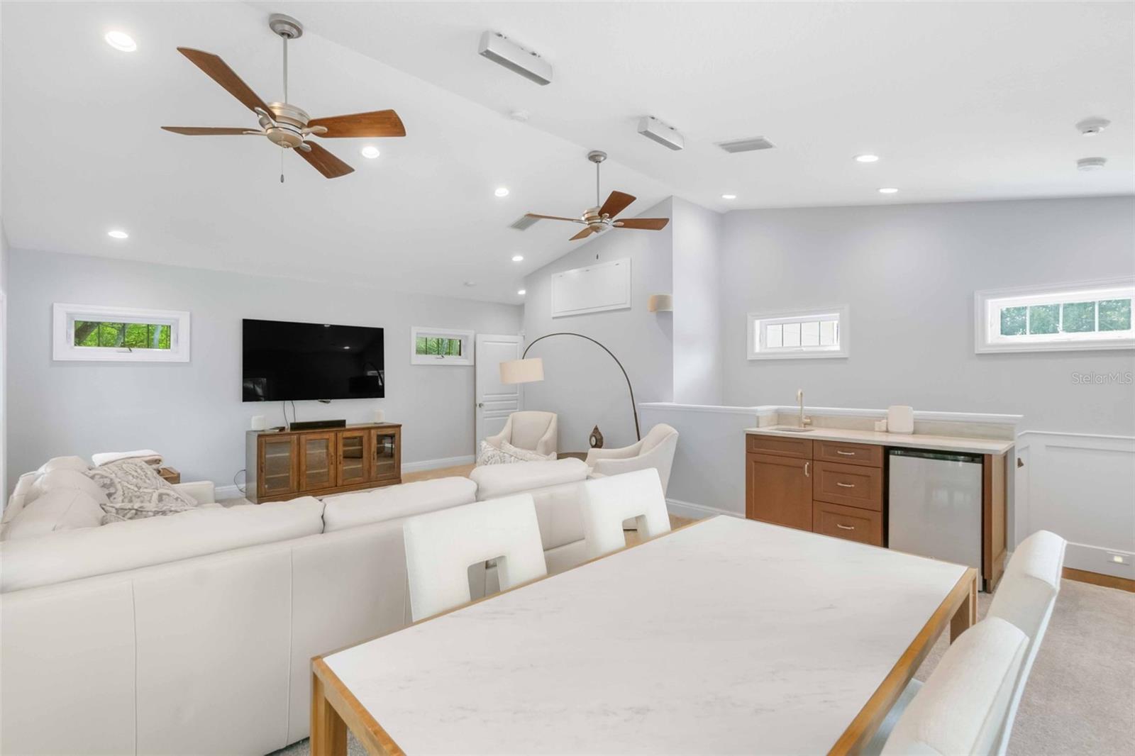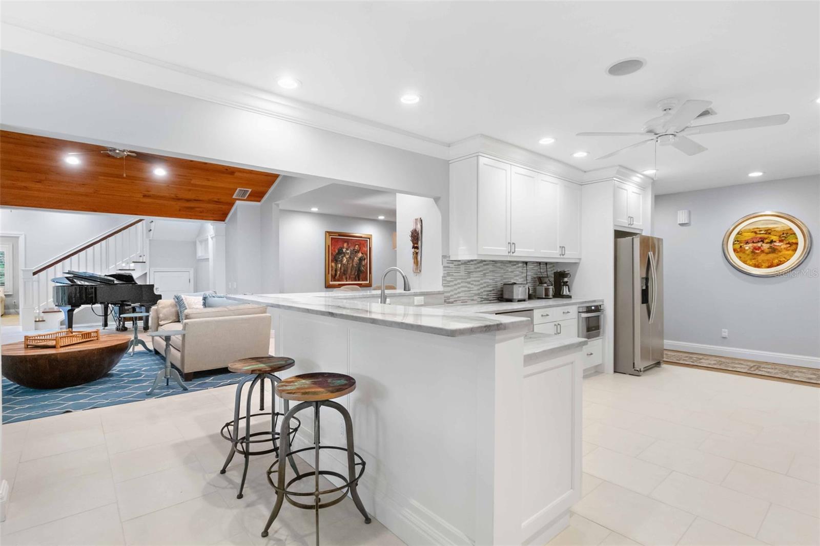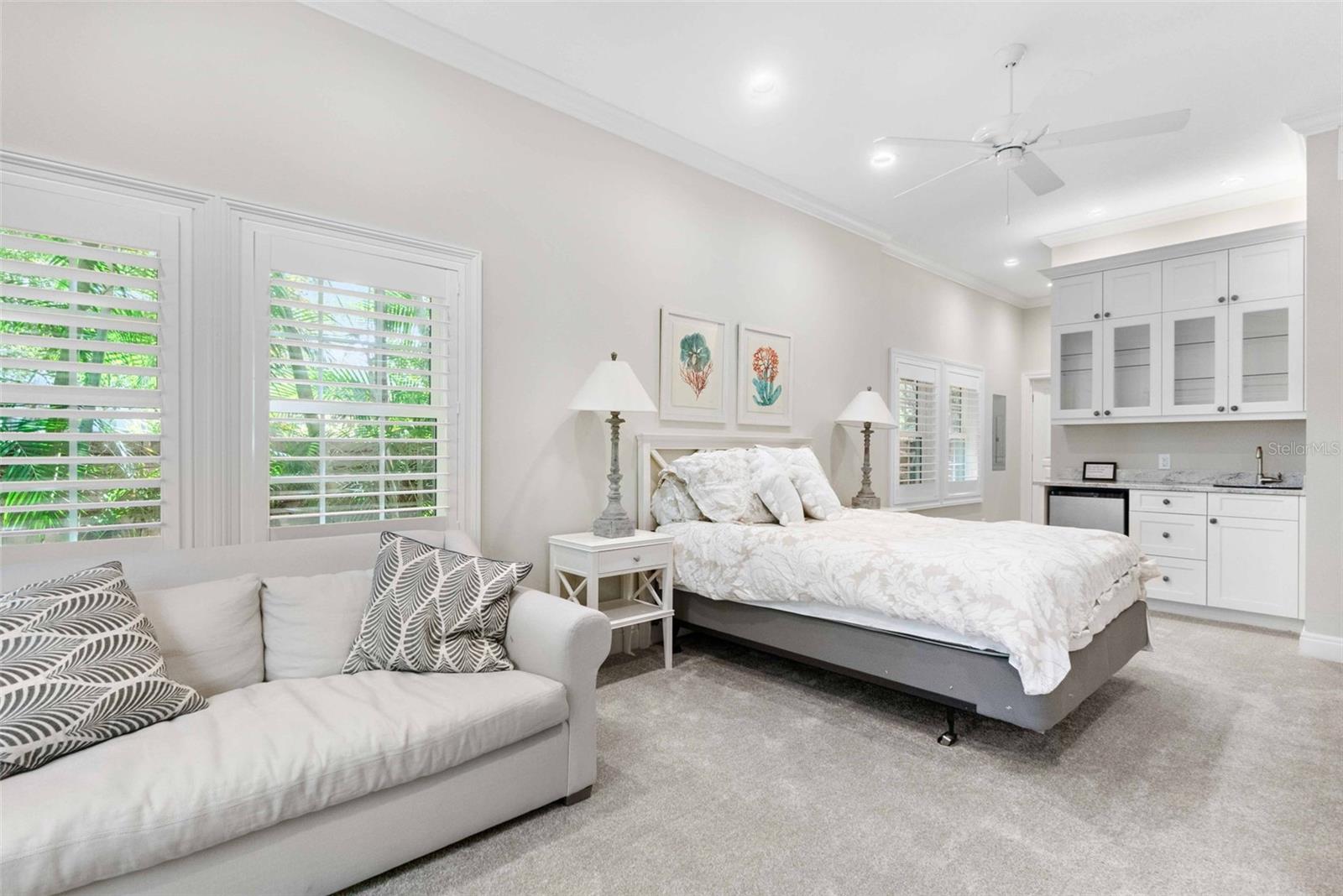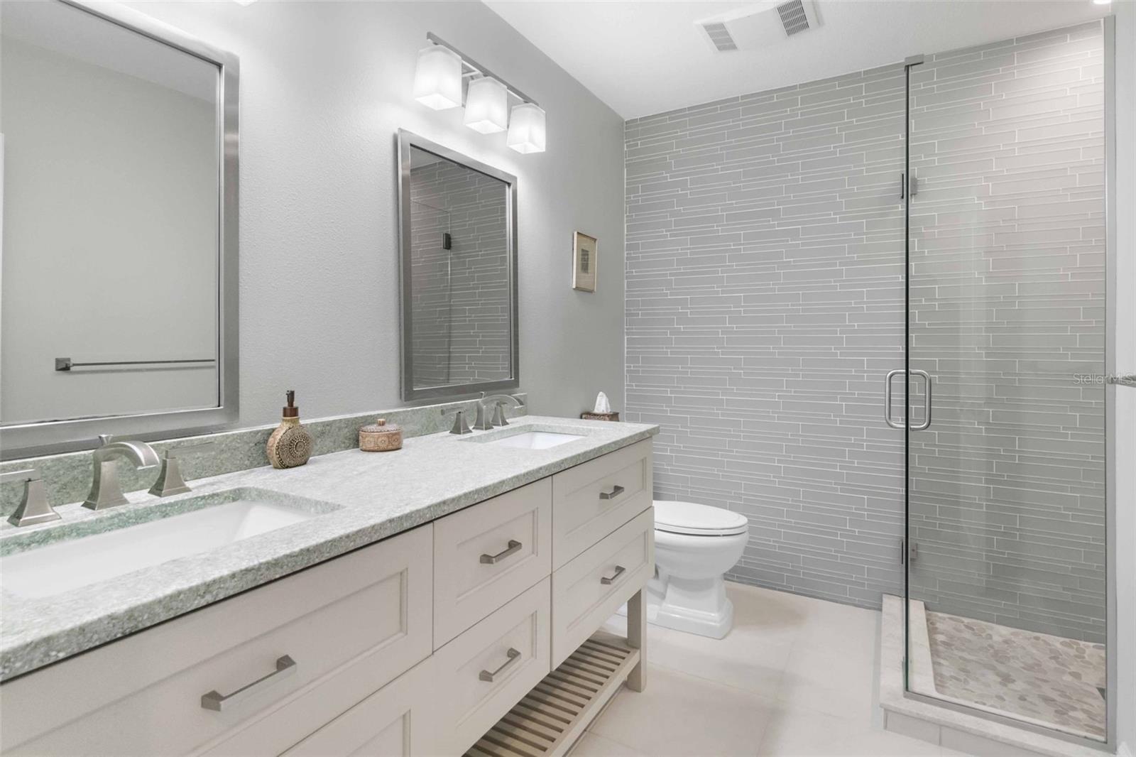 This beautifully remodeled classic home is tucked away in one of Sarasota’s most coveted neighborhoods, offering a perfect blend of elegance and warmth. Picture yourself just steps from the charming Southside Village, Morton’s Market, the top-rated Southside School, and minutes from downtown Sarasota’s vibrant arts scene and world-renowned beaches. As you approach under a canopy of trees, sunlight dances through, casting a soft glow on the lush tropical landscape that frames this stunning residence. Boasting 5 bedrooms and 5 ½ baths across two spacious levels, this home offers a generous 4,956 square feet of living space. Beyond the five bedrooms, you'll find a bonus room, an office, and a flexible space that can serve as a gym or an additional bedroom. The welcoming front porch invites you to sit and stay awhile, while the soothing coastal palette and natural light greet you as you step inside, offering serene views that extend out to the backyard oasis and custom pool. The timeless charm of Old Florida is woven throughout this home, from the pecky cypress ceilings and crown molding to the plantation shutters and built-in features. Wood and tile floors complement the gourmet kitchen, which flows seamlessly into the great room, creating a bright and airy space perfect for gatherings. The chef’s kitchen, designed for culinary delight, includes an expansive breakfast bar, chic tile backsplash, granite countertops, stainless steel appliances, a gas range, a large walk-in pantry, and a wine cooler. For more formal occasions, the large dining room, with its gorgeous wood-planked ceiling, serves as a perfect bridge between the front living room and the impressive great room, where sliding doors open to extend the living space outdoors. Upstairs, the flexible bonus room features a wet bar, mini refrigerator, and a balcony overlooking the lush backyard, perfect for entertaining or relaxing. The guest suite, complete with an en-suite bath, offers privacy and comfort. The spacious owner’s retreat is a sanctuary of its own, with a spa-like en-suite bathroom, floor-to-ceiling windows, and direct access to the pool. The open floorplan also includes a mother-in-law suite with a morning kitchen, as well as a junior suite with two additional bedrooms and a shared bath. A built-in desk and cabinetry make the home office both functional and stylish. Outside, the covered living area, complete with an outdoor kitchen, invites relaxation. The saltwater pool and heated spa are surrounded by lush tropical landscaping and privacy fencing, offering a peaceful retreat where you can fully embrace Sarasota’s year-round sunshine. Additional features include a gas fireplace, tankless water heater, a new outdoor grill, a newer pool pump, and a two-car garage. Come experience the best of Sarasota living in this exquisite home, where timeless beauty and modern amenities meet in perfect harmony.