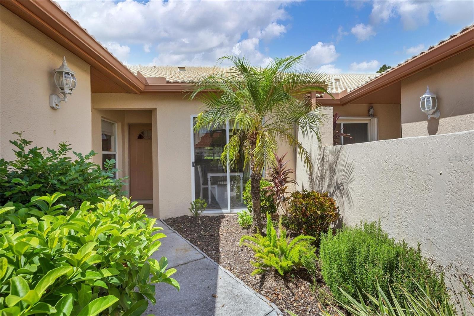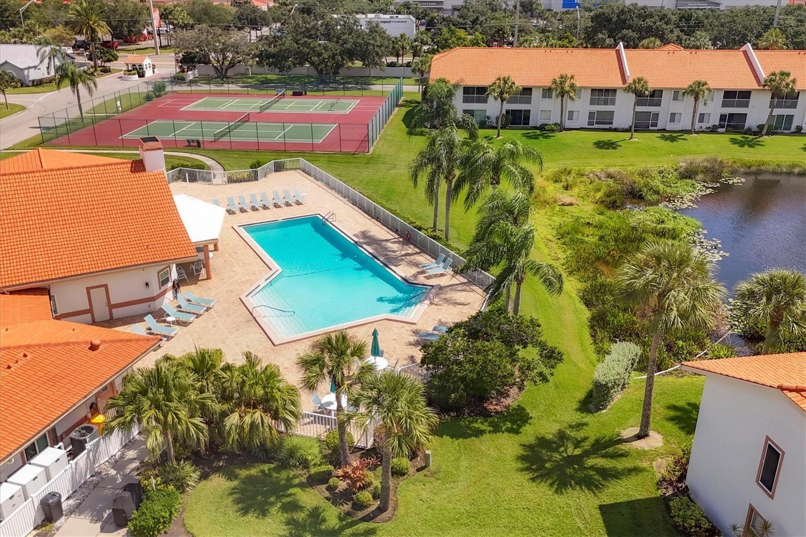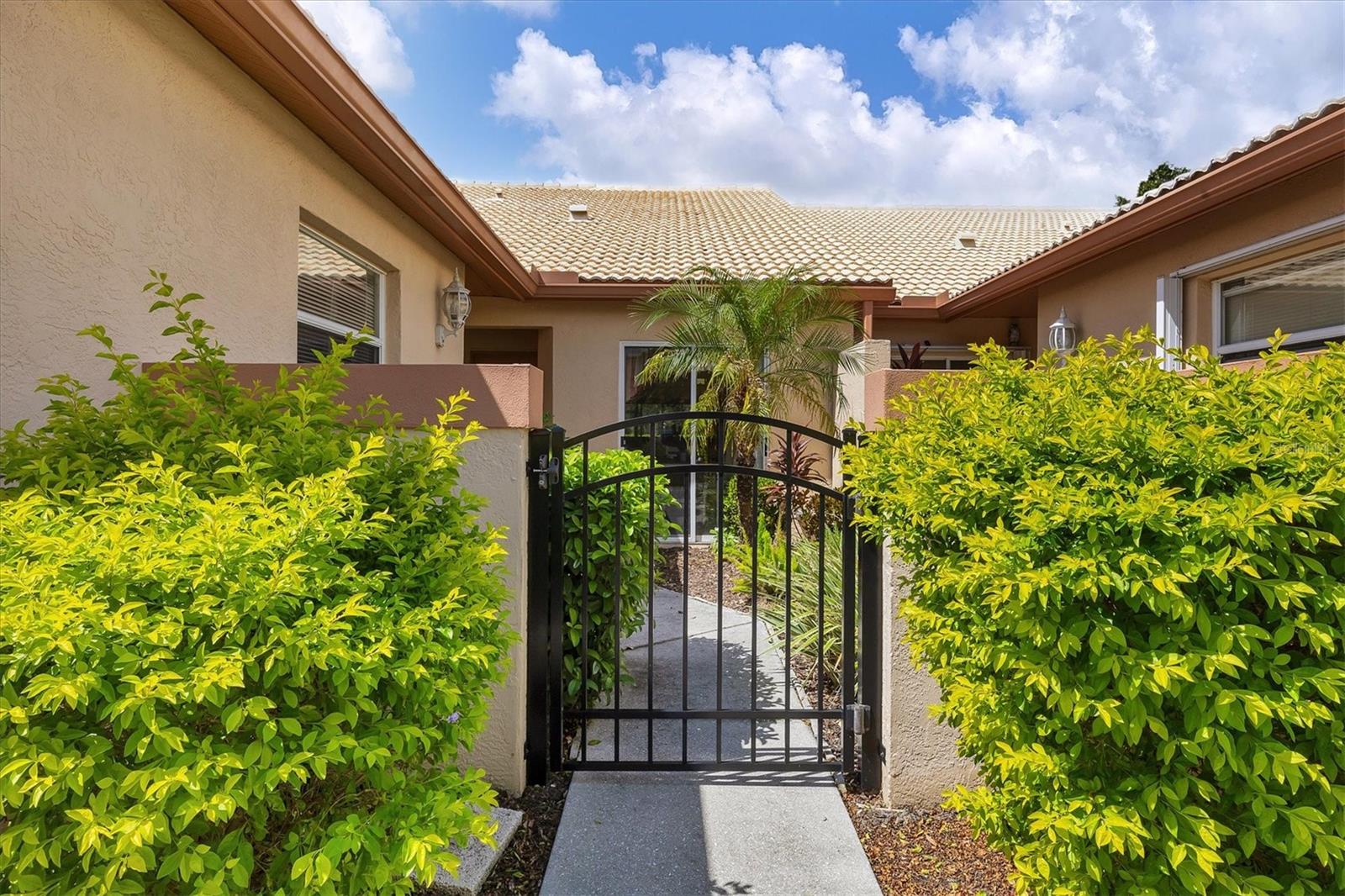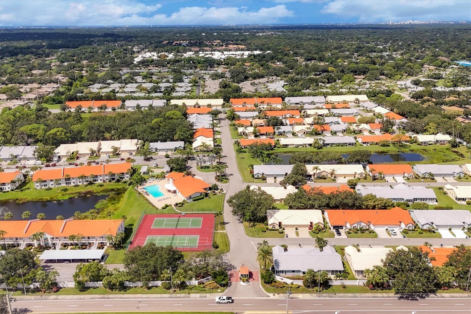 Turn-key furnished Villa now available in the centrally located, maintenance free and highly desirable community of Casa del Sol. Updated and spacious kitchen with white wooden cabinets, custom maple countertops, breakfast bar and dinette. Great split floor plan with vaulted ceilings and a large separate den with a Murphy bed and double pocket doors offering a great space for extra guests or an office. The primary bedroom includes bay windows, a large walk-in closet and an en suite bathroom with double vanity sinks. Enjoy a morning coffee on the private, screened lanai or outside on the peaceful, backyard patio. Inside laundry for convenience plus a one car garage for extra storage space. ROOFS replaced in 2016, HVAC 2019 and ACCORDION STYLE HURRICANE SHUTTERS for added security. Casa del Sol is open to all ages and offers a wealth of amenities including a large heated resort style pool, spacious club house for social gatherings, tennis courts, fitness room, shuffleboard courts, billiards and on-site management. Whether you're seeking a winter retreat or a full-time residence, this property is a fantastic choice. Conveniently located close to shopping and restaurants and parks; Urfer Park, Publix, Home Depot, Walmart, Walgreens and more. A short drive to University Town Center, and all of the art venues offered in downtown Sarasota!