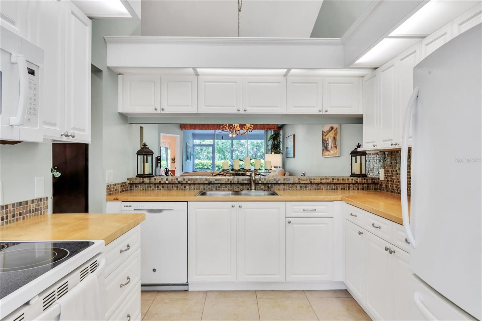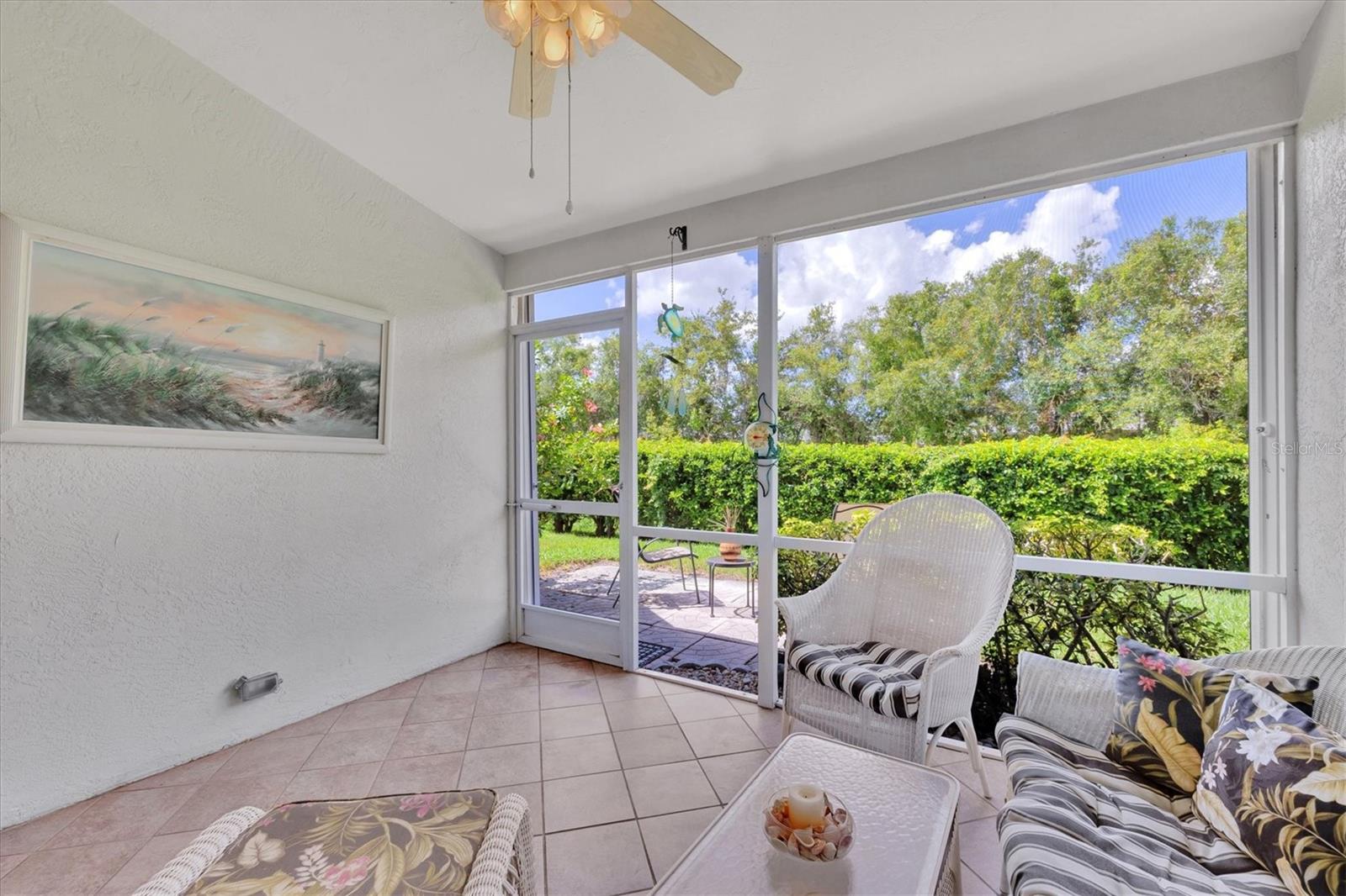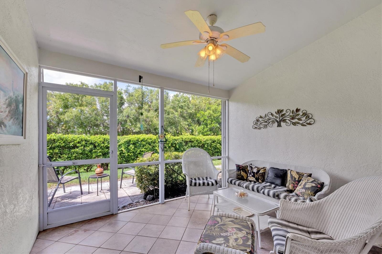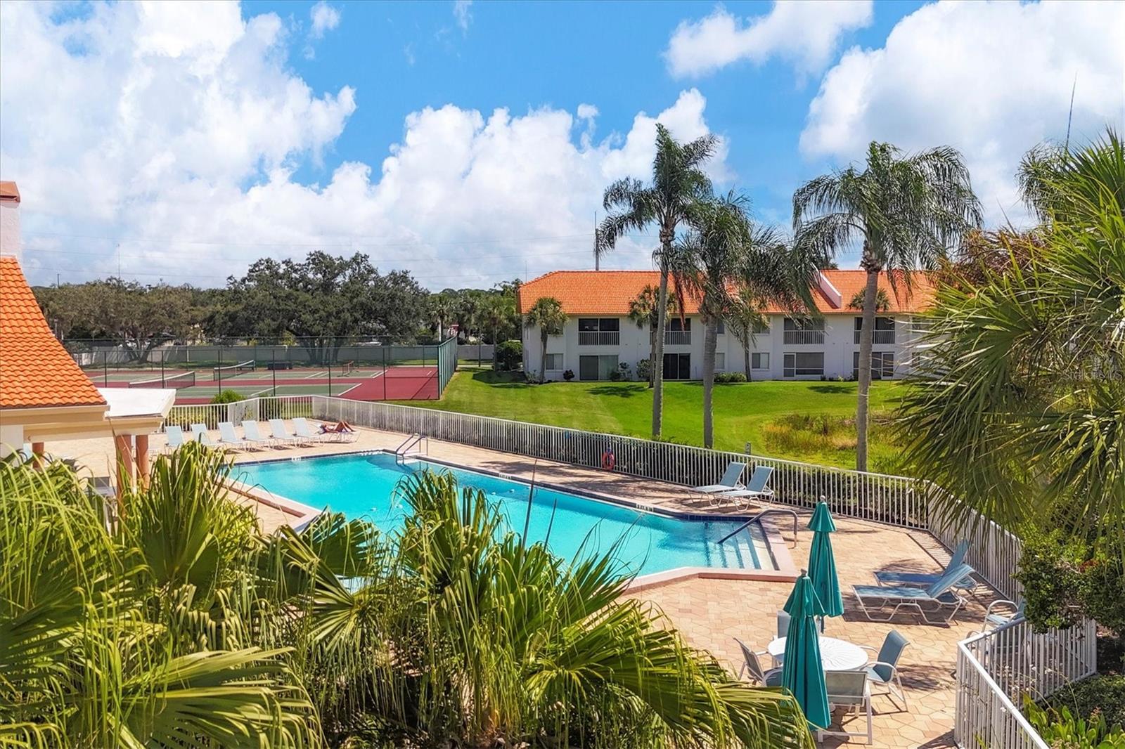 Turn-key furnished Villa now available in the centrally located, maintenance free and highly desirable community of Casa del Sol. Updated and spacious kitchen with white wooden cabinets, custom maple countertops, breakfast bar and dinette. Great split floor plan with vaulted ceilings and a large separate den with a Murphy bed and double pocket doors offering a great space for extra guests or an office. The primary bedroom includes bay windows, a large walk-in closet and an en suite bathroom with double vanity sinks. Enjoy a morning coffee on the private, screened lanai or outside on the peaceful, backyard patio. Inside laundry for convenience plus a one car garage for extra storage space. ROOFS replaced in 2016, HVAC 2019 and ACCORDION STYLE HURRICANE SHUTTERS for added security. Casa del Sol is open to all ages and offers a wealth of amenities including a large heated resort style pool, spacious club house for social gatherings, tennis courts, fitness room, shuffleboard courts, billiards and on-site management. Whether you're seeking a winter retreat or a full-time residence, this property is a fantastic choice. Conveniently located close to shopping and restaurants and parks; Urfer Park, Publix, Home Depot, Walmart, Walgreens and more. A short drive to University Town Center, and all of the art venues offered in downtown Sarasota!