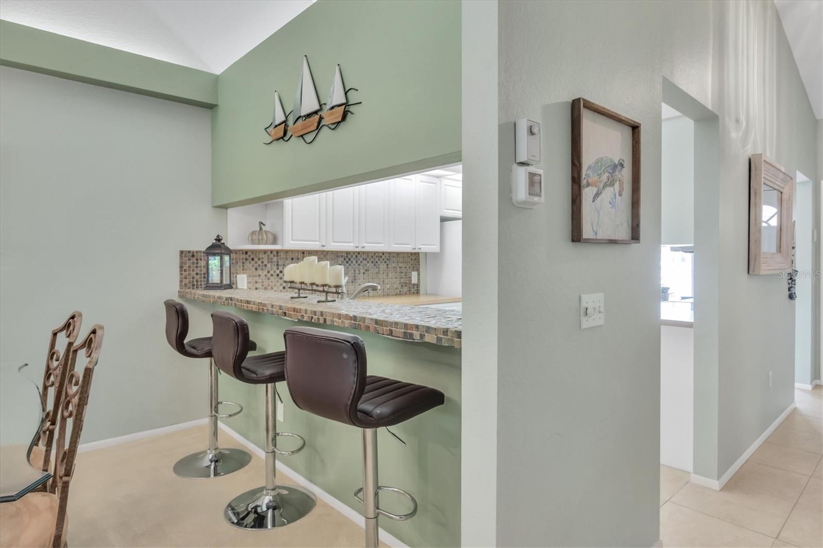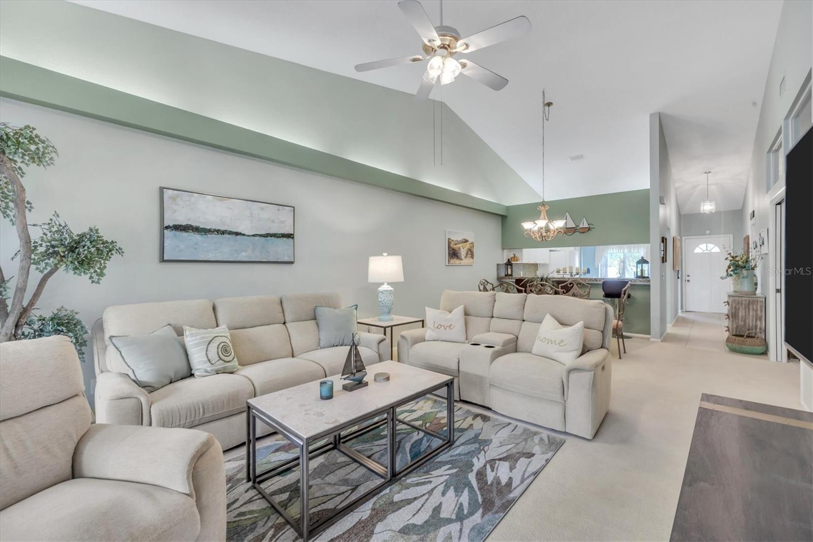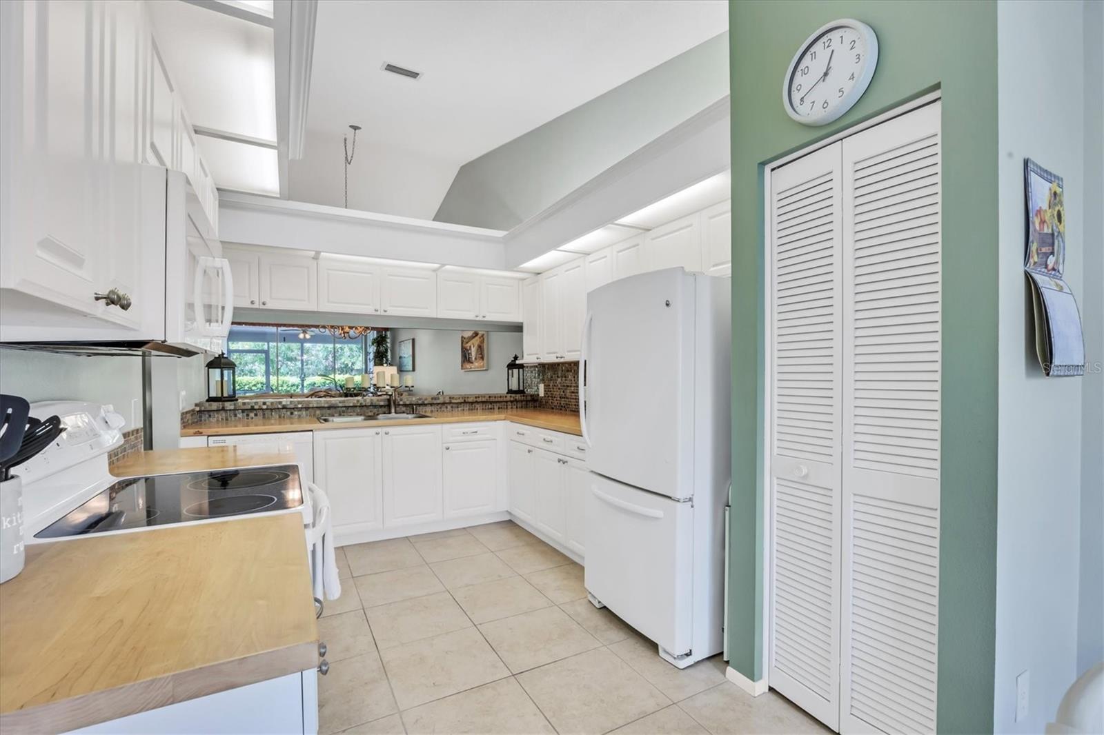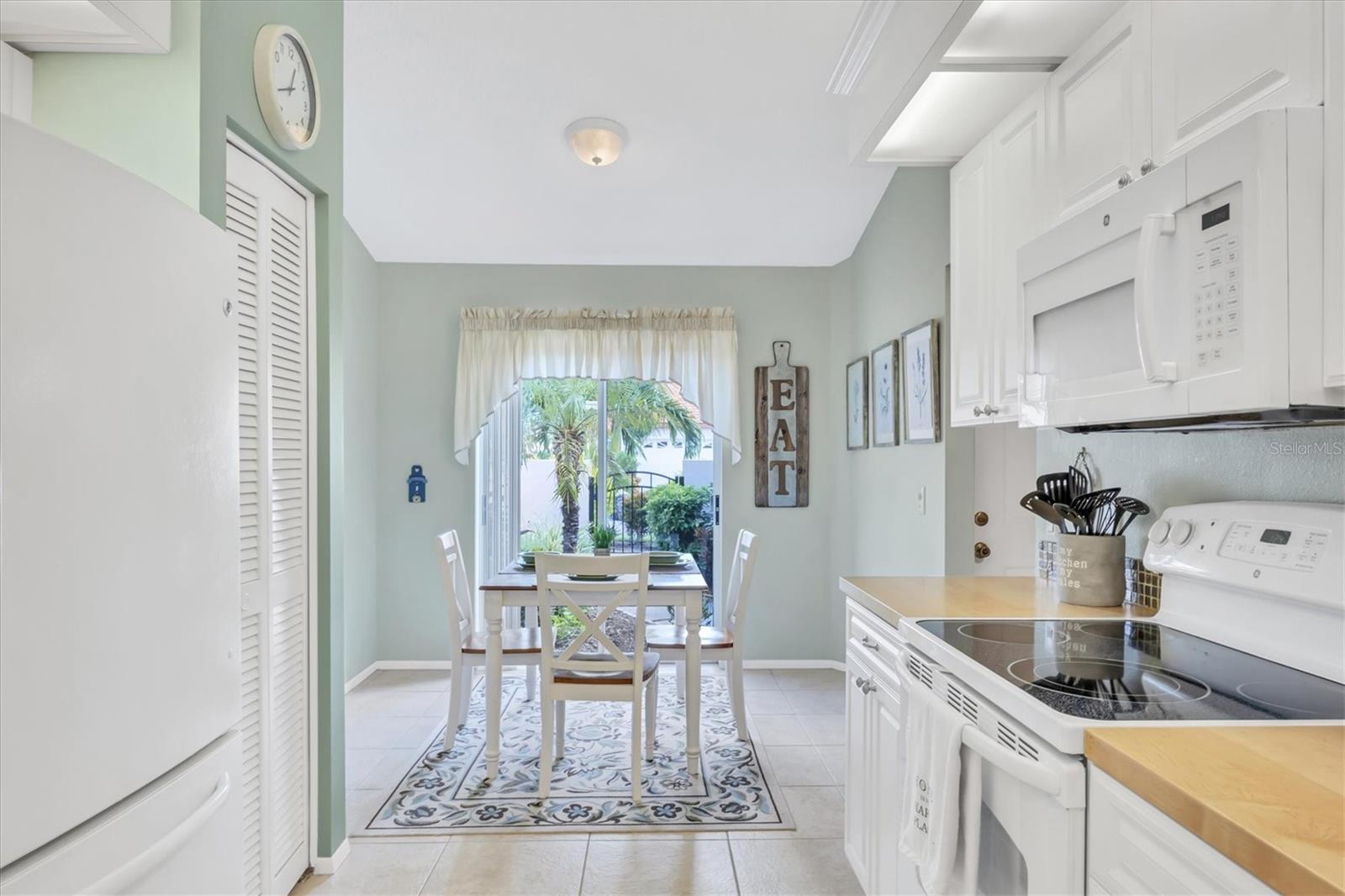 Turn-key furnished Villa now available in the centrally located, maintenance free and highly desirable community of Casa del Sol. Updated and spacious kitchen with white wooden cabinets, custom maple countertops, breakfast bar and dinette. Great split floor plan with vaulted ceilings and a large separate den with a Murphy bed and double pocket doors offering a great space for extra guests or an office. The primary bedroom includes bay windows, a large walk-in closet and an en suite bathroom with double vanity sinks. Enjoy a morning coffee on the private, screened lanai or outside on the peaceful, backyard patio. Inside laundry for convenience plus a one car garage for extra storage space. ROOFS replaced in 2016, HVAC 2019 and ACCORDION STYLE HURRICANE SHUTTERS for added security. Casa del Sol is open to all ages and offers a wealth of amenities including a large heated resort style pool, spacious club house for social gatherings, tennis courts, fitness room, shuffleboard courts, billiards and on-site management. Whether you're seeking a winter retreat or a full-time residence, this property is a fantastic choice. Conveniently located close to shopping and restaurants and parks; Urfer Park, Publix, Home Depot, Walmart, Walgreens and more. A short drive to University Town Center, and all of the art venues offered in downtown Sarasota!