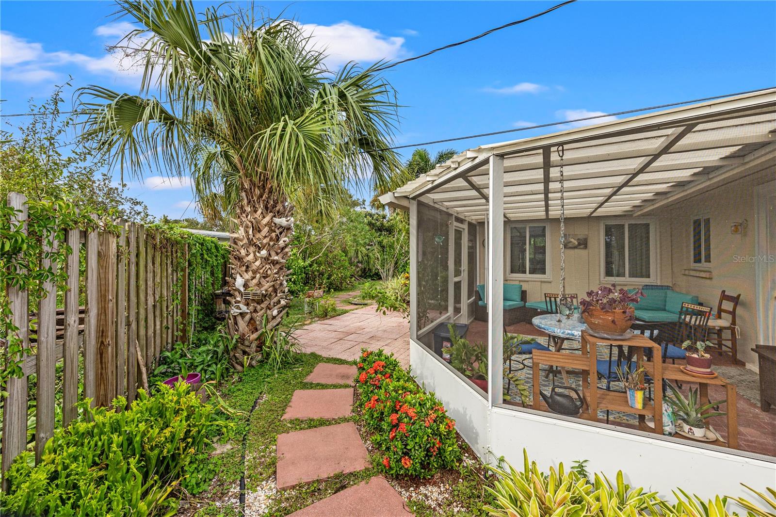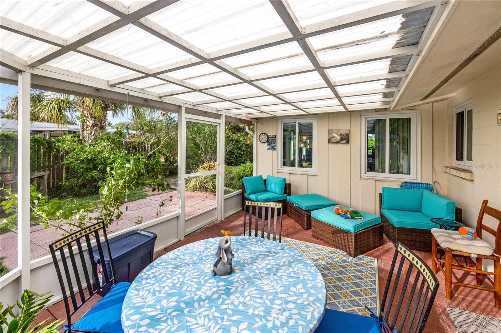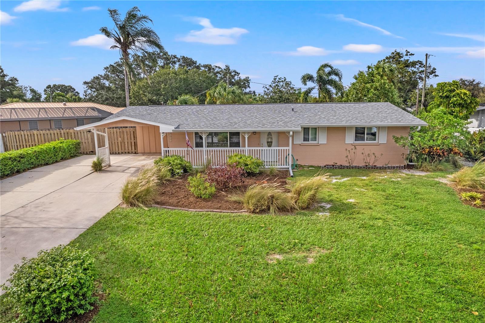 Nestled in the desirable South Gate Community, this charming home has been meticulously maintained. Features include: BLOCK CONSTRUCTION, NEWER ROOF 2020, IMPACT RESISTANT WINDOWS, TILE THROUGHOUT, GRANITE KITCHEN COUNTERS, ENCLOSED FLORIDA SUNROOM, INDOOR LAUNDRY, SCREENED LANAI, FENCED YARD, ALMOST .25 ACRE CORNER LOT, NO MINIMUM RENTAL RESTRICTIONS, EXPANDED DRIVEWAY AND MORE! Immerse yourself in the abundant natural light that fills the entire house as you enter this garden atmosphere retreat. A spacious living room leads to two bedrooms, two bathrooms, and an enclosed Florida Sun Room. The Florida Sun Room is bathed in natural light, perfect for enjoying the serenity of a backyard oasis. The spacious kitchen with with window is a lovely space to prepare a meal. Outside the kitchen is the screened-in covered porch for additional entertaining and sitting area for family and friends. Outside the screened-in porch, a 9x16-foot red brick patio is ready for you to set up your grill and fire pit for outdoor entertaining, surrounded by lush flowers and trees, including an avocado tree with privacy wood fenced-in backyard with two gates. Embrace the tranquility of your own private backyard nature preserve, with lush greenery in this 0.234 acre lot. The big backyard provides endless possibilities for gardening, outdoor living, and personalizing your space to create your perfect sanctuary. This cozy home offers a serene retreat where you can unwind and enjoy the peaceful atmosphere, protected by a reliable five-year-old roof as well as hurricane-rated windows throughout the entire house, giving you a peace of mind during Florida’s storm seasons. Welcome home! This home’s location is not only central to Sarasota’s natural beauty, but also close to the following top-rated attractions: • Siesta Key Beach (5 miles) : famous for its soft, white quartz sand • Mote Marine Laboratory & Aquarium (6 miles) : a must-visit for marine life enthusiasts offering close encounters with turtles, manatees, sharks, and more. • Marine Selby Botanical Gardens (3 miles) : A tropical paradise showcasing rare orchids and plants along the Sarsota Bay • The Ringling Museum of Art (7 miles) : A cultural landmark with world-calss art collections and circus history • Legacy Trail (2 miles) : a 23.2-mile paved trail that runs along the former Atlantic Coast Line Railroad right-of-way. It’s a popular destination for cyclists, runners, walkers, and nature enthusiasts. • Downtown Sarasota Main Street (4 miles) : A bustling area filled with boutiques, art galleries, and restaurants. Note: This neighborhood is in the process of receiving underground electricity by Sarasota County which will be completed by the end of October 2024.