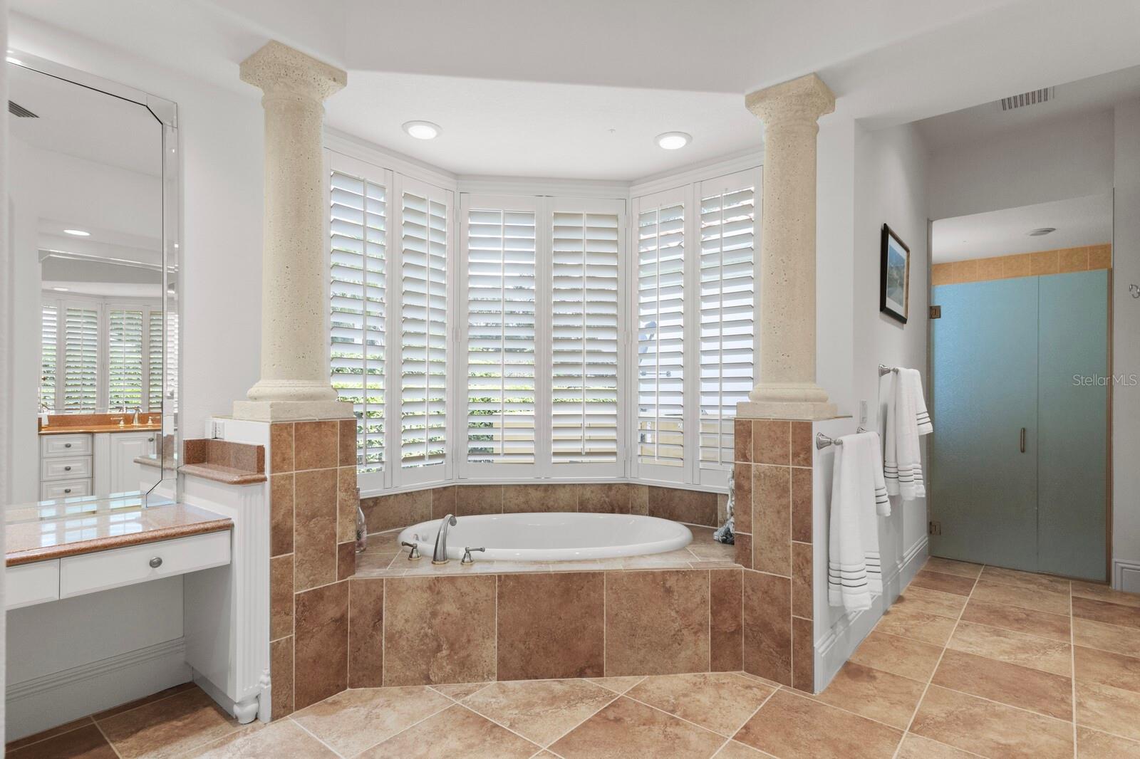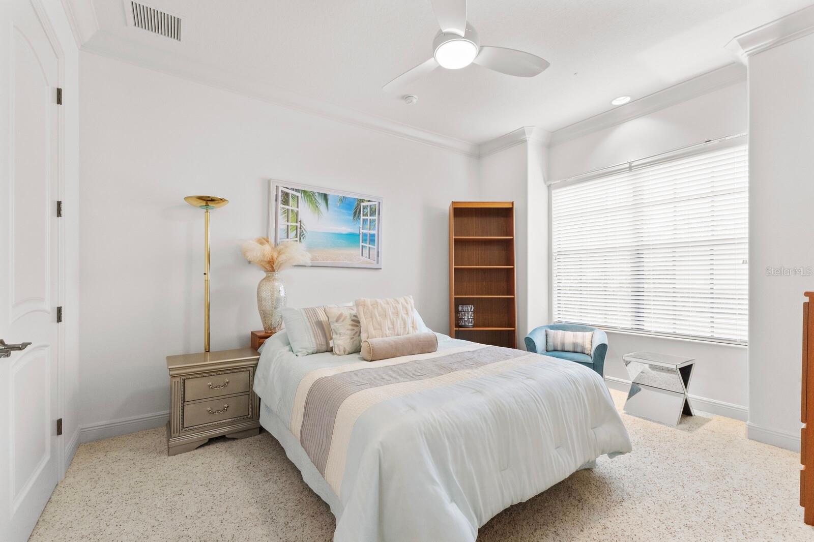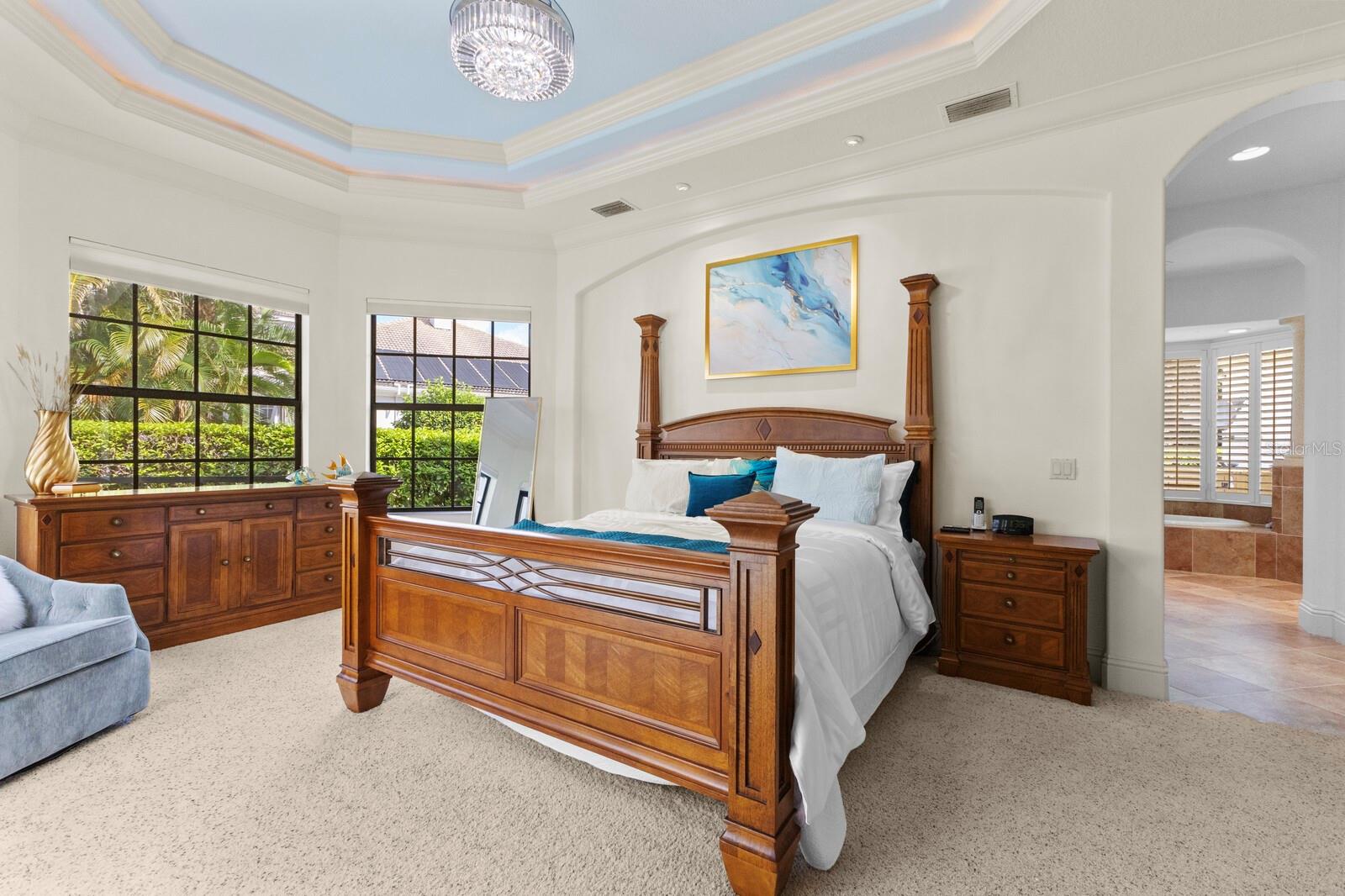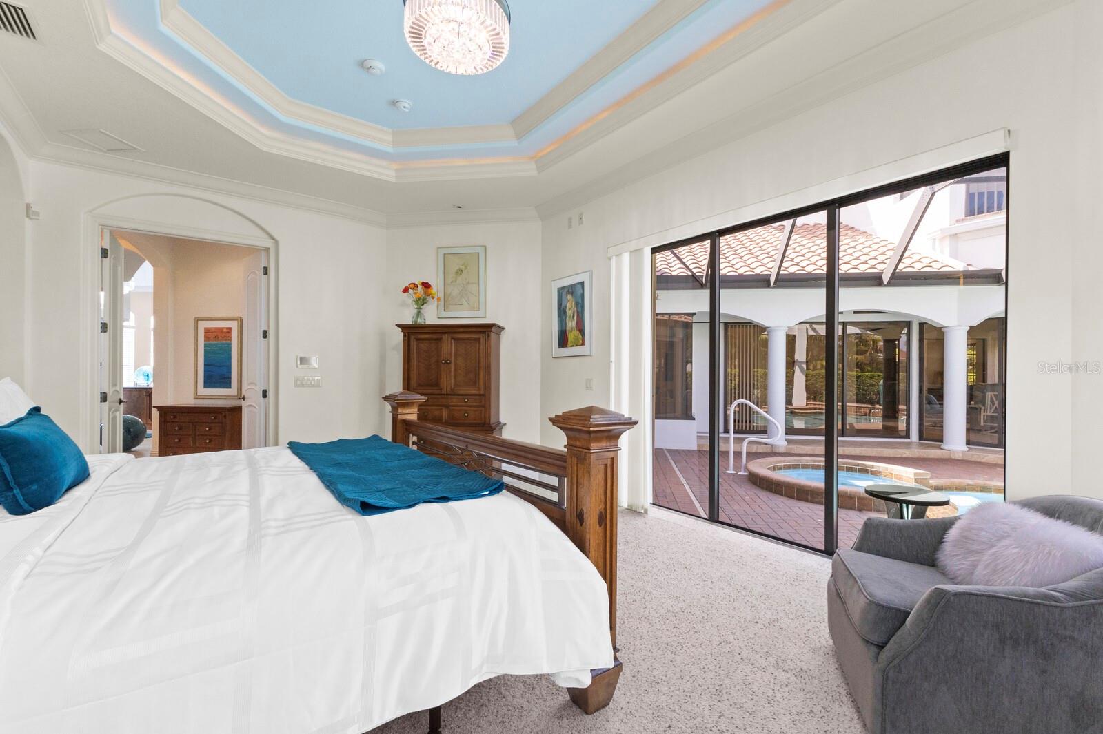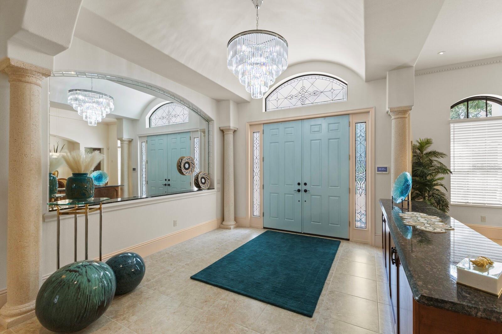 This lovingly maintained Lee Wetherington custom home in Sarasota’s exclusive Founders Club golf community is situated on a private lot which offers breathtaking daily views of wildlife. Whether you’re relaxing on the first-floor lanai or enjoying the upstairs balcony, the unobstructed vistas of nature make it easy to connect with the tranquility of the outdoors. The grand entryway leads to an impressive foyer and formal living area featuring a hand-carved wood and granite natural gas fireplace straight ahead, with an oversized dining room suitable for entertaining on the left. The expansive Florida room boasts three walls of glass sliders, screen windows, a natural gas fireplace, and a wet bar, making it a perfect space for relaxing, entertaining, or even as a playroom or sunroom. The gourmet kitchen is a chef’s dream, featuring two sinks, two GE Profile dishwashers, two GE Monogram ovens (both with convection options), GE Profile Arctica refrigerator, a microwave, stone countertops, and resurfaced off-white cabinetry. The six-burner GE Monogram gas cooktop includes a built-in grill and exterior vented hood, while the large center island contains a prep sink for added convenience. The luxurious primary suite offers two spacious walk-in closets and an impressive bath with dual stone vanities, a jetted tub, and a two-person walk-in shower. Two additional bedrooms, one en suite, are located on the first floor in addition to a 13x15 office with custom storage which can easily accommodate multiple work spaces. Upstairs is ideal for long term guests with its large open area, bedroom and full bath as well as a screened balcony overlooking the serene pond. The bedroom sliders retract at the corners, providing an amazing view of the pond. All closets and shelving throughout the house are custom-built, providing both functionality and style. This exceptional home is equipped with a 40-kilowatt Olympian natural gas whole-house generator. A multi-use, 15-by-13-foot saferoom on the first floor can also serve as a home gym, craft room, or storage area in addition to its stated purpose of providing a safe place during high winds. This home is not in a flood zone and has not experienced water intrusion from storms. Other features include three heating and cooling units, a whole-house water softening and reverse osmosis system, instant hot water faucet in the kitchen and water filling faucet at the stove. Recent upgrades to the pool and spa include a new pump in 2020, resurfacing in 2021, new remote-control system in 2021 and heater in 2022. Various types of memberships in the exclusive Founders Golf Club are available but membership is not required to live in the community. Access to the private golf course from this home is provided by a wooden cart path located just down the street. Home ownership provides access to the Community Center, pickle ball and tennis courts, kids’ playground and multiple activities. This home offers an unparalleled combination of luxury, security, and convenience, making it an ideal retreat for those seeking comfort and tranquility in an exquisite setting.
