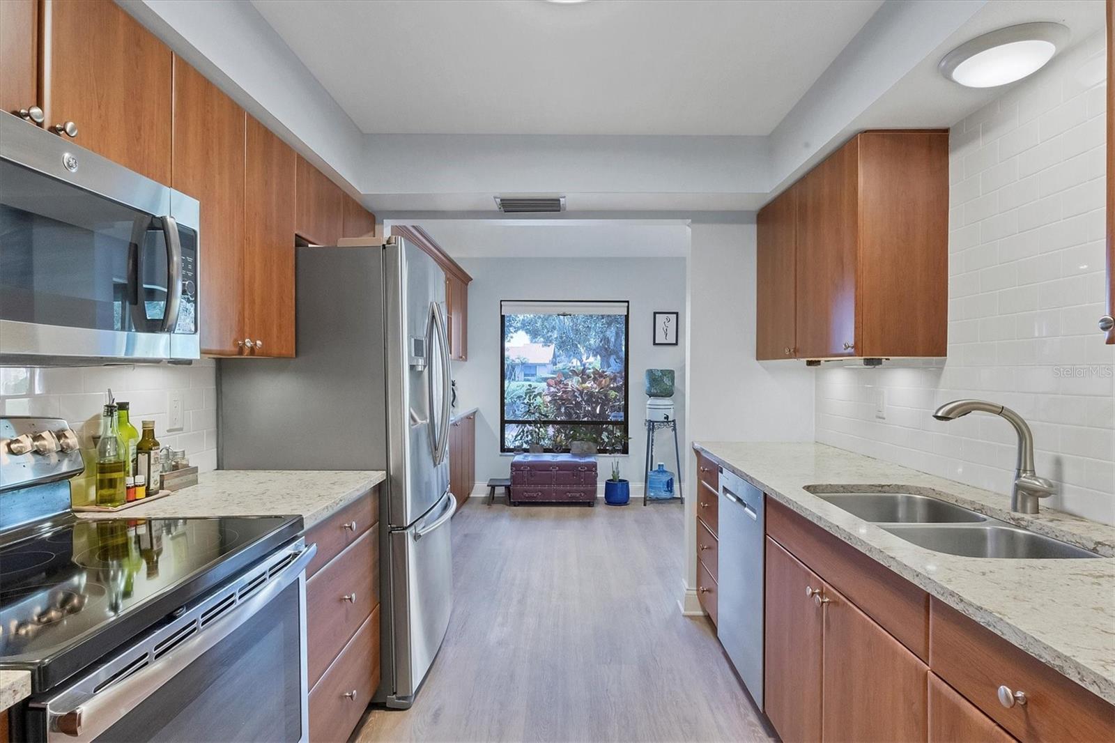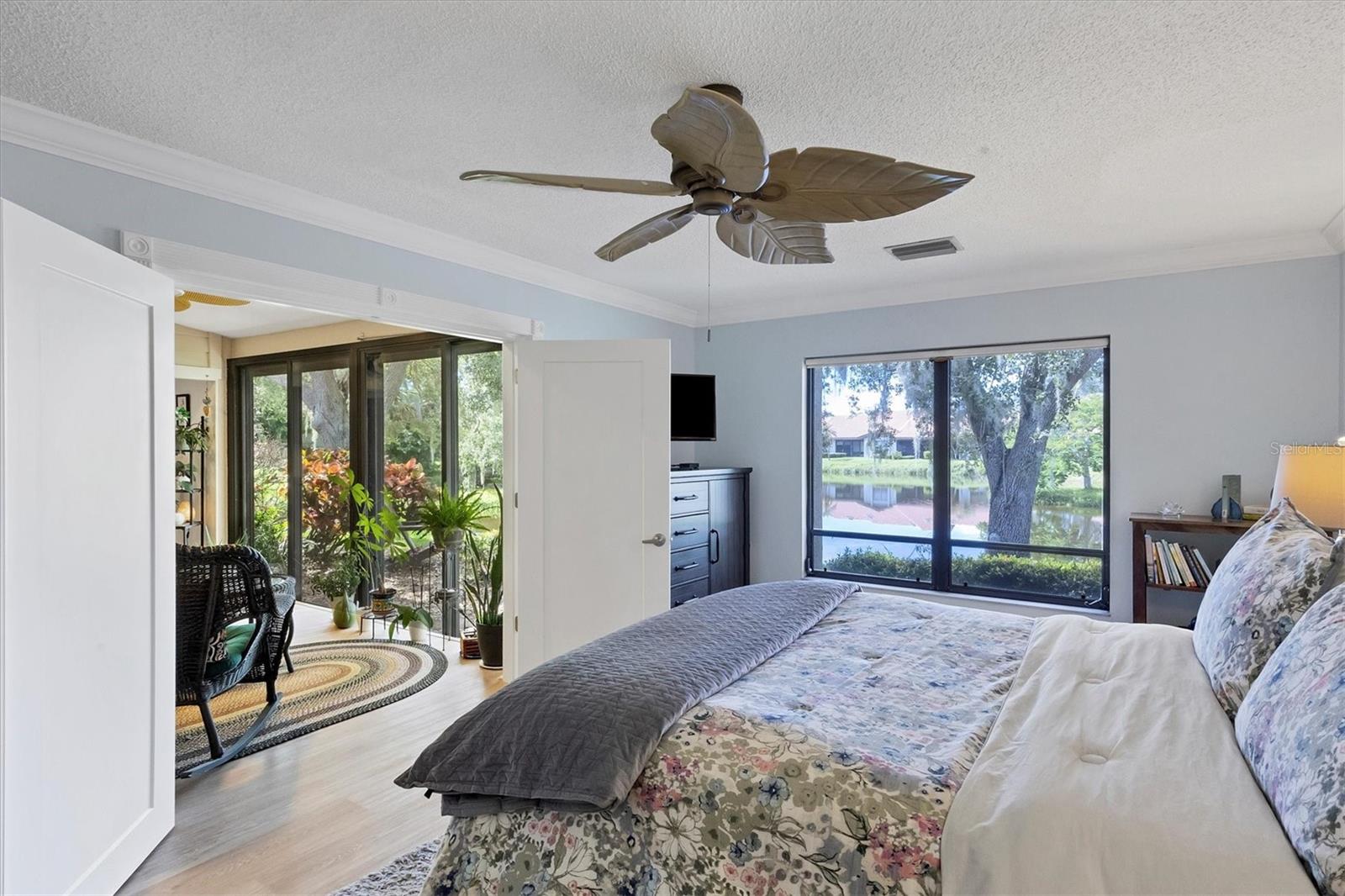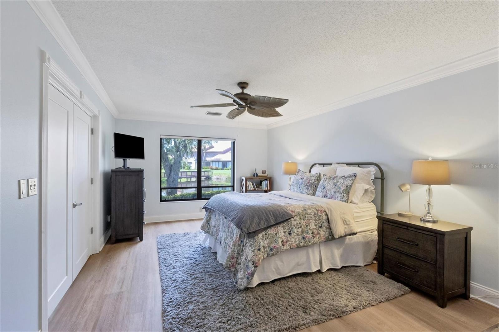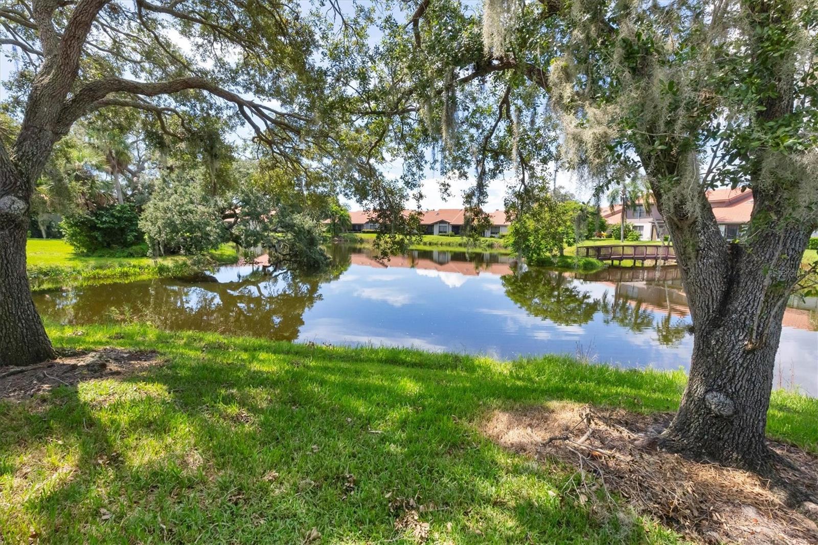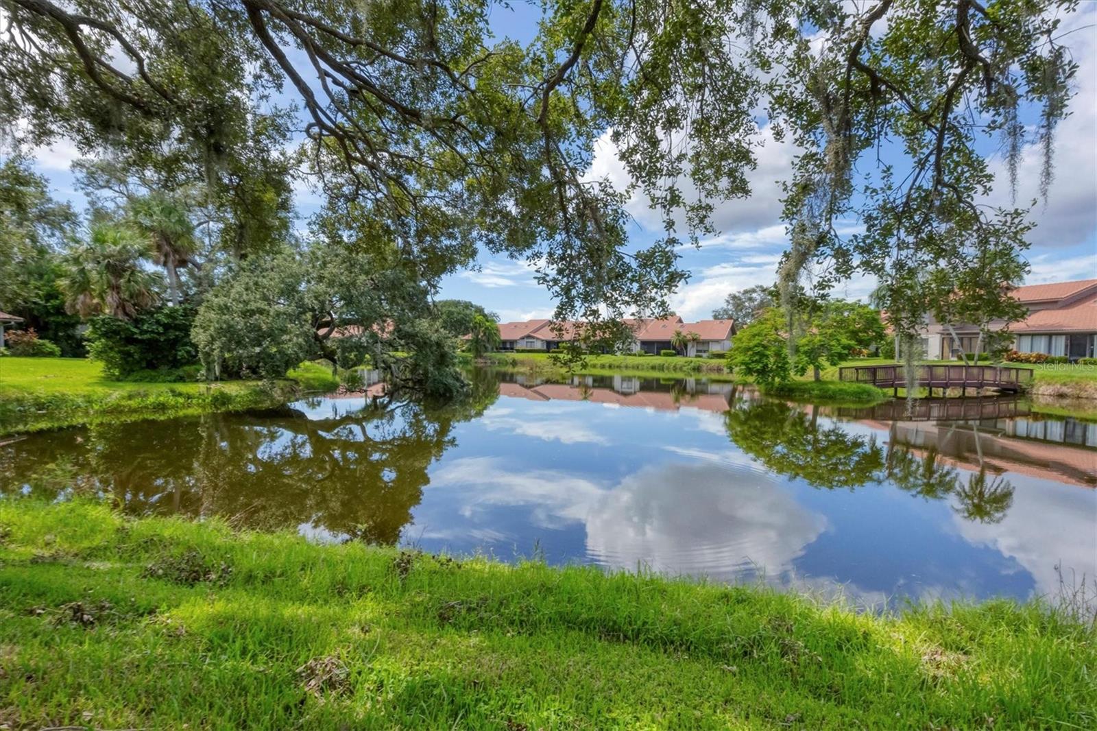 MOVE-IN-ready, maintenance-free villa that perfectly combines modern luxury with serene lakefront living! This meticulously maintained gem boasts breathtaking views of the tranquil lake and surrounding wildlife, offering a peaceful retreat right from your doorstep. Once you enter, you will discover wide plank luxury vinyl flooring that flows throughout, setting the tone for elegance and durability. The beautifully appointed kitchen is a chef's delight, featuring gleaming granite countertops, upgraded cabinetry, and a dry-bar with additional storage in the breakfast room area, ideal for casual dining or entertaining. The spacious living room with vaulted ceilings opens seamlessly into the enclosed lanai, expanding your living space and providing panoramic views of the lake. Imagine enjoying your morning coffee or evening sunsets in this tranquil setting! For added peace of mind, electronic hurricane shutters have been installed at the sliding doors. The master suite is a private sanctuary, complete with crown molding, a generously sized walk-in closet, and a spa-like ensuite bathroom featuring two quartz topped vanities and a large tiled walk-in shower. On the opposite side of the villa, the second bedroom is adjacent to a fully updated bathroom, and the den/office, complete with pocket doors, offers the flexibility to serve as a third bedroom due to its generous size. Convenience and storage are abundant in this home, with a large laundry room, located near the master suite, and two-car garage with extra storage and a hurricane-rated door. Recent updates ensure this home is both energy-efficient and move-in ready, including a new A/C system and ductwork (2021), an advanced air sterilization system (2024), a new dishwasher (2021), and a re-piping of the entire home in 2023. The electrical panel has been upgraded with a surge protector for added safety, and the Association takes care of the tile roof, which was replaced in 2006. Lakeshore Village is an active and welcoming 55+ community, providing a robust array of amenities, including a heated saltwater pool, two tennis courts, pickleball courts (under construction), a clubhouse with a billiard room, library, and a horseshoe court. Residents can enjoy fishing in the community's picturesque lakes under catch-and-release policies while social butterflies will appreciate the numerous community events and gatherings. Located just minutes from top-notch dining, shopping, medical facilities, and only three miles from the world-renowned Siesta Key beach, this home offers the perfect blend of luxury, convenience, and Florida's coastal charm. Don't miss the opportunity to own this immaculate villa, schedule your private showing today!