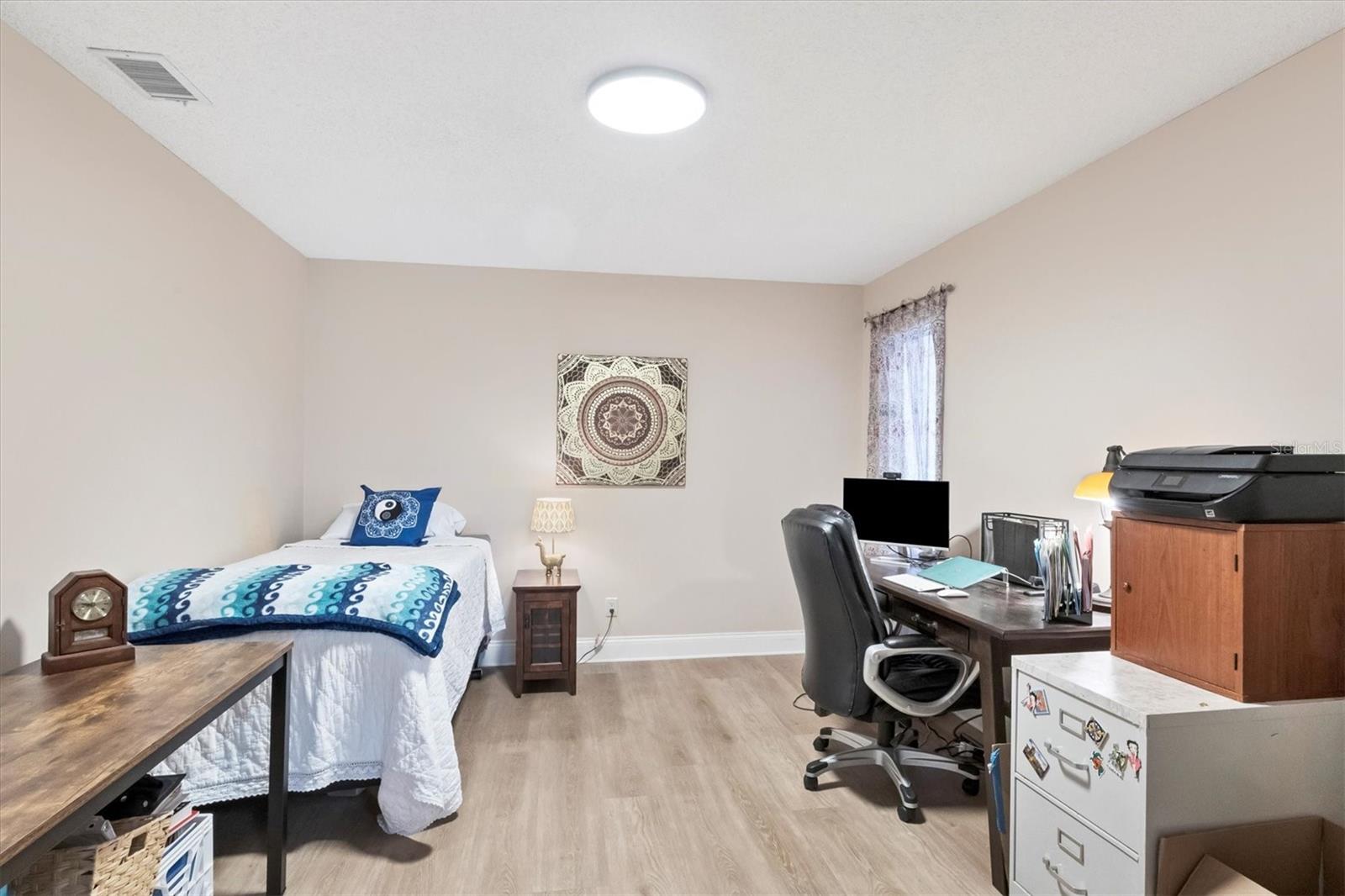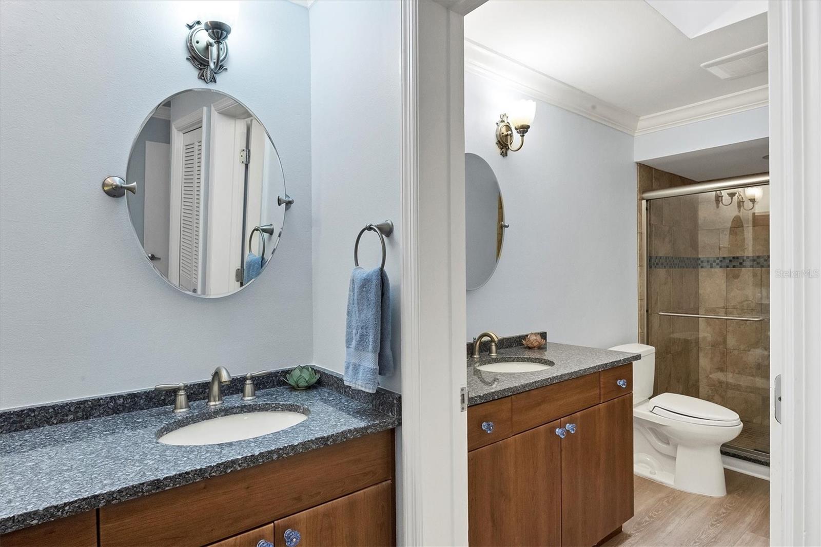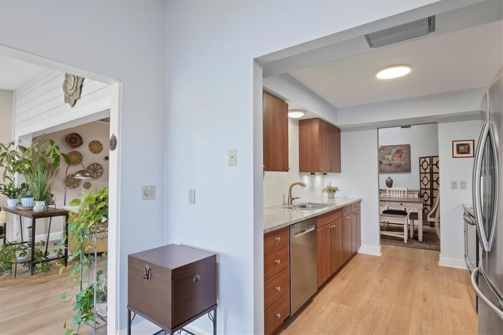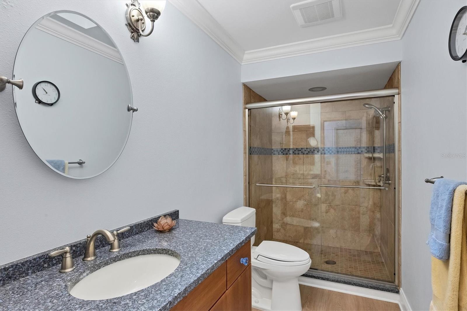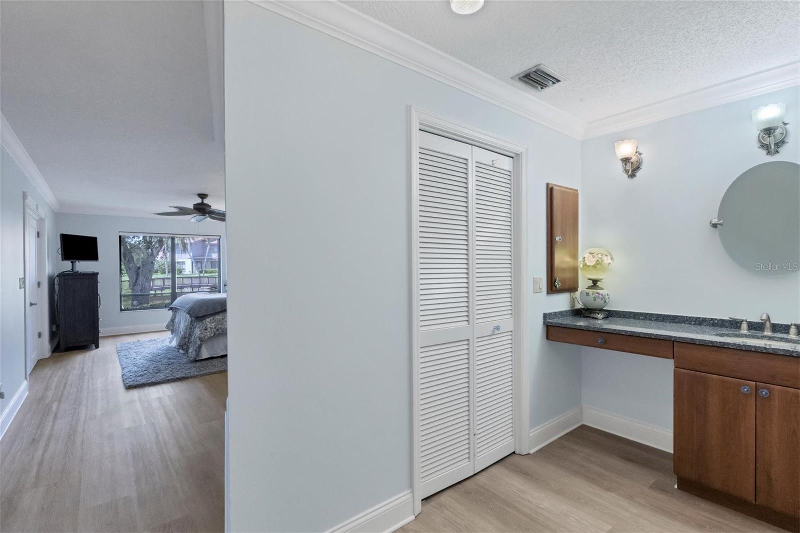 MOVE-IN-ready, maintenance-free villa that perfectly combines modern luxury with serene lakefront living! This meticulously maintained gem boasts breathtaking views of the tranquil lake and surrounding wildlife, offering a peaceful retreat right from your doorstep. Once you enter, you will discover wide plank luxury vinyl flooring that flows throughout, setting the tone for elegance and durability. The beautifully appointed kitchen is a chef's delight, featuring gleaming granite countertops, upgraded cabinetry, and a dry-bar with additional storage in the breakfast room area, ideal for casual dining or entertaining. The spacious living room with vaulted ceilings opens seamlessly into the enclosed lanai, expanding your living space and providing panoramic views of the lake. Imagine enjoying your morning coffee or evening sunsets in this tranquil setting! For added peace of mind, electronic hurricane shutters have been installed at the sliding doors. The master suite is a private sanctuary, complete with crown molding, a generously sized walk-in closet, and a spa-like ensuite bathroom featuring two quartz topped vanities and a large tiled walk-in shower. On the opposite side of the villa, the second bedroom is adjacent to a fully updated bathroom, and the den/office, complete with pocket doors, offers the flexibility to serve as a third bedroom due to its generous size. Convenience and storage are abundant in this home, with a large laundry room, located near the master suite, and two-car garage with extra storage and a hurricane-rated door. Recent updates ensure this home is both energy-efficient and move-in ready, including a new A/C system and ductwork (2021), an advanced air sterilization system (2024), a new dishwasher (2021), and a re-piping of the entire home in 2023. The electrical panel has been upgraded with a surge protector for added safety, and the Association takes care of the tile roof, which was replaced in 2006. Lakeshore Village is an active and welcoming 55+ community, providing a robust array of amenities, including a heated saltwater pool, two tennis courts, pickleball courts (under construction), a clubhouse with a billiard room, library, and a horseshoe court. Residents can enjoy fishing in the community's picturesque lakes under catch-and-release policies while social butterflies will appreciate the numerous community events and gatherings. Located just minutes from top-notch dining, shopping, medical facilities, and only three miles from the world-renowned Siesta Key beach, this home offers the perfect blend of luxury, convenience, and Florida's coastal charm. Don't miss the opportunity to own this immaculate villa, schedule your private showing today!