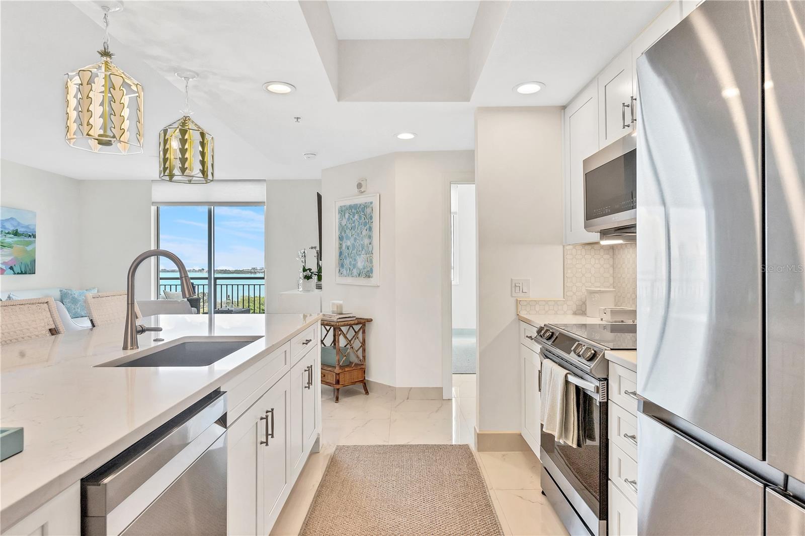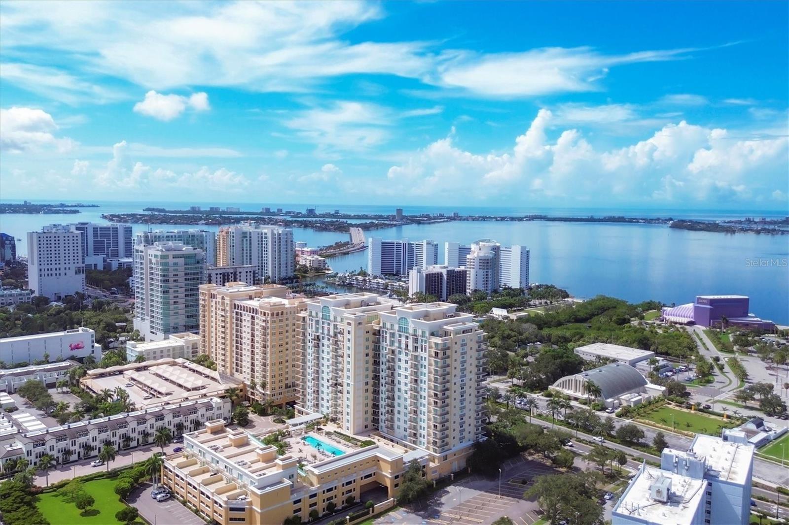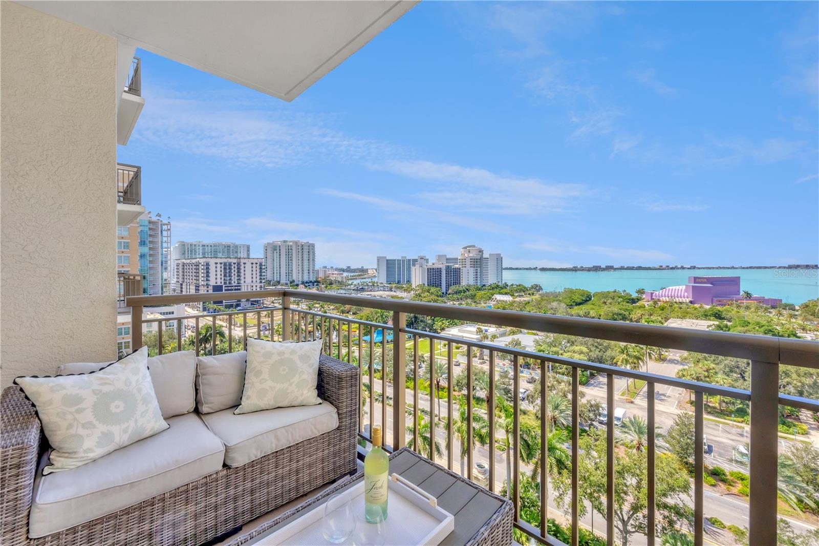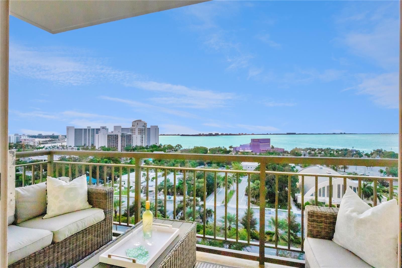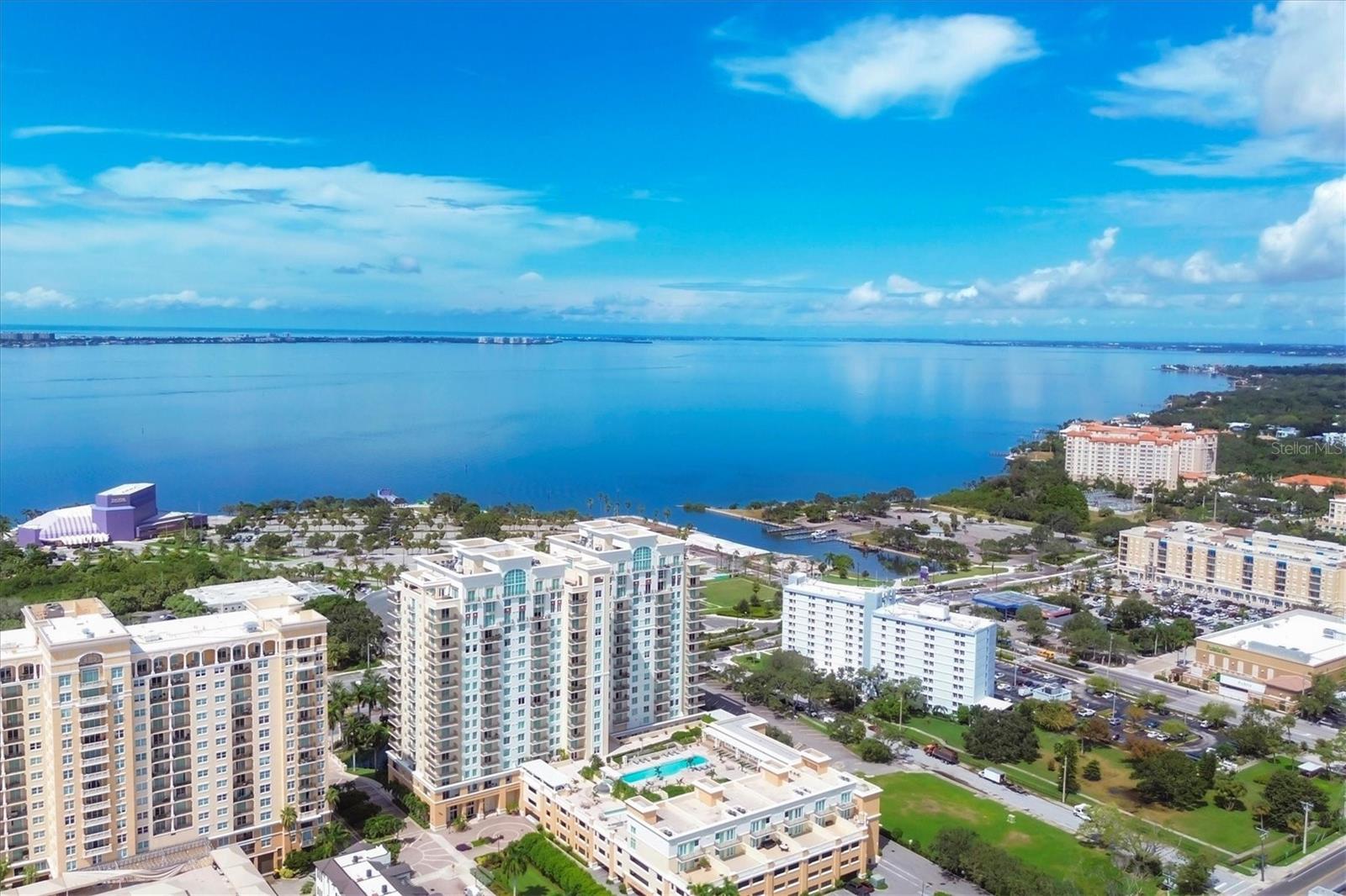 Immerse yourself with coastal luxury in this spectacularly designed two-bedroom, two-bath unit in downtown Sarasota. Nearly every surface has been artistically modernized to provide supreme elegance, comfort and functionality. As you step inside, you will be immediately greeted by the bright interior and open floor plan. The sunlight reflects beautifully off the porcelain tile throughout the unit and almost exudes the ambiance that you are walking amongst the clouds, although on the 11th floor. The beautiful porcelain tile is utilized as the baseboards throughout your unit, elevating the look and makes cleaning effortless. Every detail has been accounted for and no expense has been spared when designing your future home. The stately Samsung stainless steel appliance package in the kitchen and laundry room complements the overall atmosphere. The primary bedroom has impeccable views of Sarasota Bay, a large walk-in closet and an en-suite bath. The primary bath is absolutely gorgeous, functional, custom designed and unique to the building's original floor plan design. The primary bath has a large walk-in shower and a large linen/storage closet which is commonly sought-after with condominium living. Your second bedroom is equally large and has two windows that capture views of Sarasota Bay and the Ringling Bridge. No detail has been spared. The laundry room has a beautiful set of built-in cabinetry and a gorgeous lighting fixture. Living here means that you will enjoy the most amazing sunsets on the west coast of Florida! When it comes to selecting your next building to call home, understand that Alinari truly has all the amenities and security that you would want in a Florida condominium building. Beyond the unit itself, Alinari offers a wealth of amenities. Residents of this stunning 18-story condominium high-rise enjoy lovely plazas, fountains and modern resort-style perks. The building is completely secure with key-card entry and 24-hour front desk services, including an overnight guard. The building is in flood zone X and outside the floodplain. Alinari is designed like a fortress and was constructed with reinforced concrete beams, has been fireproofed, and was built on pilings that were drilled deep into the ground for extra added stability and security. The lobby and guest parking spaces are elevated 17 feet above from the base sea level. This unit enjoys two assigned parking spaces (one on the third floor garage and one on the first floor garage), which means your vehicles will be secured and elevated over 30 feet from sea level. From a grand entrance and an impressive lobby to concierge services, on-site management, secured parking, a clubroom, business center, fitness center and even a resident theater, every need is catered to. The location couldn't be better. In an Italian villa-inspired building, Alinari is in the heart of Sarasota's cultural district. You'll have access to all social events the city has to offer. Don't miss out on this opportunity to experience the epitome of downtown Sarasota living.