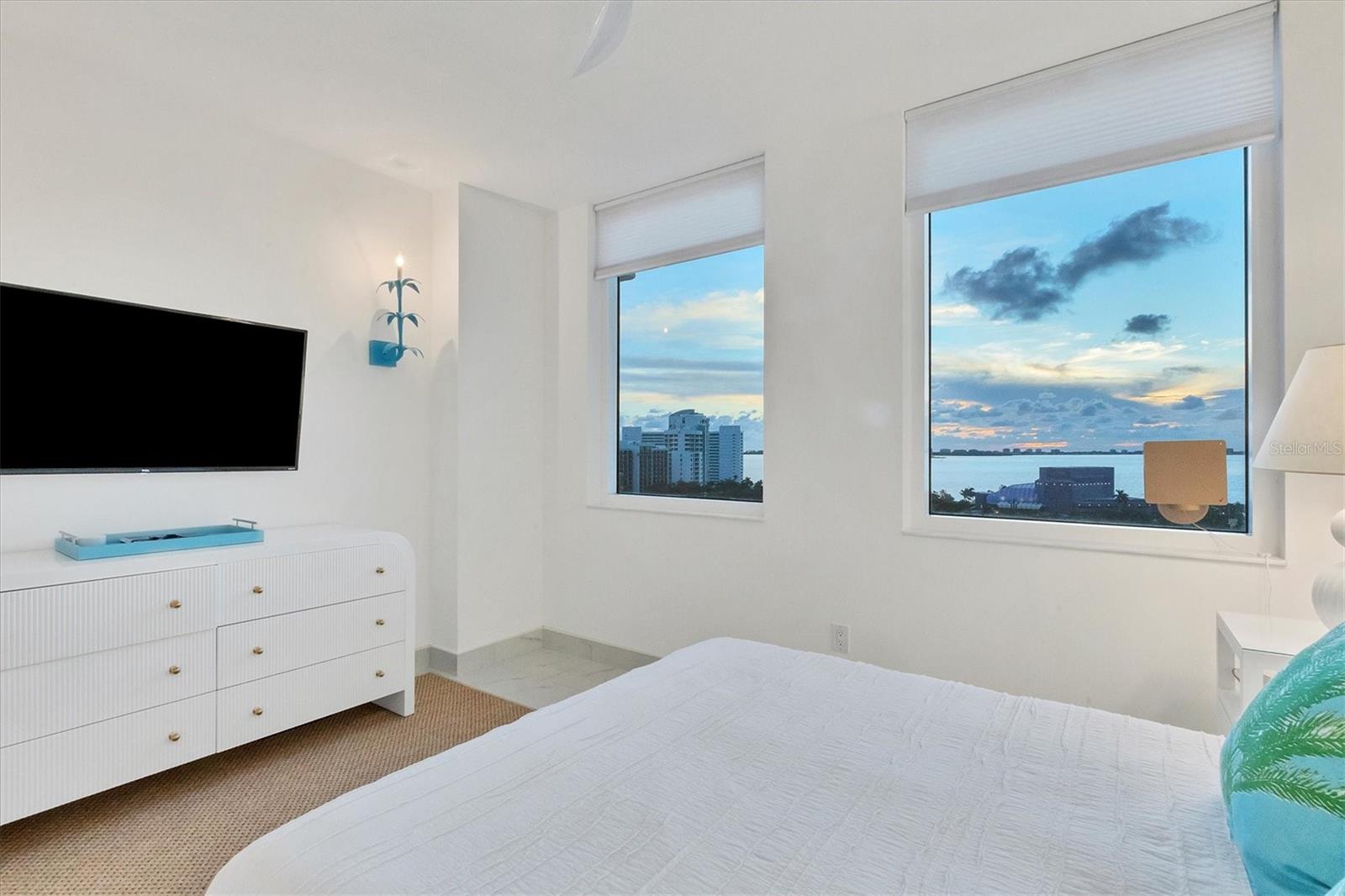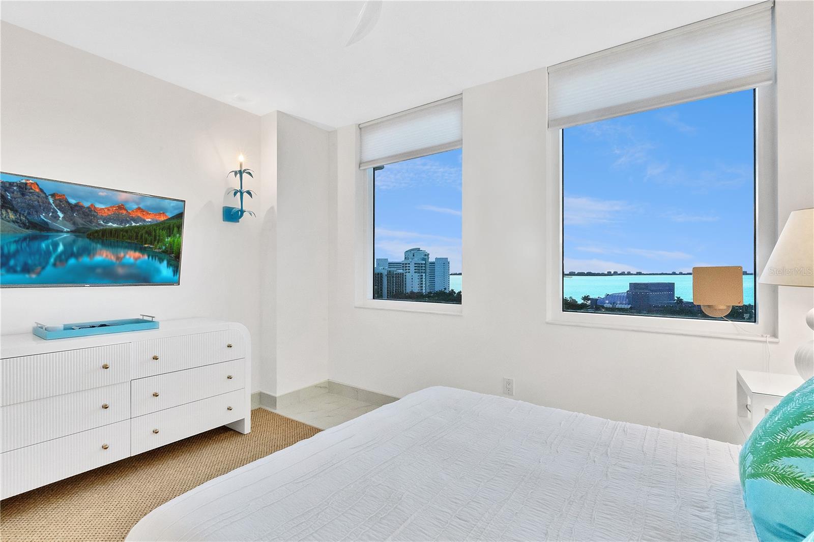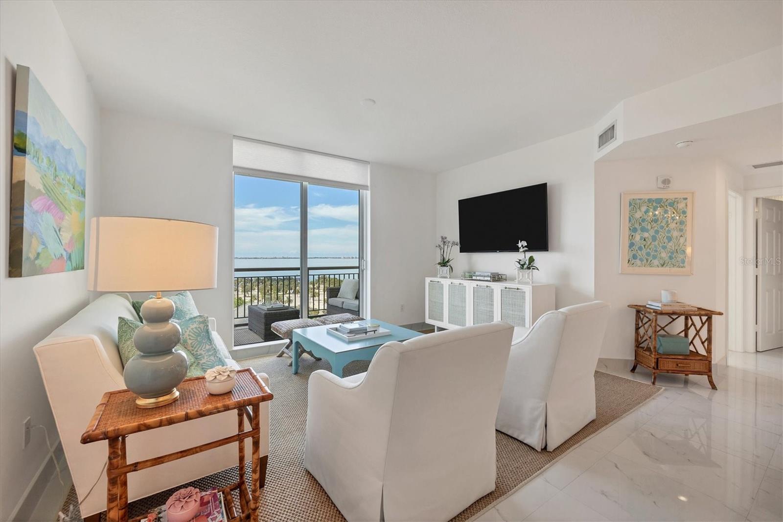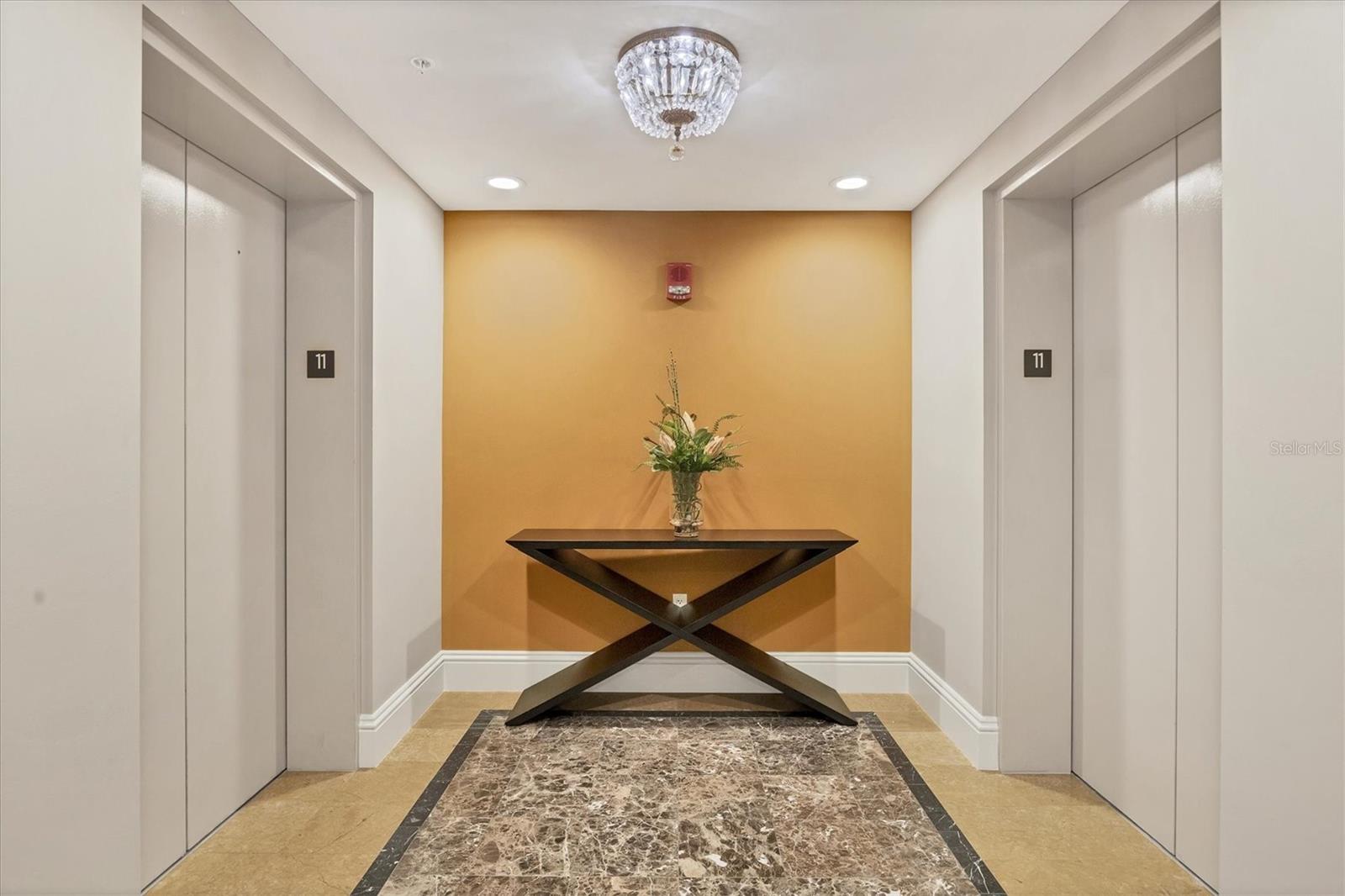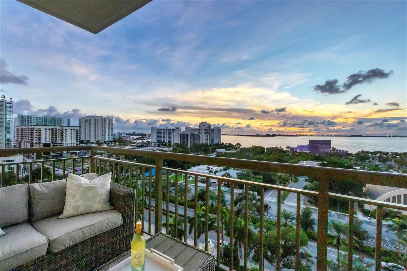 Immerse yourself with coastal luxury in this spectacularly designed two-bedroom, two-bath unit in downtown Sarasota. Nearly every surface has been artistically modernized to provide supreme elegance, comfort and functionality. As you step inside, you will be immediately greeted by the bright interior and open floor plan. The sunlight reflects beautifully off the porcelain tile throughout the unit and almost exudes the ambiance that you are walking amongst the clouds, although on the 11th floor. The beautiful porcelain tile is utilized as the baseboards throughout your unit, elevating the look and makes cleaning effortless. Every detail has been accounted for and no expense has been spared when designing your future home. The stately Samsung stainless steel appliance package in the kitchen and laundry room complements the overall atmosphere. The primary bedroom has impeccable views of Sarasota Bay, a large walk-in closet and an en-suite bath. The primary bath is absolutely gorgeous, functional, custom designed and unique to the building's original floor plan design. The primary bath has a large walk-in shower and a large linen/storage closet which is commonly sought-after with condominium living. Your second bedroom is equally large and has two windows that capture views of Sarasota Bay and the Ringling Bridge. No detail has been spared. The laundry room has a beautiful set of built-in cabinetry and a gorgeous lighting fixture. Living here means that you will enjoy the most amazing sunsets on the west coast of Florida! When it comes to selecting your next building to call home, understand that Alinari truly has all the amenities and security that you would want in a Florida condominium building. Beyond the unit itself, Alinari offers a wealth of amenities. Residents of this stunning 18-story condominium high-rise enjoy lovely plazas, fountains and modern resort-style perks. The building is completely secure with key-card entry and 24-hour front desk services, including an overnight guard. The building is in flood zone X and outside the floodplain. Alinari is designed like a fortress and was constructed with reinforced concrete beams, has been fireproofed, and was built on pilings that were drilled deep into the ground for extra added stability and security. The lobby and guest parking spaces are elevated 17 feet above from the base sea level. This unit enjoys two assigned parking spaces (one on the third floor garage and one on the first floor garage), which means your vehicles will be secured and elevated over 30 feet from sea level. From a grand entrance and an impressive lobby to concierge services, on-site management, secured parking, a clubroom, business center, fitness center and even a resident theater, every need is catered to. The location couldn't be better. In an Italian villa-inspired building, Alinari is in the heart of Sarasota's cultural district. You'll have access to all social events the city has to offer. Don't miss out on this opportunity to experience the epitome of downtown Sarasota living.