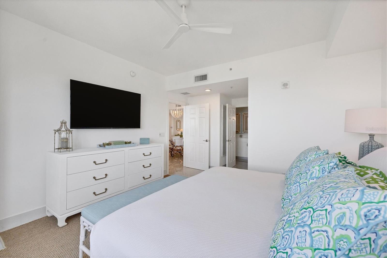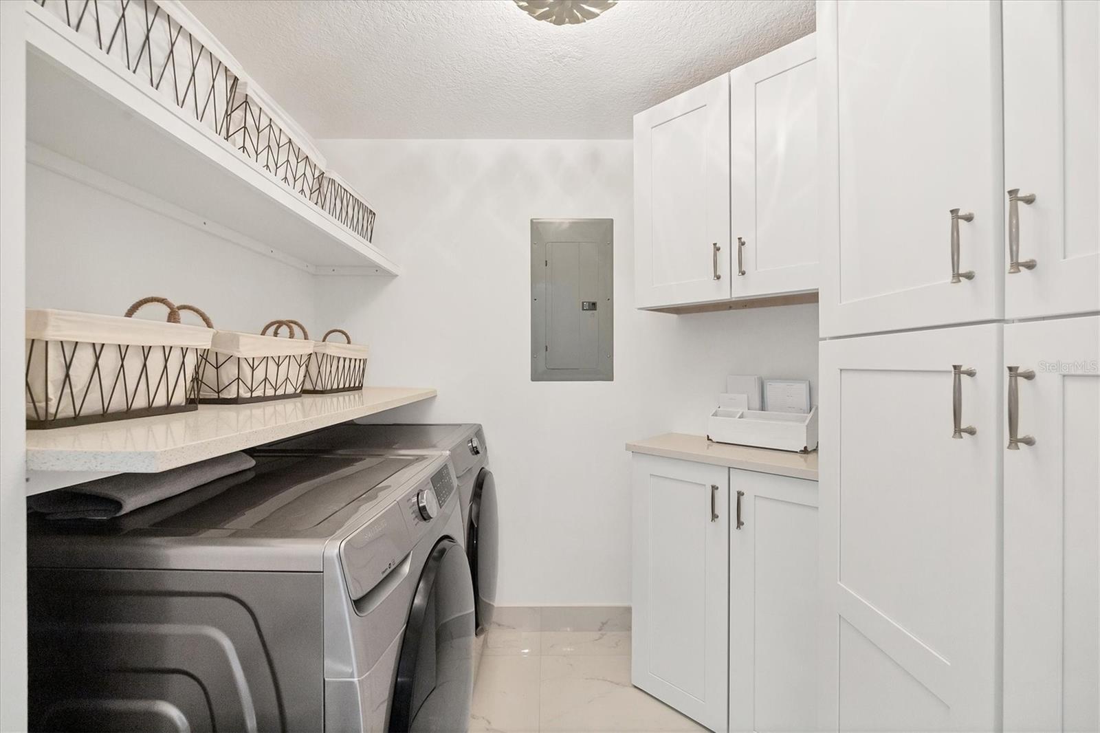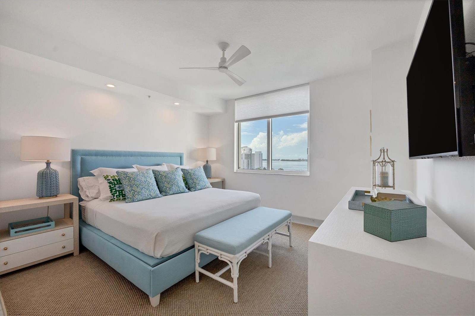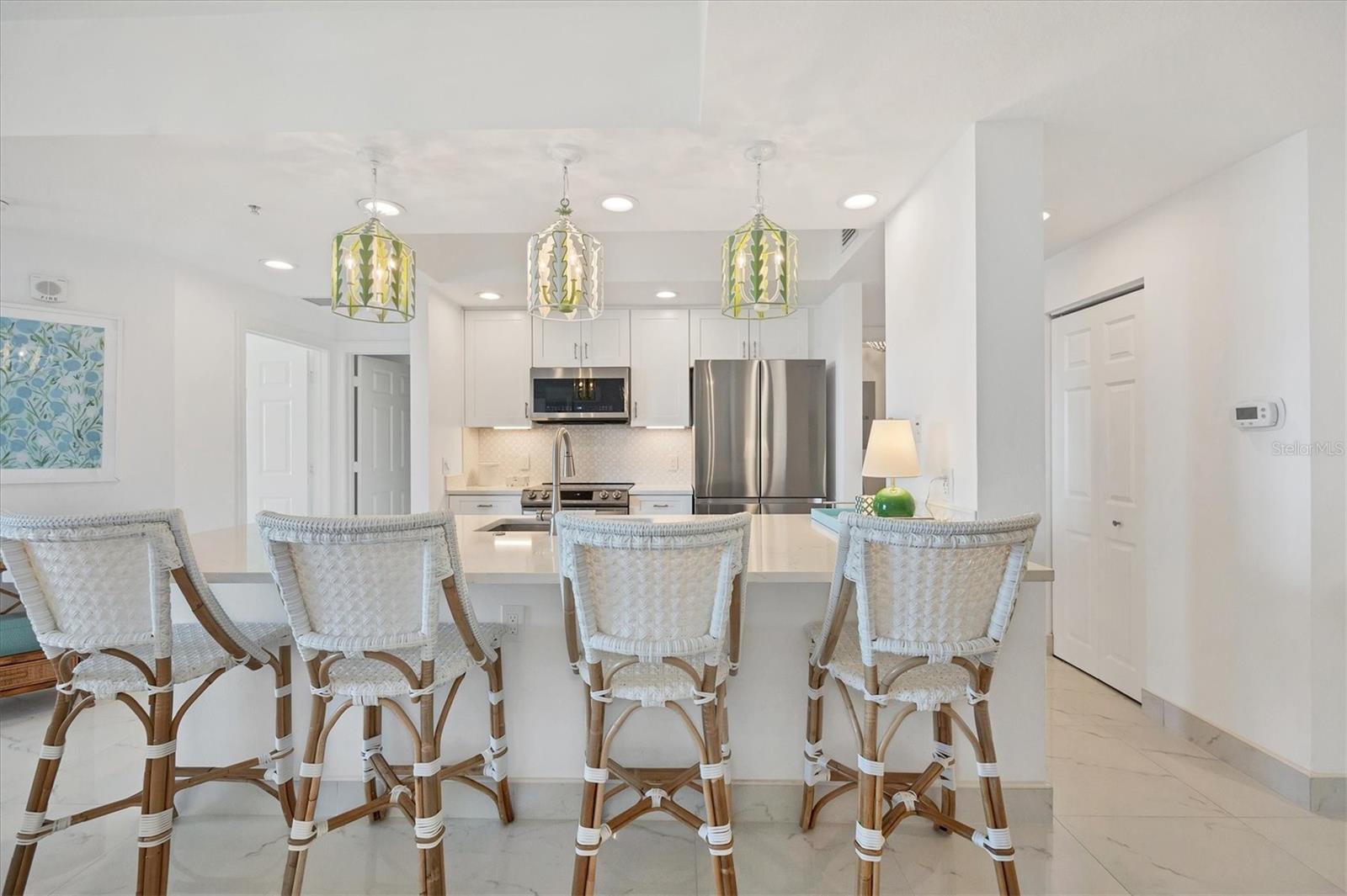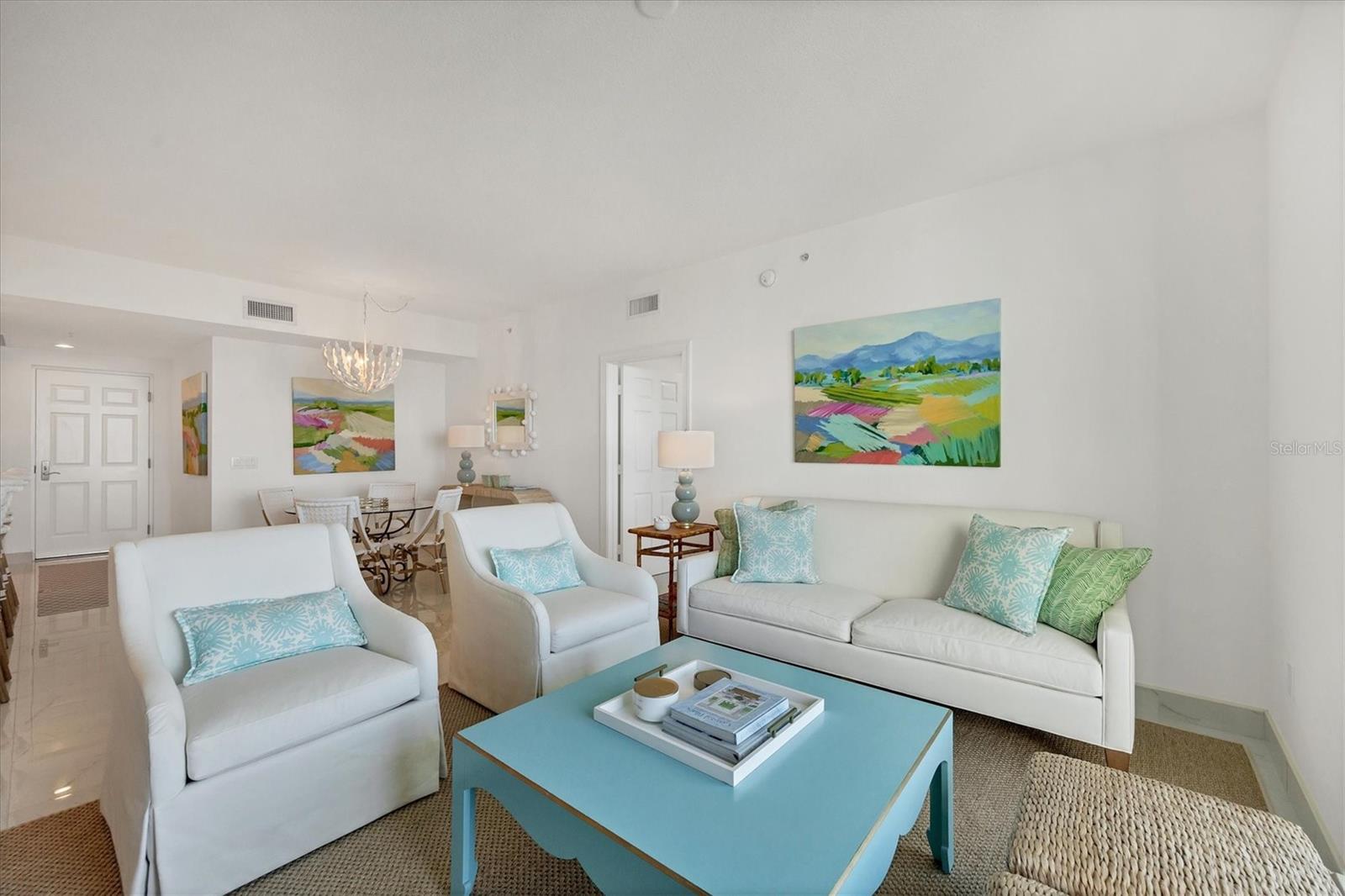 Immerse yourself with coastal luxury in this spectacularly designed two-bedroom, two-bath unit in downtown Sarasota. Nearly every surface has been artistically modernized to provide supreme elegance, comfort and functionality. As you step inside, you will be immediately greeted by the bright interior and open floor plan. The sunlight reflects beautifully off the porcelain tile throughout the unit and almost exudes the ambiance that you are walking amongst the clouds, although on the 11th floor. The beautiful porcelain tile is utilized as the baseboards throughout your unit, elevating the look and makes cleaning effortless. Every detail has been accounted for and no expense has been spared when designing your future home. The stately Samsung stainless steel appliance package in the kitchen and laundry room complements the overall atmosphere. The primary bedroom has impeccable views of Sarasota Bay, a large walk-in closet and an en-suite bath. The primary bath is absolutely gorgeous, functional, custom designed and unique to the building's original floor plan design. The primary bath has a large walk-in shower and a large linen/storage closet which is commonly sought-after with condominium living. Your second bedroom is equally large and has two windows that capture views of Sarasota Bay and the Ringling Bridge. No detail has been spared. The laundry room has a beautiful set of built-in cabinetry and a gorgeous lighting fixture. Living here means that you will enjoy the most amazing sunsets on the west coast of Florida! When it comes to selecting your next building to call home, understand that Alinari truly has all the amenities and security that you would want in a Florida condominium building. Beyond the unit itself, Alinari offers a wealth of amenities. Residents of this stunning 18-story condominium high-rise enjoy lovely plazas, fountains and modern resort-style perks. The building is completely secure with key-card entry and 24-hour front desk services, including an overnight guard. The building is in flood zone X and outside the floodplain. Alinari is designed like a fortress and was constructed with reinforced concrete beams, has been fireproofed, and was built on pilings that were drilled deep into the ground for extra added stability and security. The lobby and guest parking spaces are elevated 17 feet above from the base sea level. This unit enjoys two assigned parking spaces (one on the third floor garage and one on the first floor garage), which means your vehicles will be secured and elevated over 30 feet from sea level. From a grand entrance and an impressive lobby to concierge services, on-site management, secured parking, a clubroom, business center, fitness center and even a resident theater, every need is catered to. The location couldn't be better. In an Italian villa-inspired building, Alinari is in the heart of Sarasota's cultural district. You'll have access to all social events the city has to offer. Don't miss out on this opportunity to experience the epitome of downtown Sarasota living.
