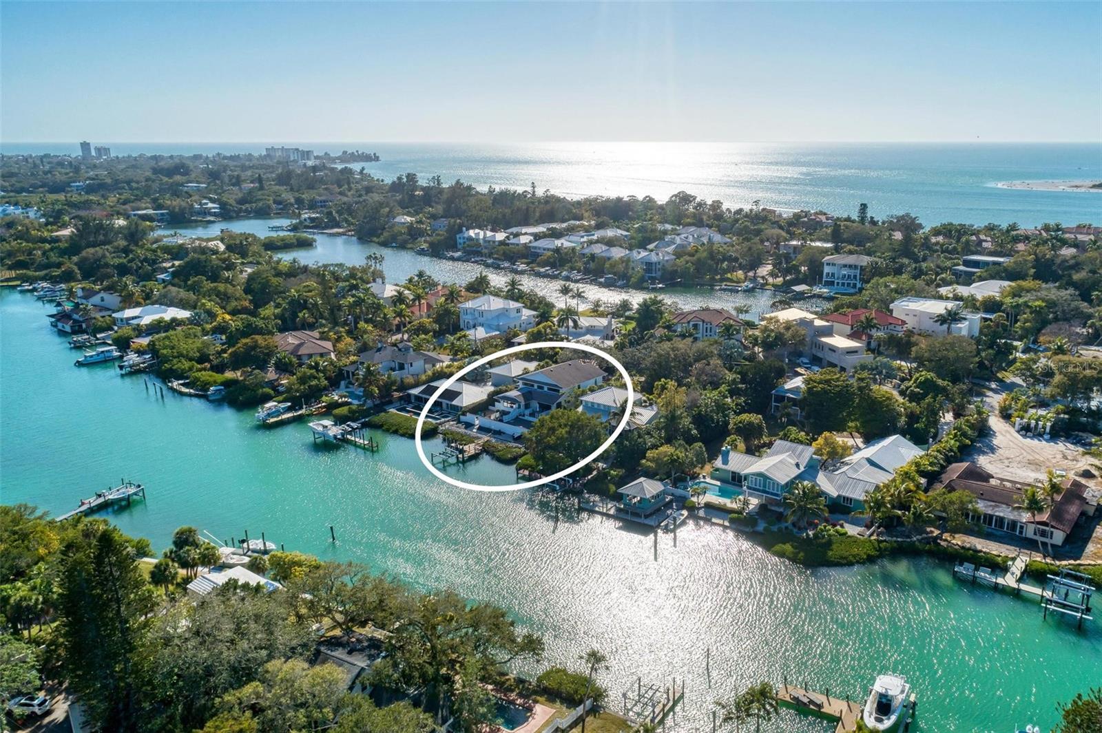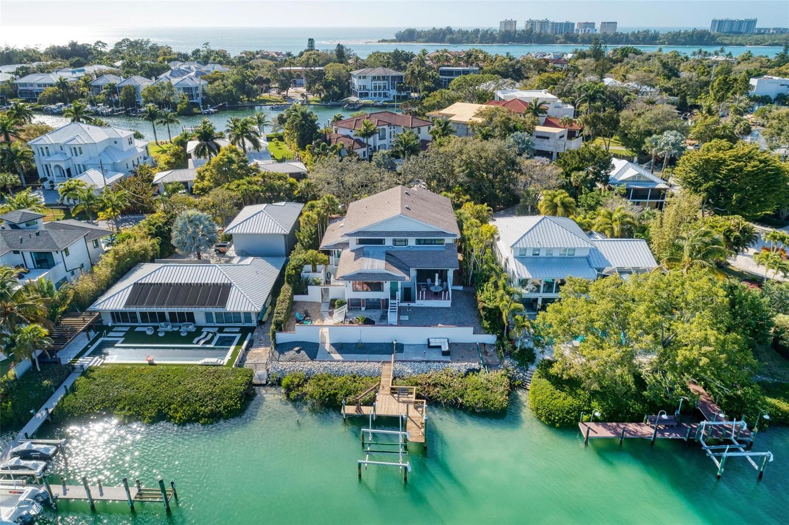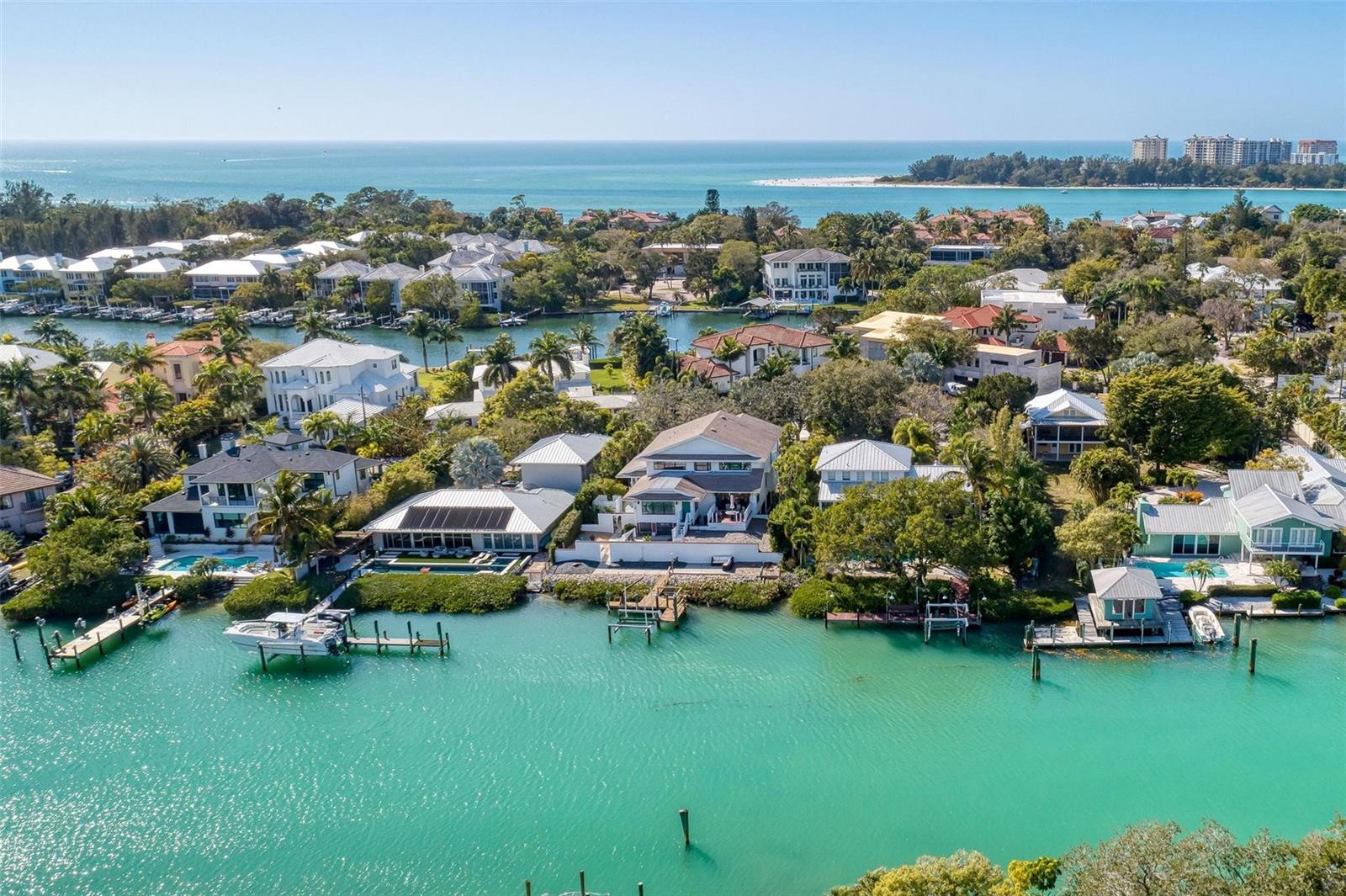 Discover the stunning charm of Roberts Bay with this spectacular waterfront home, now offered at the lowest price per square foot on Siesta Key! Whether you're looking for a dream home or a smart investment opportunity, this property has incredible potential—a quick remodel could turn a significant profit. Nestled on a quiet, private road on the highly desirable north end of world-famous Siesta Key, this over 7,000-square-foot home is currently undergoing exciting renovations and offers a lifestyle of luxury and tranquility. Boasting 81 feet of waterfront along Hansen Bayou, this home is a boater's paradise, featuring deep water access to the bay and Gulf with no bridges in sight—ideal for exploring Sarasota’s serene waterways. Behind the private gated entrance, you’ll find a spacious driveway, parking area, and multiple outdoor entertaining spaces, including your own dock with a 10,000-pound boat lift. For ultimate relaxation, the first floor offers a unique 65-foot indoor saltwater lap pool, a 3-person sauna, and an additional guest suite with a private entrance—perfect for hosting family or friends. As you move up to the second floor, the open living spaces blend seamlessly with breathtaking water views. Watch dolphins frolic in the bay from the generously sized family room, or enjoy the flexibility of an additional Florida room, game room, or bar area—also perfect for a home office. The kitchen, currently undergoing a gorgeous remodel with new appliances, with an added breakfast nook overlooking the picturesque bayou. The third floor houses three spacious bedrooms, including a master suite designed for comfort and luxury. With wide water views, large walk-in closets, and an adjacent sitting room, the master suite is an oasis of calm. The master bathroom, part of the ongoing renovation, will soon showcase a new shower, soaking tub, twin vanities, modern tile, and sleek new flooring. Step outside to the dock and enjoy evenings spent fishing or watching the dolphins at play, or head out for a short walk to the beautiful Shell Road Beach. Known for its turquoise waters, powdery quartz sand, fantastic fishing at Big Pass, and breathtaking sunsets, this beach is a true gem. A short bike ride will take you to Siesta Key Village, where you can enjoy shopping, dining, and vibrant nightlife. This home offers the perfect blend of privacy, waterfront living, and easy access to the best of Siesta Key. With so much potential, it's a fantastic opportunity for those looking to live the Florida dream—or for investors looking to capitalize on a great deal!