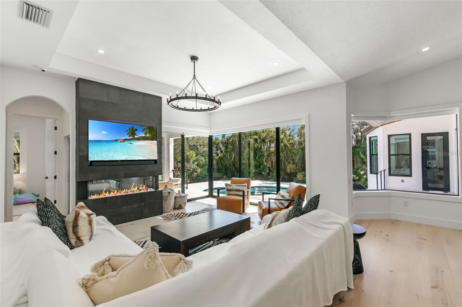 Pre-Construction. To be built. Custom Home West of the Trail, OUTSIDE FLOOD ZONE & OUTSIDE the 250ft proximity to Flood Zone. Coastal contemporary pool residence featuring 4 bedrooms, 3 baths, single story, 2981 sqft.[500 sqft. bonus room optional] Pool with waterfall fountain-[Pebble-Tec finish, saltwater filter, [natural gas option],Travertine tile patio with outdoor kitchen/wet bar and large covered Lania area for entertaining. Large lot and Vinyl wall for privacy. Beautiful designer home with many upgrades including; open floor plan with 12 ft ceilings, wood flooring throughout, open kitchen with custom cabinetry, luxurious Cambria Quartz countertops and Island. Thermador stainless-steel appliances (option natural gas). Primary Master Bedroom ensuite with custom finished walk-in closet and sliding glass doors with views of the pool and backyard. Master's ensuite bath includes porcelain tile, glass-enclosed shower with a rainfall showerhead, and custom high-end solid wood cabinets and Cambria Quartz countertops. Porcelain tile floors and showers in all bathrooms. Other features include; 3 Car Garage, option of metal or architectural roof tile, LED lighting and accents throughout, Hurricane impact doors & windows and high-quality plumbing & electrical fixtures (buyer has many options). Centrally located west of the trail between the 2 Siesta Key bridges. Close to Southside Elementary, top rated-Riverview HS, Southside Village, Downtown Sarasota, Sarasota Memorial Hospital, Marina Jack/Walt's Fish Market, Siesta Key, Lido Beach and St. Armand’s Circle. Home is a custom build, Some of the pictures are of model and are only a representation of home to be built. OPTION TO BUY LAND ONLY AT $975,000 See MLS Listing -A4646065 ( 2 Lots available)