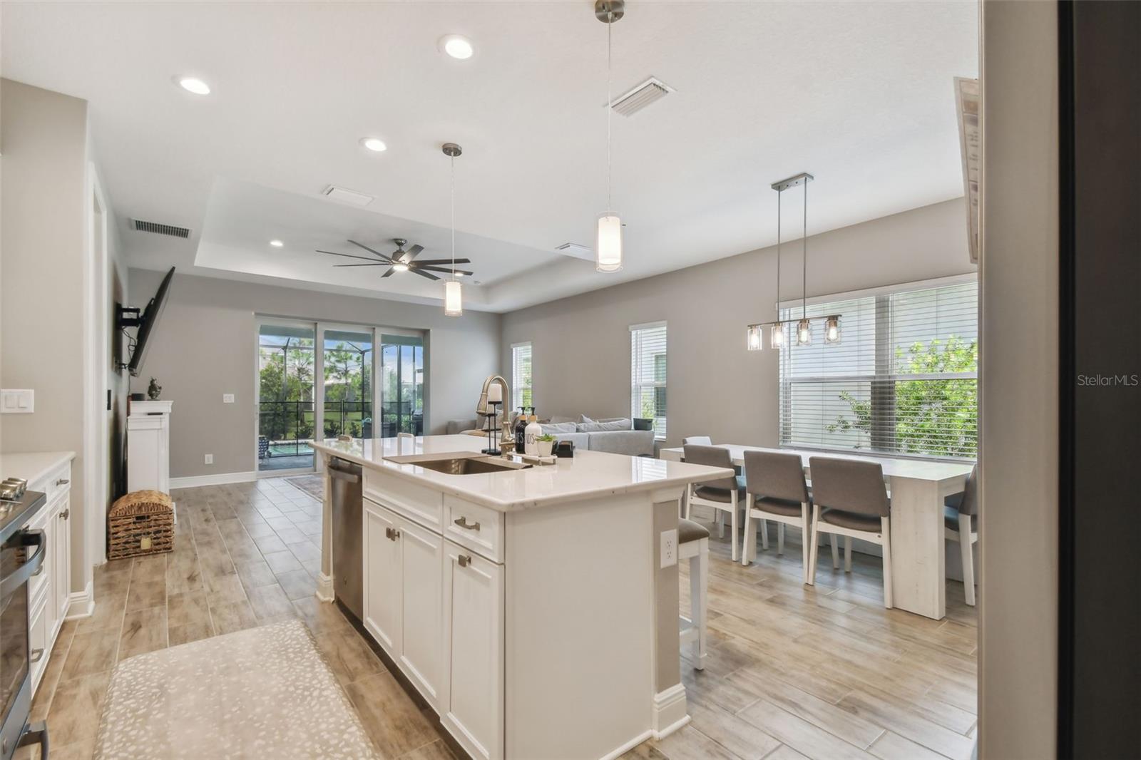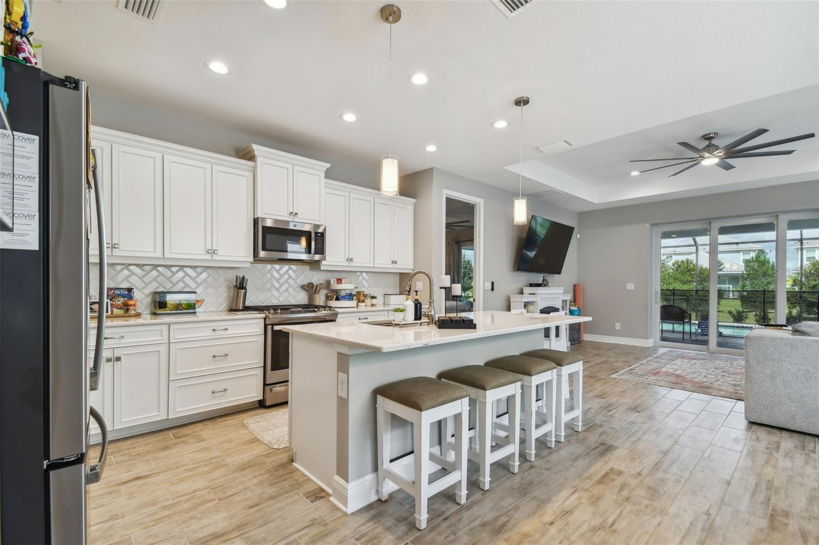 HUGE PRICE IMPROVEMENT! Welcome to Windward at Lakewood Ranch where this 2023-built home fuses thoughtful details, on-trend finishes, comfortable indoor/outdoor living, and more than $120,000 in builder upgrades including a beautifully designed pool with brick pavers and a screened enclosure. Situated in a Neal Homes Community, the location off Fruitville is central to all things Sarasota and Lakewood Ranch. The carefully planned neighborhood offers plenty of green space and a friendly street presence. A generous front porch greets guests and whisks them into the foyer which unfolds into spacious areas for entertaining. The open kitchen is centered on an island complete with solid-surface counters and a four-person breakfast bar. A white herringbone pattern sets the backdrop for socializing and sautéing, complete with stainless appliances. The dining area flows seamlessly into the family room where a tray ceiling celebrates the sense of space. Sliding glass doors open to the pool deck where fresh breezes make any day feel special. The first-level primary bedroom is ideal for aging in place with its own sliders to the screened lanai. The primary bath is generously sized and offers dual sinks, a separate toilet room, and a walk-in shower with riverstone floor. The generous walk-in closet with built-ins makes getting ready for a night on the town a breeze. Upstairs, three bedrooms offer comfort and privacy for the whole family. A bonus area is perfect for game or movie nights. Rounding out the picture, you’ll find a separate laundry room with built- ins and utility sink, a walk-in pantry for hiding away clutter, and a spacious two-car garage. The owner spent an additional $10,000 on built-ins for the pantry and primary closet. For quintessential Florida recreation, the lanai offers a covered area for lounging or dining al fresco and a shimmering screened-in pool is perfect for sun-drenched afternoons. No need to worry about the next storm, this property has stayed high and dry (not located in a flood zone) through all of the recent storms and has hurricane-impact windows and doors. The location is unbeatable, near shopping, medical facilities, boating, fishing, golfing, and I-75 where commuting to Sarasota, St. Pete, Tampa, or Orlando is an easy pleasure. The Gulf Coast is known for its dynamic arts and culture scene, A-rated schools, beautiful golf courses, and a bustling waterfront downtown - all within daily reach.