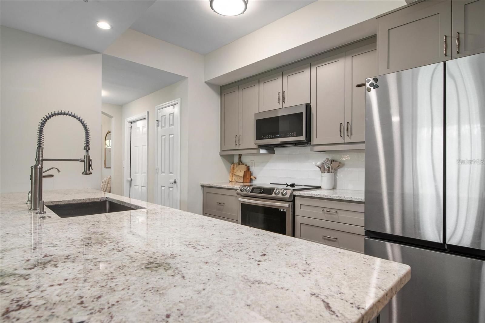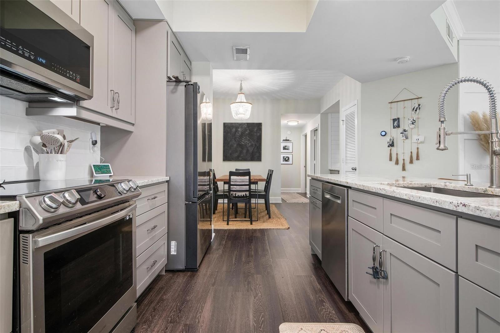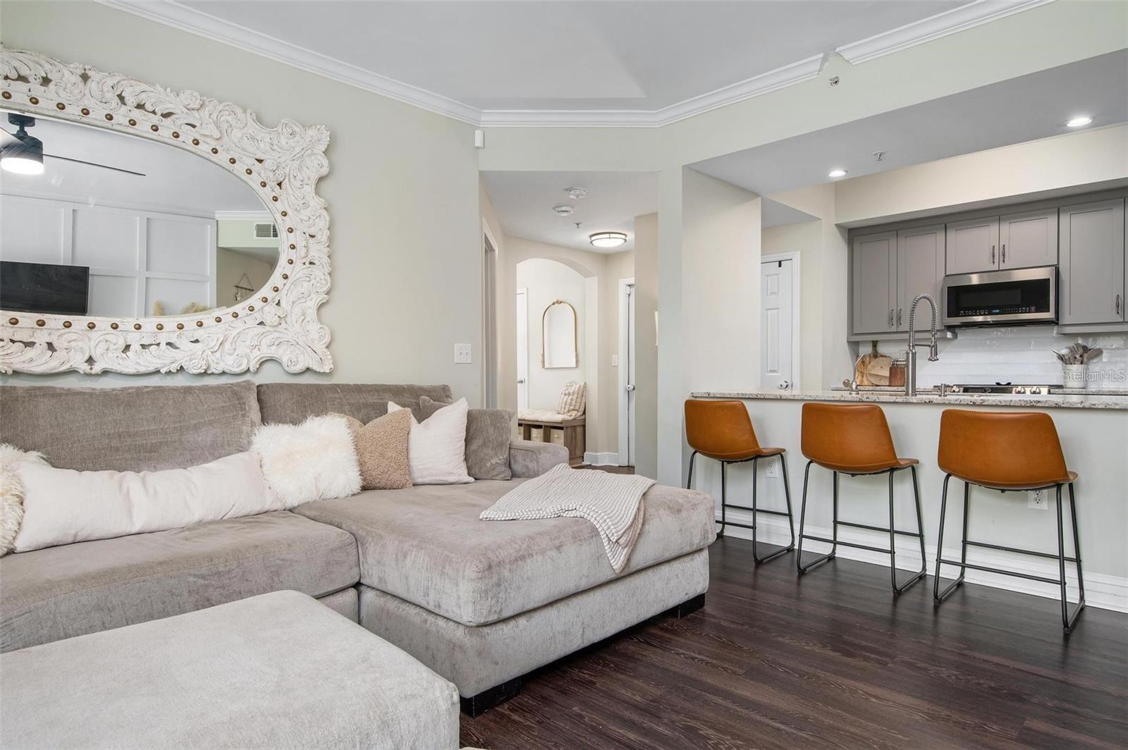 CONDO HAS NEVER FLOODED FROM A STORM - Completely updated 3 Bedroom, 3 Full Bathroom 1st floor unit. The entire unit is on the first floor. OVER 100,000 dollars in recent upgrades with receipts!! Only 5 miles to Sarasota Airport…only 9 miles to Siesta Key, alms walk to Benderson, UTC, Popstroke, and the new Mote Marine!! Everything has been remodeled to include popcorn ceilings removed and painted, all floors were redone, all bathrooms updated, quartz countertops, premium stainless appliances, brand new high end cabinets, new backsplash, all new high end fixtures, freshly painted, new coffee bar area with shiplap walls, a whole home Reverse Osmosis water filtration system, attached garage, and very large screened in patio for a large outdoor area that has new turf and a new accent wall. New ceiling fans throughout. Over 100,000 dollars in updates with over 82,000 dollars in new upgrades that were just completed and sellers will provide receipts for the upgrades. Without question this unit likely has the most upgrades of any unit in Las Palmas. The unit looks toward the nature preserve. The community features include electronic gate, 2 swimming pools, 2 gyms, Lighted Tennis and Pickleball courts, a back gate that opens to Benderson Park, Clubhouse, Gas Grills that are cleaned and maintained by the HOA, Dog Park, Playground, mature landscaping, Cable and water are included in your HOA's. The HOA is currently replacing the roofs on all buildings and there will be no assessment for doing so as the HOA is well reserved. Just over 8 miles to Siesta key beach. Less than a mile to Whole Foods. Walking distance to Benderson park and UTC mall. Less than a mile to the closest Urgrnt Care Clinic and less than a mile from the fire department. Less than a mile to Target, Best Buy, and lots of restaurants within a 2 mile radius.
