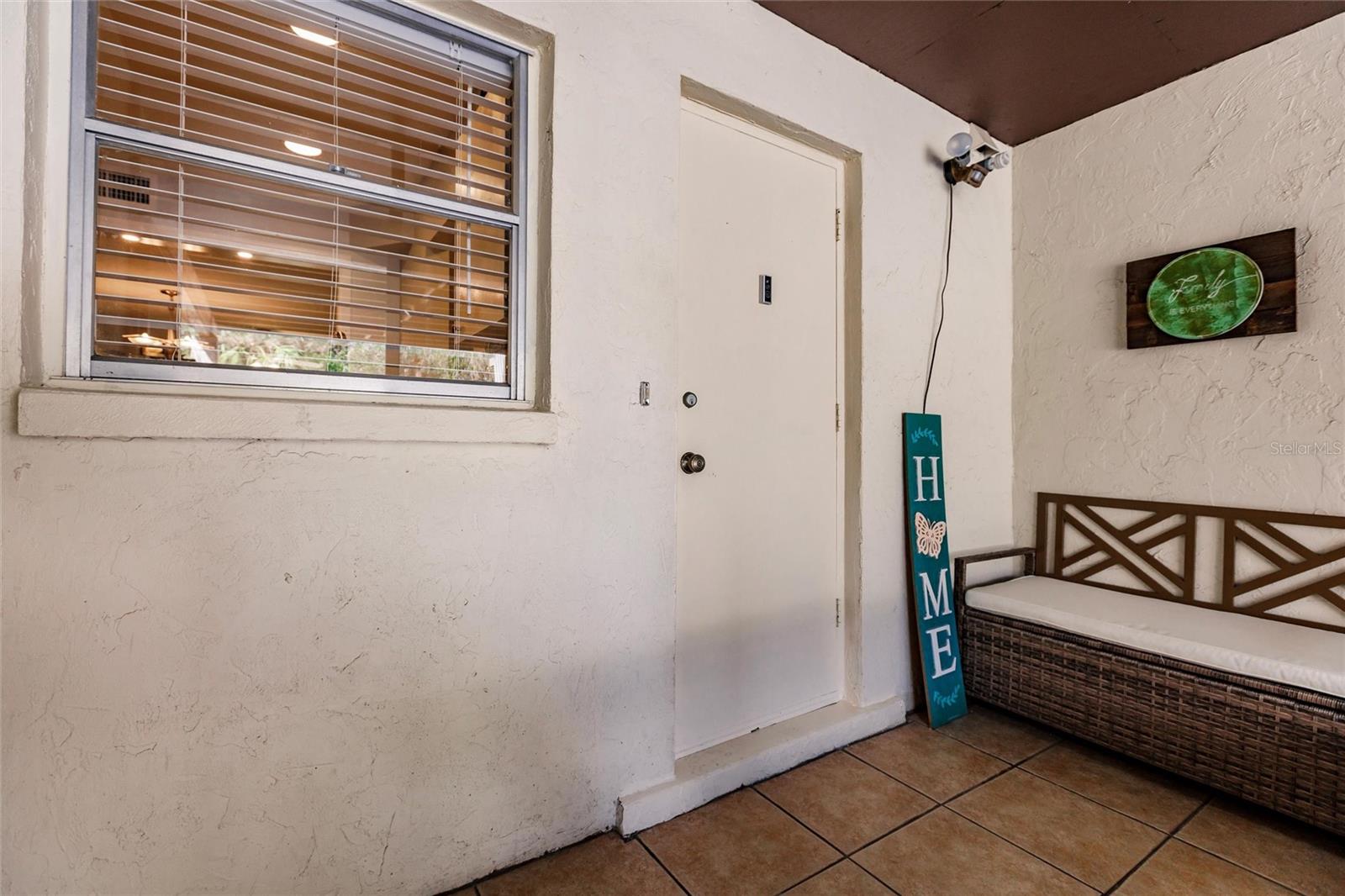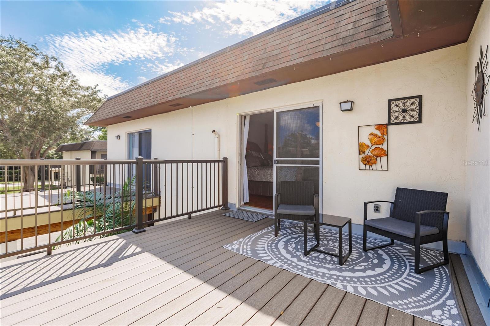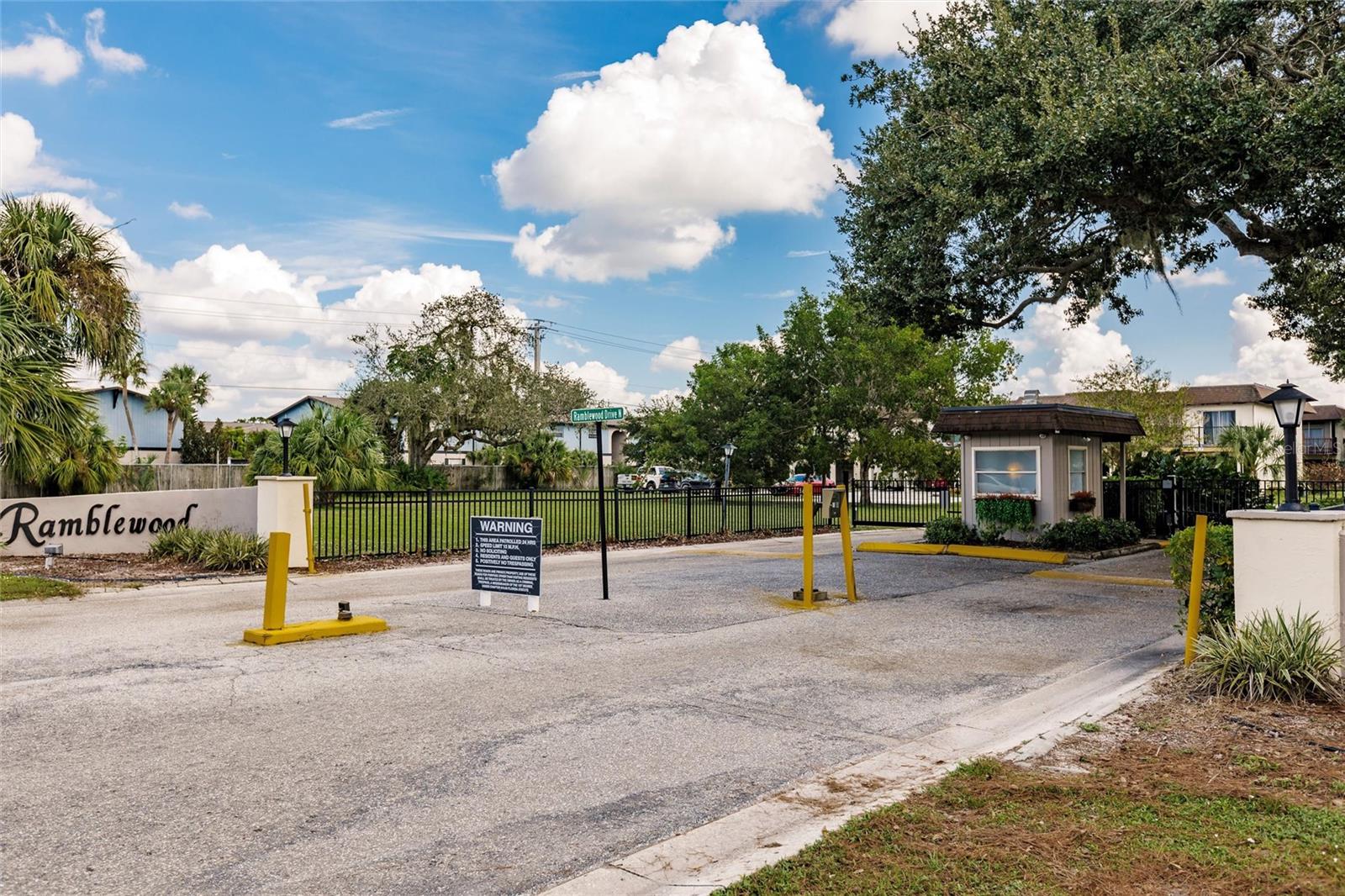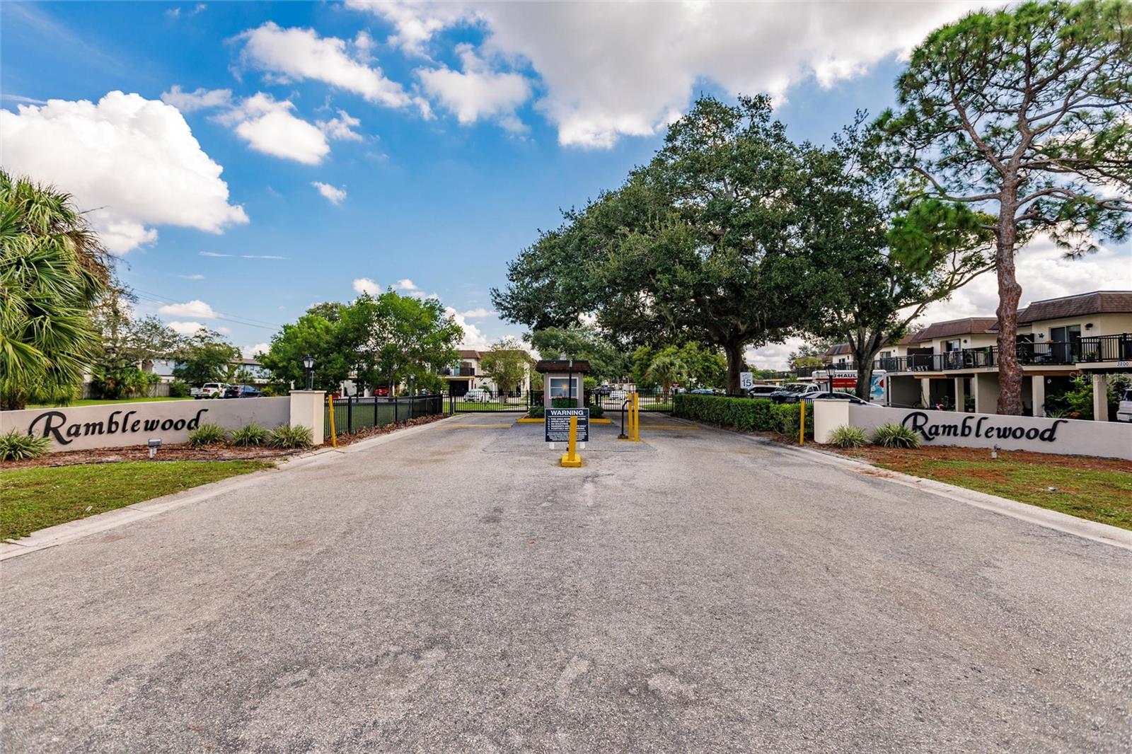 If you are looking for a FURNISHED residence, whether permanent or seasonal getaway, this tastefully furnished, immaculate and well-maintained townhome in the heart of Sarasota is a must see! As you approach, you'll be welcomed by hanging geraniums and a small planting area where you can add your personal touches and indulge your green thumb. Inside the screen enclosure, you'll find a laundry room equipped with washer and dryer. As you enter, you'll discover neutral tones and freshly and professionally painted walls, trim, and doors. The first floor features easy clean tile and a galley kitchen with granite countertops, stainless steel appliances, a reverse osmosis filtration system and a quaint spice nook. A huge walk-in pantry, half-bath and open dining/living room concept with table for six and a leather couch, a large screen TV and entertainment stand, complete the downstairs. Walk out the sliding glass doors to your private screened lanai enclosed with vinyl panels (2021) which can be opened to let the breeze flow through or closed for privacy. The stairway and second floor are adorned with professionally installed, high quality laminate. Upstairs are two sumptuously sized bedrooms, each with their own ensuite bath and a private deck where you and your guests can enjoy a slice of Florida paradise. The primary bedroom boasts a walk-in closet with a designer quality, hand-carved solid wood and marble bedroom suite. The main deck has been recently replaced with composite decking materials. The guest bedroom was redecorated in 2024. For peace of mind, this home is equipped with a Ring security system (front and back) and has voice-controlled smart lighting throughout the home. Water heater, disposal and reverse osmosis were installed 2020, A/C was installed 2021, and the washer in 2023. The location within the community is prime: close to plenty of tree-shaded guest parking and with a more private view. Popular Ramblewood Acres is a gated, maintenance-free community with amenities including 3 pools (one heated), tennis courts, playground and dog park. The clubhouse is available for rentals and houses a fitness center, pool room and the on-site manager's office. Fees include exterior maintenance, landscape and lawn maintenance, sewer & trash, internet and basic cable. Desirably located minutes from downtown Sarasota restaurants and arts district, UTC Mall, St. Armand's Circle and our beaches. For baseball enthusiasts, this home is 1 mile from Ed Smith Stadium, the home of the Baltimore Orioles spring training. All dimensions are approximate. This home is move-in ready! List of included furniture provided at time of contract. Schedule your showing today!