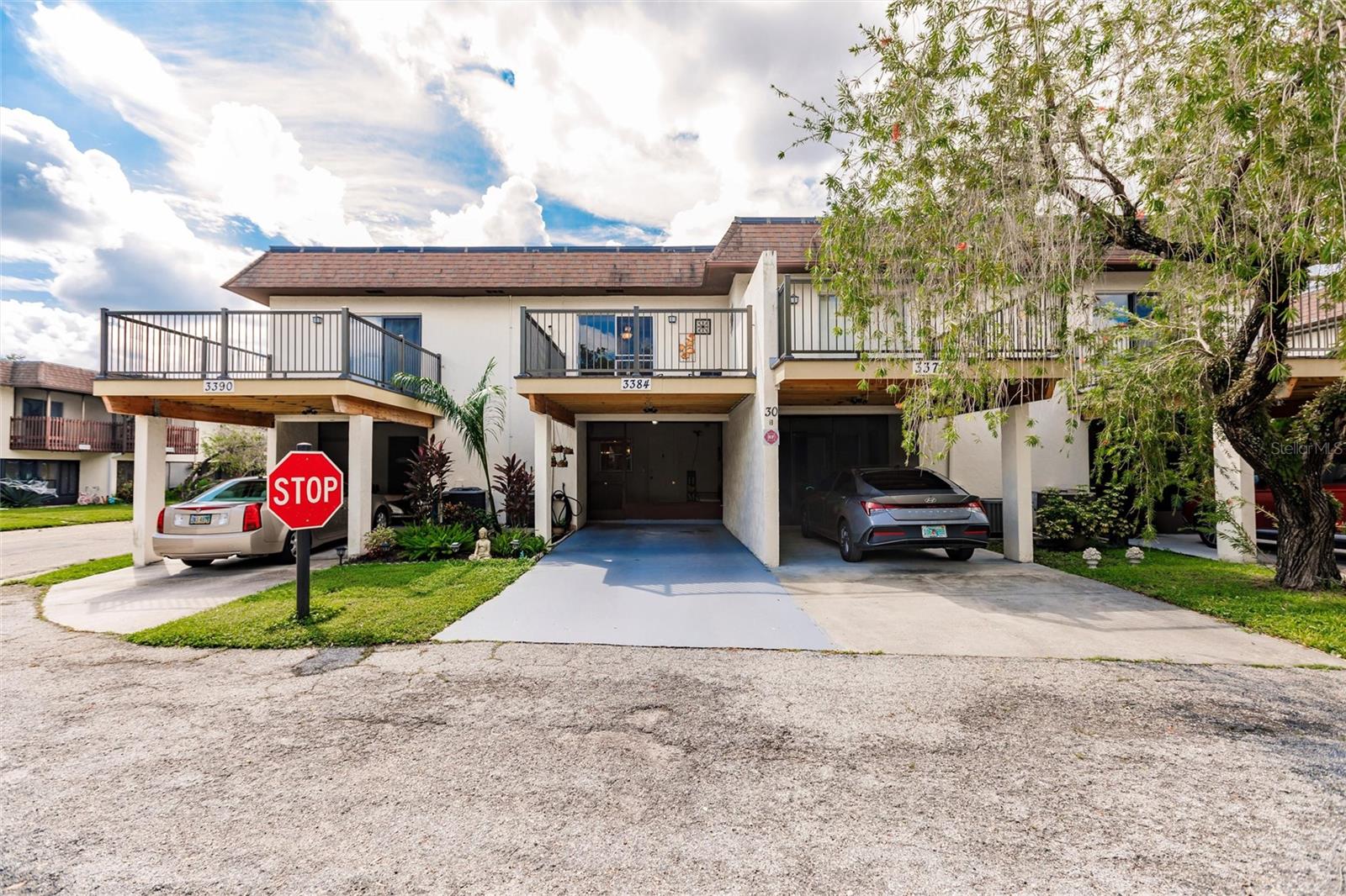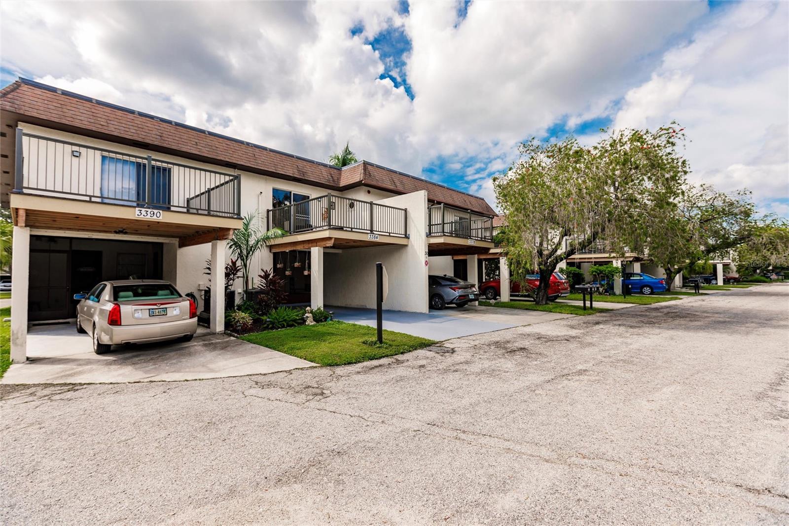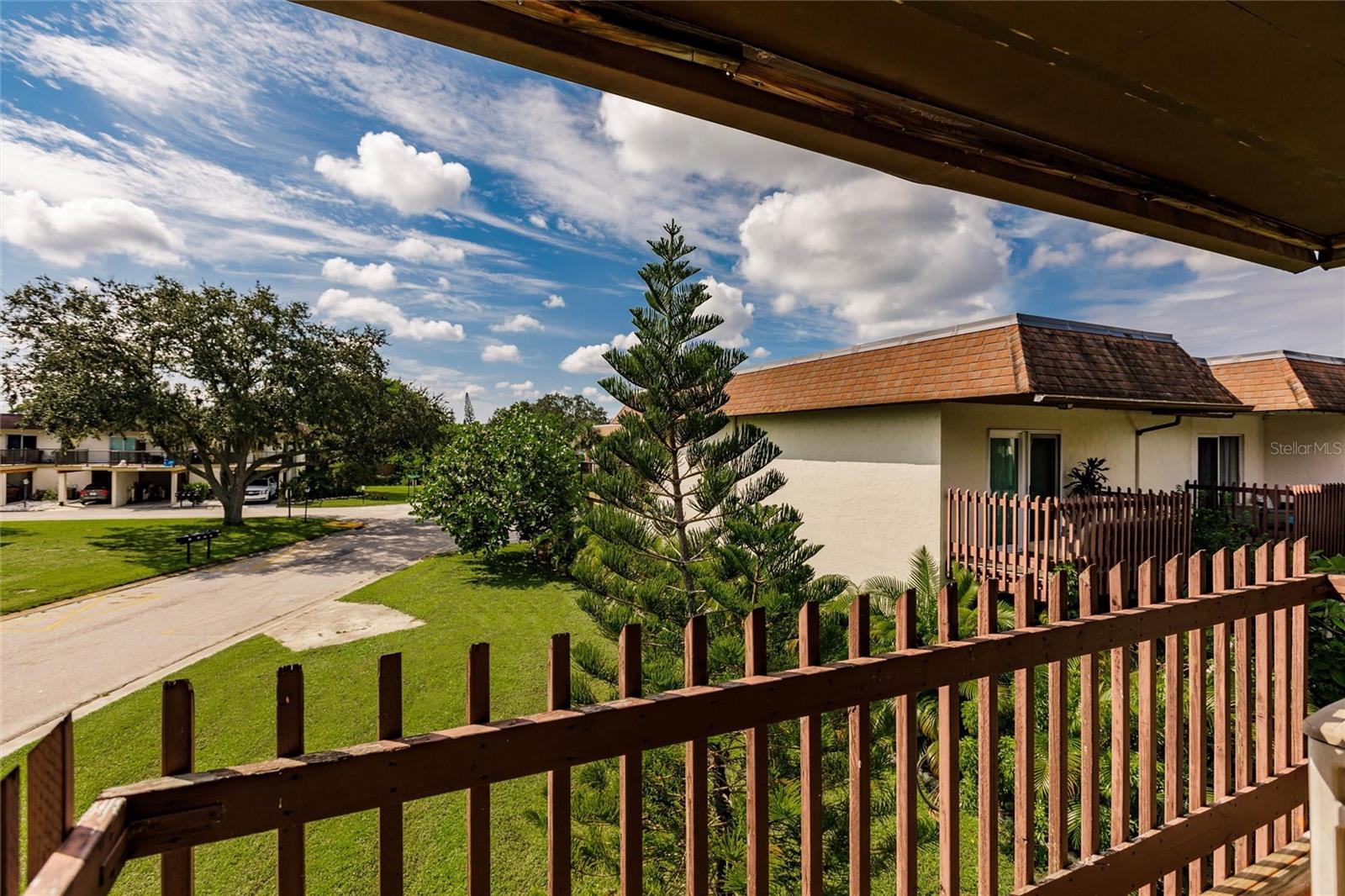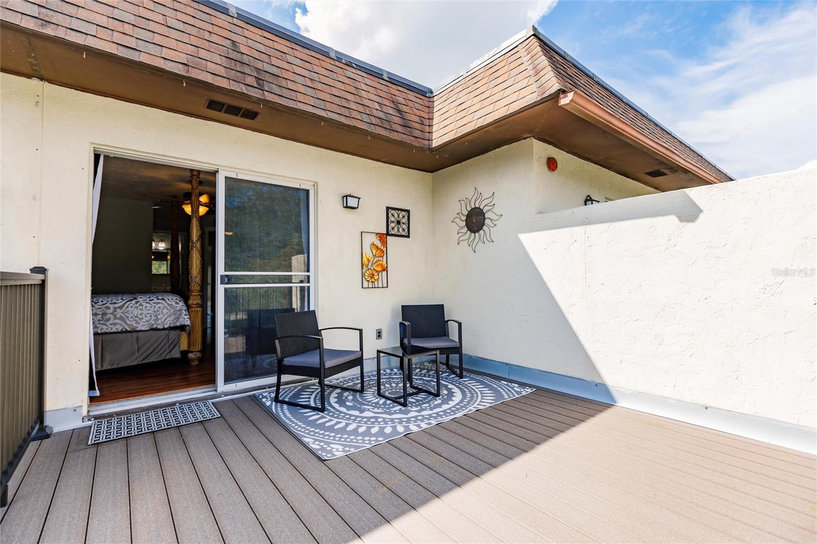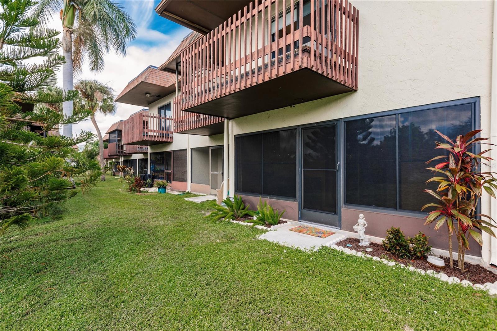 If you are looking for a FURNISHED residence, whether permanent or seasonal getaway, this tastefully furnished, immaculate and well-maintained townhome in the heart of Sarasota is a must see! As you approach, you'll be welcomed by hanging geraniums and a small planting area where you can add your personal touches and indulge your green thumb. Inside the screen enclosure, you'll find a laundry room equipped with washer and dryer. As you enter, you'll discover neutral tones and freshly and professionally painted walls, trim, and doors. The first floor features easy clean tile and a galley kitchen with granite countertops, stainless steel appliances, a reverse osmosis filtration system and a quaint spice nook. A huge walk-in pantry, half-bath and open dining/living room concept with table for six and a leather couch, a large screen TV and entertainment stand, complete the downstairs. Walk out the sliding glass doors to your private screened lanai enclosed with vinyl panels (2021) which can be opened to let the breeze flow through or closed for privacy. The stairway and second floor are adorned with professionally installed, high quality laminate. Upstairs are two sumptuously sized bedrooms, each with their own ensuite bath and a private deck where you and your guests can enjoy a slice of Florida paradise. The primary bedroom boasts a walk-in closet with a designer quality, hand-carved solid wood and marble bedroom suite. The main deck has been recently replaced with composite decking materials. The guest bedroom was redecorated in 2024. For peace of mind, this home is equipped with a Ring security system (front and back) and has voice-controlled smart lighting throughout the home. Water heater, disposal and reverse osmosis were installed 2020, A/C was installed 2021, and the washer in 2023. The location within the community is prime: close to plenty of tree-shaded guest parking and with a more private view. Popular Ramblewood Acres is a gated, maintenance-free community with amenities including 3 pools (one heated), tennis courts, playground and dog park. The clubhouse is available for rentals and houses a fitness center, pool room and the on-site manager's office. Fees include exterior maintenance, landscape and lawn maintenance, sewer & trash, internet and basic cable. Desirably located minutes from downtown Sarasota restaurants and arts district, UTC Mall, St. Armand's Circle and our beaches. For baseball enthusiasts, this home is 1 mile from Ed Smith Stadium, the home of the Baltimore Orioles spring training. All dimensions are approximate. This home is move-in ready! List of included furniture provided at time of contract. Schedule your showing today!