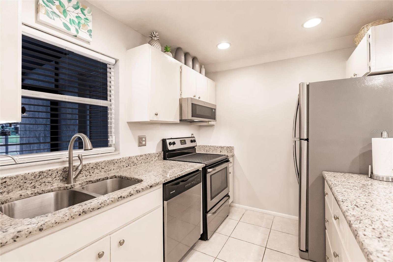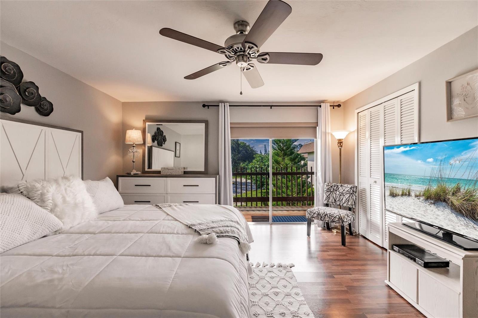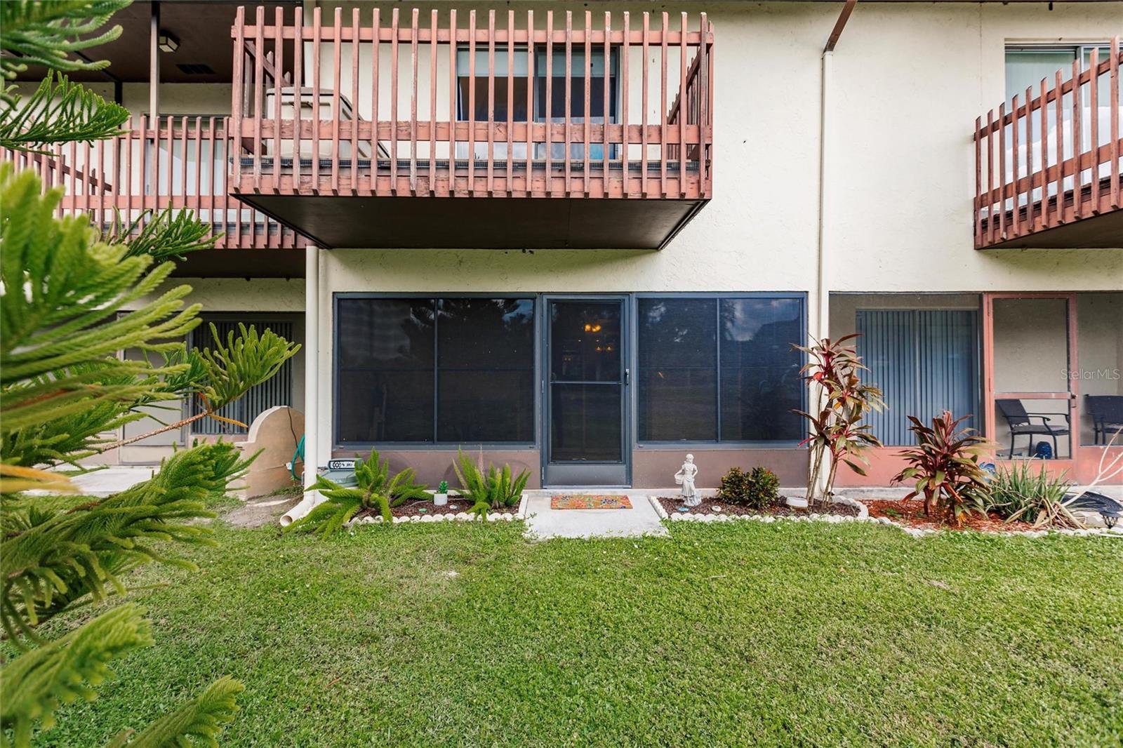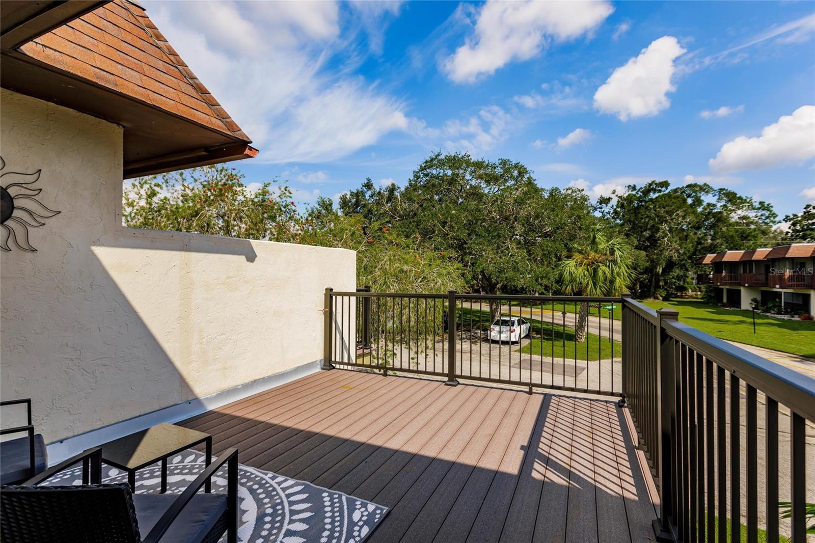 If you are looking for a FURNISHED residence, whether permanent or seasonal getaway, this tastefully furnished, immaculate and well-maintained townhome in the heart of Sarasota is a must see! As you approach, you'll be welcomed by hanging geraniums and a small planting area where you can add your personal touches and indulge your green thumb. Inside the screen enclosure, you'll find a laundry room equipped with washer and dryer. As you enter, you'll discover neutral tones and freshly and professionally painted walls, trim, and doors. The first floor features easy clean tile and a galley kitchen with granite countertops, stainless steel appliances, a reverse osmosis filtration system and a quaint spice nook. A huge walk-in pantry, half-bath and open dining/living room concept with table for six and a leather couch, a large screen TV and entertainment stand, complete the downstairs. Walk out the sliding glass doors to your private screened lanai enclosed with vinyl panels (2021) which can be opened to let the breeze flow through or closed for privacy. The stairway and second floor are adorned with professionally installed, high quality laminate. Upstairs are two sumptuously sized bedrooms, each with their own ensuite bath and a private deck where you and your guests can enjoy a slice of Florida paradise. The primary bedroom boasts a walk-in closet with a designer quality, hand-carved solid wood and marble bedroom suite. The main deck has been recently replaced with composite decking materials. The guest bedroom was redecorated in 2024. For peace of mind, this home is equipped with a Ring security system (front and back) and has voice-controlled smart lighting throughout the home. Water heater, disposal and reverse osmosis were installed 2020, A/C was installed 2021, and the washer in 2023. The location within the community is prime: close to plenty of tree-shaded guest parking and with a more private view. Popular Ramblewood Acres is a gated, maintenance-free community with amenities including 3 pools (one heated), tennis courts, playground and dog park. The clubhouse is available for rentals and houses a fitness center, pool room and the on-site manager's office. Fees include exterior maintenance, landscape and lawn maintenance, sewer & trash, internet and basic cable. Desirably located minutes from downtown Sarasota restaurants and arts district, UTC Mall, St. Armand's Circle and our beaches. For baseball enthusiasts, this home is 1 mile from Ed Smith Stadium, the home of the Baltimore Orioles spring training. All dimensions are approximate. This home is move-in ready! List of included furniture provided at time of contract. Schedule your showing today!